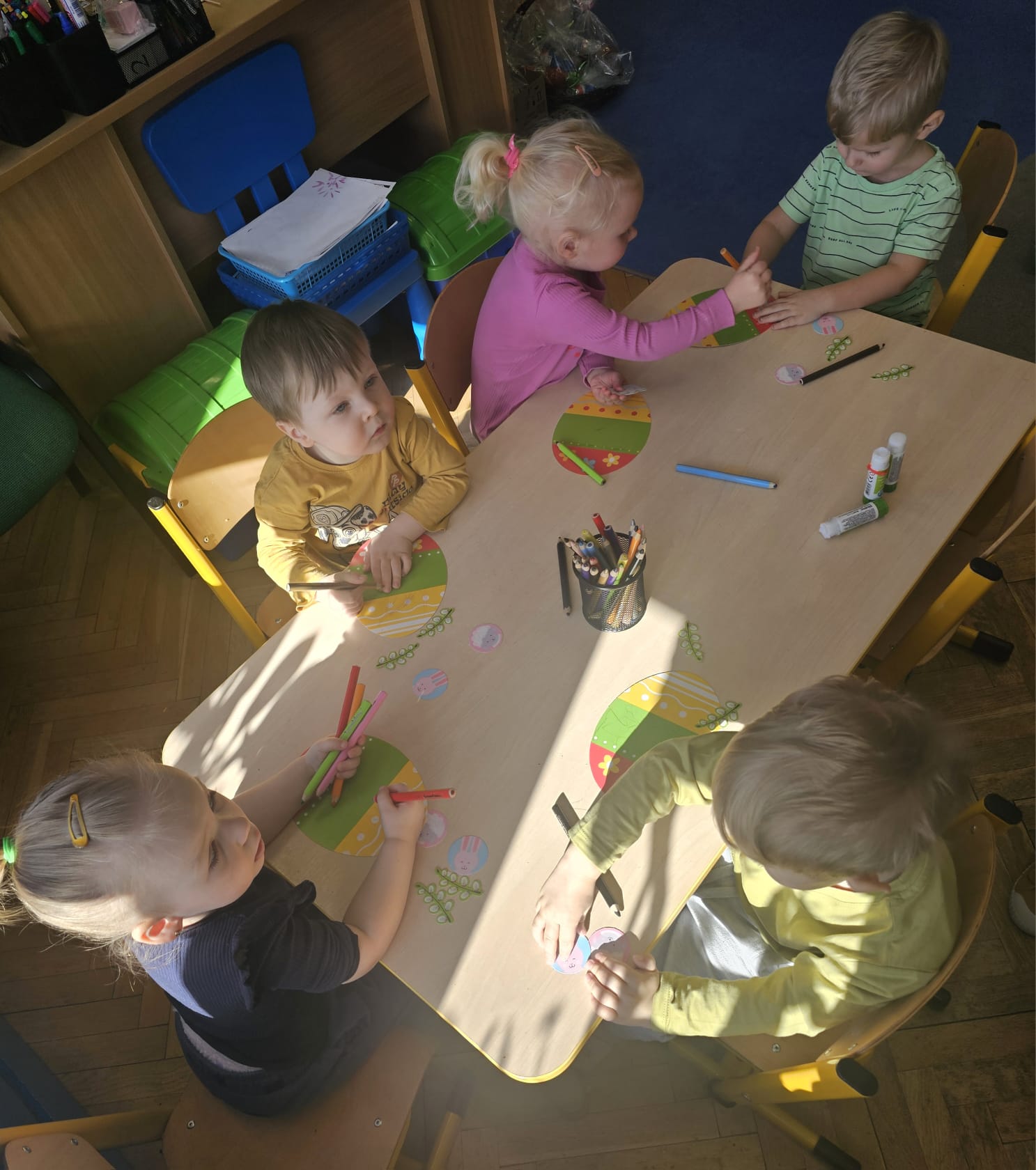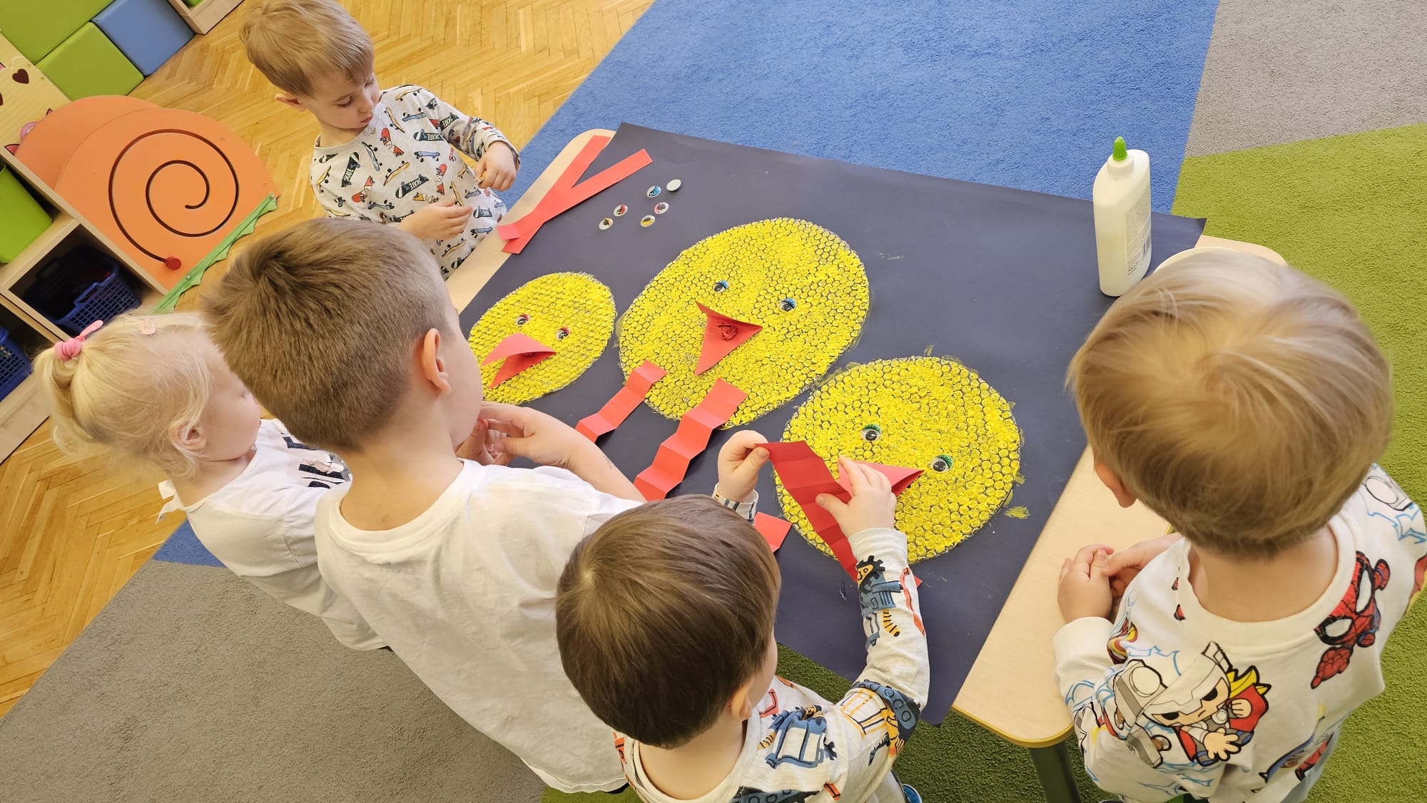 W ostatnich dniach dzieci z grupy I maluszków uczestniczyły w zajęciach o tematyce świątecznej, związanej z Wielkanocą. W naszej sali królowały zające, kurczaczki, baranki oraz oczywiście kolorowe pisanki. Dzieci poznały wybrane tradycje wielkanocne, a poprzez zabawę i różnorodne działania plastyczne mogły poczuć radosną, świąteczną atmosferę. Nie zabrakło kreatywnych prac, uśmiechu i wspólnej zabawy. Cele jakie przyświecały zajęciom to: zapoznanie dzieci z tradycjami i symbolami wielkanocnymi, rozwijanie zainteresowań kulturą i obyczajami, rozwijanie sprawności manualnej poprzez działania plastyczne, kształtowanie kreatywności i wyobraźni, wzmacnianie umiejętności współpracy i wspólnej zabawy. Życzymy Zdrowych, Wesołych Świąt!
