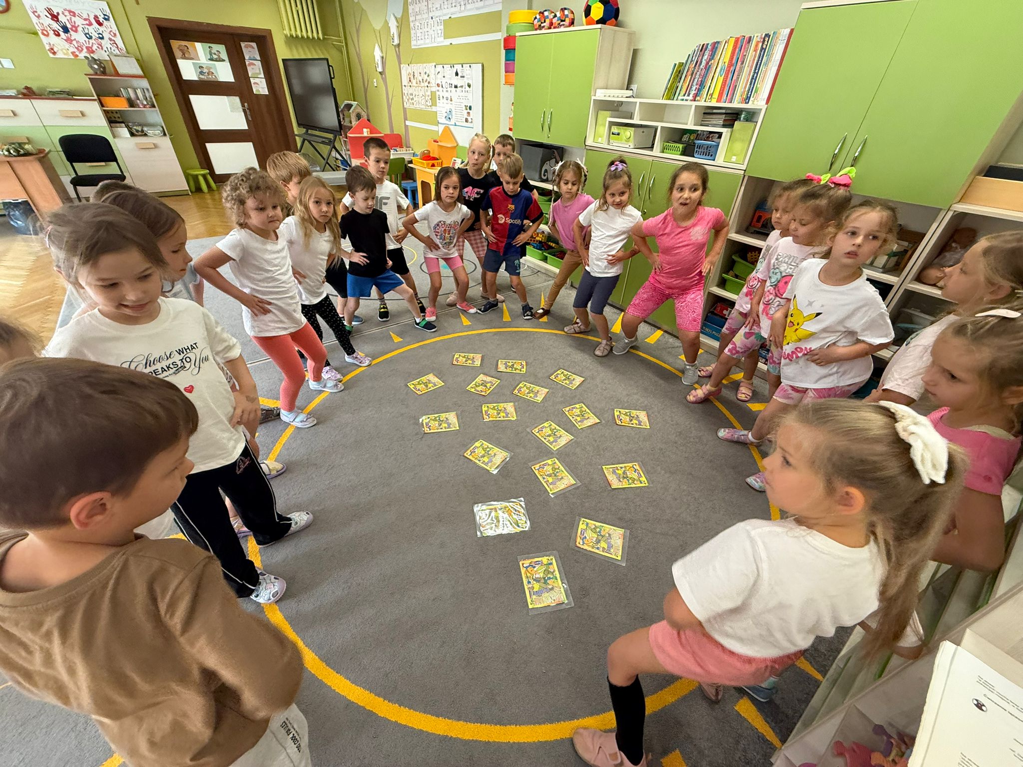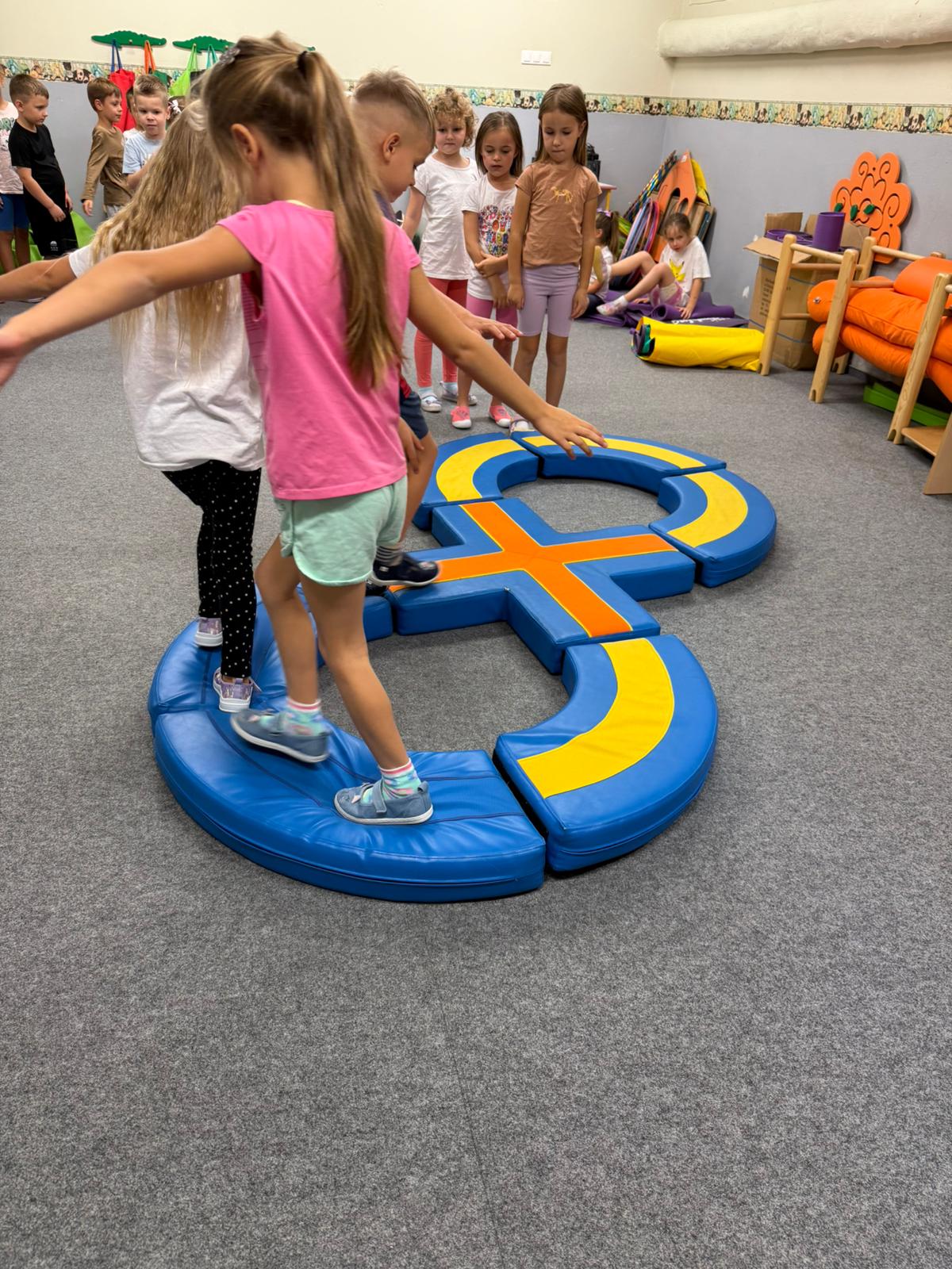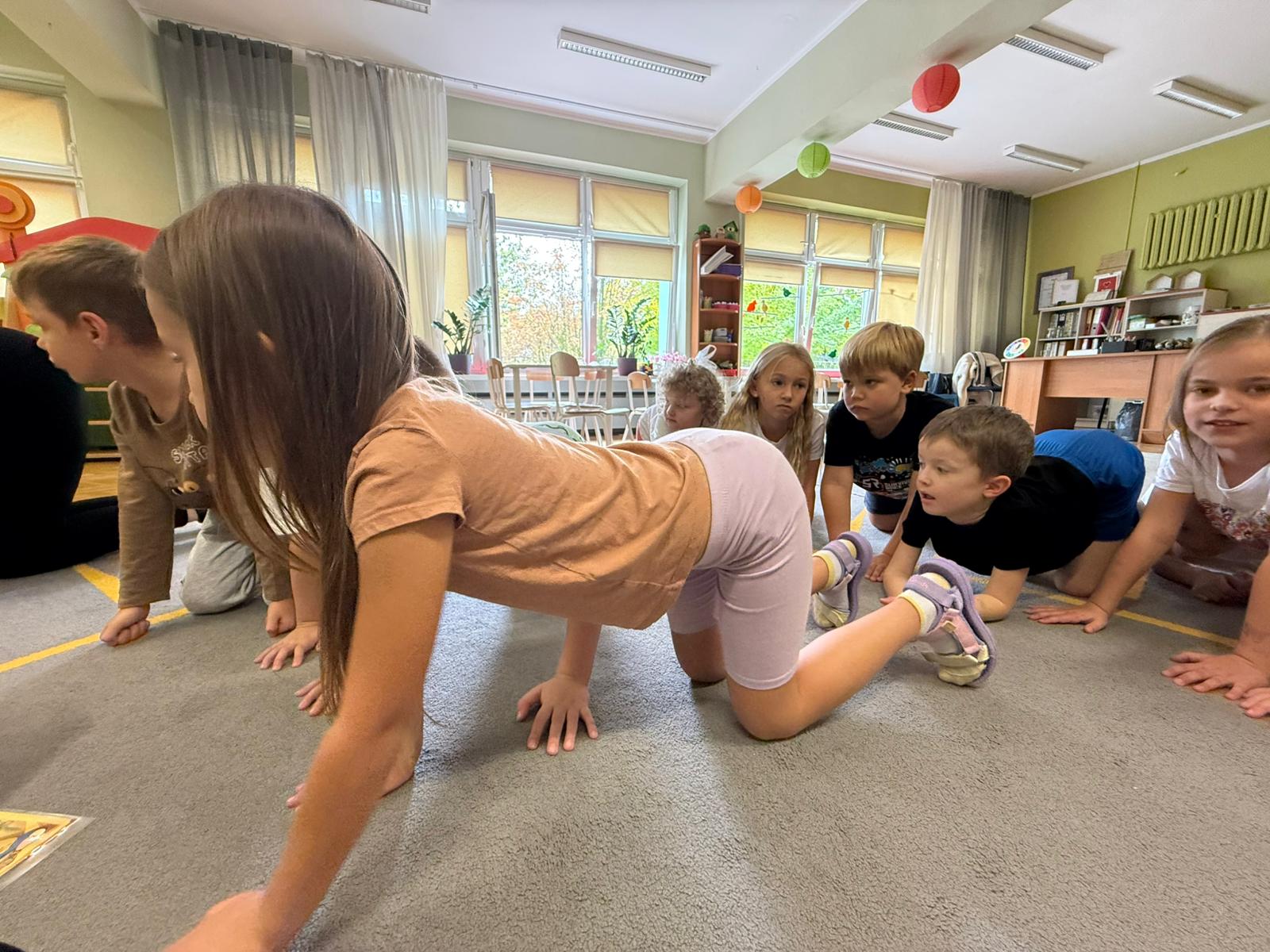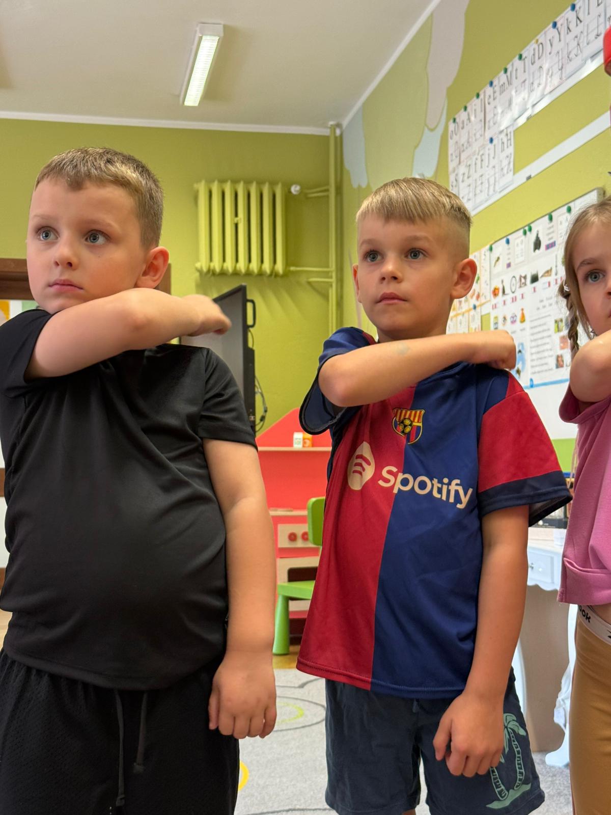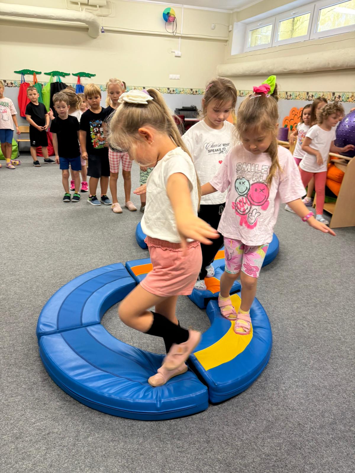 Od czterech lat w naszej grupie z powodzeniem stosujemy metodę Paula Dennisona, łącząc ruch i aktywność fizyczną z nauką. Na początku dzieci w wieku czterech lat uczyły się podstawowych ćwiczeń integrujących półkule mózgu, a obecnie, jako sześciolatkowie, kontynuują te działania, rozwijając, koncentrację i umiejętności poznawcze. Celem metody jest wspieranie integracji obu półkul mózgowych, poprawa koordynacji i równowagi, rozwijanie umiejętności motorycznych i koncentracji, wspomaganie procesu uczenia się i zapamiętywania, budowanie pewności siebie i pozytywnego nastawienia do nauki. Dzieci, dzięki regularnym ćwiczeniom, stają się bardziej skoncentrowane, lepiej radzą sobie z zadaniami wymagającymi precyzji i kreatywności, a także czerpią radość z nauki i zabawy. Dzięki tej metodzie dzieciom łatwiej jest osiągnąć dojrzałość szkolną, co pozytywnie wpływa na ich gotowość do nauki w przyszłości.
