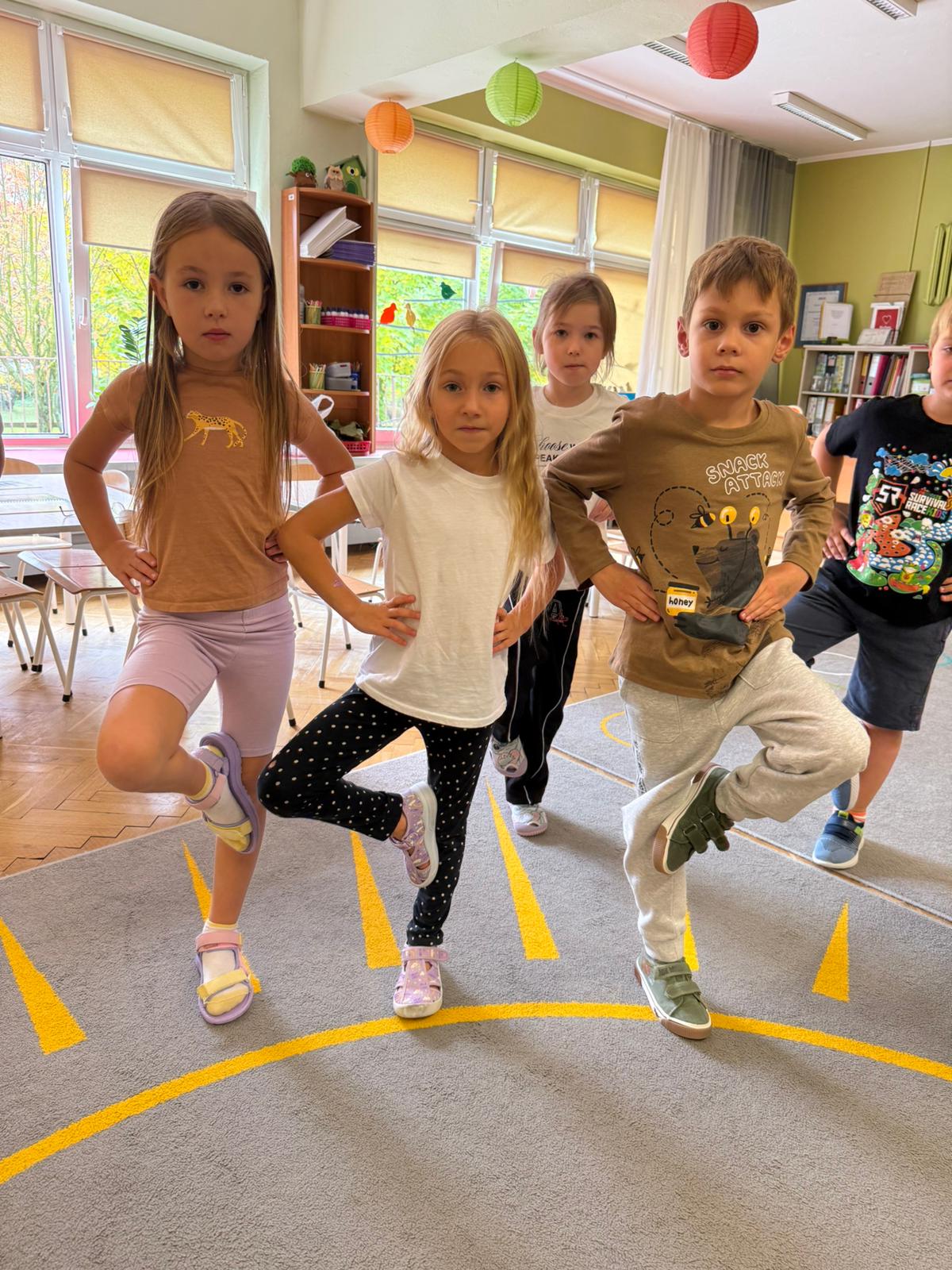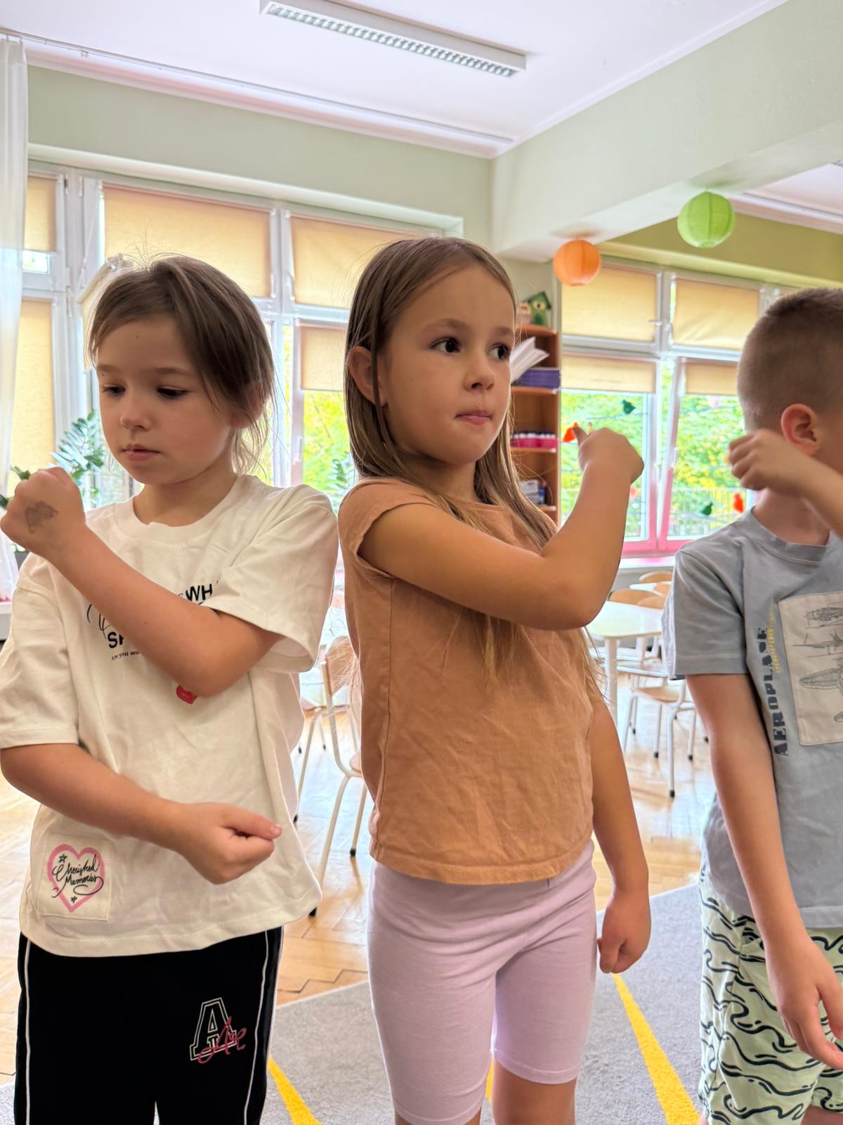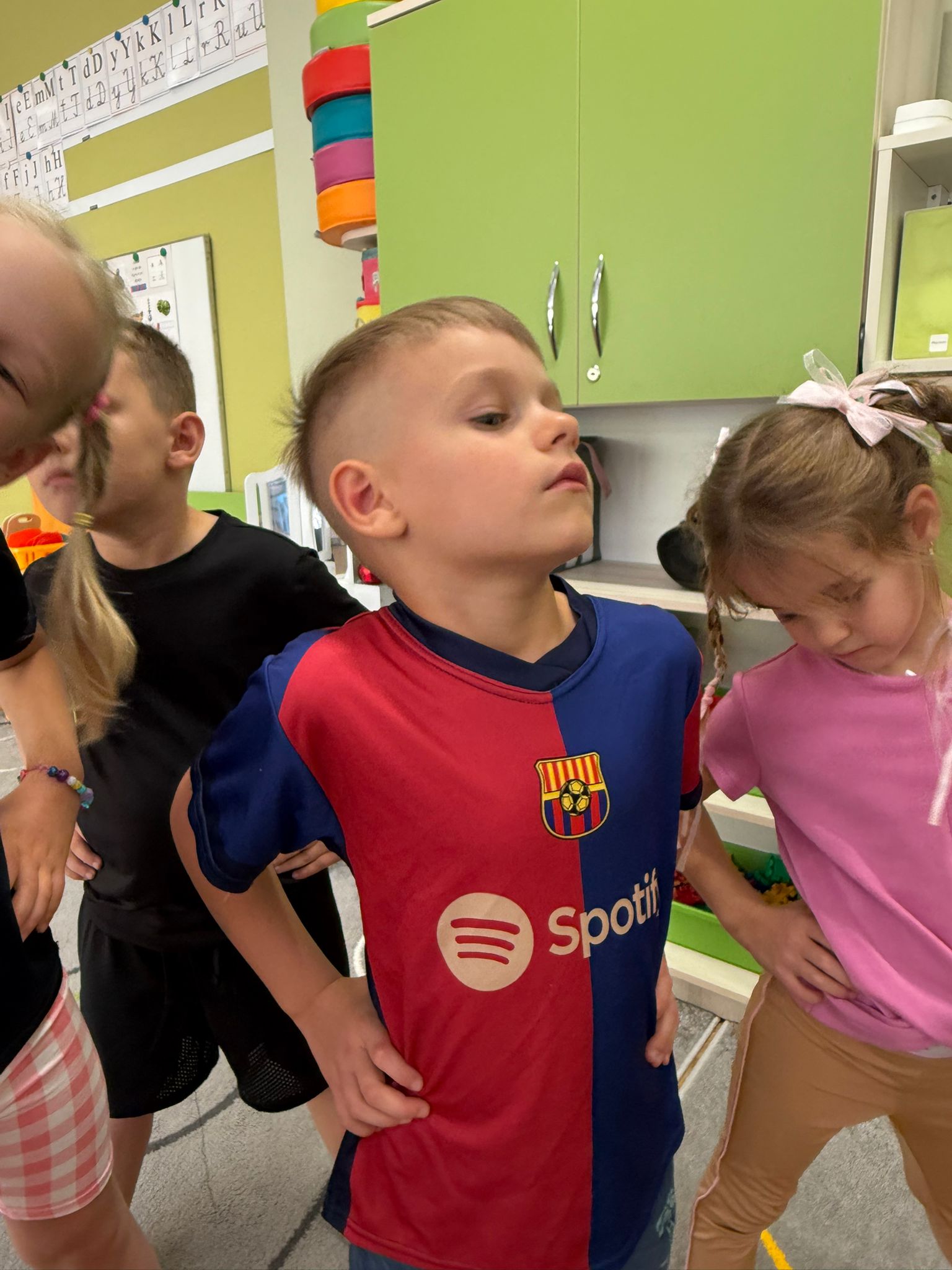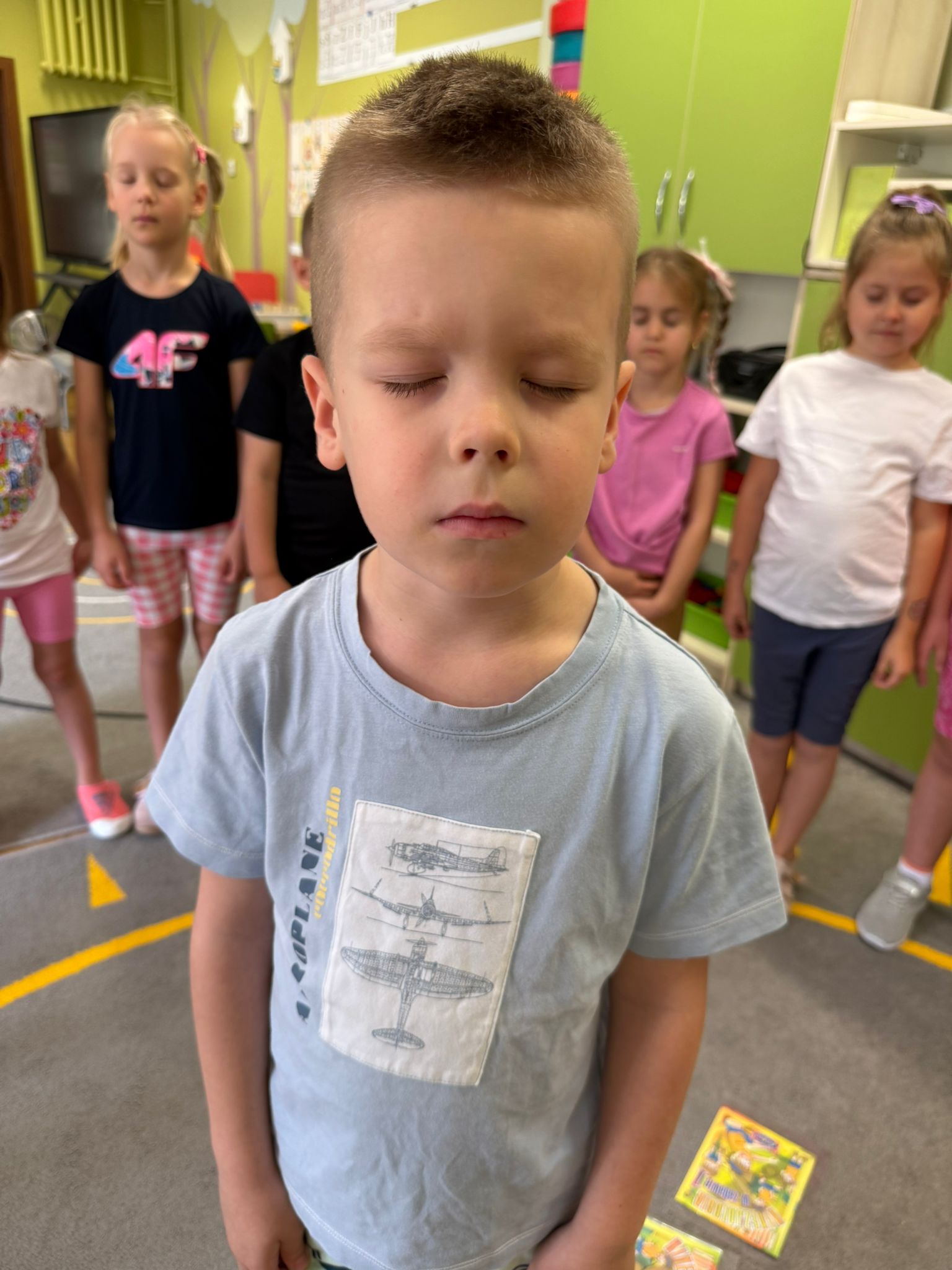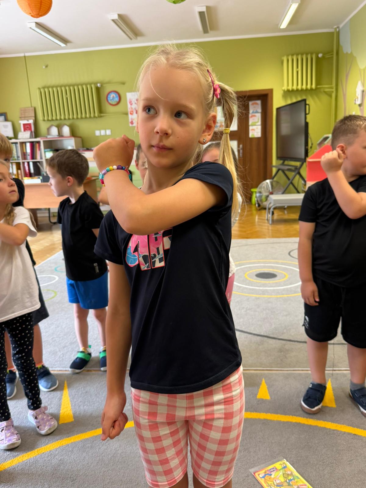 Od czterech lat w naszej grupie z powodzeniem stosujemy metodę Paula Dennisona, łącząc ruch i aktywność fizyczną z nauką. Na początku dzieci w wieku czterech lat uczyły się podstawowych ćwiczeń integrujących półkule mózgu, a obecnie, jako sześciolatkowie, kontynuują te działania, rozwijając, koncentrację i umiejętności poznawcze. Celem metody jest wspieranie integracji obu półkul mózgowych, poprawa koordynacji i równowagi, rozwijanie umiejętności motorycznych i koncentracji, wspomaganie procesu uczenia się i zapamiętywania, budowanie pewności siebie i pozytywnego nastawienia do nauki. Dzieci, dzięki regularnym ćwiczeniom, stają się bardziej skoncentrowane, lepiej radzą sobie z zadaniami wymagającymi precyzji i kreatywności, a także czerpią radość z nauki i zabawy. Dzięki tej metodzie dzieciom łatwiej jest osiągnąć dojrzałość szkolną, co pozytywnie wpływa na ich gotowość do nauki w przyszłości.