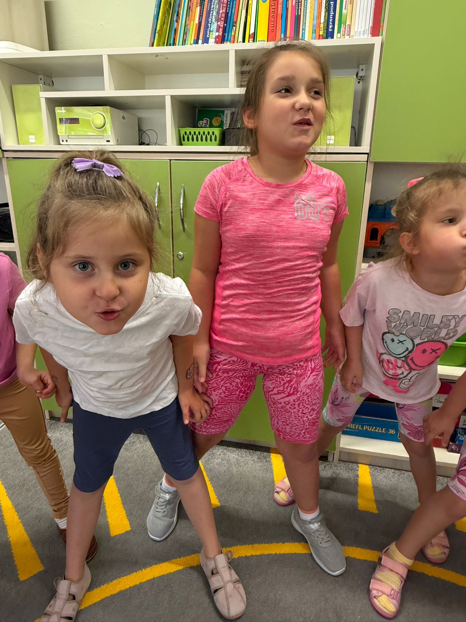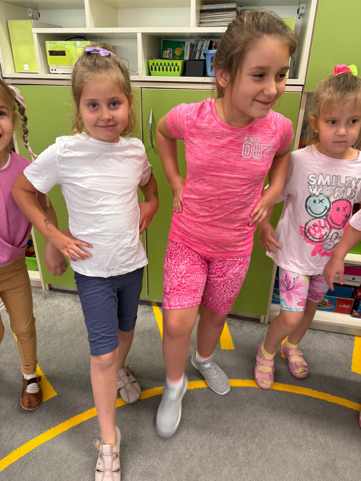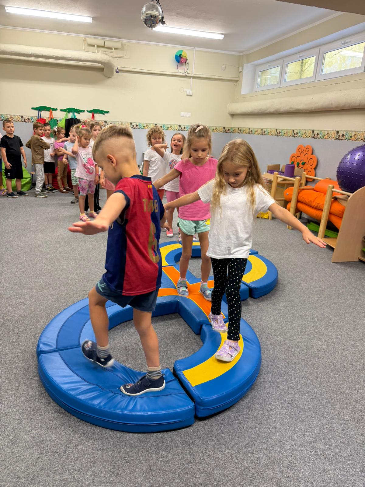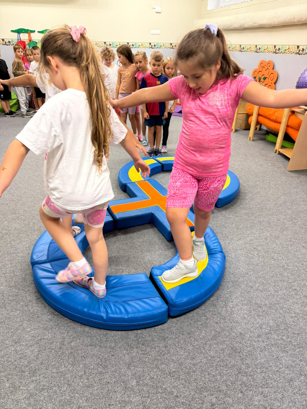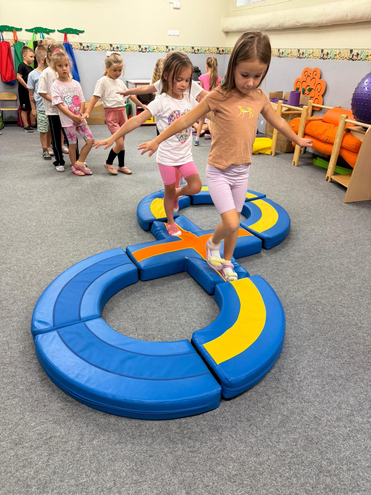 Od czterech lat w naszej grupie z powodzeniem stosujemy metodę Paula Dennisona, łącząc ruch i aktywność fizyczną z nauką. Na początku dzieci w wieku czterech lat uczyły się podstawowych ćwiczeń integrujących półkule mózgu, a obecnie, jako sześciolatkowie, kontynuują te działania, rozwijając, koncentrację i umiejętności poznawcze. Celem metody jest wspieranie integracji obu półkul mózgowych, poprawa koordynacji i równowagi, rozwijanie umiejętności motorycznych i koncentracji, wspomaganie procesu uczenia się i zapamiętywania, budowanie pewności siebie i pozytywnego nastawienia do nauki. Dzieci, dzięki regularnym ćwiczeniom, stają się bardziej skoncentrowane, lepiej radzą sobie z zadaniami wymagającymi precyzji i kreatywności, a także czerpią radość z nauki i zabawy. Dzięki tej metodzie dzieciom łatwiej jest osiągnąć dojrzałość szkolną, co pozytywnie wpływa na ich gotowość do nauki w przyszłości.