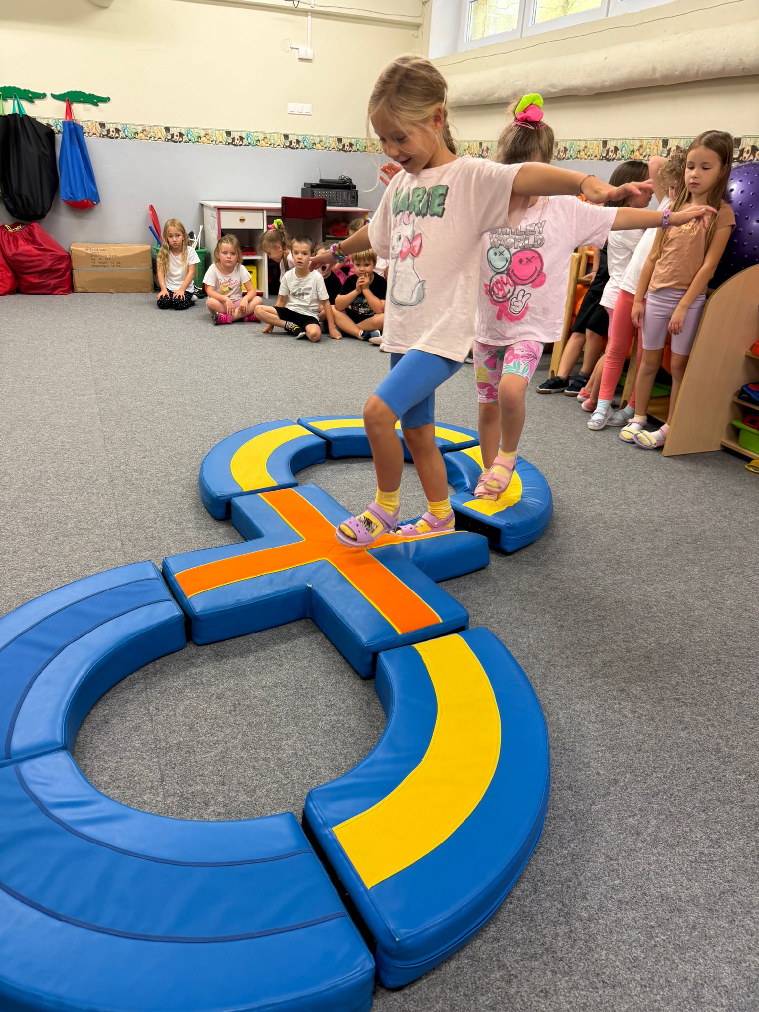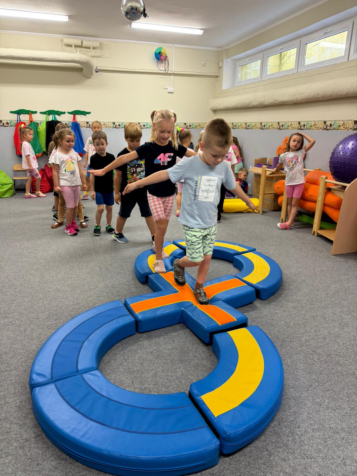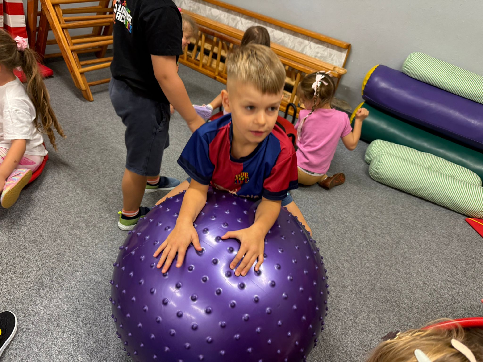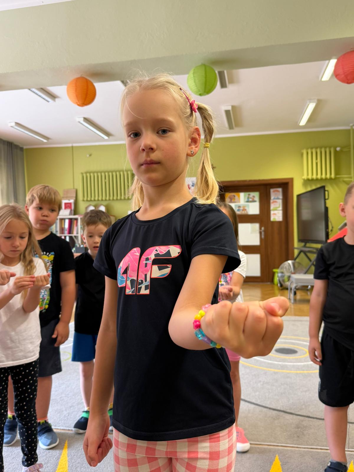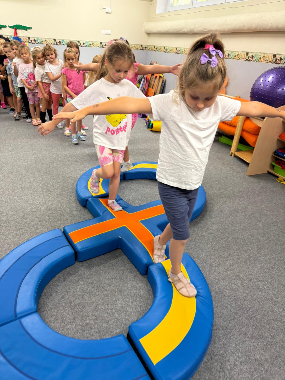 Od czterech lat w naszej grupie z powodzeniem stosujemy metodę Paula Dennisona, łącząc ruch i aktywność fizyczną z nauką. Na początku dzieci w wieku czterech lat uczyły się podstawowych ćwiczeń integrujących półkule mózgu, a obecnie, jako sześciolatkowie, kontynuują te działania, rozwijając, koncentrację i umiejętności poznawcze. Celem metody jest wspieranie integracji obu półkul mózgowych, poprawa koordynacji i równowagi, rozwijanie umiejętności motorycznych i koncentracji, wspomaganie procesu uczenia się i zapamiętywania, budowanie pewności siebie i pozytywnego nastawienia do nauki. Dzieci, dzięki regularnym ćwiczeniom, stają się bardziej skoncentrowane, lepiej radzą sobie z zadaniami wymagającymi precyzji i kreatywności, a także czerpią radość z nauki i zabawy. Dzięki tej metodzie dzieciom łatwiej jest osiągnąć dojrzałość szkolną, co pozytywnie wpływa na ich gotowość do nauki w przyszłości.