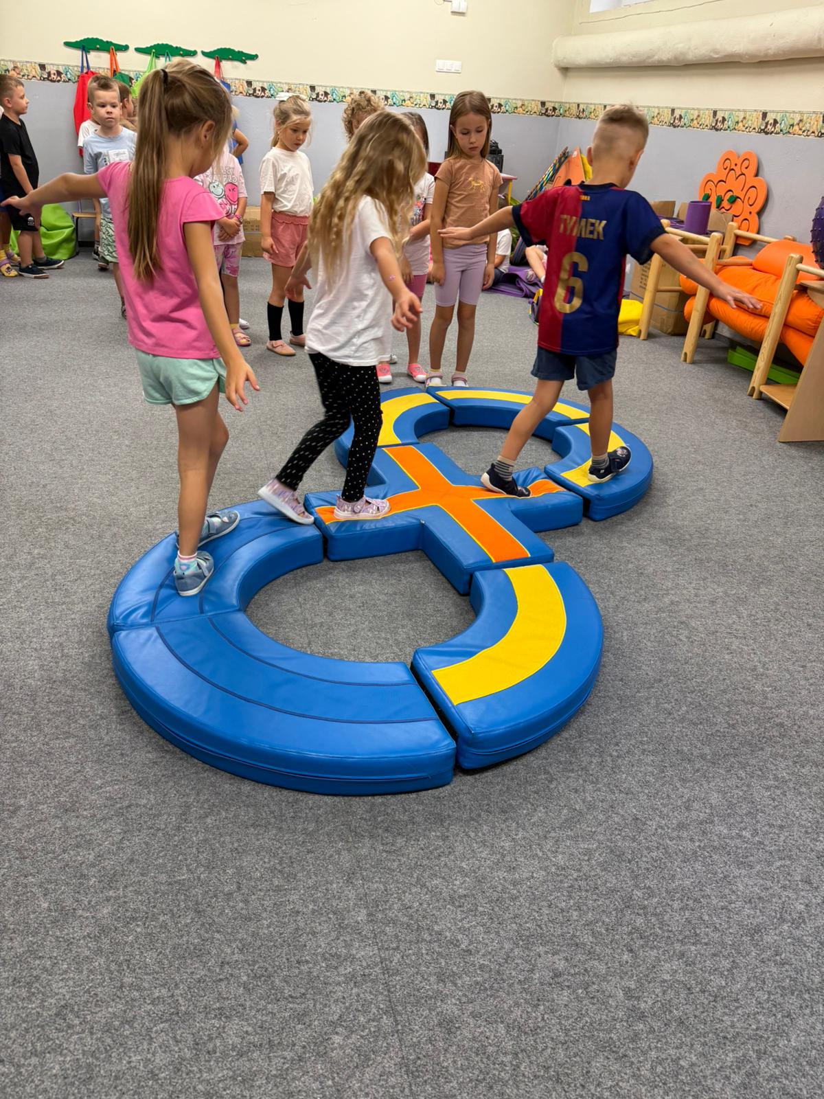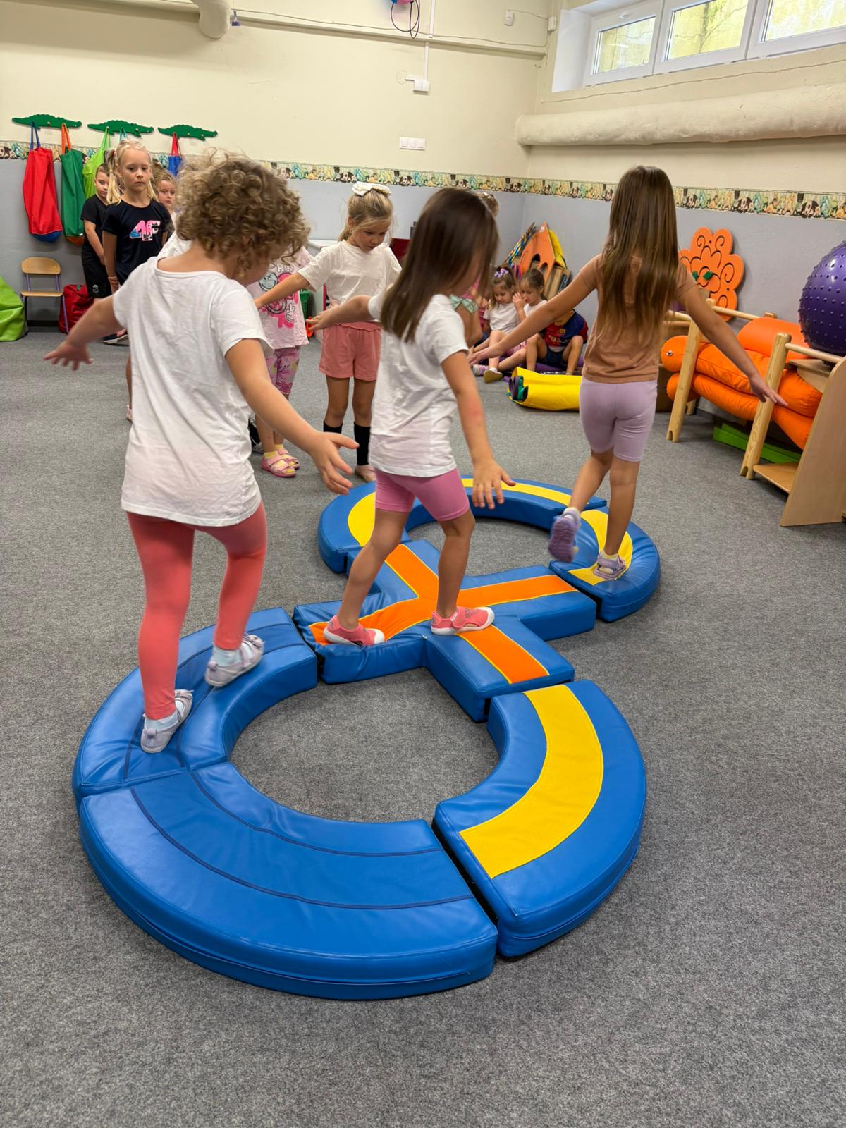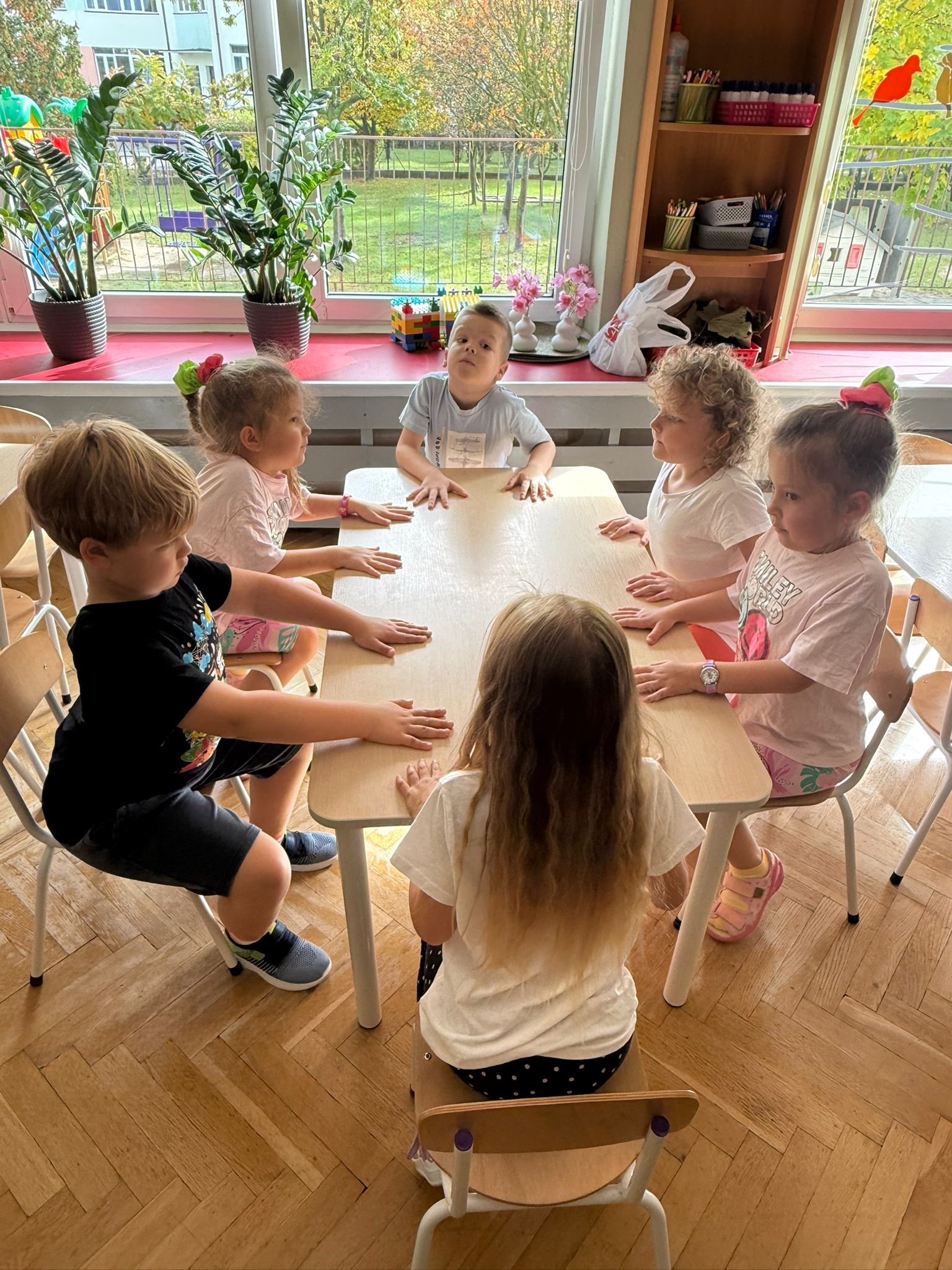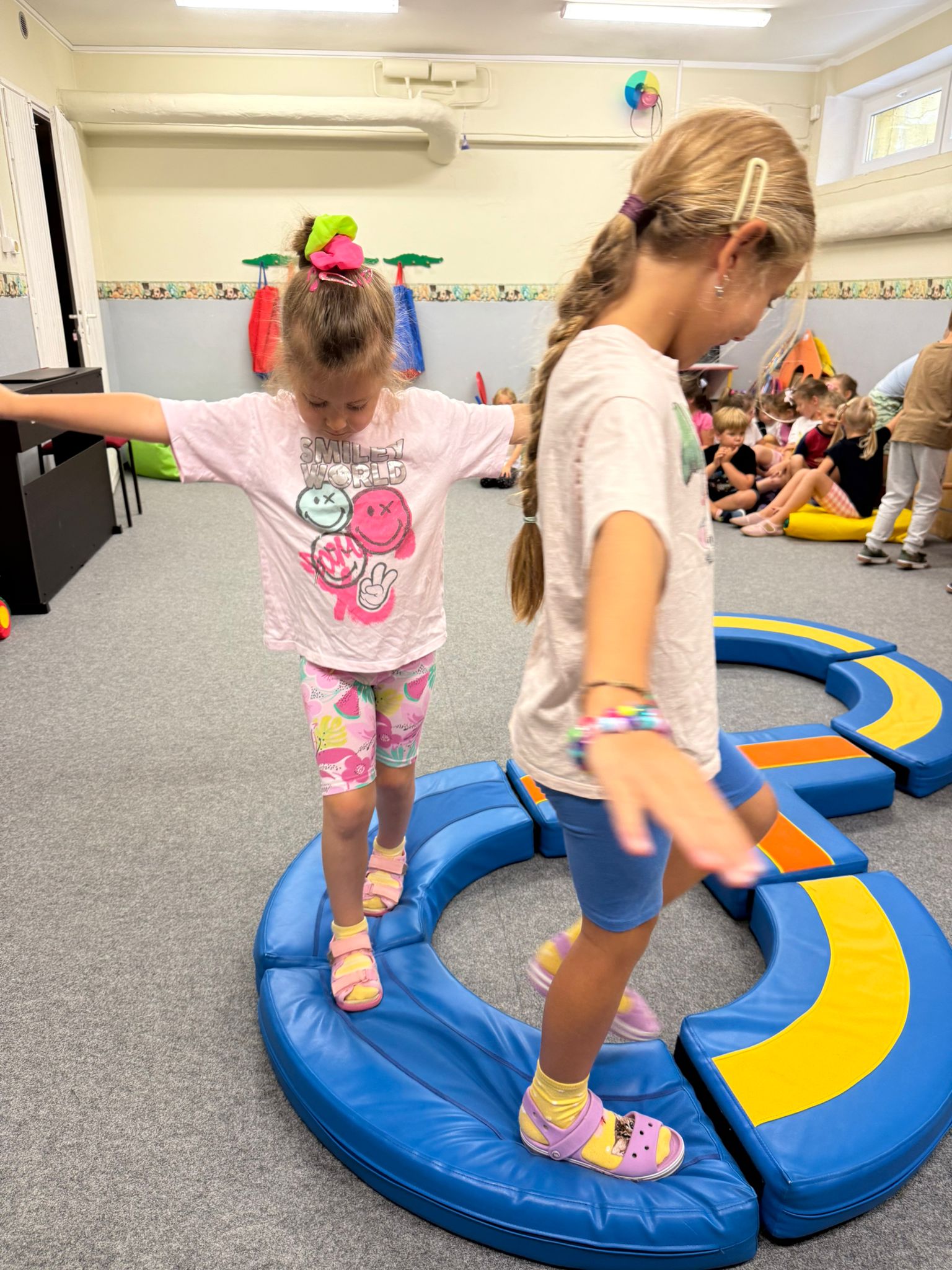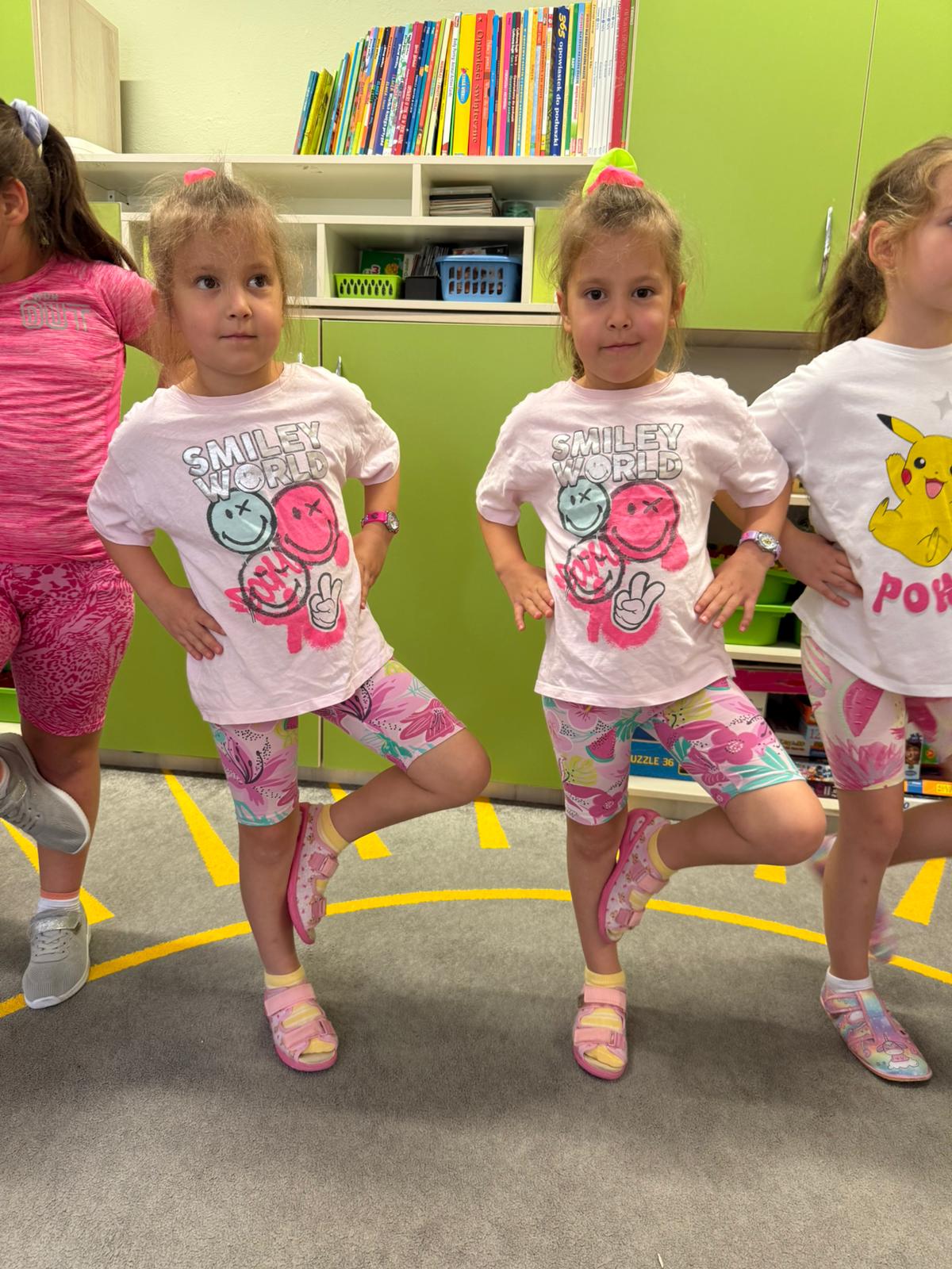 Od czterech lat w naszej grupie z powodzeniem stosujemy metodę Paula Dennisona, łącząc ruch i aktywność fizyczną z nauką. Na początku dzieci w wieku czterech lat uczyły się podstawowych ćwiczeń integrujących półkule mózgu, a obecnie, jako sześciolatkowie, kontynuują te działania, rozwijając, koncentrację i umiejętności poznawcze. Celem metody jest wspieranie integracji obu półkul mózgowych, poprawa koordynacji i równowagi, rozwijanie umiejętności motorycznych i koncentracji, wspomaganie procesu uczenia się i zapamiętywania, budowanie pewności siebie i pozytywnego nastawienia do nauki. Dzieci, dzięki regularnym ćwiczeniom, stają się bardziej skoncentrowane, lepiej radzą sobie z zadaniami wymagającymi precyzji i kreatywności, a także czerpią radość z nauki i zabawy. Dzięki tej metodzie dzieciom łatwiej jest osiągnąć dojrzałość szkolną, co pozytywnie wpływa na ich gotowość do nauki w przyszłości.