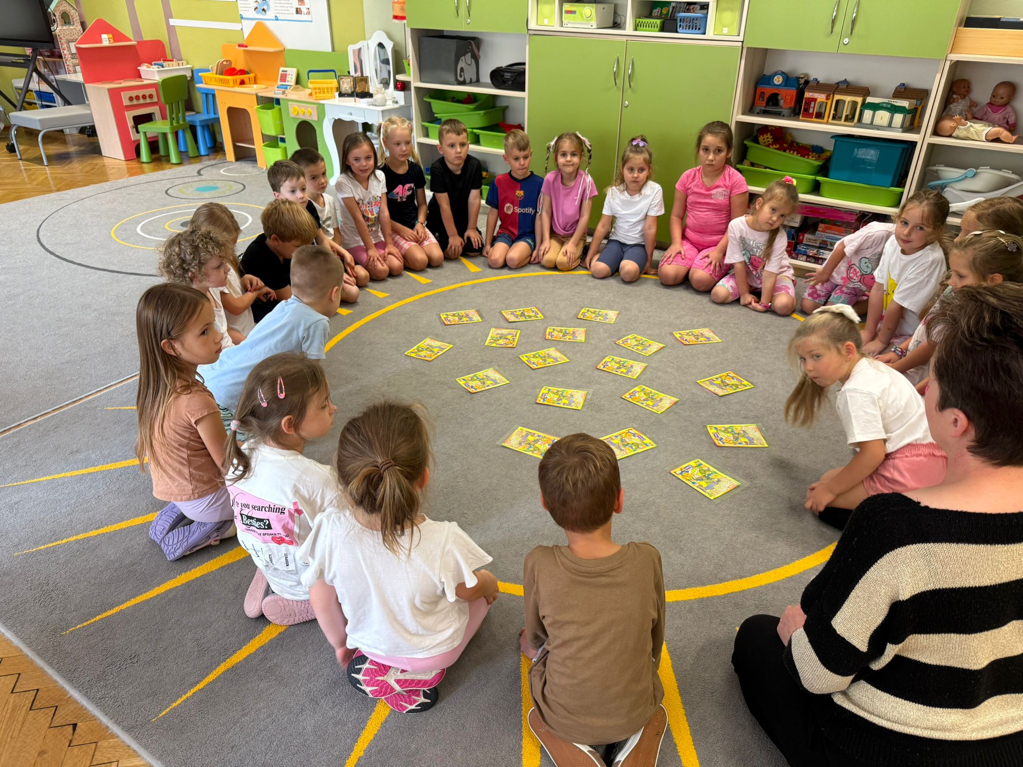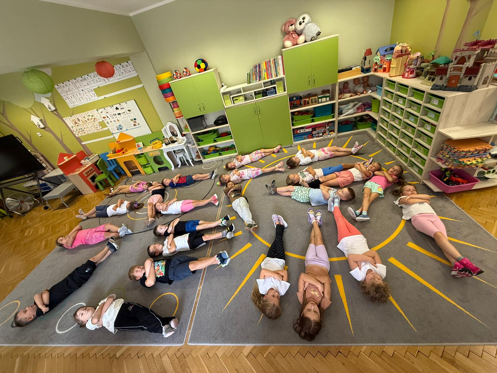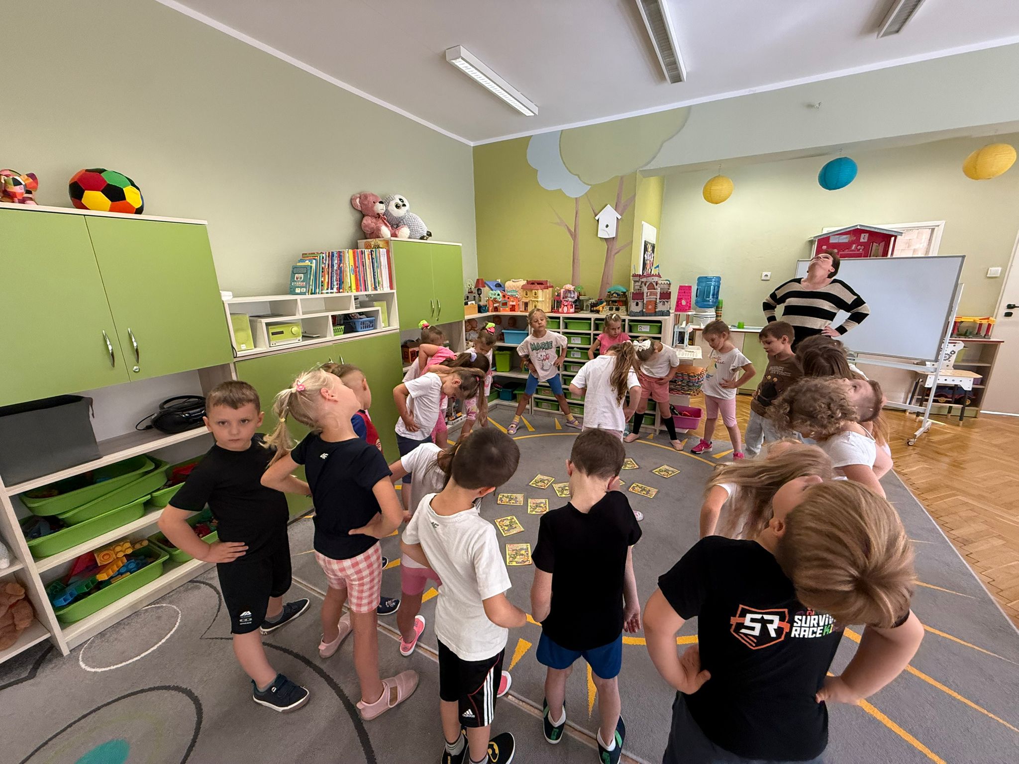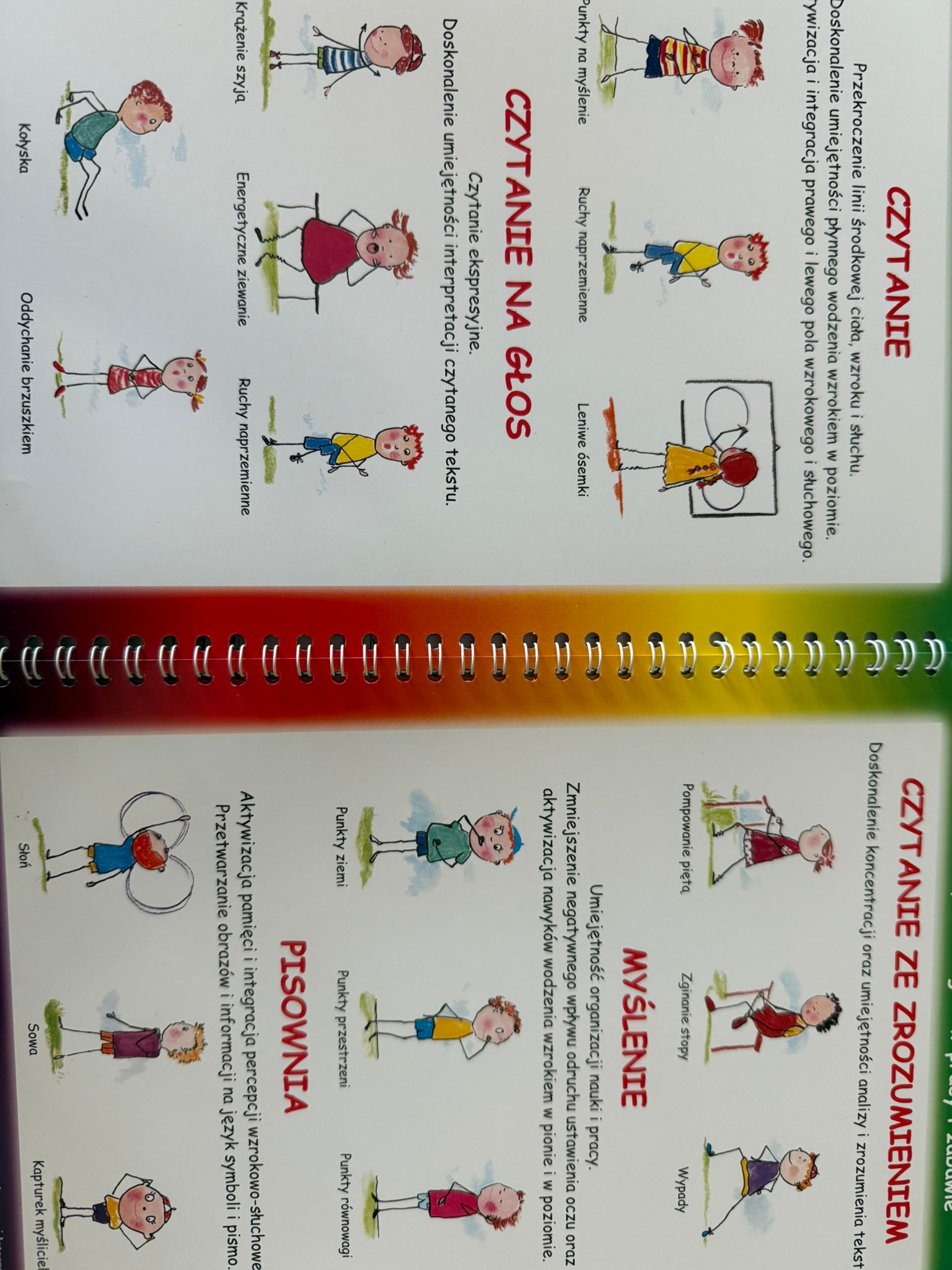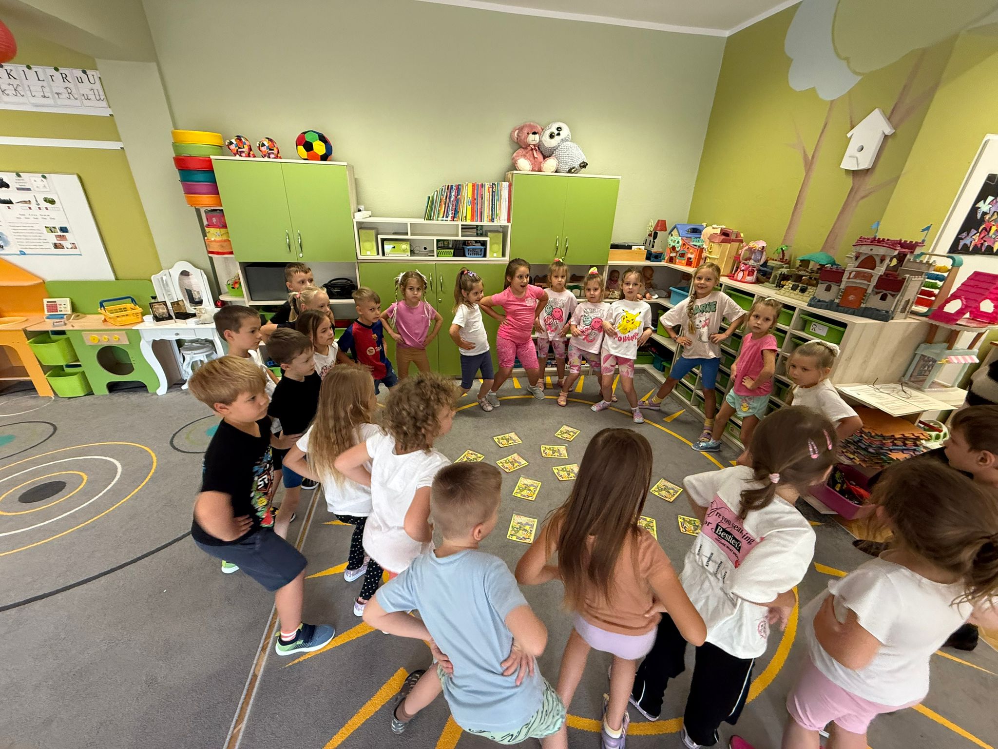 Od czterech lat w naszej grupie z powodzeniem stosujemy metodę Paula Dennisona, łącząc ruch i aktywność fizyczną z nauką. Na początku dzieci w wieku czterech lat uczyły się podstawowych ćwiczeń integrujących półkule mózgu, a obecnie, jako sześciolatkowie, kontynuują te działania, rozwijając, koncentrację i umiejętności poznawcze. Celem metody jest wspieranie integracji obu półkul mózgowych, poprawa koordynacji i równowagi, rozwijanie umiejętności motorycznych i koncentracji, wspomaganie procesu uczenia się i zapamiętywania, budowanie pewności siebie i pozytywnego nastawienia do nauki. Dzieci, dzięki regularnym ćwiczeniom, stają się bardziej skoncentrowane, lepiej radzą sobie z zadaniami wymagającymi precyzji i kreatywności, a także czerpią radość z nauki i zabawy. Dzięki tej metodzie dzieciom łatwiej jest osiągnąć dojrzałość szkolną, co pozytywnie wpływa na ich gotowość do nauki w przyszłości.