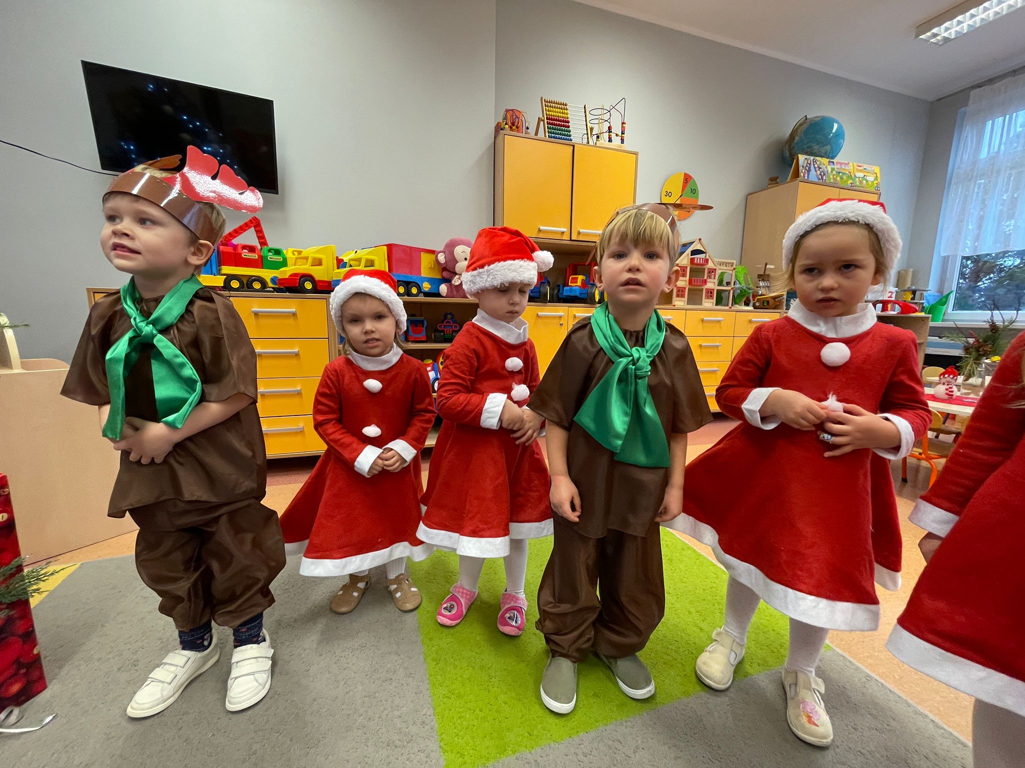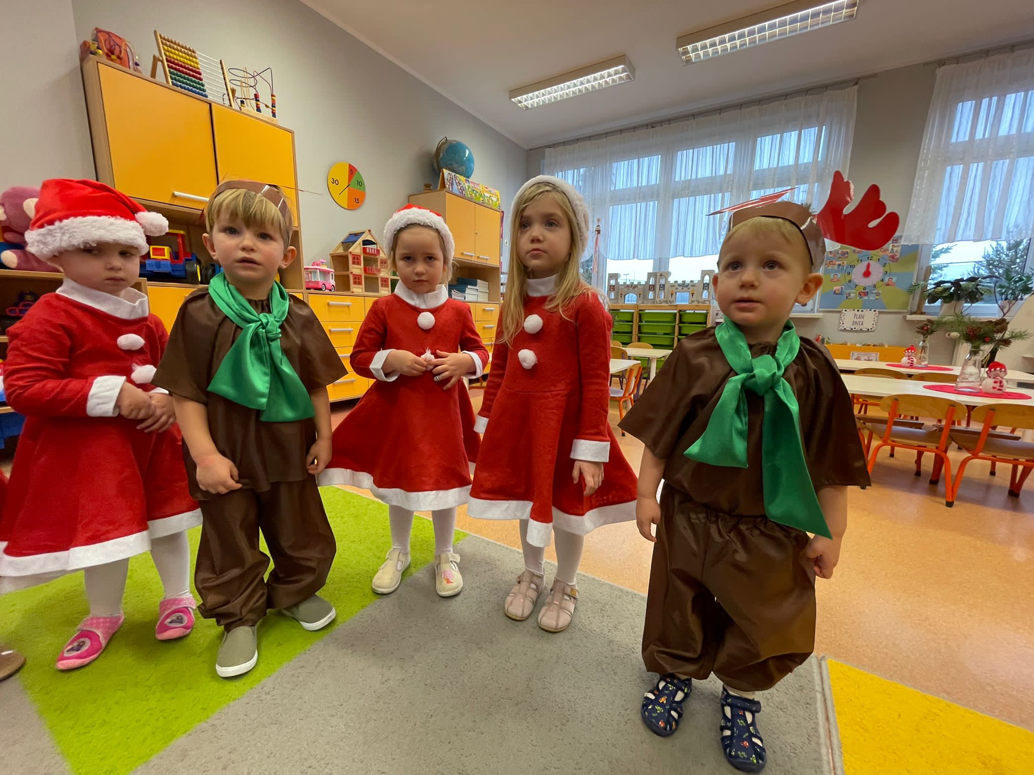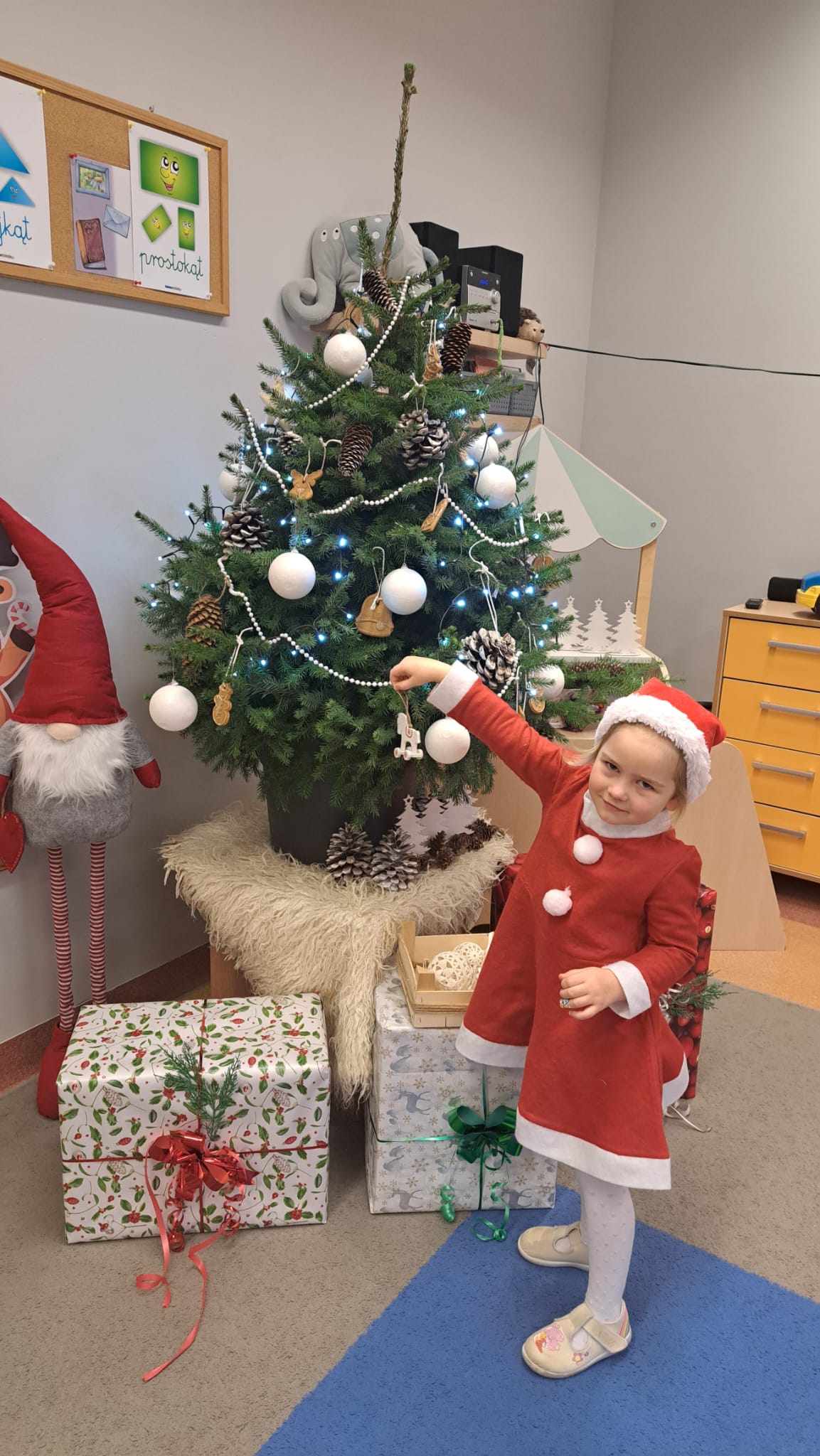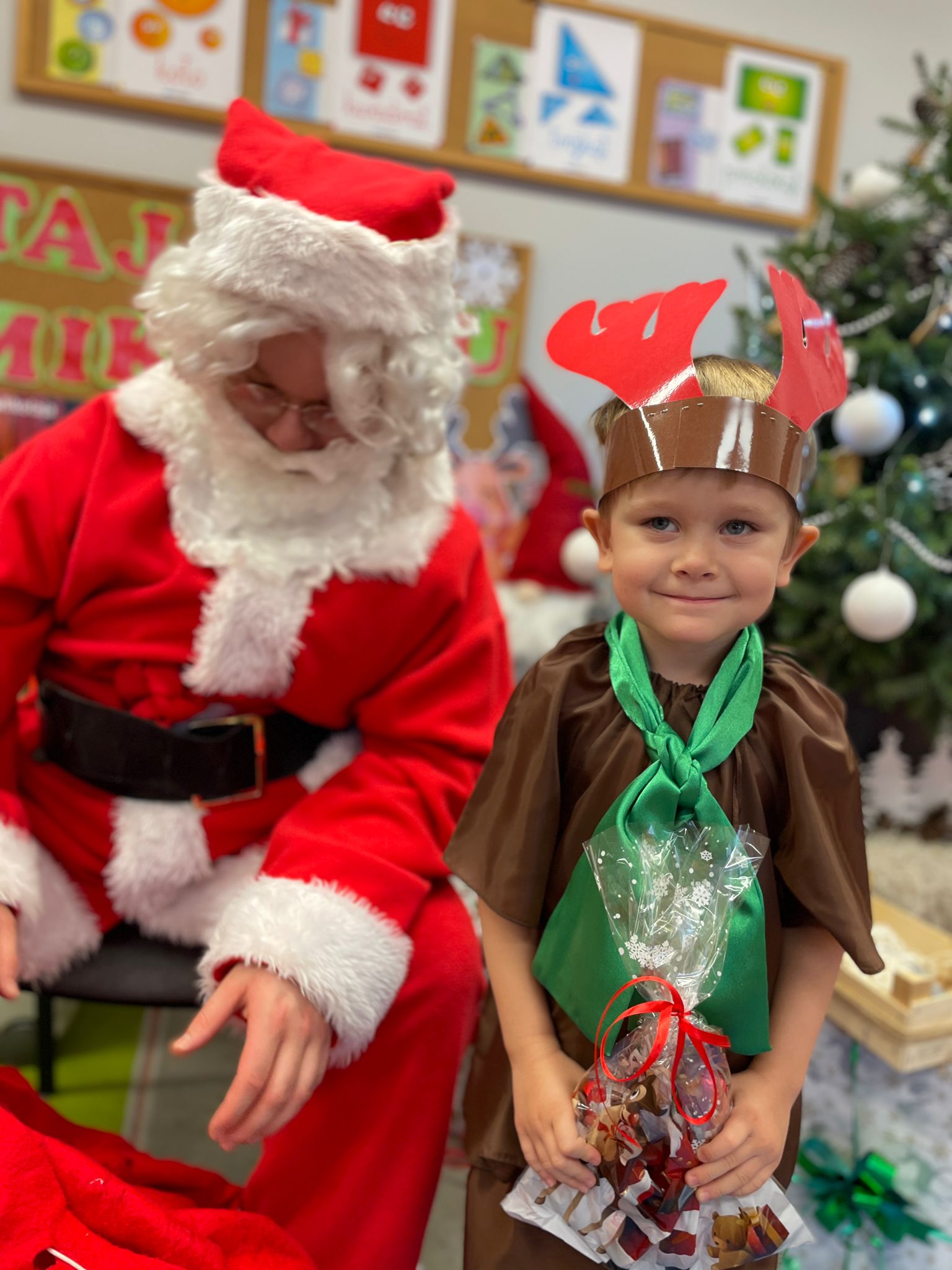 Dziś maluszki z niecierpliwością oczekiwały na wizytę Świętego Mikołaja w naszej przedszkolnej sali. Wszystkie dzieci już od samego rana spoglądały w okno, nasłuchiwały „Mikołajowych” dzwoneczków i radosną piosenką zapraszały Mikołaja. Wyczarowały także świąteczny klimat i wspólnie ubrały choinkę, przy której później wesoło się bawiły. Święty Mikołaj nie zawiódł i i nie kazał długo na siebie czekać… Wszedł ze swoim tubalnym „Ho, Ho, Ho „…I z pewnością też był bardzo zadowolony ze spotkania, bo uśmiech nie znikał z jego twarzy. Dzieci długo wspominały chwile spędzone z Mikołajem, z dużym entuzjazmem rozpakowywały prezenty oraz zerkały przez okno z nadzieją, że jeszcze raz zobaczą naszego gościa i pomachają mu na pożegnanie.