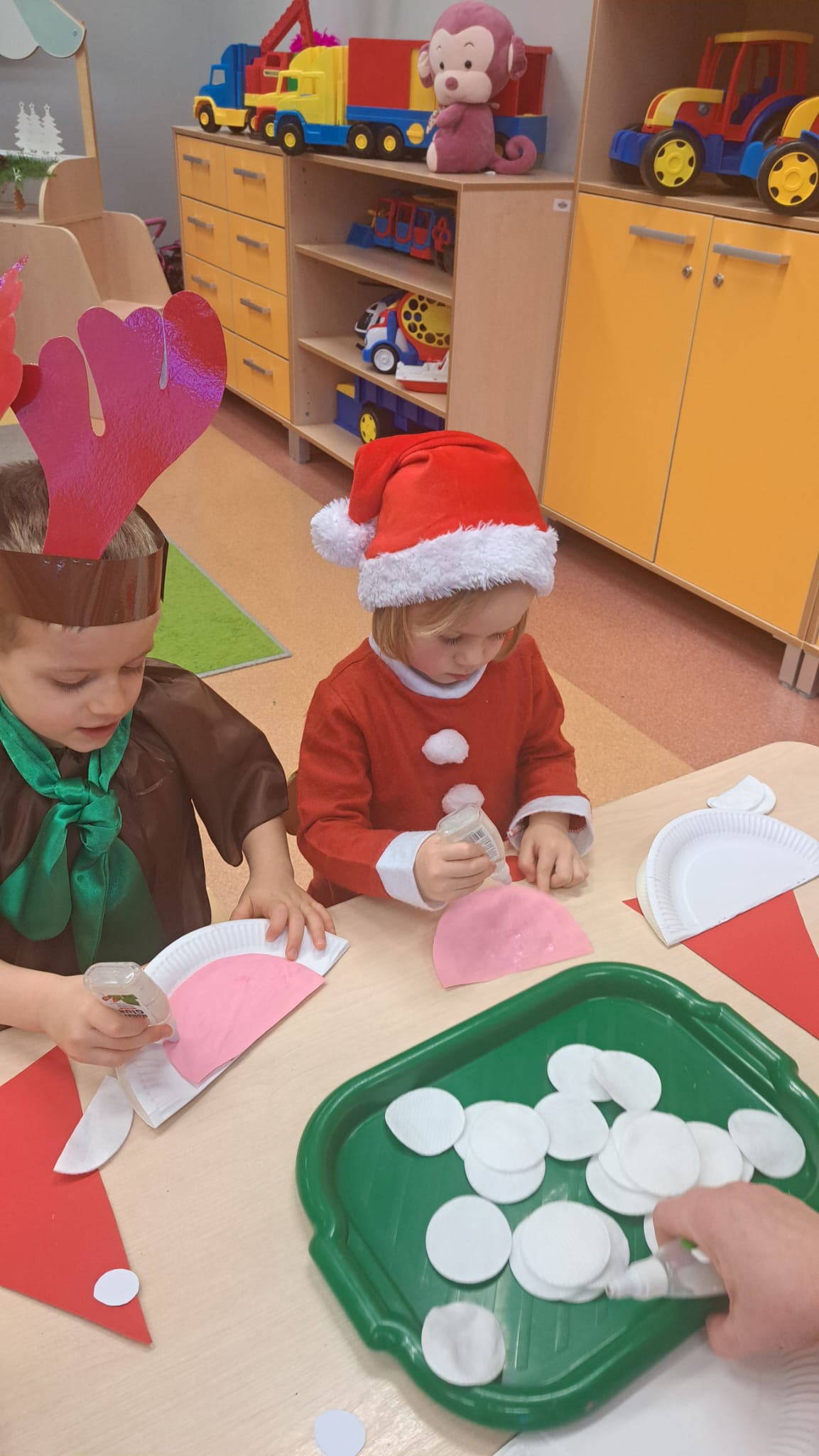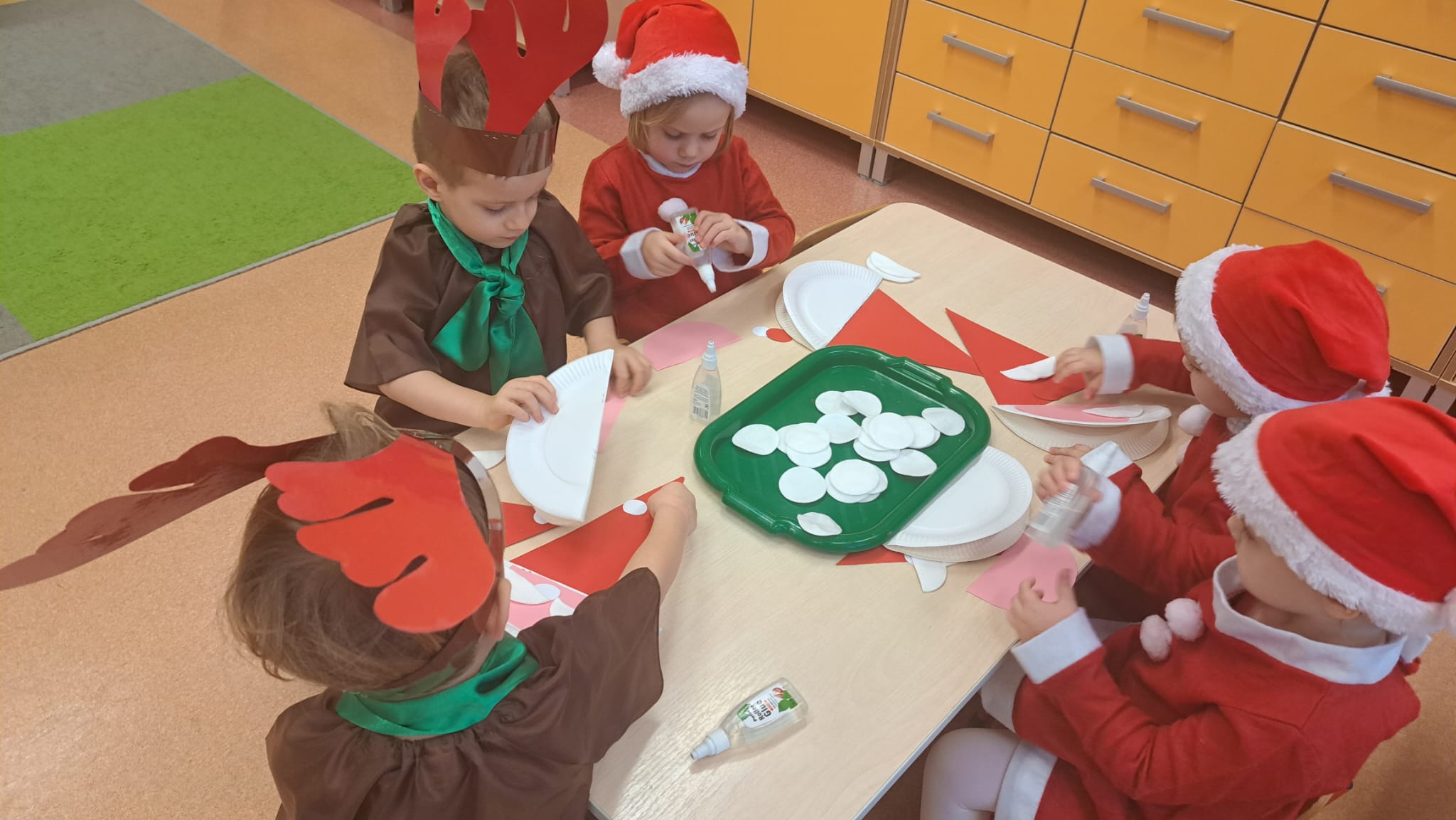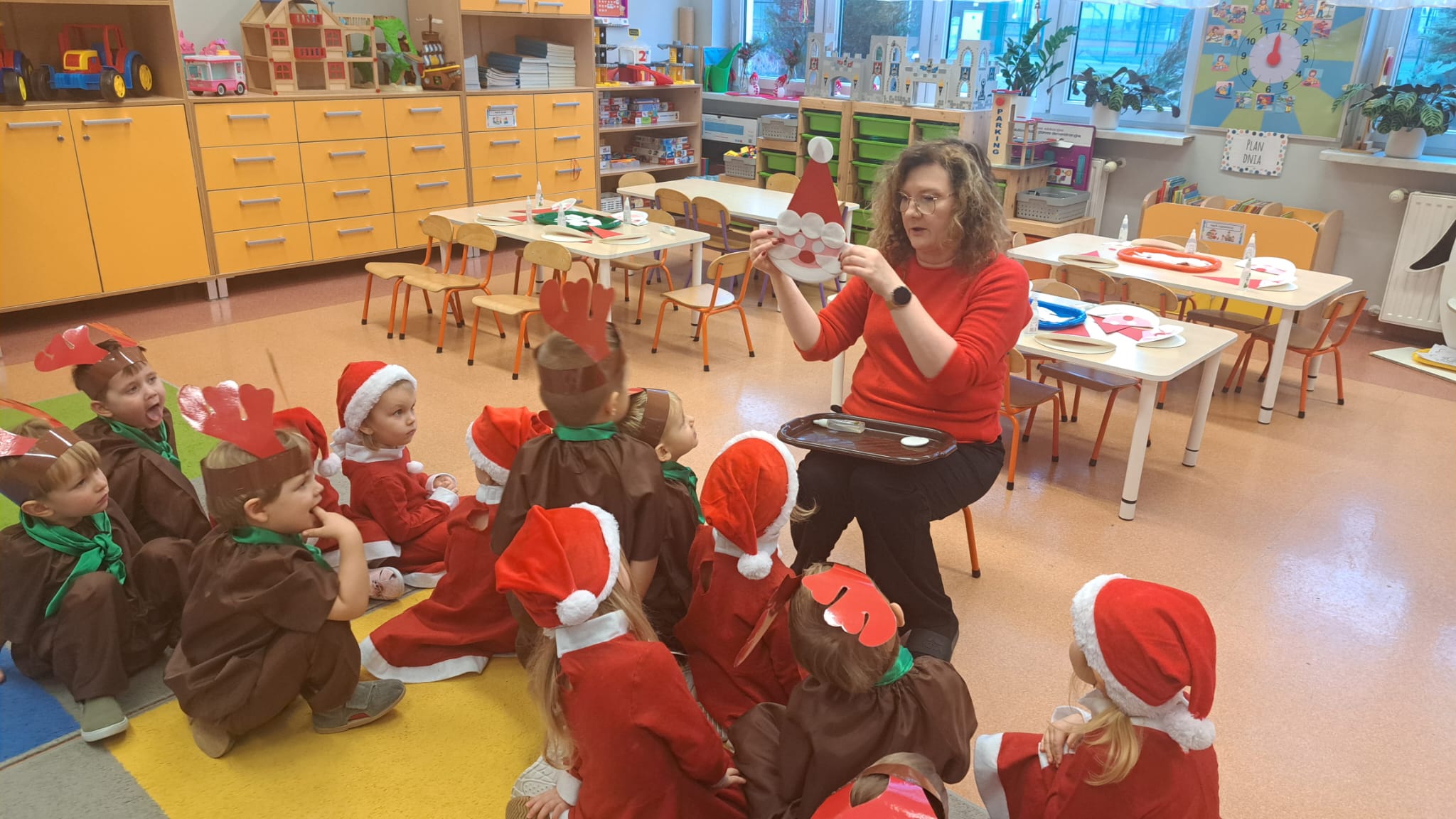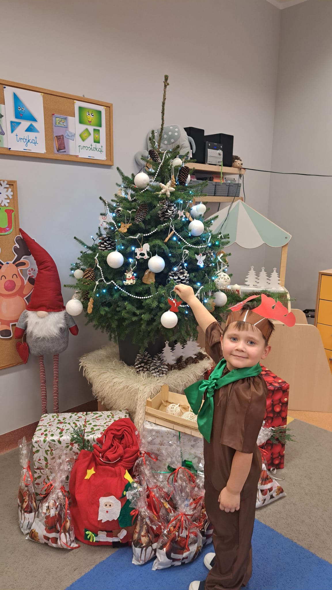 Dziś maluszki z niecierpliwością oczekiwały na wizytę Świętego Mikołaja w naszej przedszkolnej sali. Wszystkie dzieci już od samego rana spoglądały w okno, nasłuchiwały „Mikołajowych” dzwoneczków i radosną piosenką zapraszały Mikołaja. Wyczarowały także świąteczny klimat i wspólnie ubrały choinkę, przy której później wesoło się bawiły. Święty Mikołaj nie zawiódł i i nie kazał długo na siebie czekać… Wszedł ze swoim tubalnym „Ho, Ho, Ho „…I z pewnością też był bardzo zadowolony ze spotkania, bo uśmiech nie znikał z jego twarzy. Dzieci długo wspominały chwile spędzone z Mikołajem, z dużym entuzjazmem rozpakowywały prezenty oraz zerkały przez okno z nadzieją, że jeszcze raz zobaczą naszego gościa i pomachają mu na pożegnanie.
