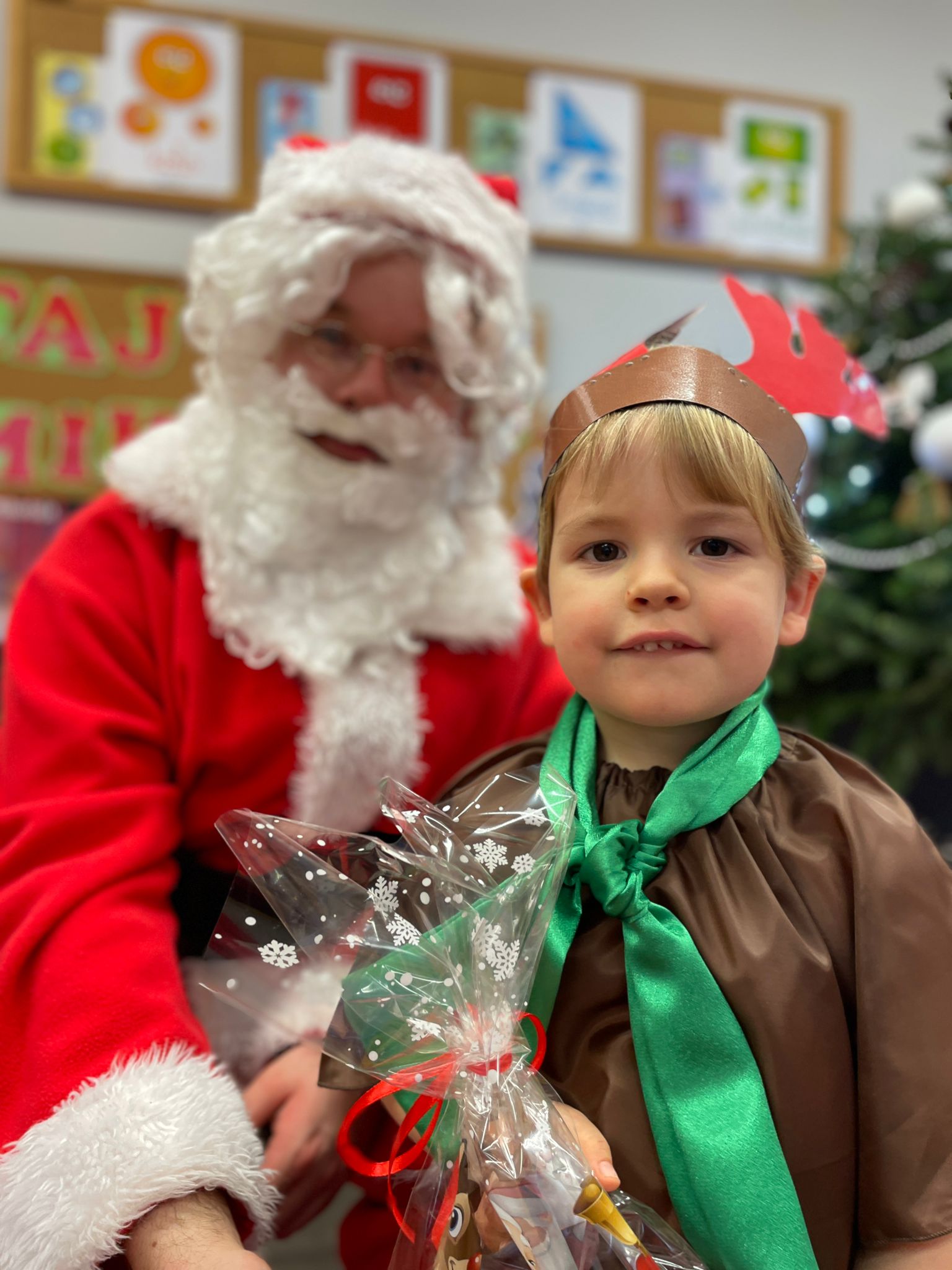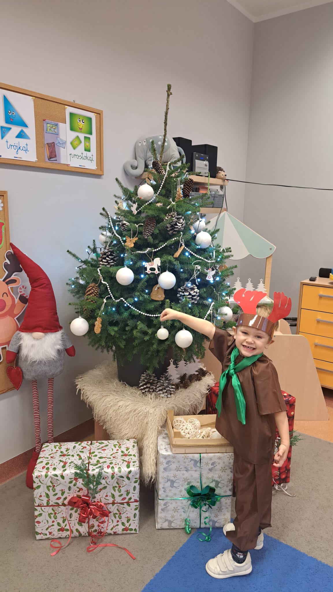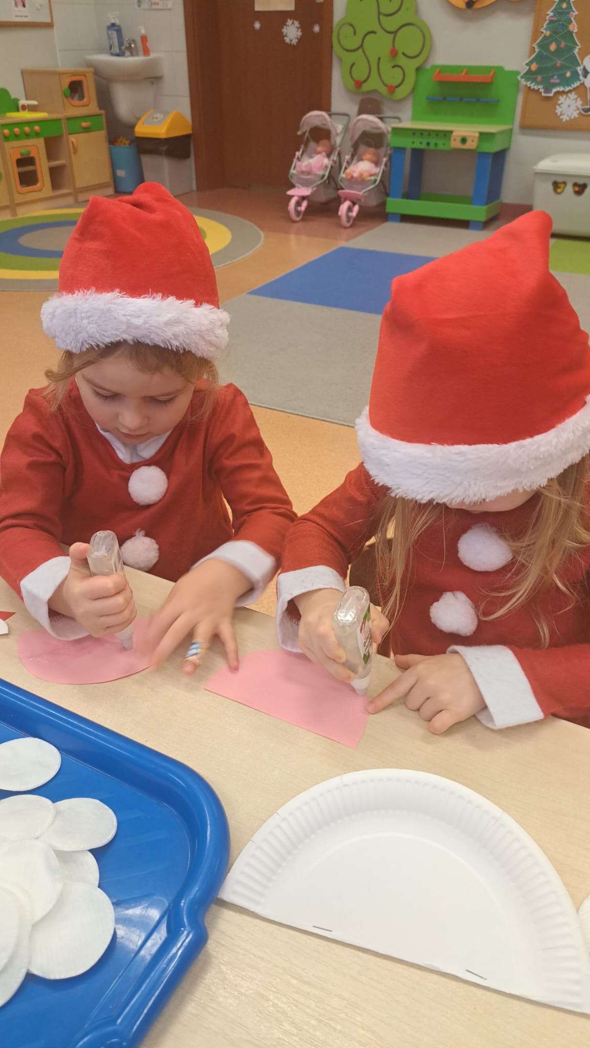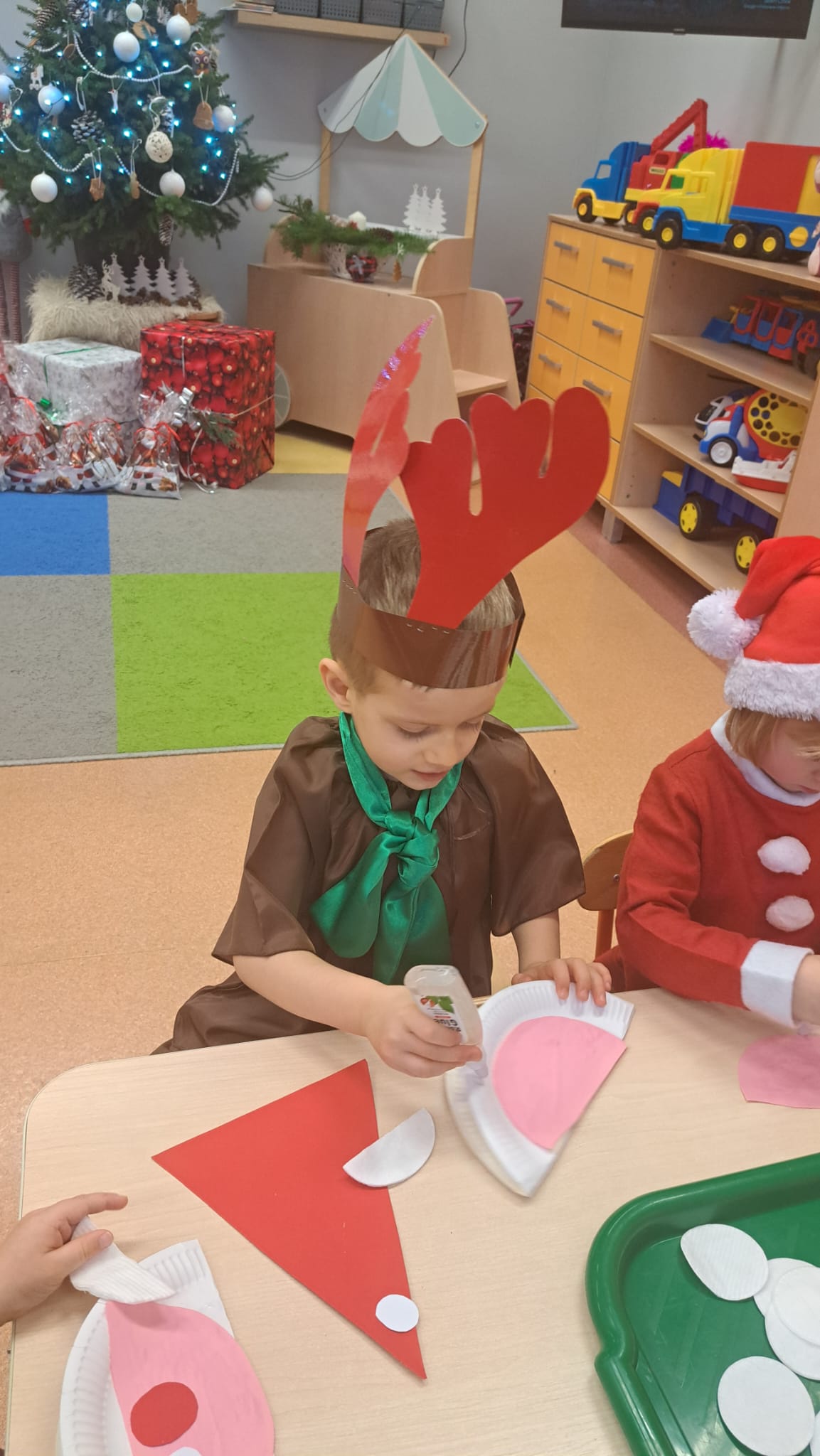 Dziś maluszki z niecierpliwością oczekiwały na wizytę Świętego Mikołaja w naszej przedszkolnej sali. Wszystkie dzieci już od samego rana spoglądały w okno, nasłuchiwały „Mikołajowych” dzwoneczków i radosną piosenką zapraszały Mikołaja. Wyczarowały także świąteczny klimat i wspólnie ubrały choinkę, przy której później wesoło się bawiły. Święty Mikołaj nie zawiódł i i nie kazał długo na siebie czekać… Wszedł ze swoim tubalnym „Ho, Ho, Ho „…I z pewnością też był bardzo zadowolony ze spotkania, bo uśmiech nie znikał z jego twarzy. Dzieci długo wspominały chwile spędzone z Mikołajem, z dużym entuzjazmem rozpakowywały prezenty oraz zerkały przez okno z nadzieją, że jeszcze raz zobaczą naszego gościa i pomachają mu na pożegnanie.