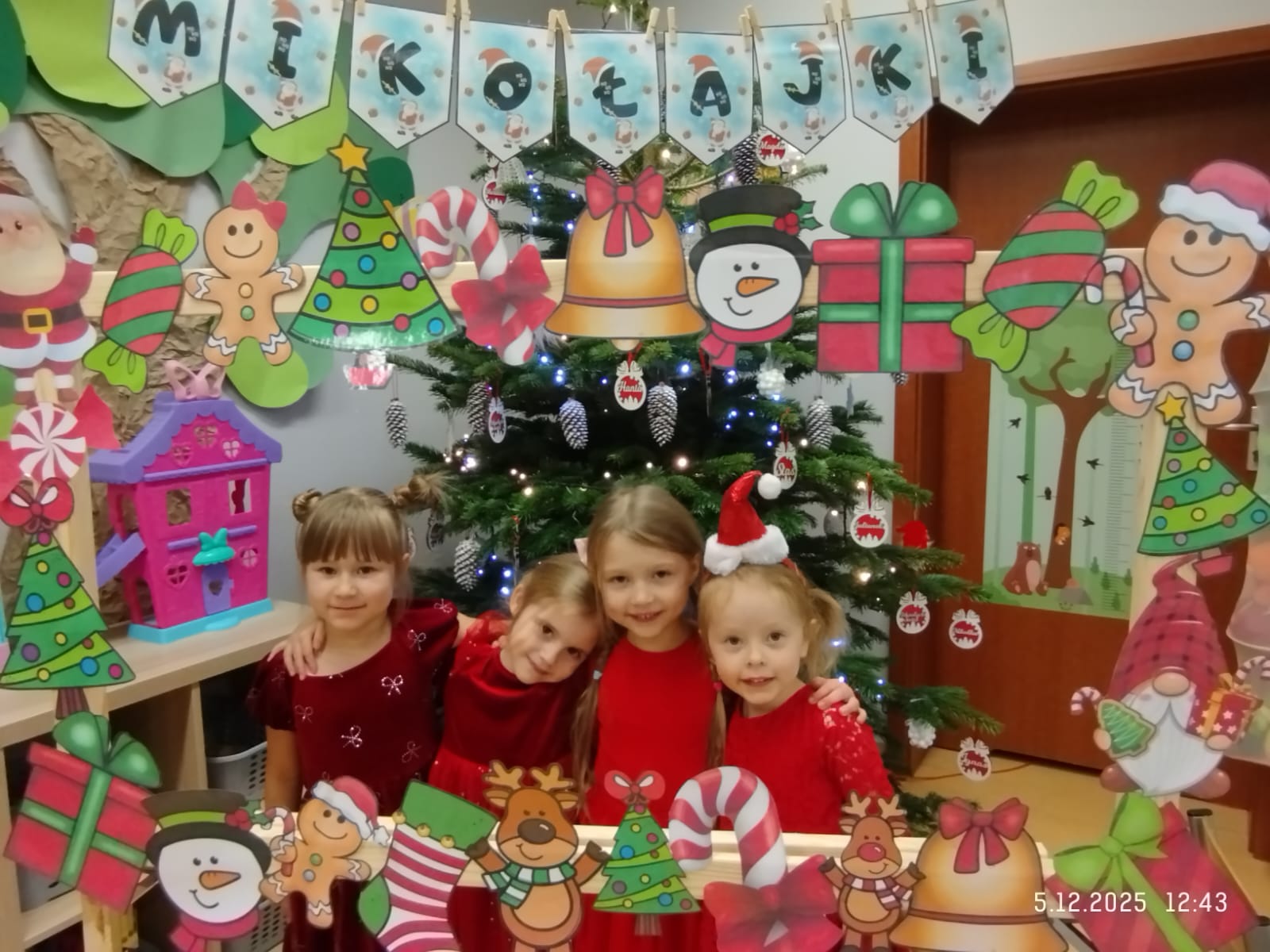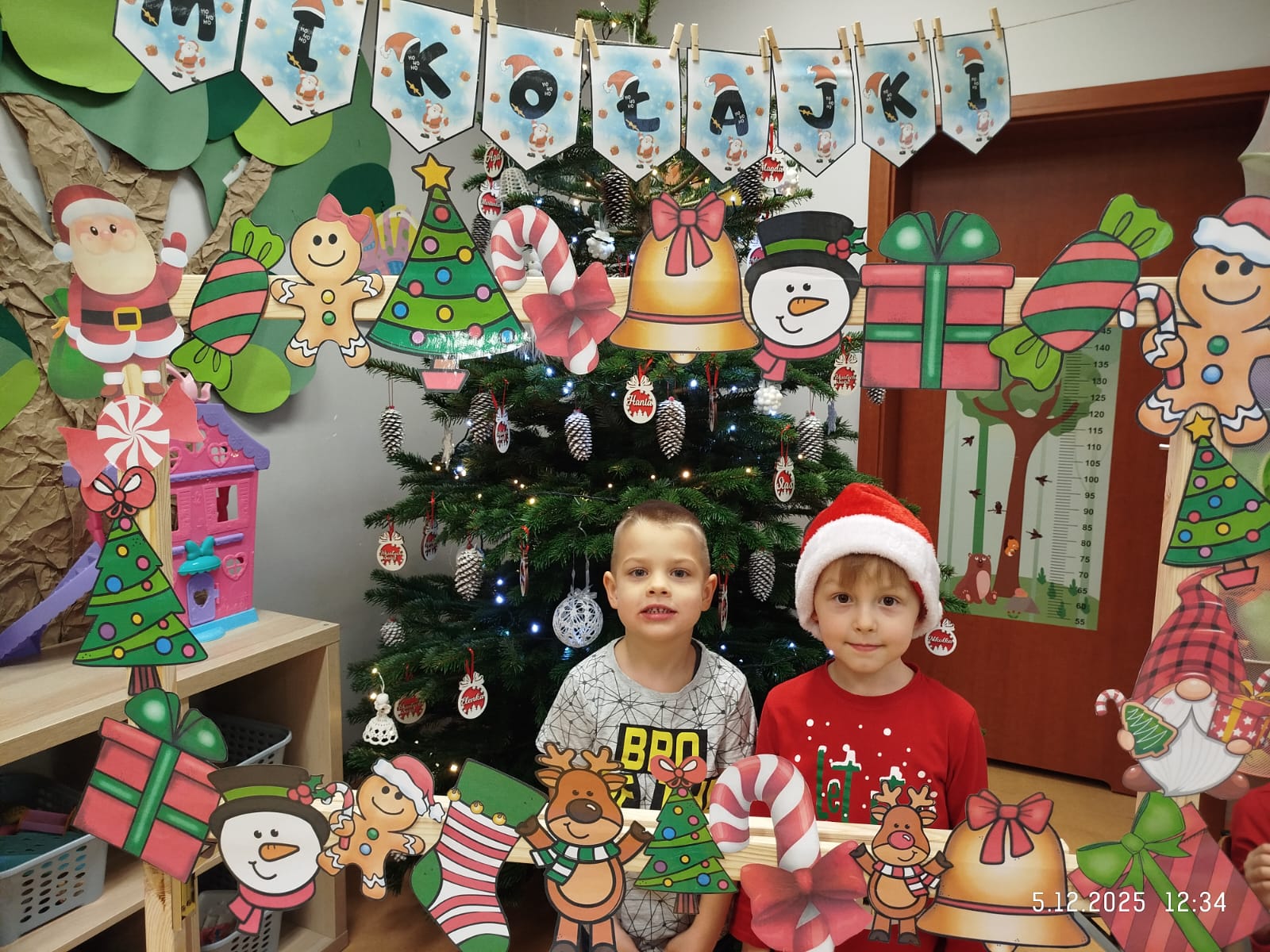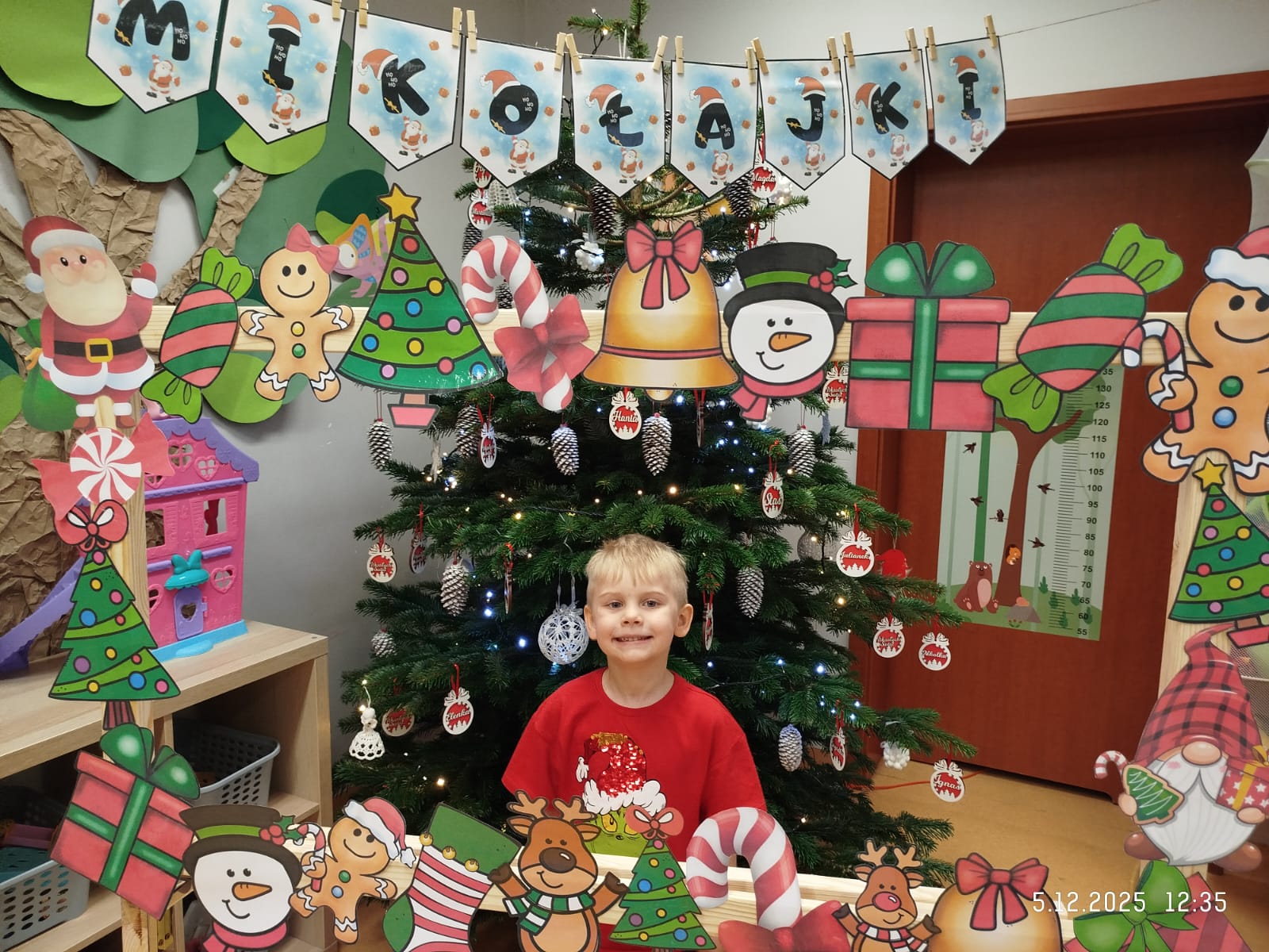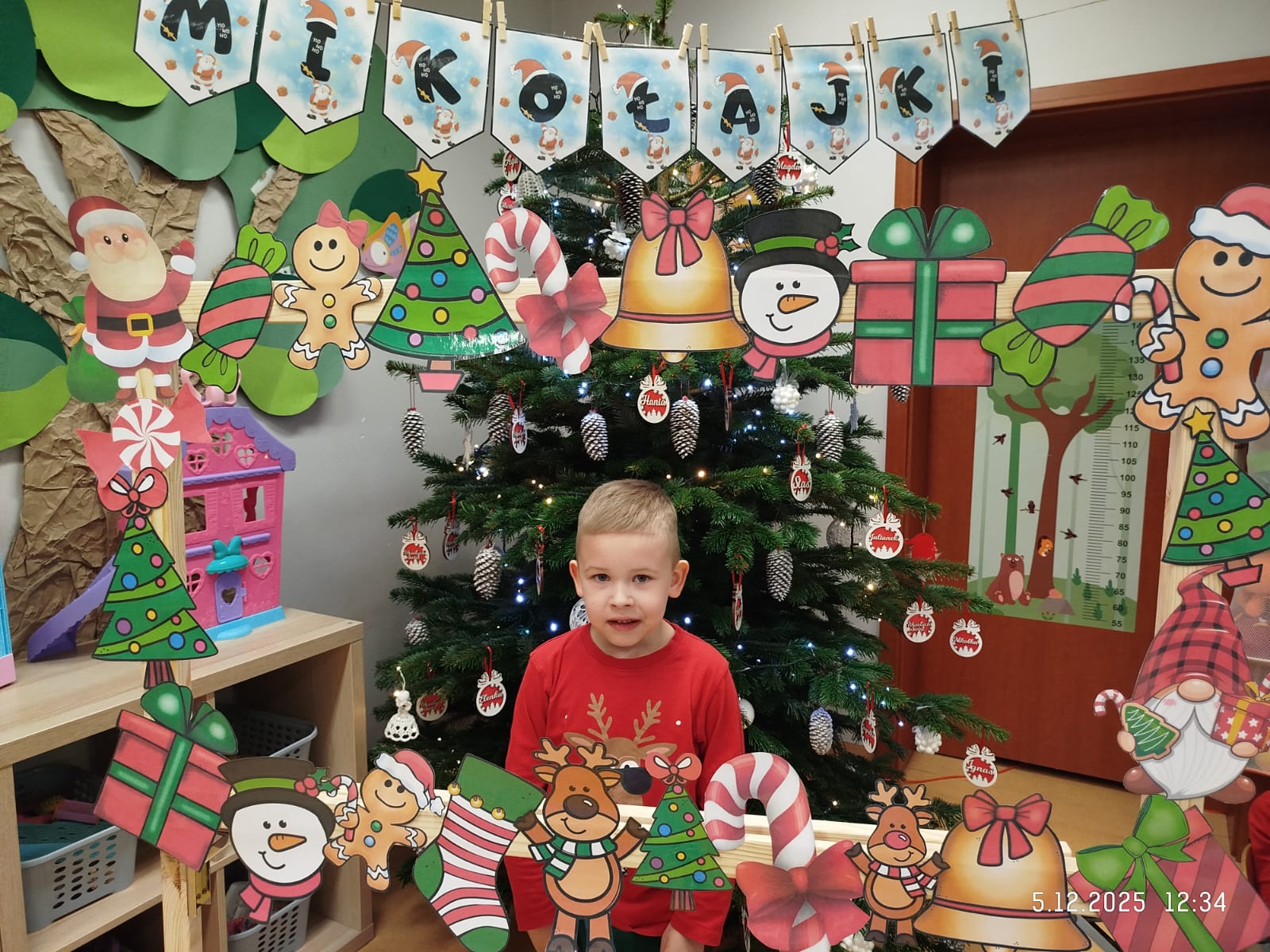 Dnia 5 grudnia nasza sala zamieniła się w czerwoną, prawdziwą krainę świątecznych przygód. Cały dzień wypełniły wesołe aktywności, które przeniosły dzieci w magiczny świat Bożego Narodzenia. Były wesołe zabawy ruchowe podczas których przedszkolaki tańczyły w rytm świątecznych melodii, a ich radość i energia wypełniły cały dzień. Była również mikołajowa praca plastyczna, słodki poczęstunek oraz świąteczna fotobudka, która sprawiła dzieciom mnóstwo radości. Kulminacyjnym punktem programu było oczywiście spotkanie ze Świętym Mikołajem, który wręczył każdemu dziecku wyjątkowy prezent. Jego przyjście poprzedził film, który wprowadził dzieci w magiczny zaczarowany nastrój. Dziękujemy wszystkim, którzy pomogli w przygotowaniu tego wyjątkowego dnia! Dzień ten bowiem na długo pozostanie w naszej pamięci jako czas pełen ciepła, radości i wspólnego świętowania.