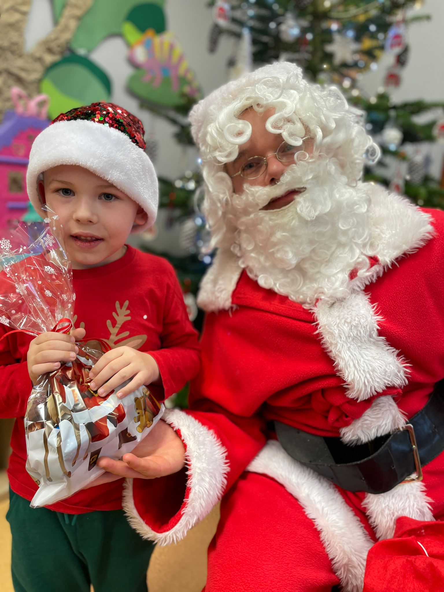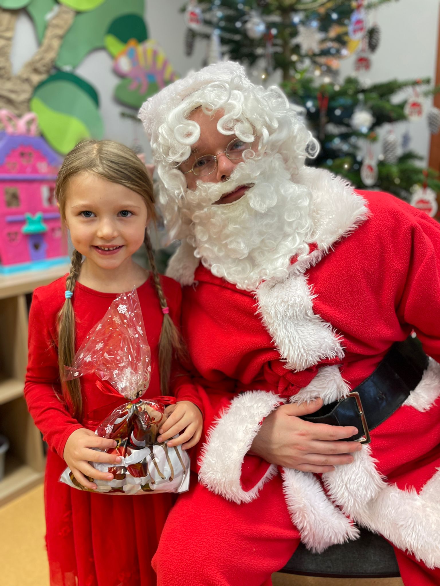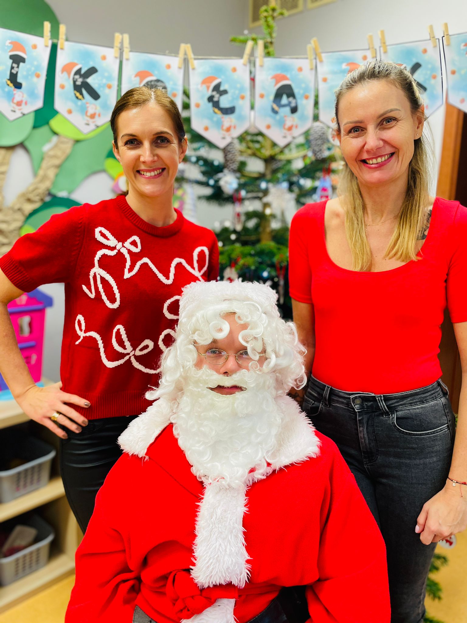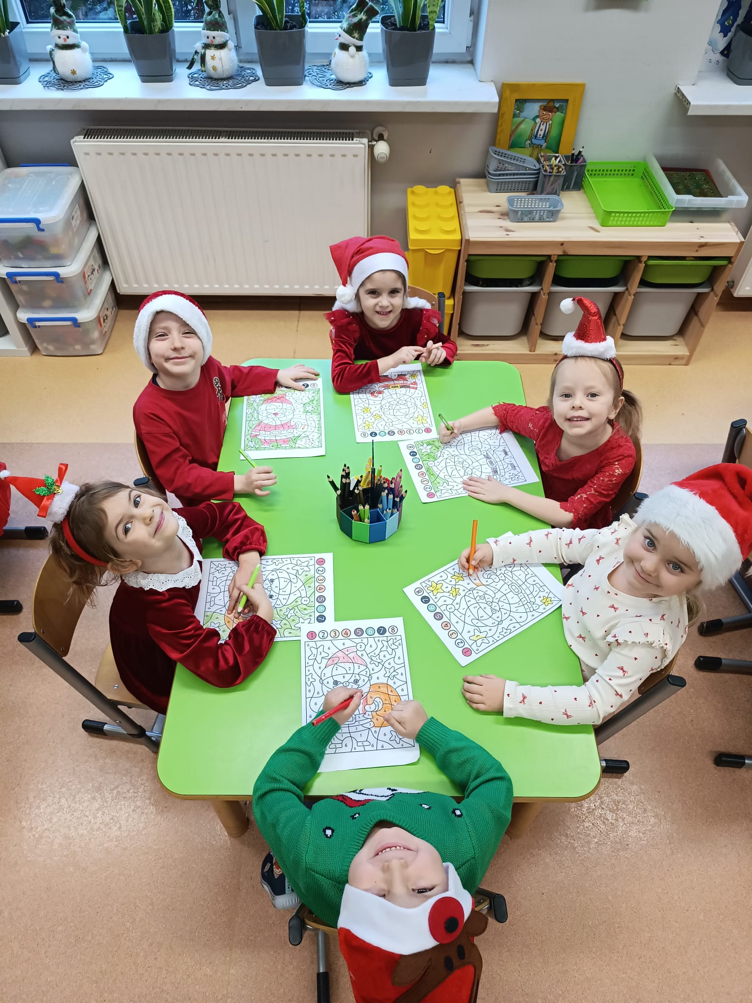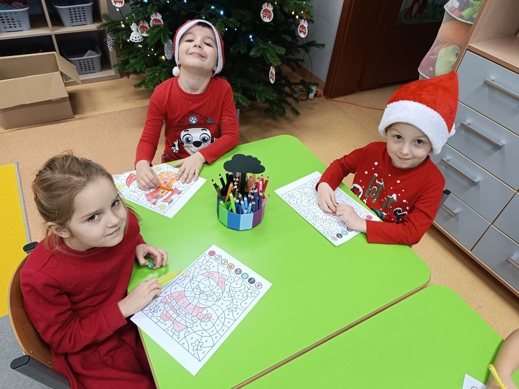 Dnia 5 grudnia nasza sala zamieniła się w czerwoną, prawdziwą krainę świątecznych przygód. Cały dzień wypełniły wesołe aktywności, które przeniosły dzieci w magiczny świat Bożego Narodzenia. Były wesołe zabawy ruchowe podczas których przedszkolaki tańczyły w rytm świątecznych melodii, a ich radość i energia wypełniły cały dzień. Była również mikołajowa praca plastyczna, słodki poczęstunek oraz świąteczna fotobudka, która sprawiła dzieciom mnóstwo radości. Kulminacyjnym punktem programu było oczywiście spotkanie ze Świętym Mikołajem, który wręczył każdemu dziecku wyjątkowy prezent. Jego przyjście poprzedził film, który wprowadził dzieci w magiczny zaczarowany nastrój. Dziękujemy wszystkim, którzy pomogli w przygotowaniu tego wyjątkowego dnia! Dzień ten bowiem na długo pozostanie w naszej pamięci jako czas pełen ciepła, radości i wspólnego świętowania.