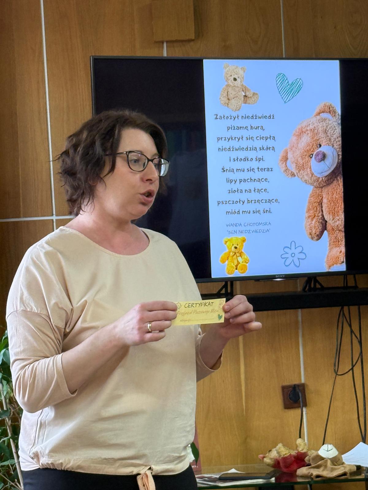 Z okazji Światowego Dnia Pluszowego Misia, dzieci z grupy czwartej i piątej udały się do Filii „Medycznej” Miejskiej Biblioteki Publicznej im. Zofii Urbanowskiej, mieszczącej się w Wojewódzkim Szpitalu Zespolonym w Koninie. To wyjątkowe wydarzenie pozwoliło przedszkolakom przenieść się w świat misiów i ich fascynujących historii. Celem wizyty było nie tylko świętowanie tego wyjątkowego dnia, ale także rozwijanie wyobraźni, zachęcanie do czytelnictwa oraz integracja dzieci poprzez wspólne zabawy. Wierszyki i opowiadania były czytane w ramach kampanii społecznej „Cała Polska czyta dzieciom”, co dodatkowo wpłynęło na rozwój czytelniczych pasji najmłodszych. Podczas wizyty dzieci poznały różne rodzaje misiów, takie jak Kubuś Puchatek, Uszatek, Colargol, Yogi czy Paddington oraz zapoznały się z bogatą kolekcją książek o misiach. Uczestniczyły także w fantastycznych zabawach, które uatrakcyjniły całe wydarzenie. Po powrocie do przedszkola dzieci wspólnie ze swoimi misiami wzięły udział w zajęciach koleżeńskich podczas których przeniosły się w świat zabaw muzyczno – ruchowych, tanecznych a nawet matematycznych, co jeszcze bardziej umocniło ich entuzjazm i radość z odkrywania nowych historii.