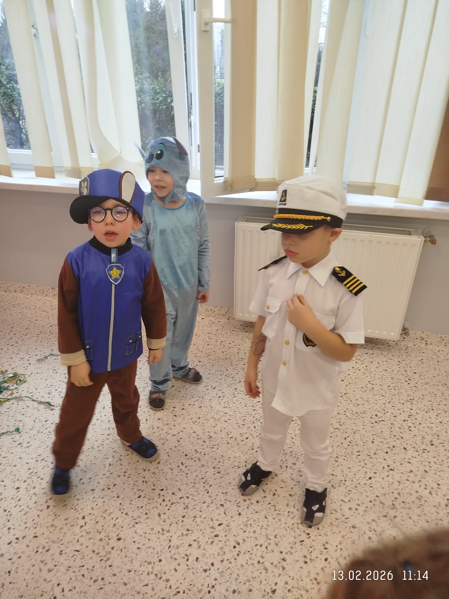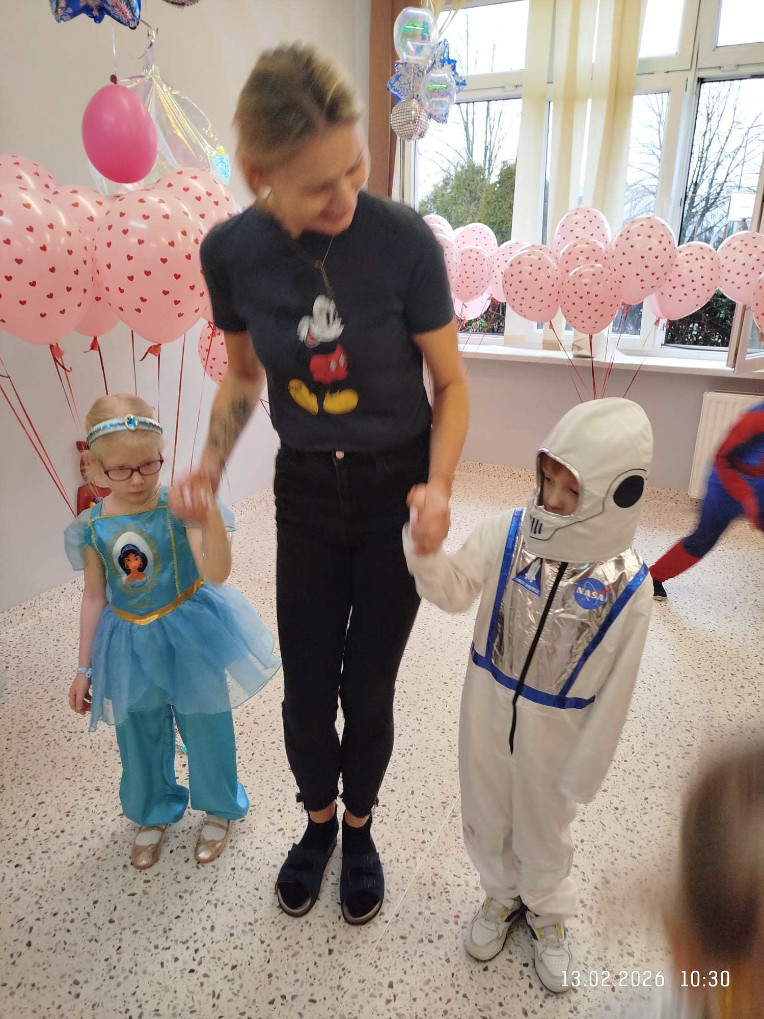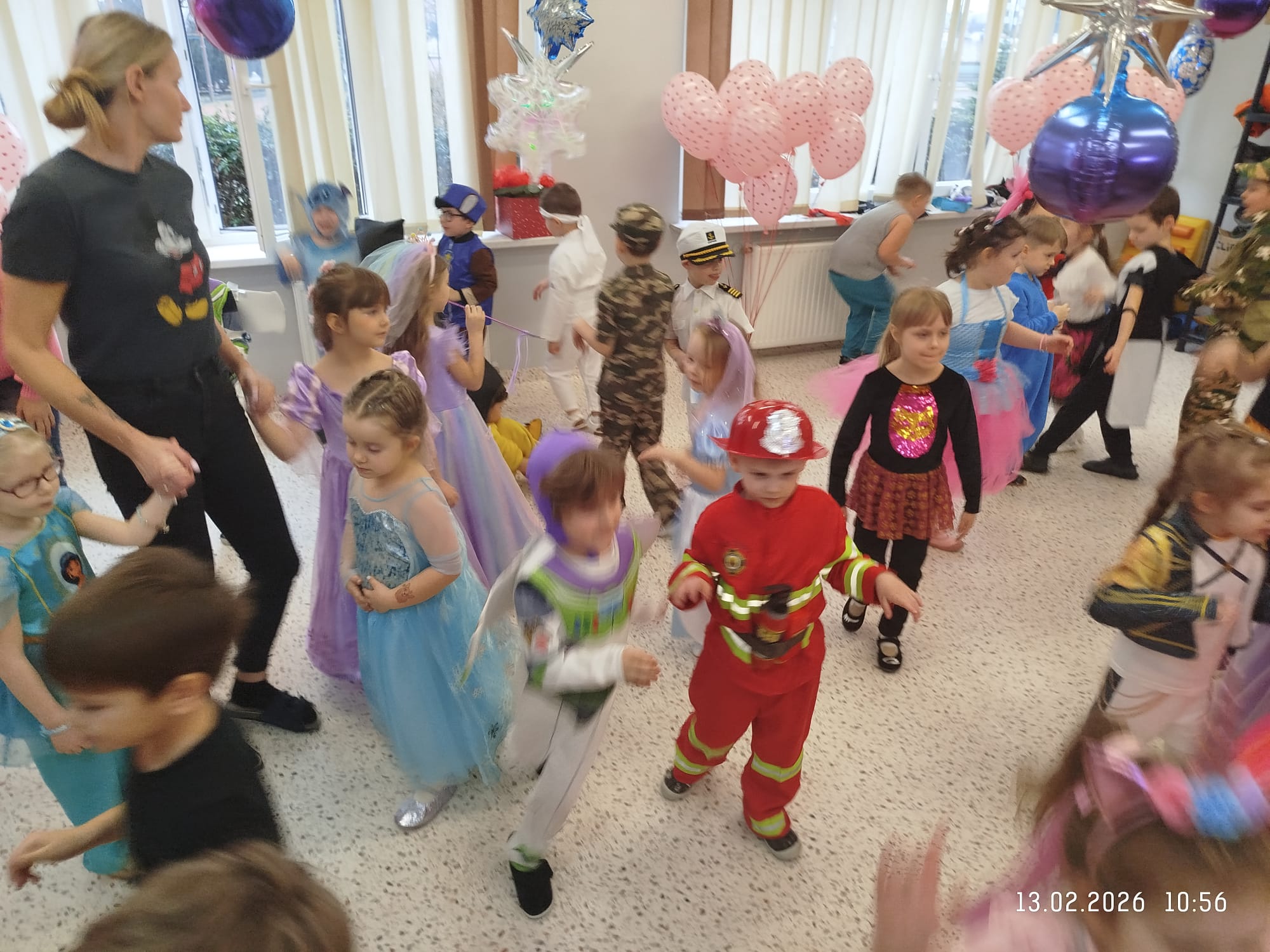 Tegoroczny piątek 13-tego w grupie XII zdecydowanie nie należał do pechowych… Można wręcz z całą pewnością powiedzieć, że takie piątki to my uwielbiamy, a wręcz KOCHAMY!!! A to dlatego, że 13 lutego w naszym przedszkolu odbył się bal karnawałowo-walentynkowy, na który dzieci czekały z dużą niecierpliwością. Tego dnia już od rana w sali przedszkolnej pojawiały się kolorowe postacie: bohaterowie z różnych bajek, filmów, służby mundurowe, wróżki, księżniczki, karatecy, kapitanowie, astronauci... Było magicznie, bajkowo, kolorowo… Dzieci aktywnie i z dużą radością uczestniczyły w zabawach i konkursach przygotowanych przez animatorów i nauczycieli. Humory dopisywały, a energia do zabawy i tańca nie miała końca! Bal karnawałowo-walentynkowy był nie tylko okazją do wspaniałej zabawy, ale również do rozwijania wyobraźni, kreatywności oraz umiejętności społecznych.
