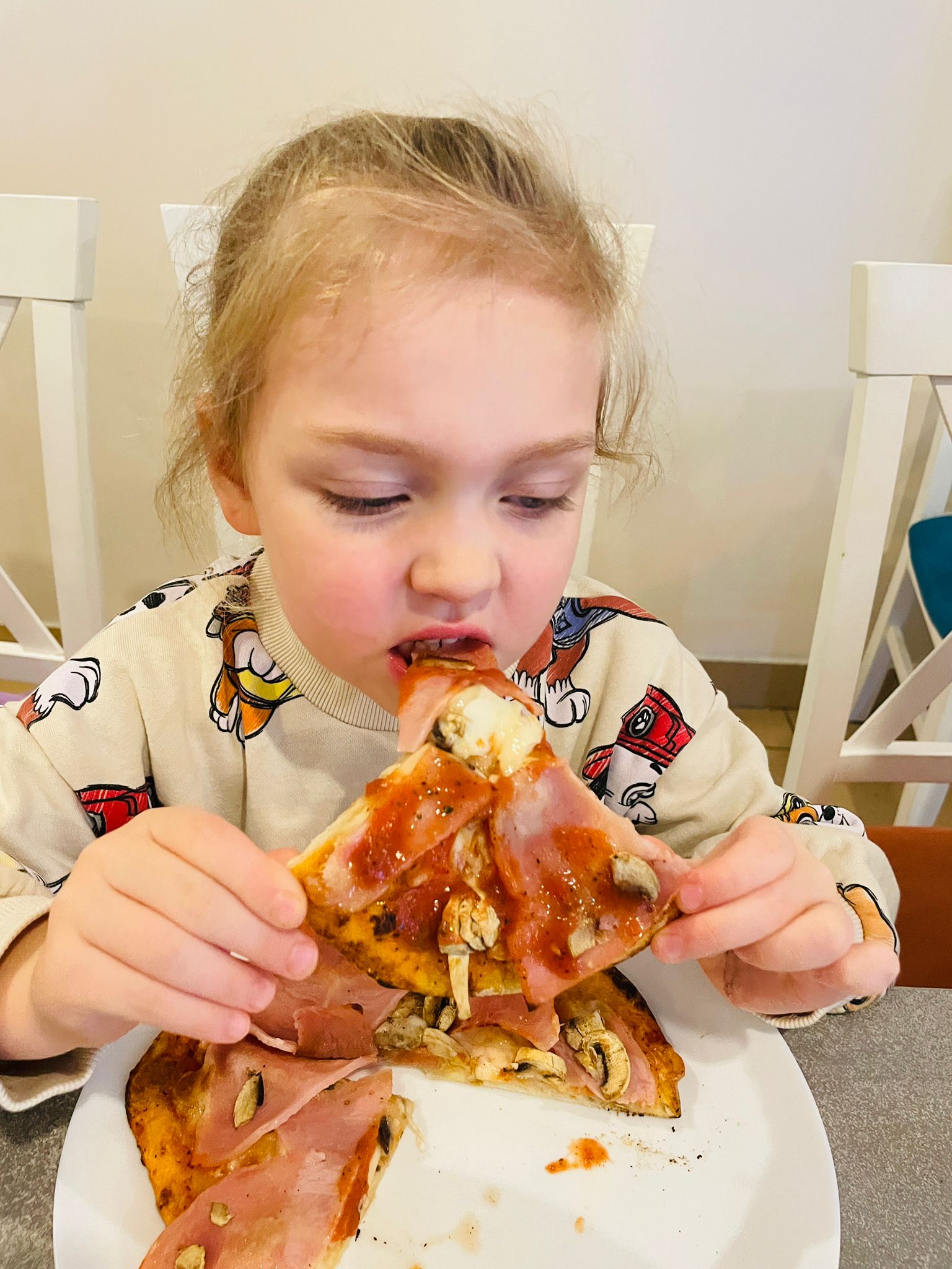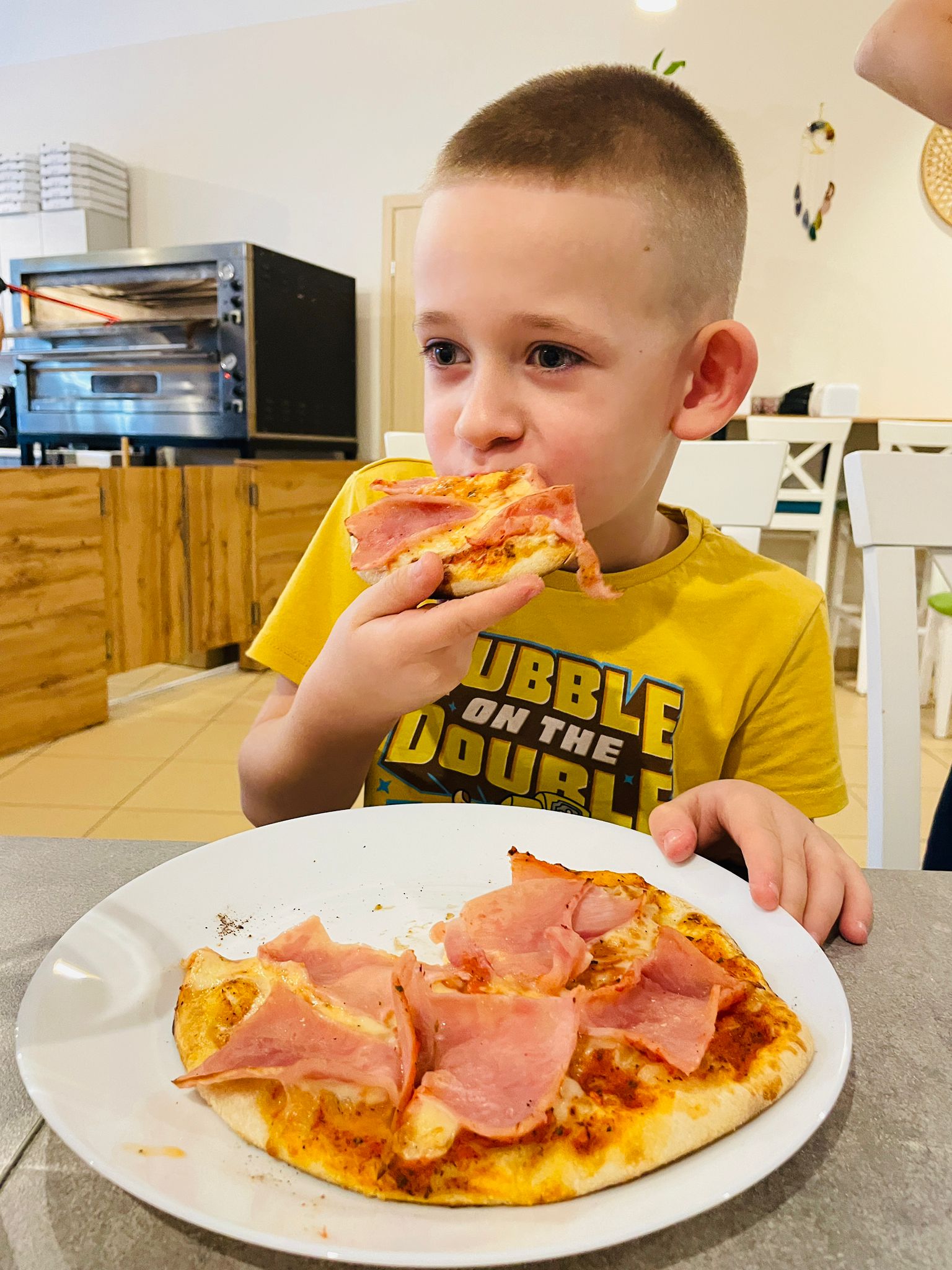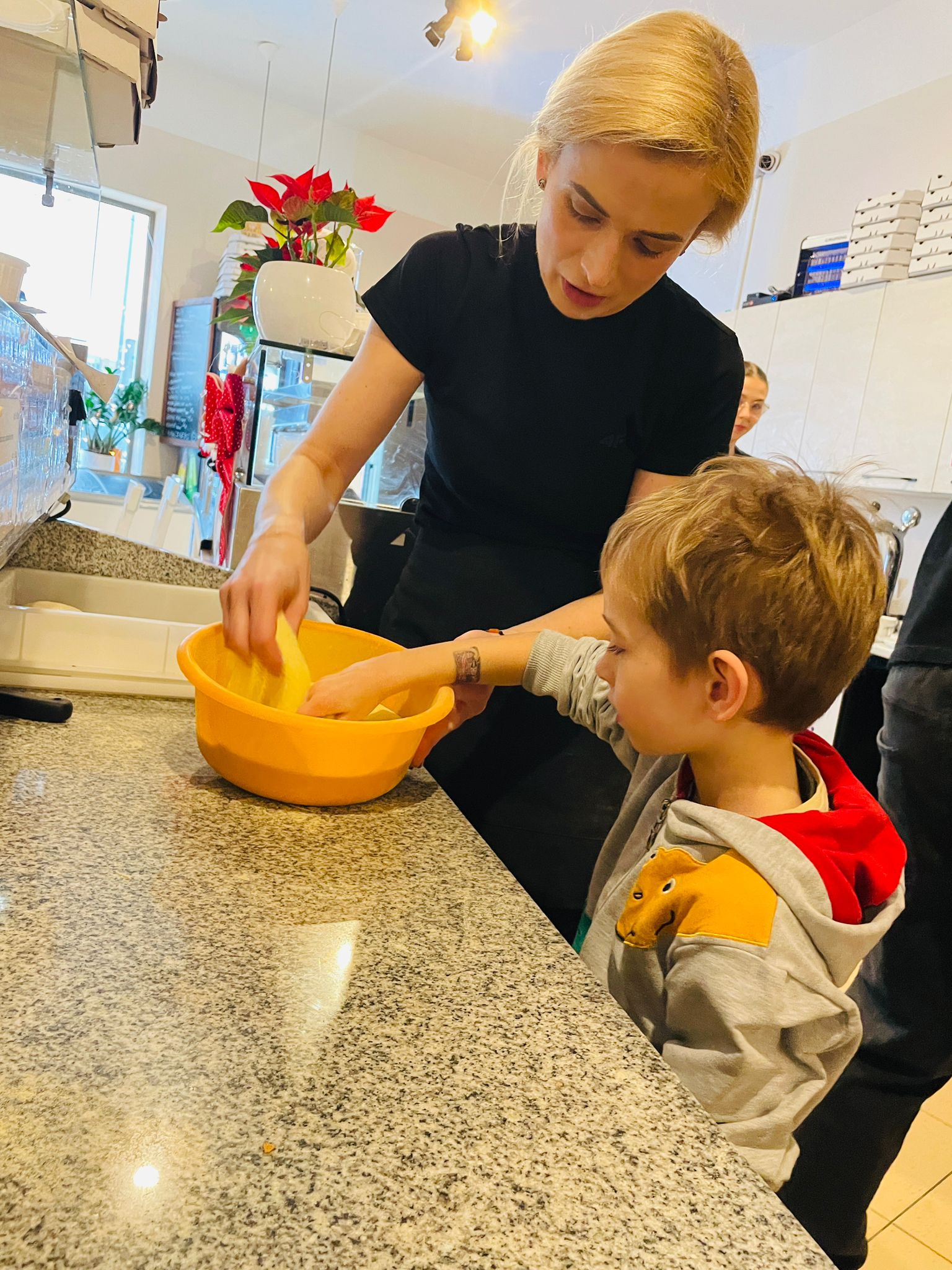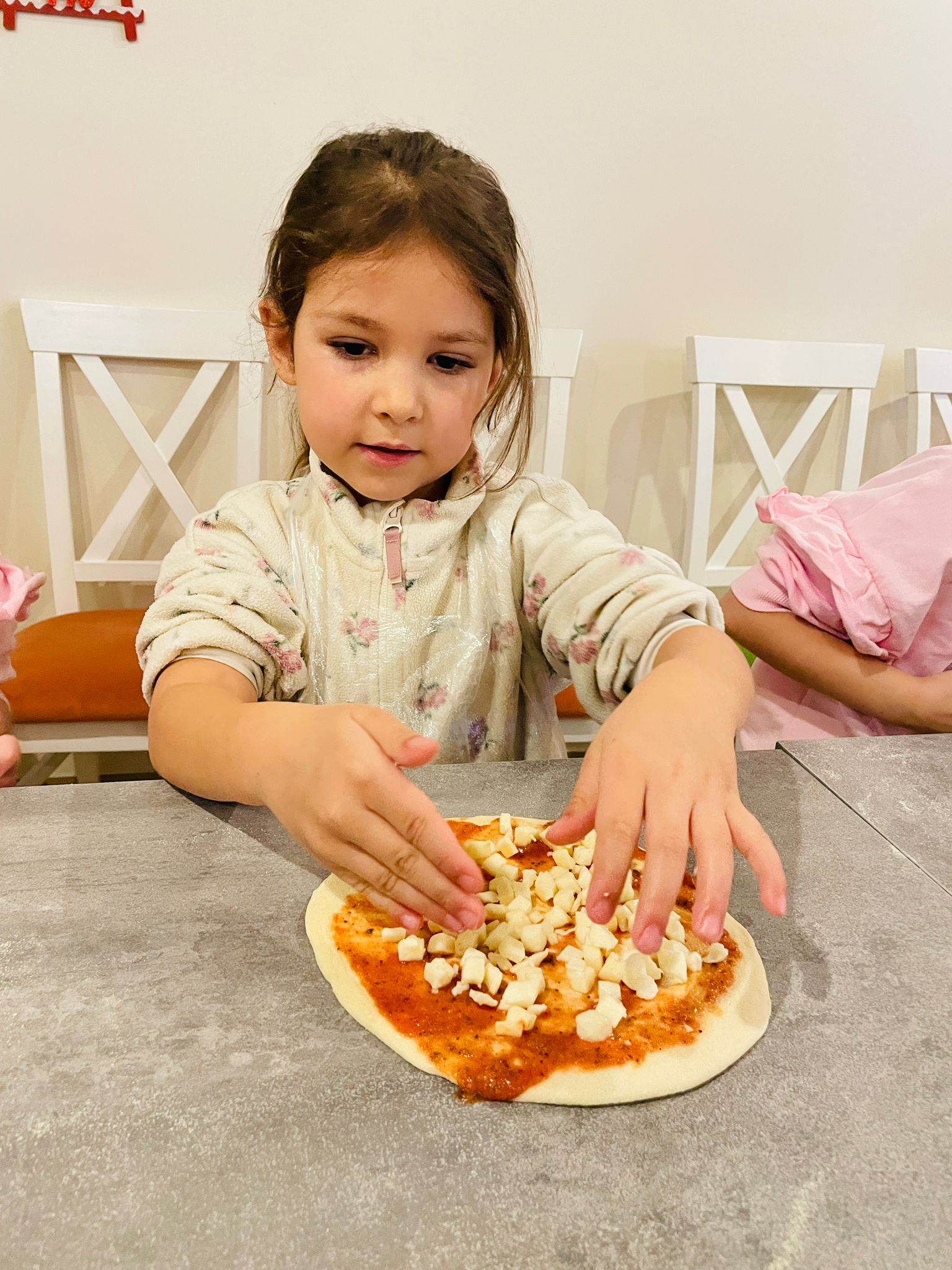 Kolejne kulinarne przygody za nami. Przedszkolaki z gr. XI miały okazję uczestniczyć w warsztatach z robienia pizzy organizowanych w pobliskiej Restauracji "Osiedlowa". Na początku szefowa kuchni- p. Ania, przybliżyła dzieciom historię pizzy. Następnie do akcji wkroczył p. Oliwer- pizzerman, który pokazał dzieciom, jak przejść do części praktycznej. Chłopcy i dziewczynki samodzielnie sypali mąkę, wyrabiali ciasto, a na koniec dodawali ulubione smakołyki. Po wypieczeniu pizzy w specjalnym piecu przyszedł czas na pałaszowanie. Dzieci pracowały z niezwykłym zaangażowaniem, a czekając na wypiek zaśpiewały pracownikom restauracji świąteczną piosenkę. To był niezwykle miły czas.