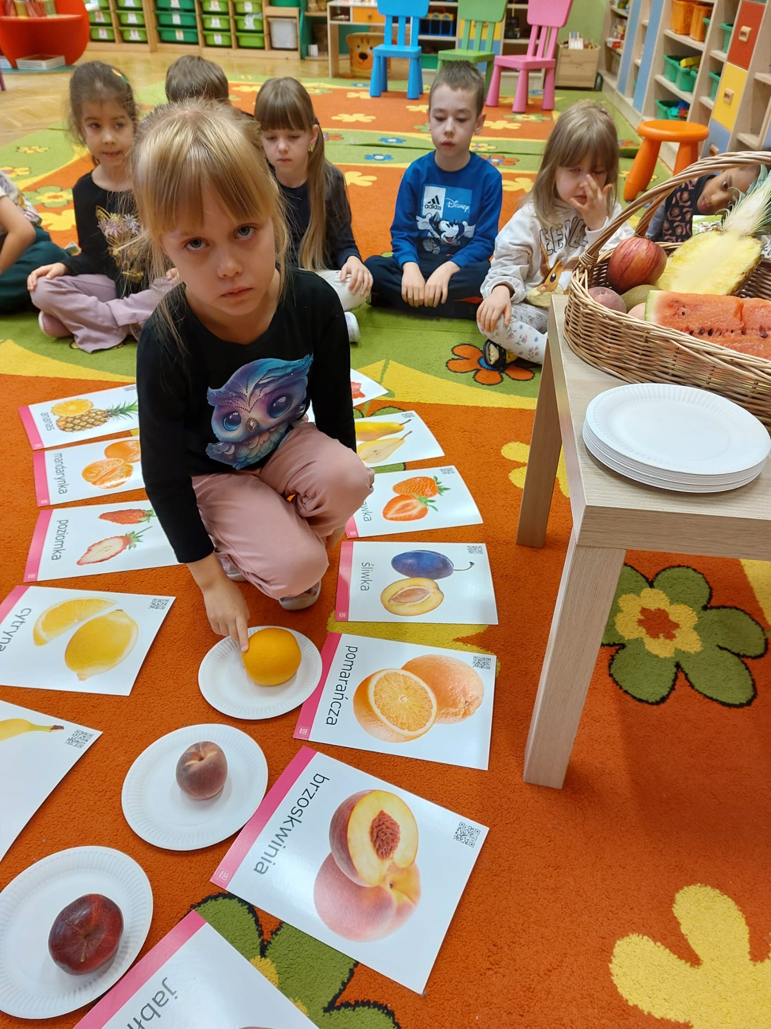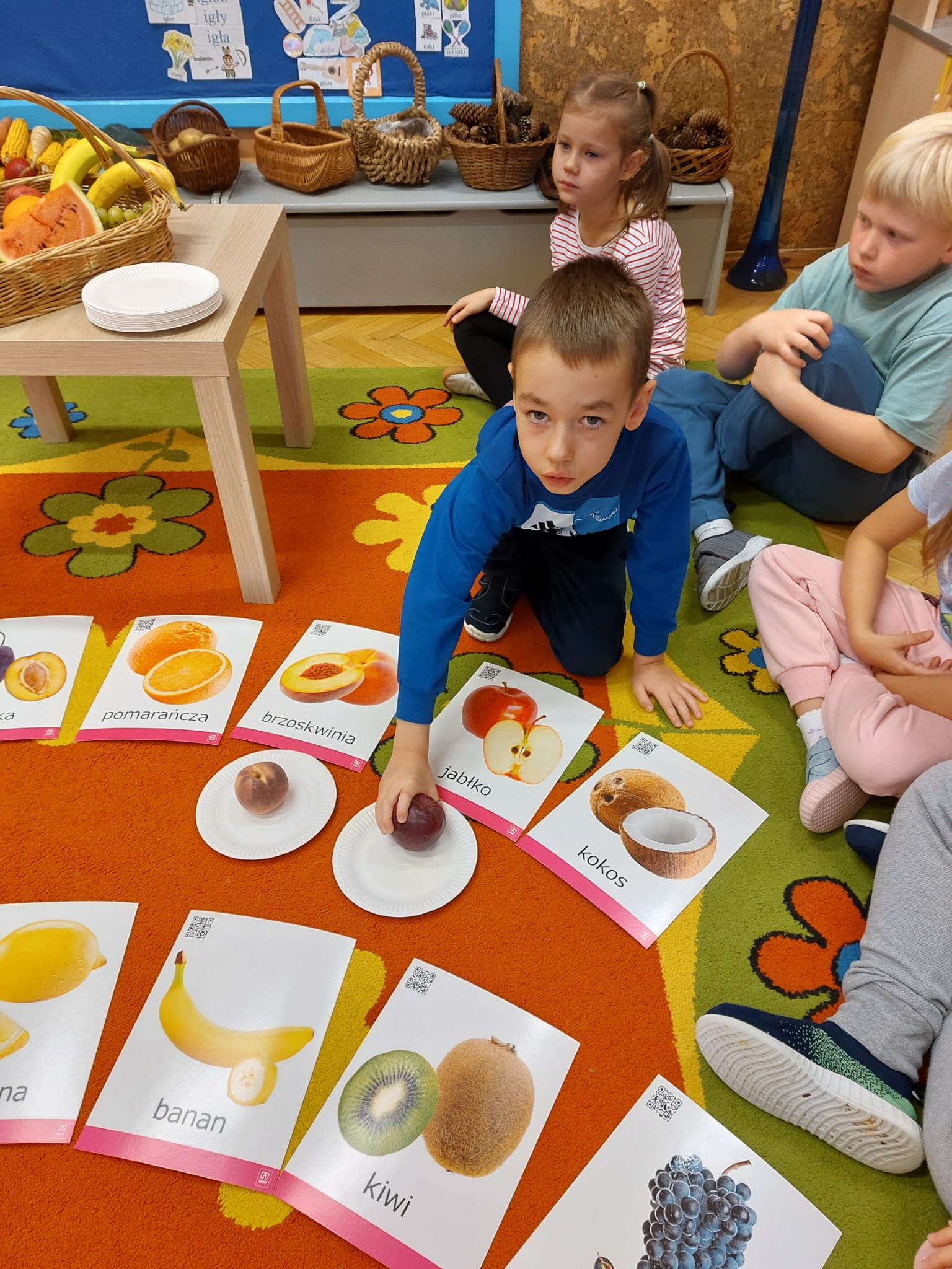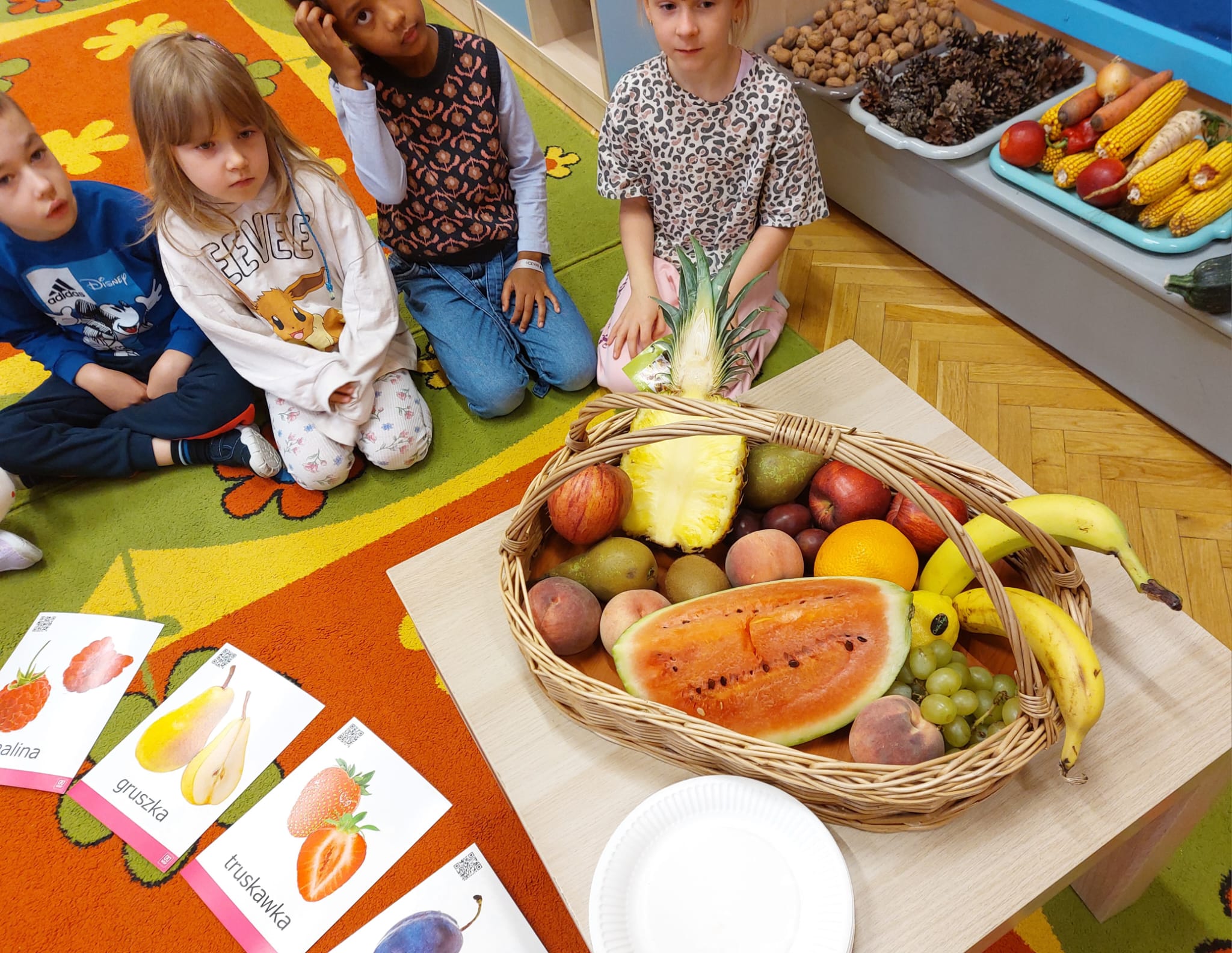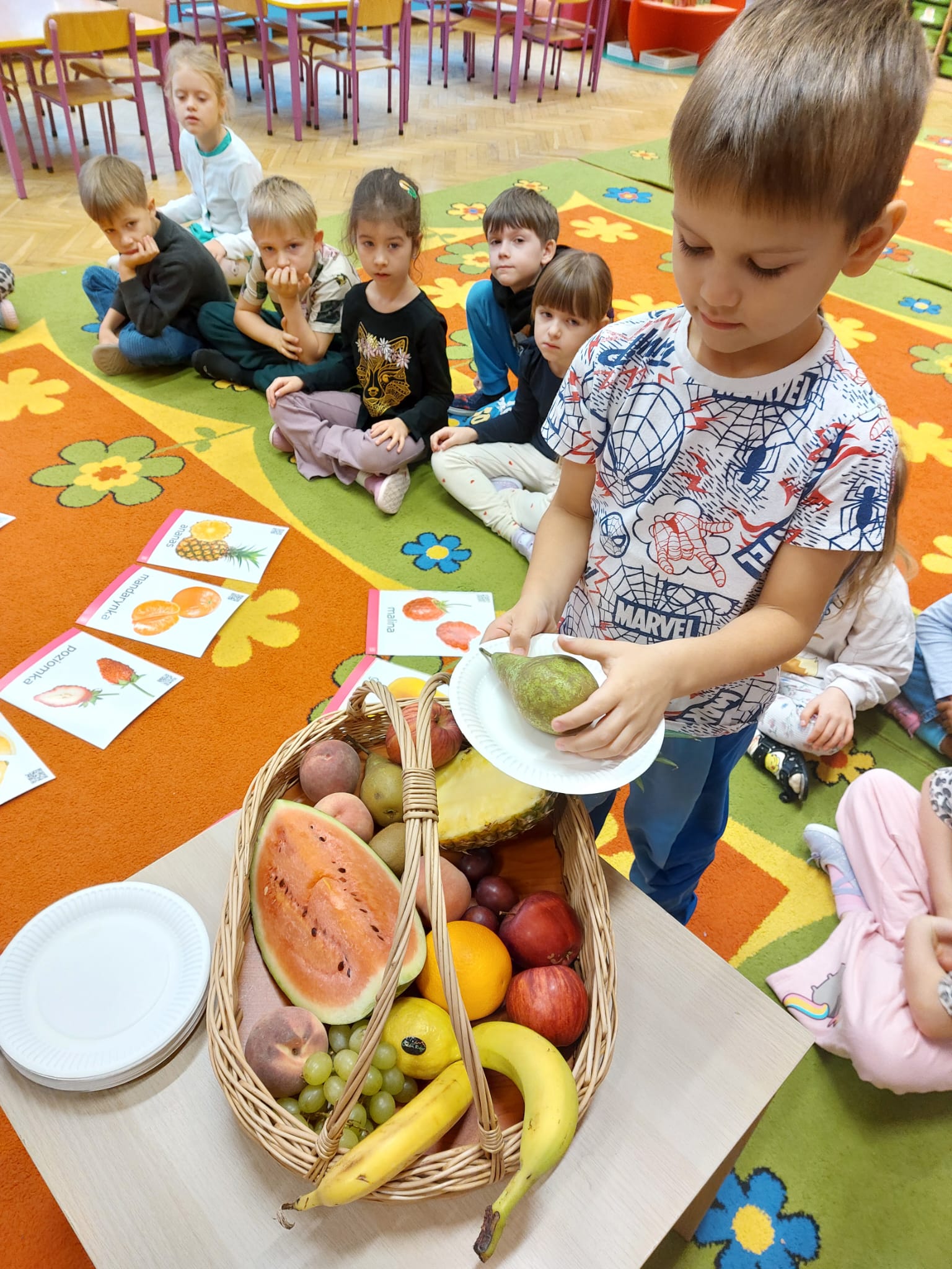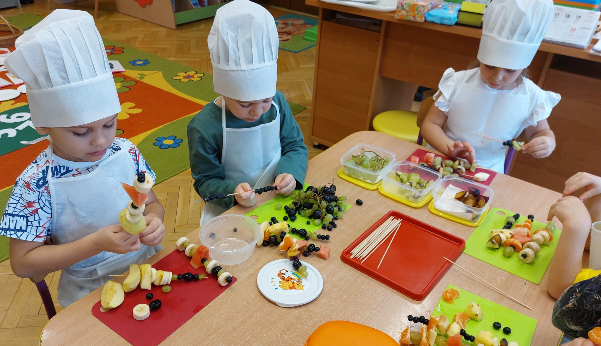 ,,Tup, tup…Pani Jesień owoce w koszu niesie…” pod takim hasłem, dzieci 6-letnie wykonały zdrowe i kolorowe szaszłyki. Celem dzisiejszych kulinarnych doświadczeń było m.in. promowanie zdrowego stylu życia, uświadamianie znaczenia spożywania owoców dla zdrowia, zachęcanie do spożywania owoców oraz ich przetworów, uświadamianie ich wartości odżywczych dla prawidłowego rozwoju, wyrabianie nawyku zdrowego odżywiania, doskonalenie umiejętności współpracy w grupie, jak również dostarczenie radości ze wspólnej zabawy.