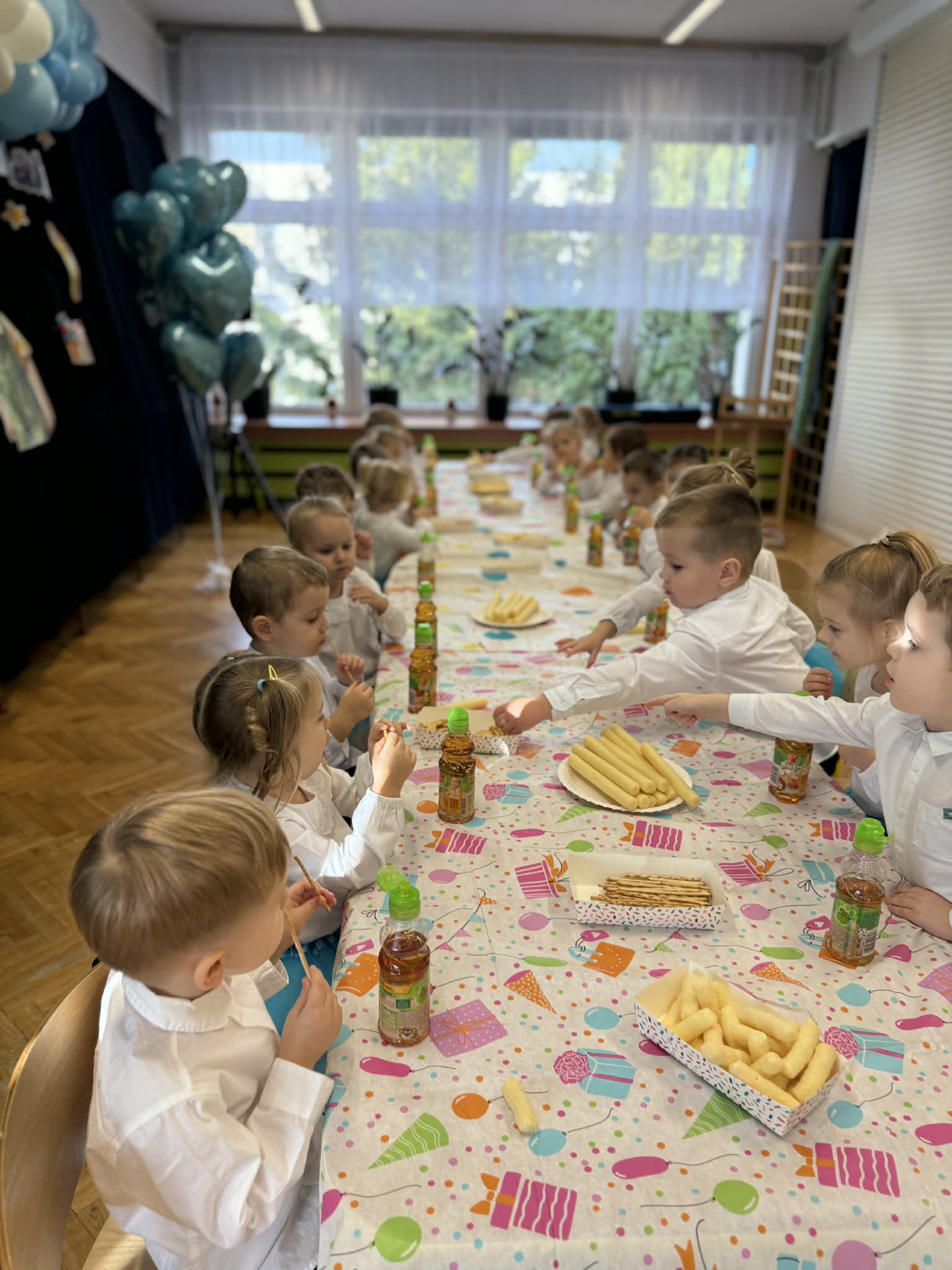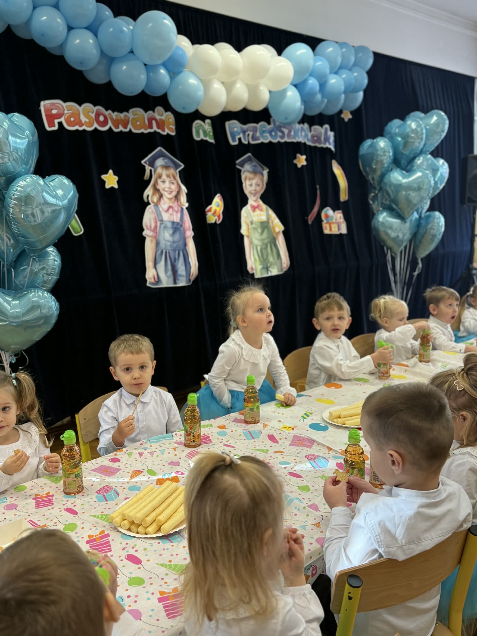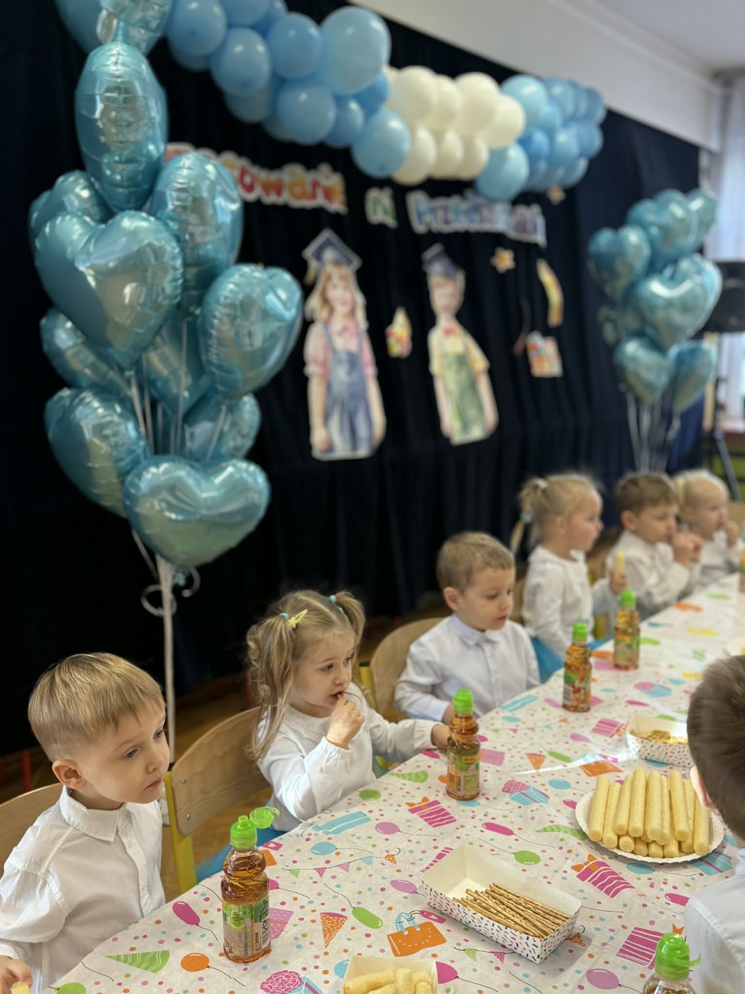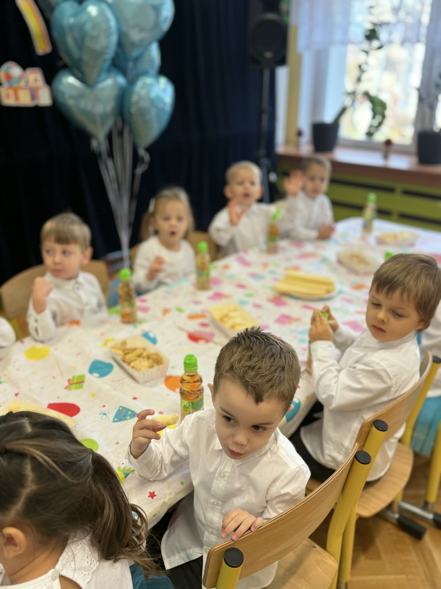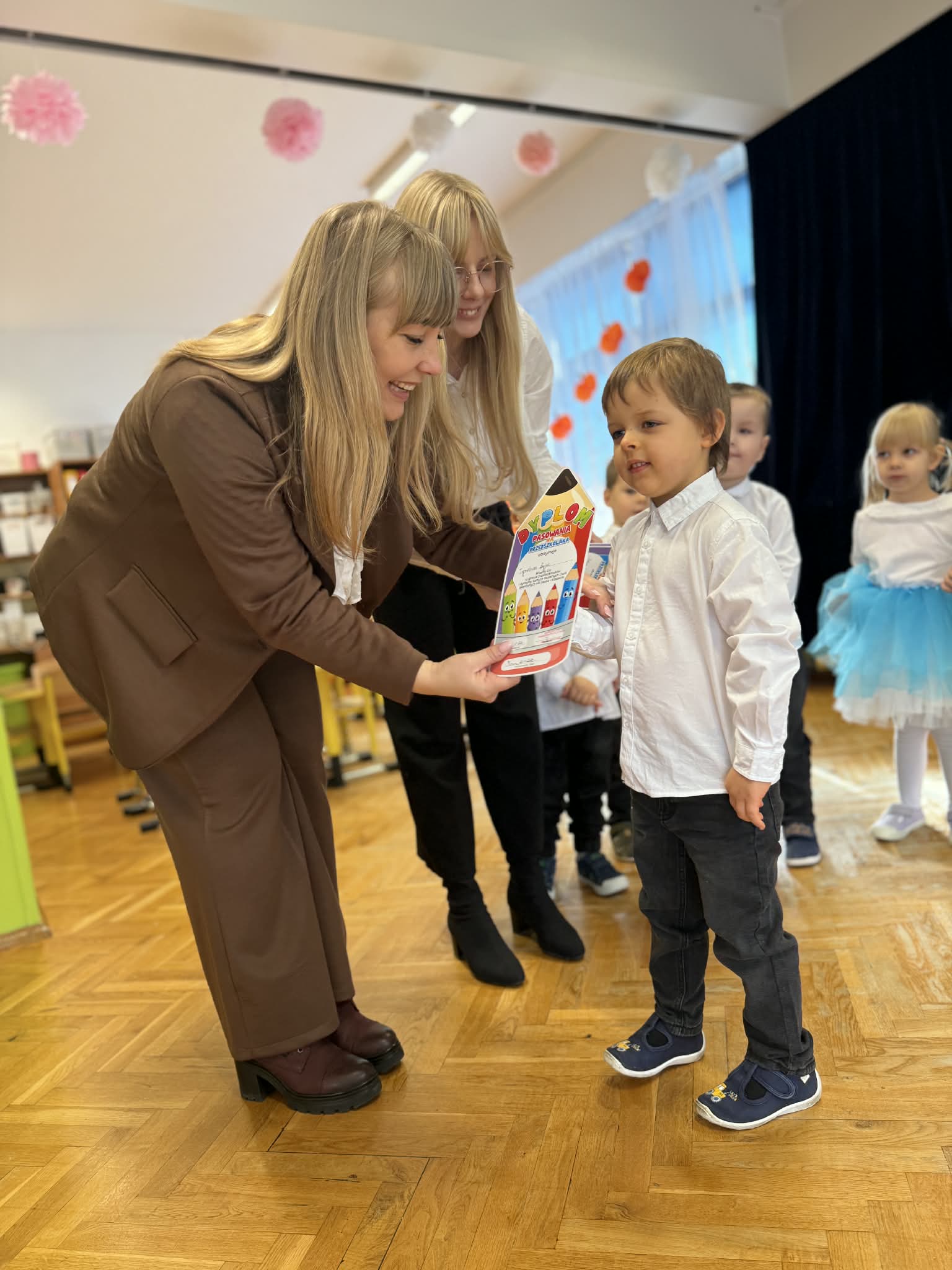 Uroczystość włączenia dzieci do grona przedszkolaków była dla naszej placówki szczególnym wydarzeniem i odbyła się 19 listopada. Mali uczestnicy zaprezentowali szeroki wachlarz swoich talentów – zaśpiewali, zatańczyli, recytowali oraz pokazali wszelakie zdolności artystyczne. Po części występów nastąpił moment oficjalnego przyjęcia do społeczności przedszkola – czyli symboliczne dotknięcie ramienia każdego dziecka piękną kredką. Aby uczcić ten ważny dzień, wychowawczynie podarowały dzieciom pamiątkowe dyplomy oraz baloniki. Po części artystycznej, na maluchy czekały smakołyki, na które wszyscy niecierpliwie czekali.