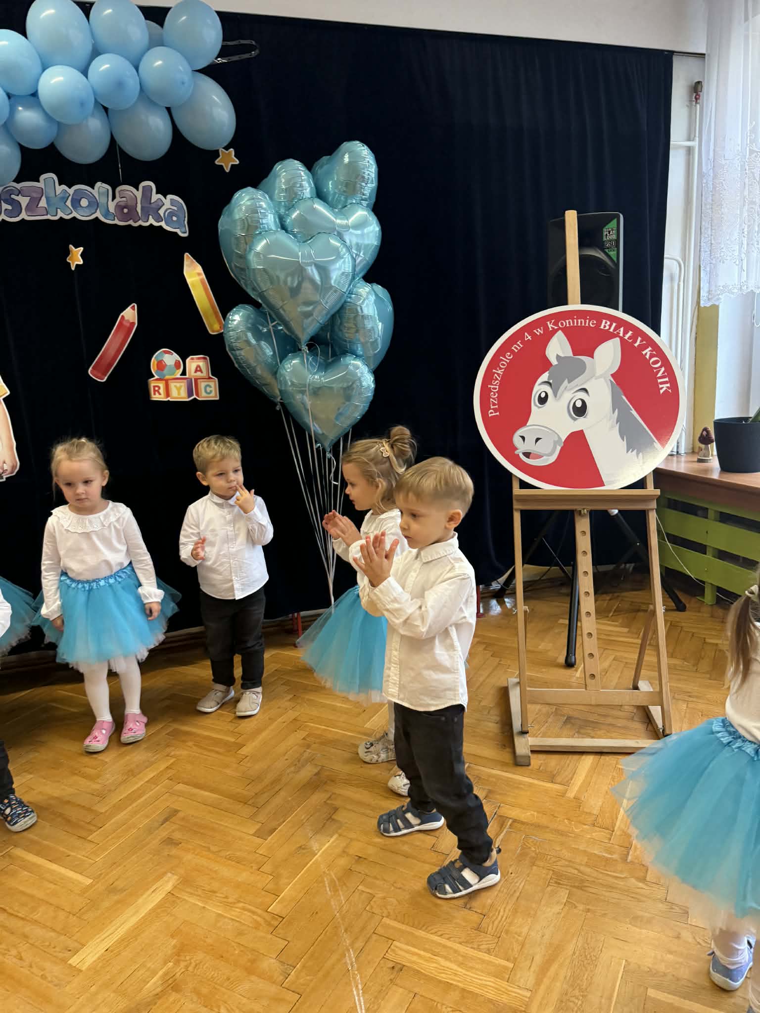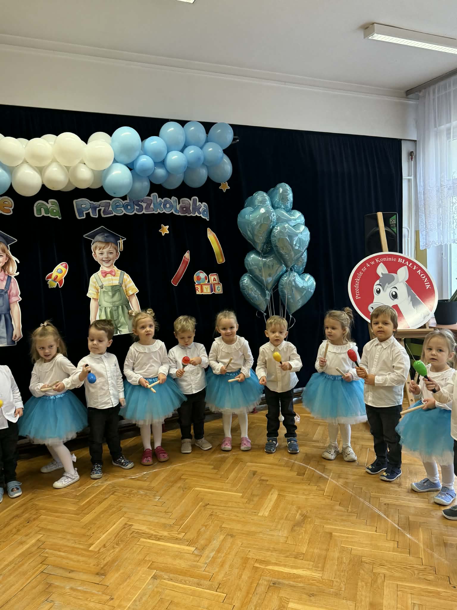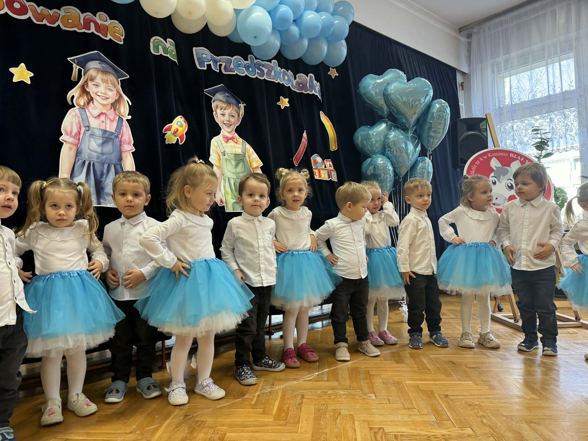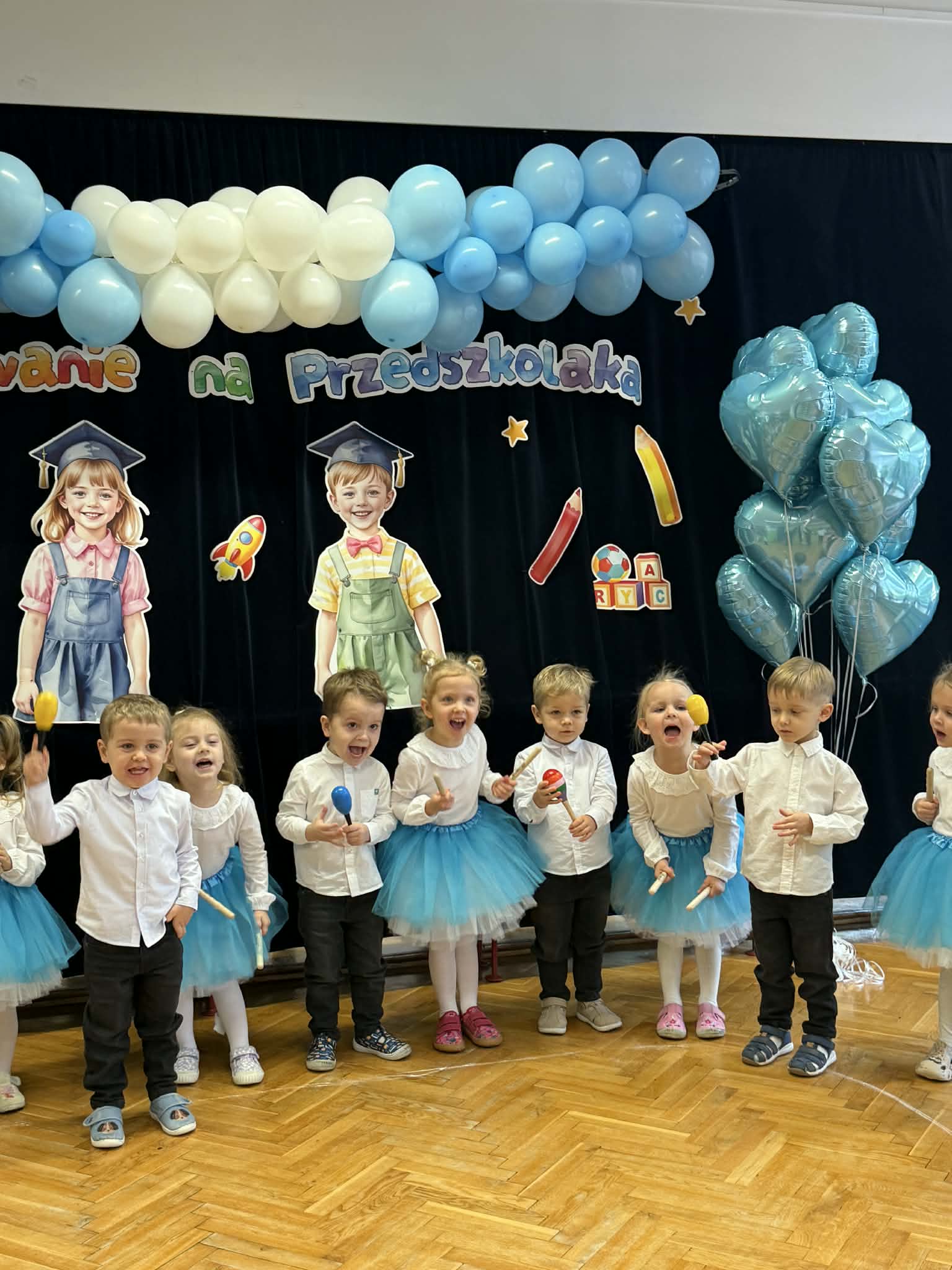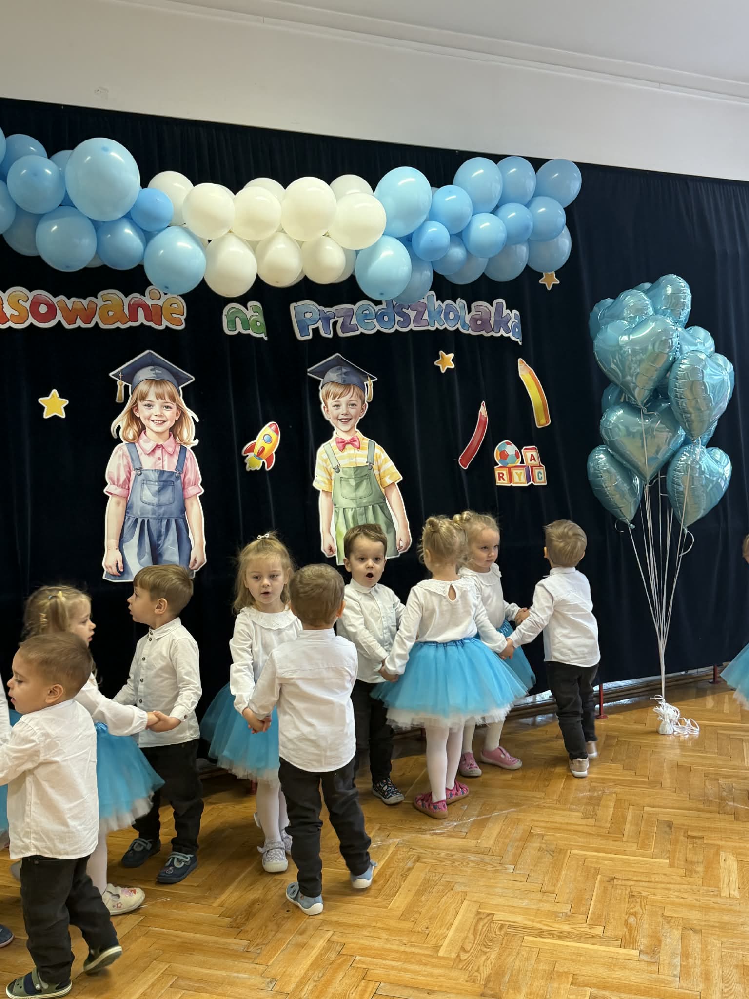 Dla wielu przedszkolaków był to pierwszy tak istotny występ i wszyscy spisali się znakomicie, zasługując na ogromne brawa. Rodzicom gratulujemy tak utalentowanych dzieci oraz składamy ogromne podziękowania za pomoc w przygotowaniu uroczystości. Szczególnie dziękujemy Tacie Hani za piękną oprawę balonową, która dodała atrakcyjności naszym występom oraz była cudownym prezentem dla naszych pociech. Zapraszamy do galerii.