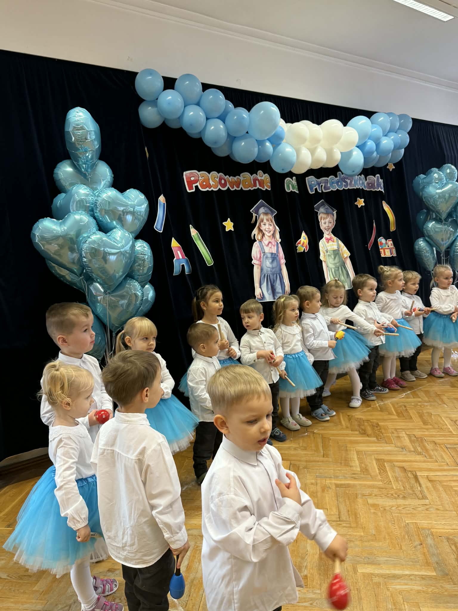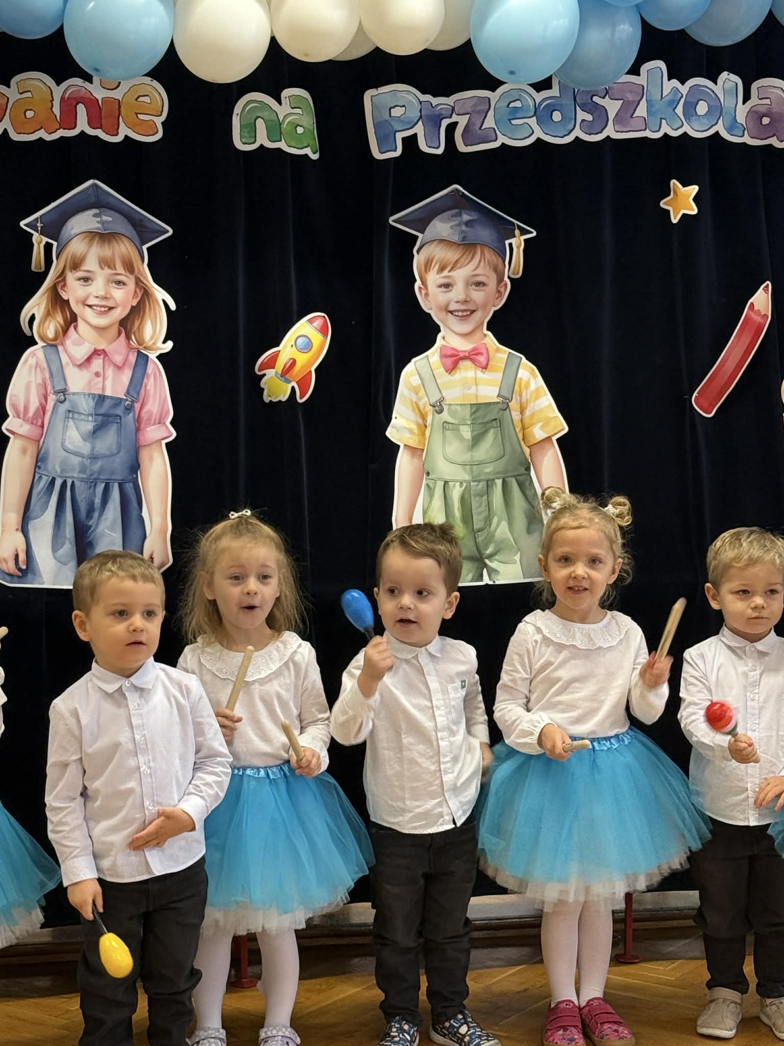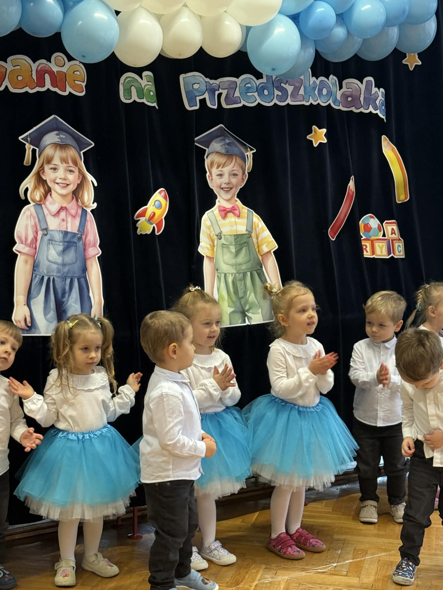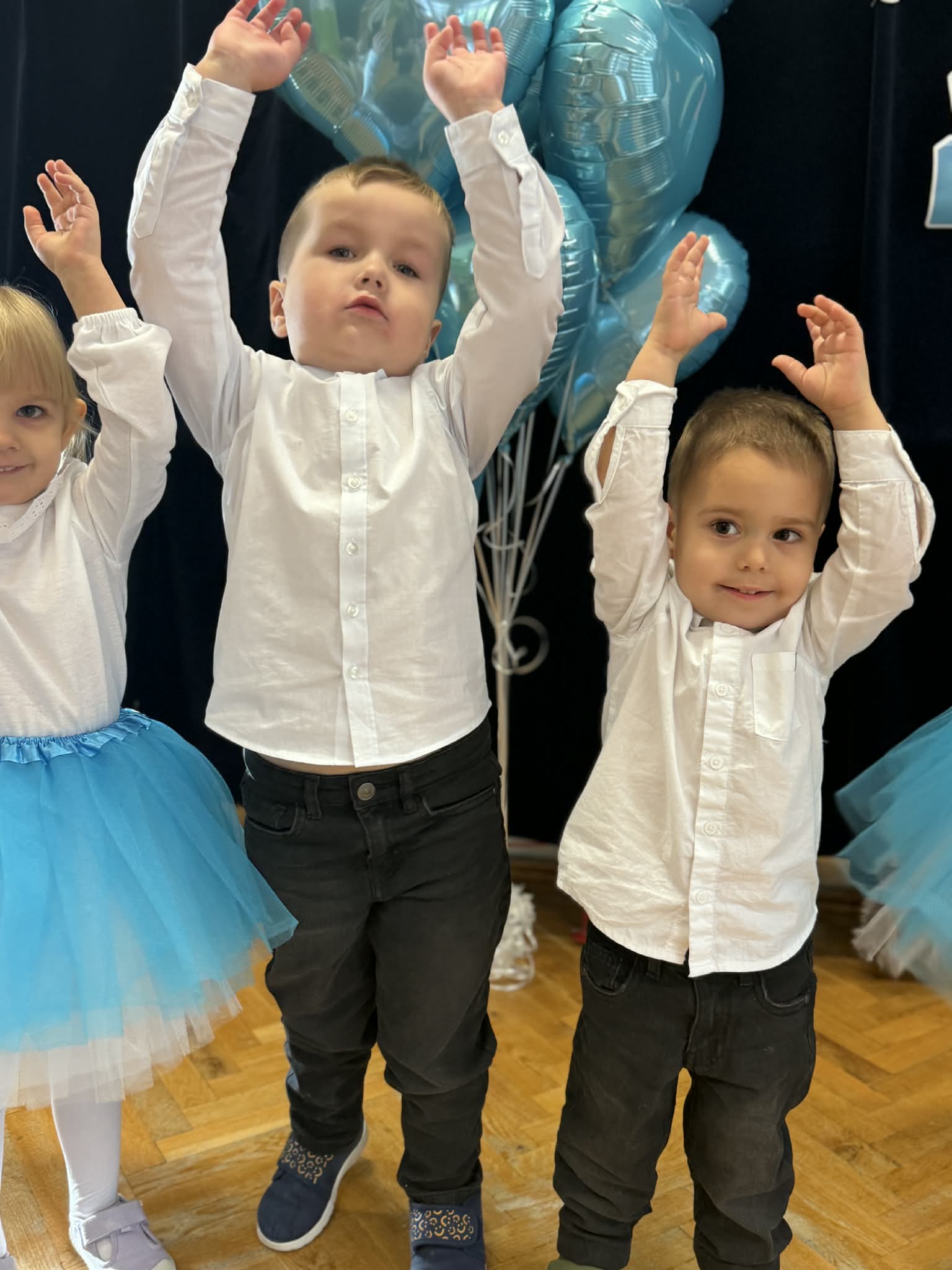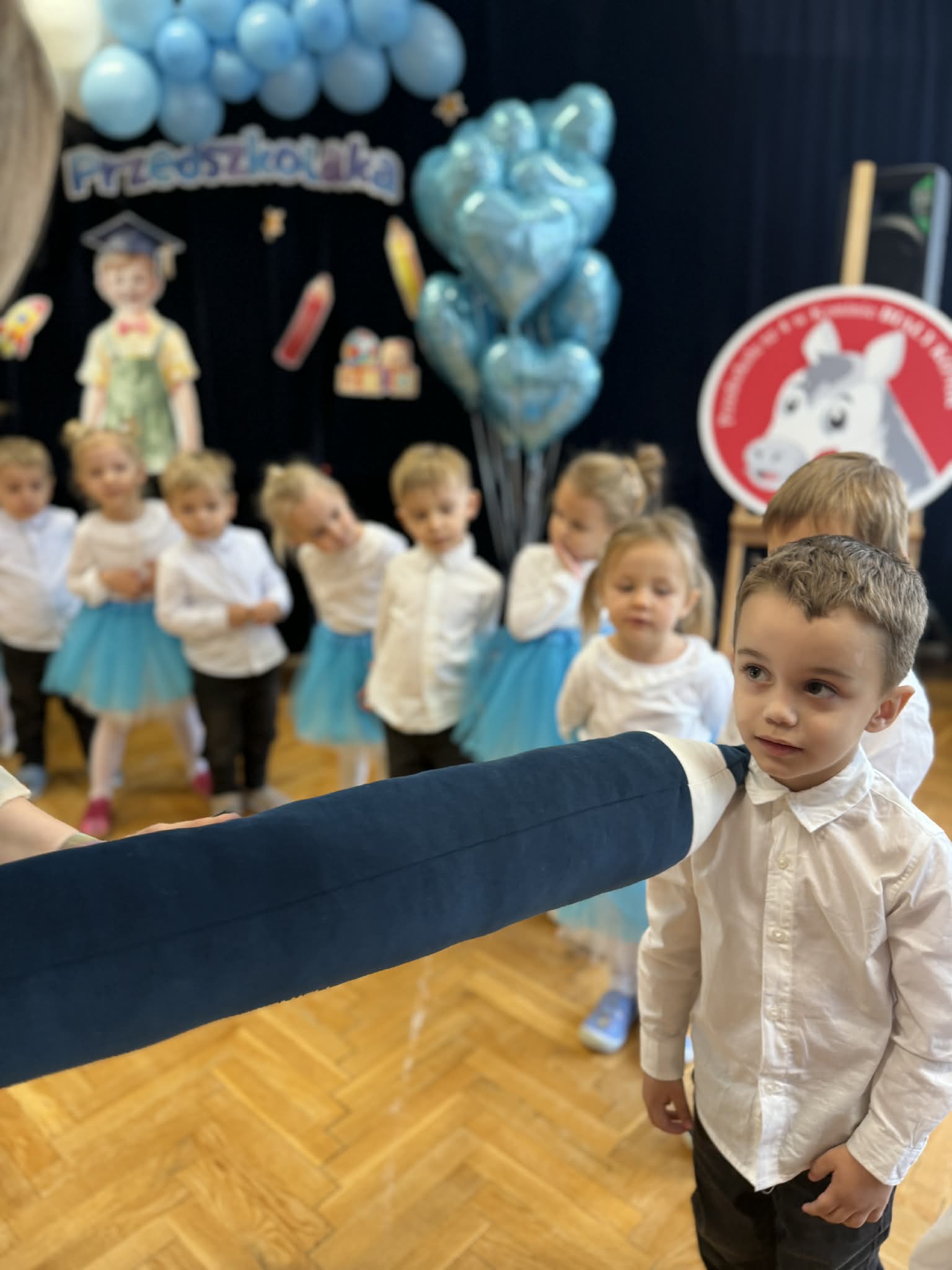 Dla wielu przedszkolaków był to pierwszy tak istotny występ i wszyscy spisali się znakomicie, zasługując na ogromne brawa. Rodzicom gratulujemy tak utalentowanych dzieci oraz składamy ogromne podziękowania za pomoc w przygotowaniu uroczystości. Szczególnie dziękujemy Tacie Hani za piękną oprawę balonową, która dodała atrakcyjności naszym występom oraz była cudownym prezentem dla naszych pociech. Zapraszamy do galerii.