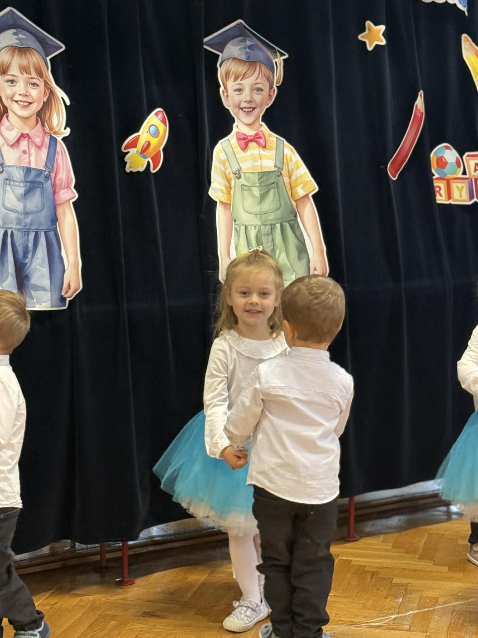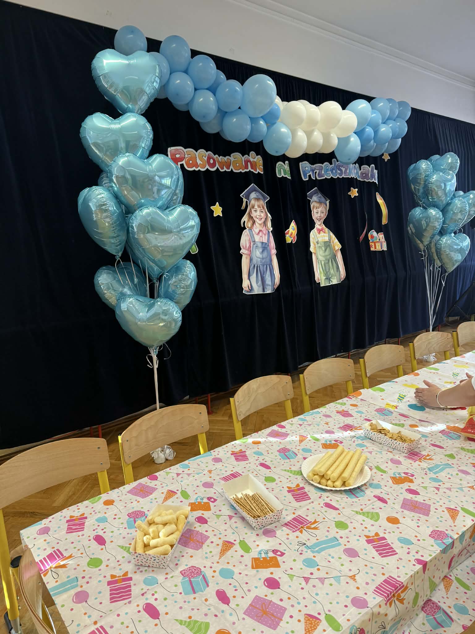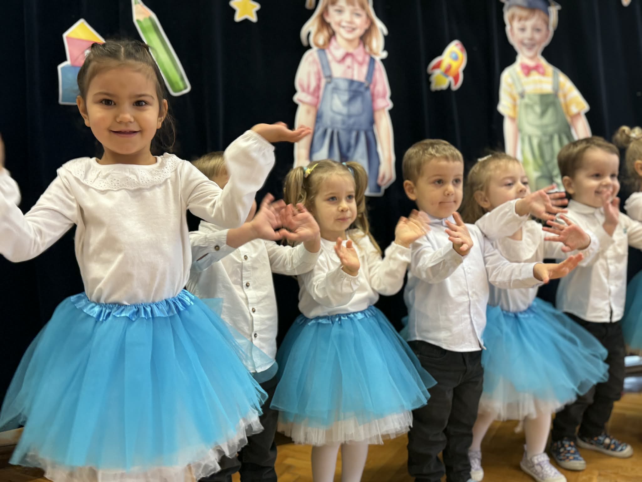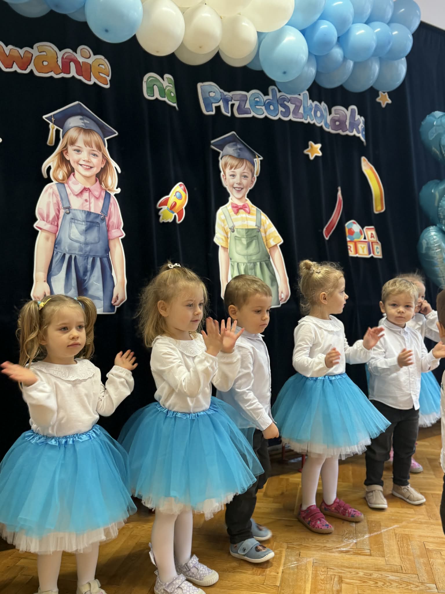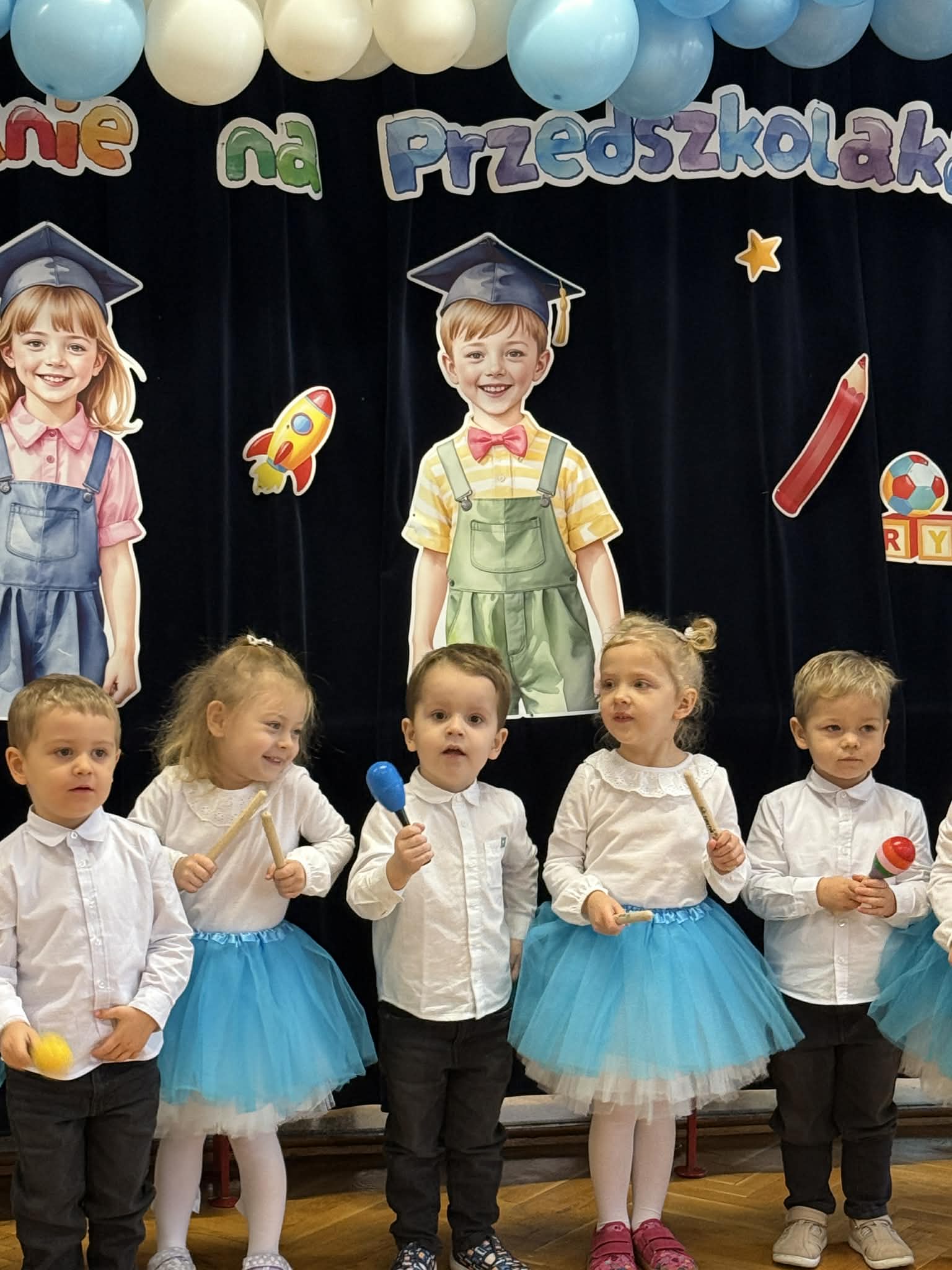 Dla wielu przedszkolaków był to pierwszy tak istotny występ i wszyscy spisali się znakomicie, zasługując na ogromne brawa. Rodzicom gratulujemy tak utalentowanych dzieci oraz składamy ogromne podziękowania za pomoc w przygotowaniu uroczystości. Szczególnie dziękujemy Tacie Hani za piękną oprawę balonową, która dodała atrakcyjności naszym występom oraz była cudownym prezentem dla naszych pociech. Zapraszamy do galerii.