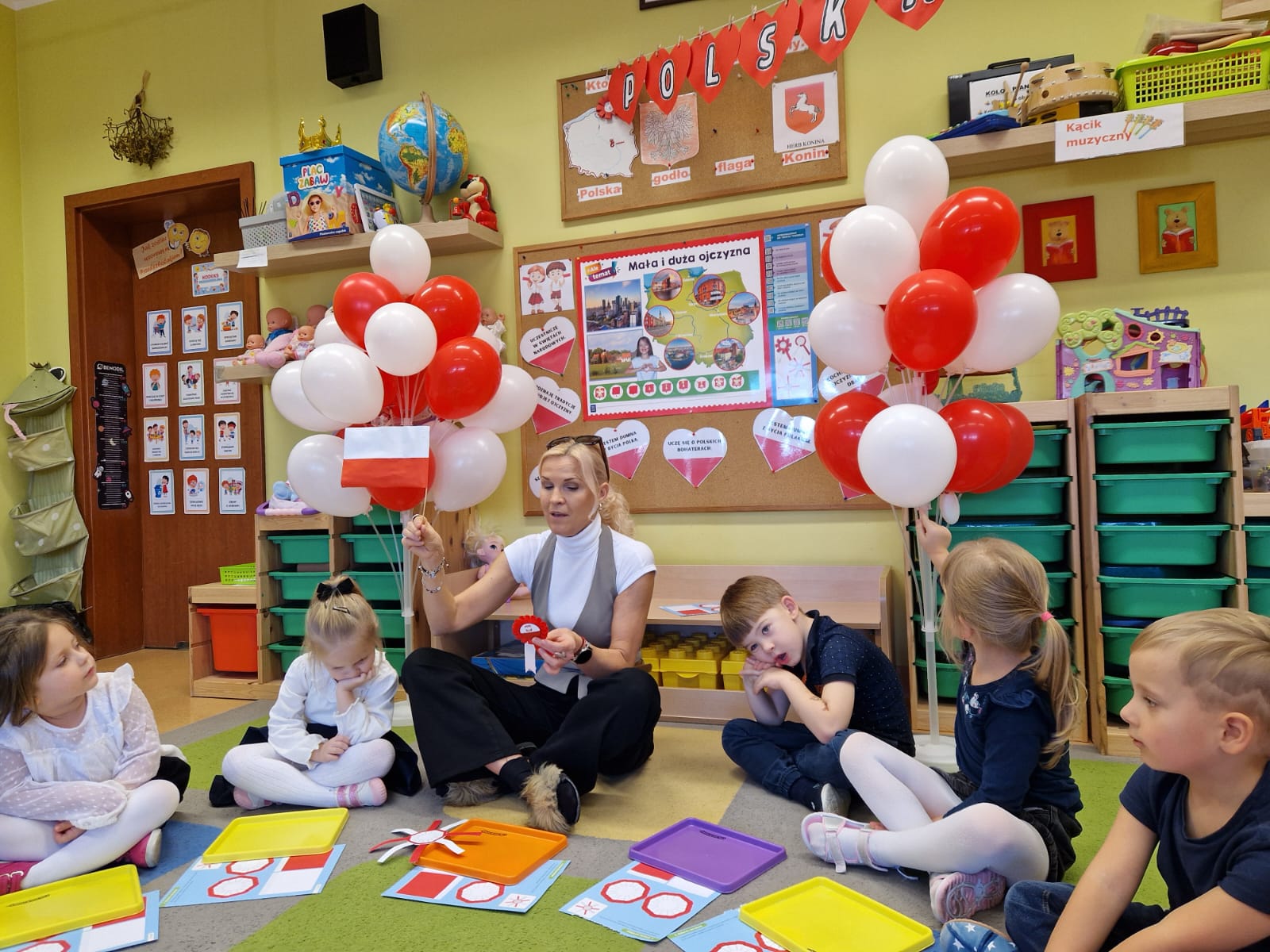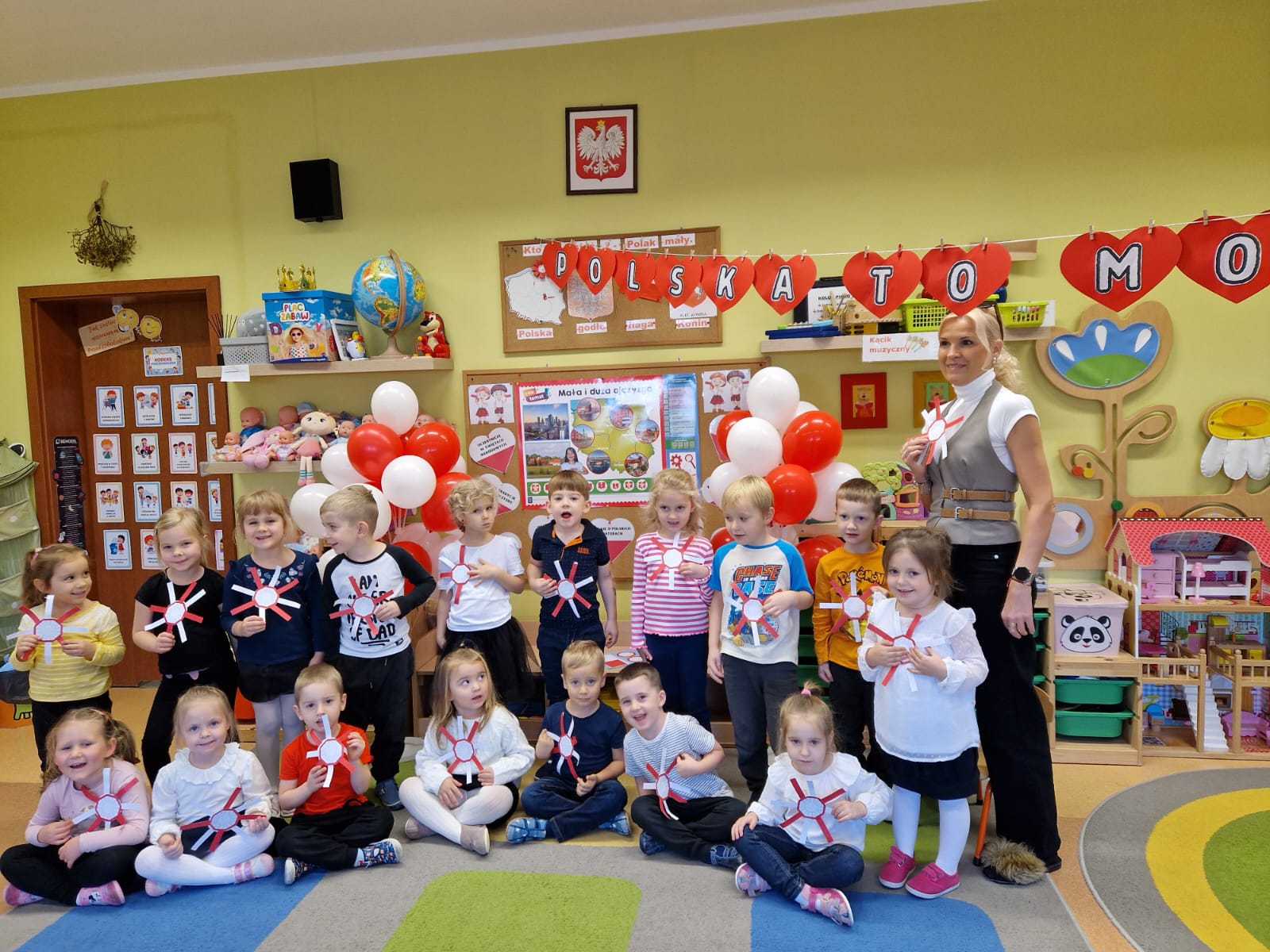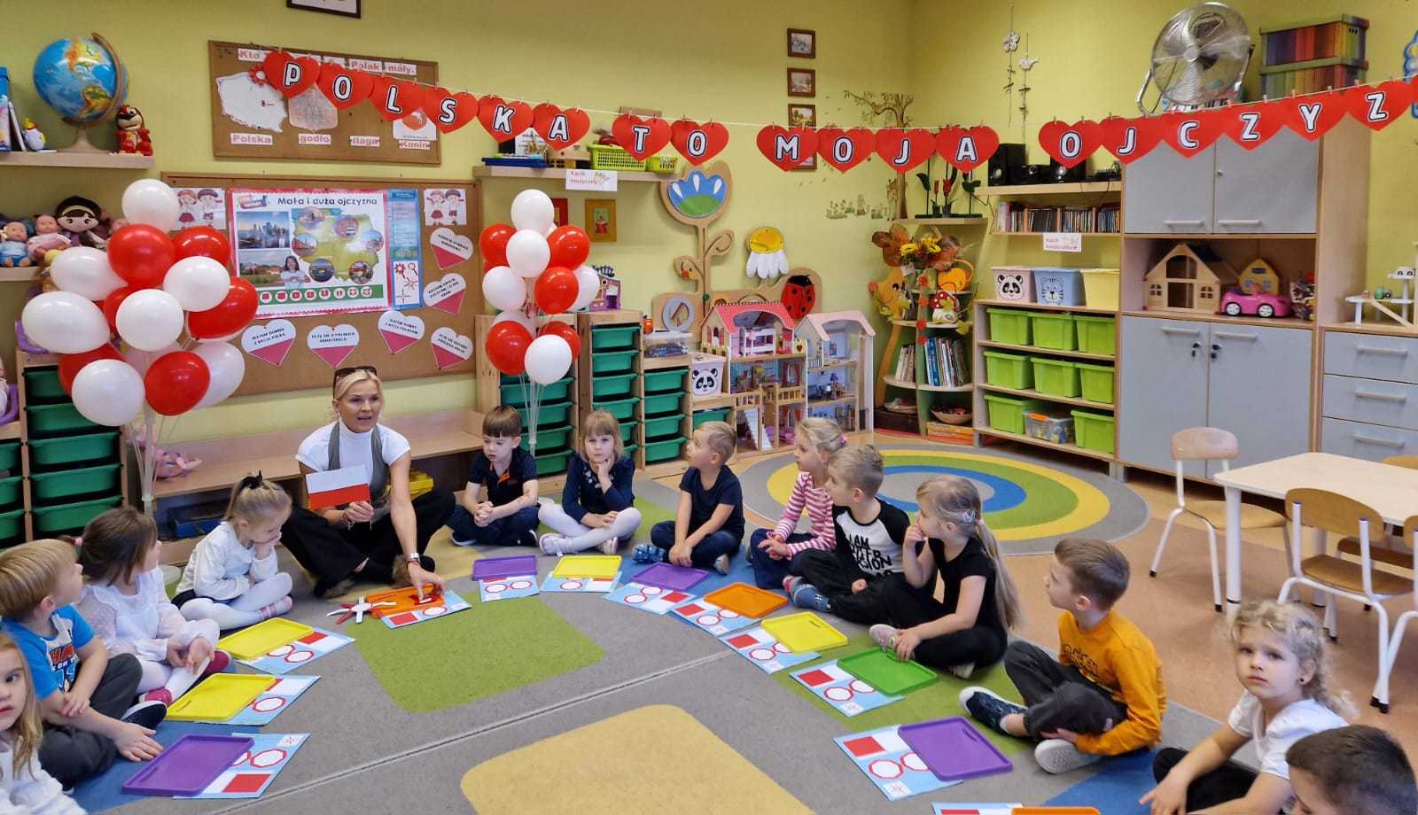 W ramach projektu edukacyjnego „Polska to moja ojczyzna” dzieci z grupy czterolatków uczestniczyły w działaniach mających na celu rozwijanie postaw patriotycznych oraz poznawanie historii i symboli narodowych naszego kraju. Przedszkolaki wzięły udział w akademii z okazji Narodowego Święta Niepodległości, podczas której obserwowały występy starszych kolegów i koleżanek. Wydarzenie to przybliżyło dzieciom znaczenie święta oraz pozwoliło im zrozumieć, czym jest wolność i dlaczego warto być dumnym z bycia Polakiem.