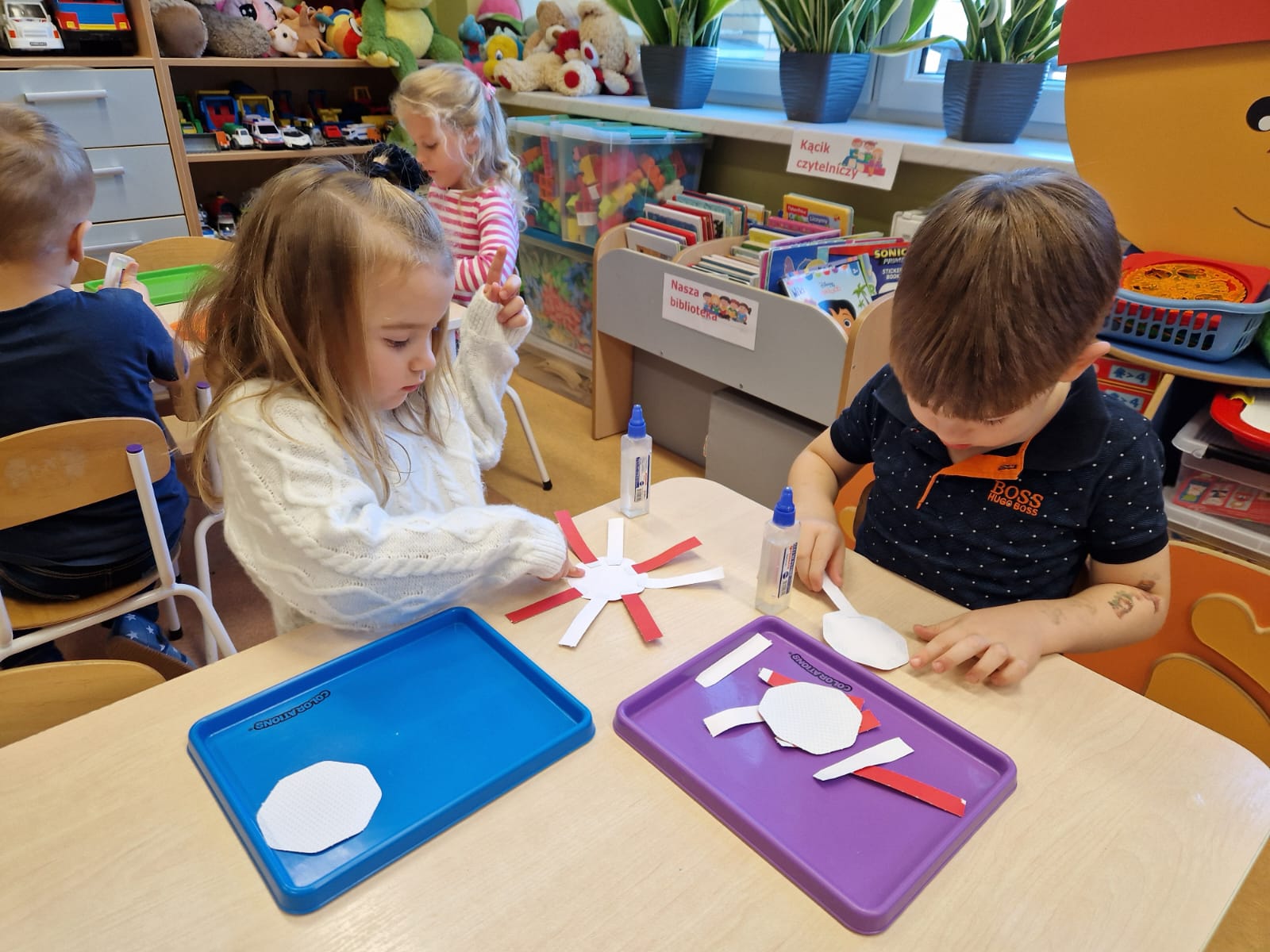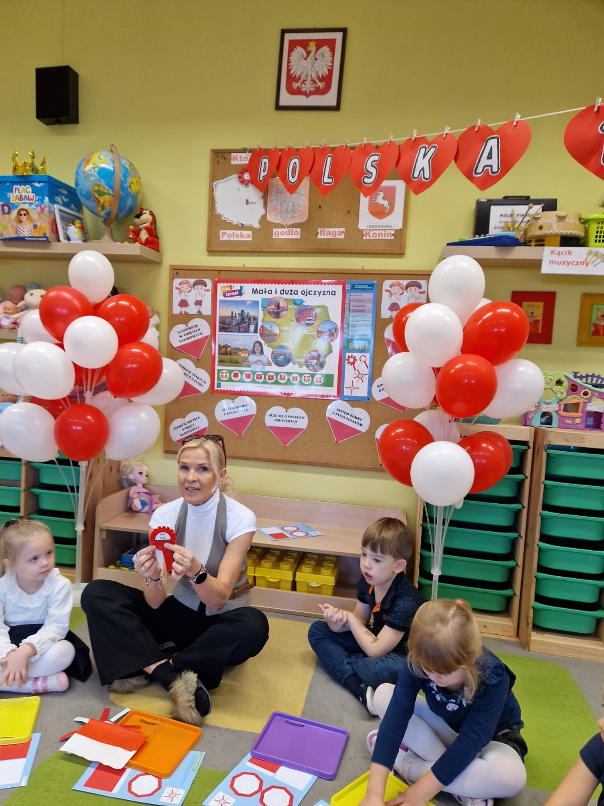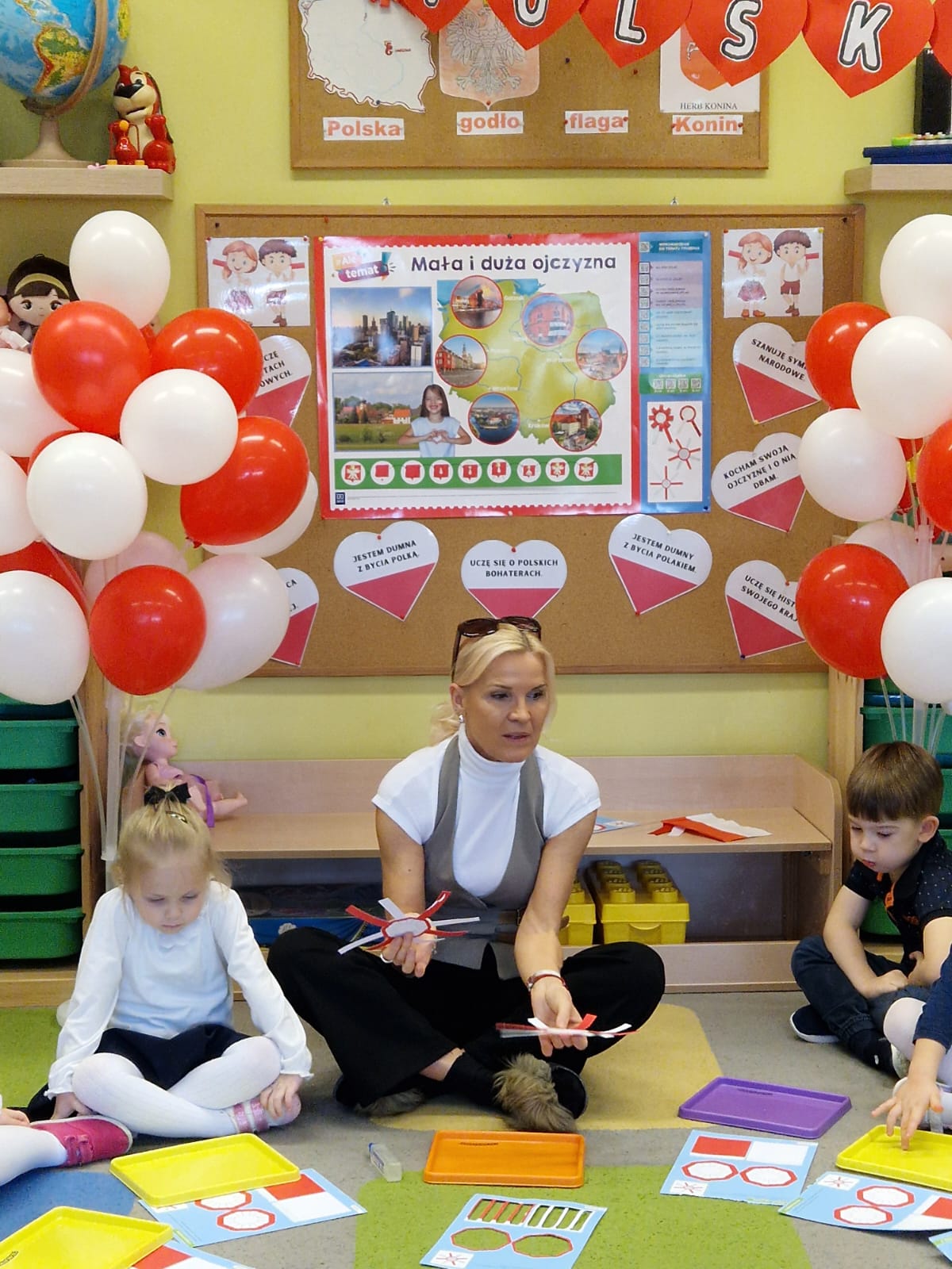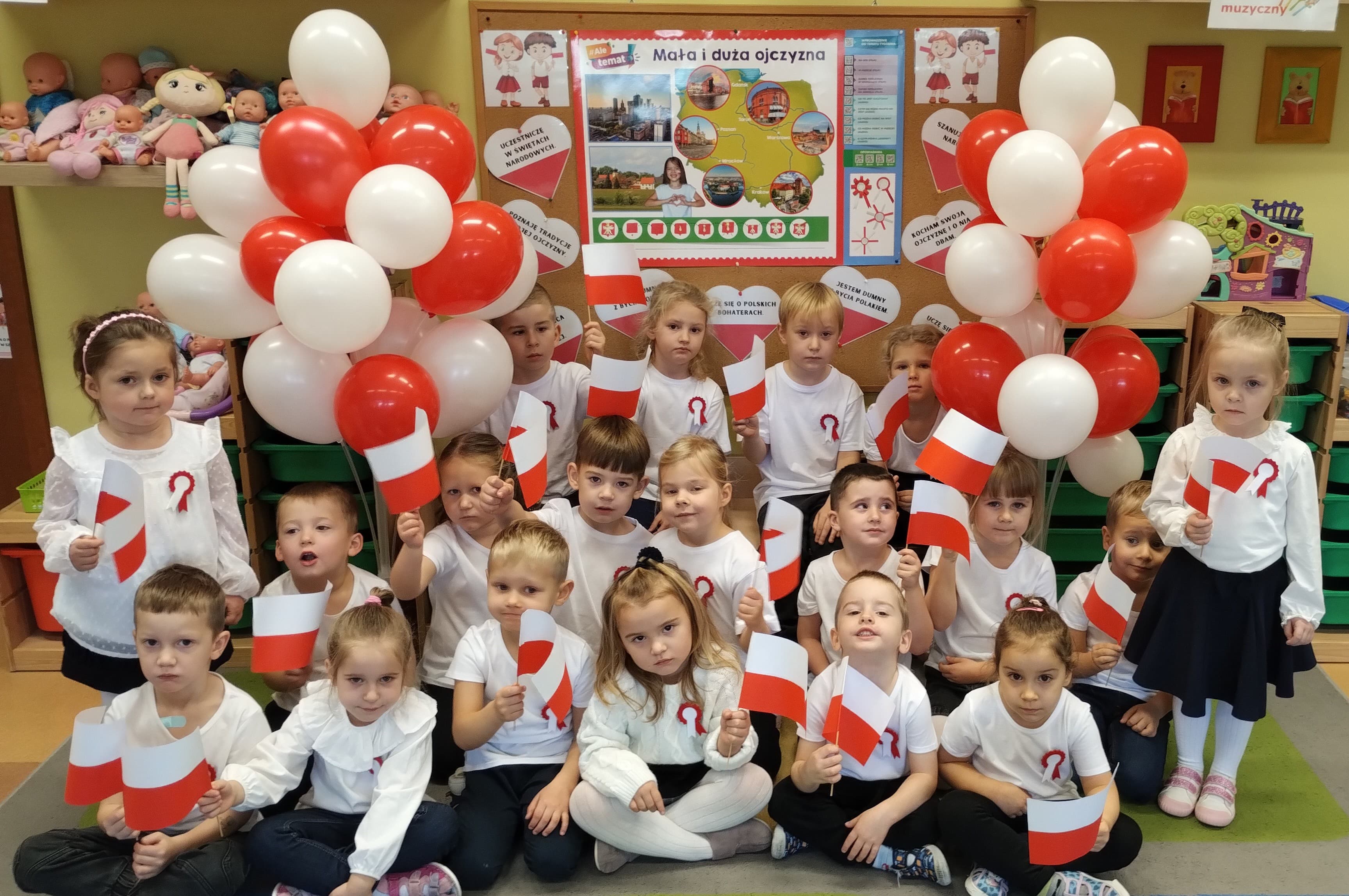 W ramach projektu edukacyjnego „Polska to moja ojczyzna” dzieci z grupy czterolatków uczestniczyły w działaniach mających na celu rozwijanie postaw patriotycznych oraz poznawanie historii i symboli narodowych naszego kraju. Przedszkolaki wzięły udział w akademii z okazji Narodowego Święta Niepodległości, podczas której obserwowały występy starszych kolegów i koleżanek. Wydarzenie to przybliżyło dzieciom znaczenie święta oraz pozwoliło im zrozumieć, czym jest wolność i dlaczego warto być dumnym z bycia Polakiem.