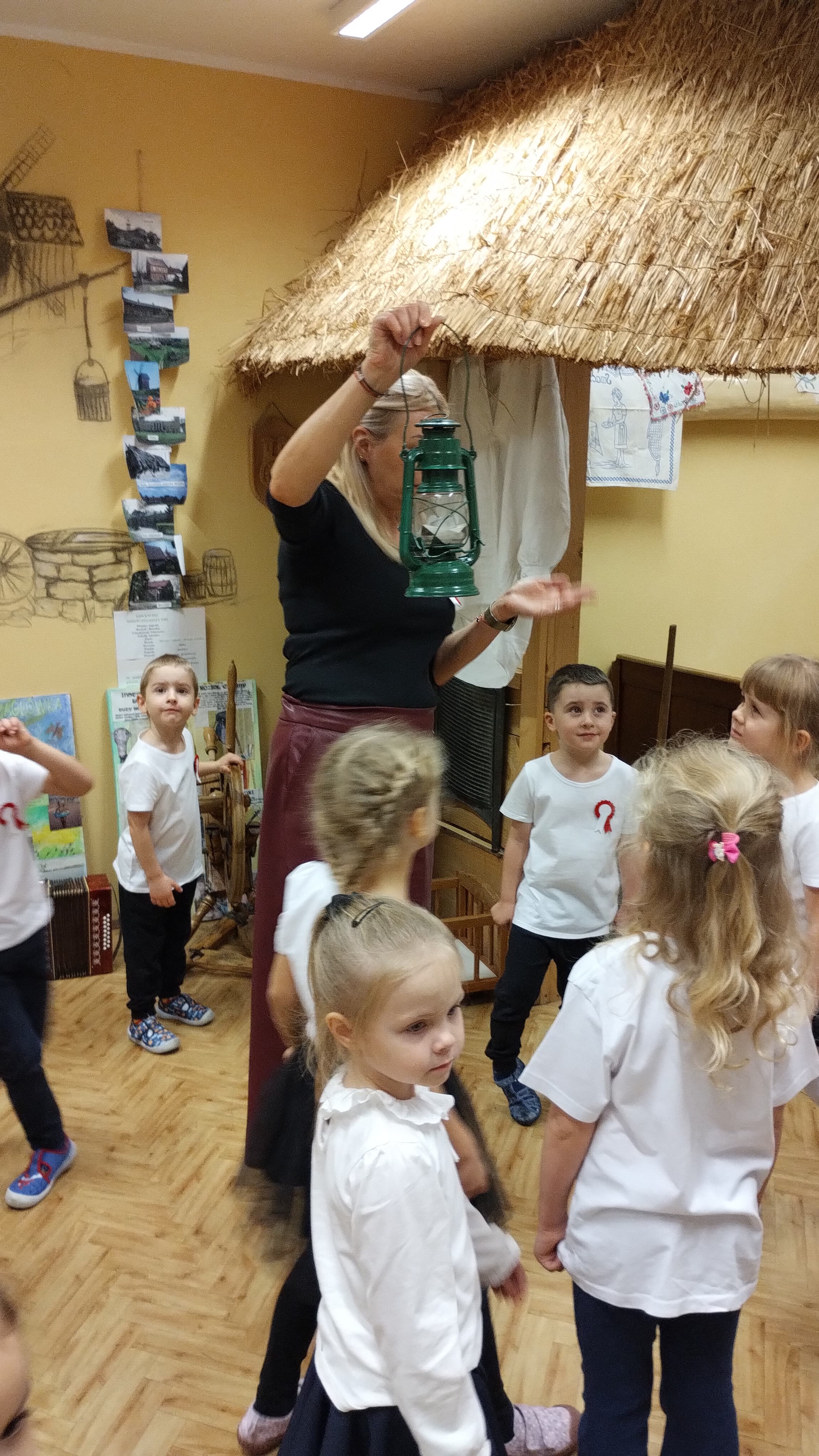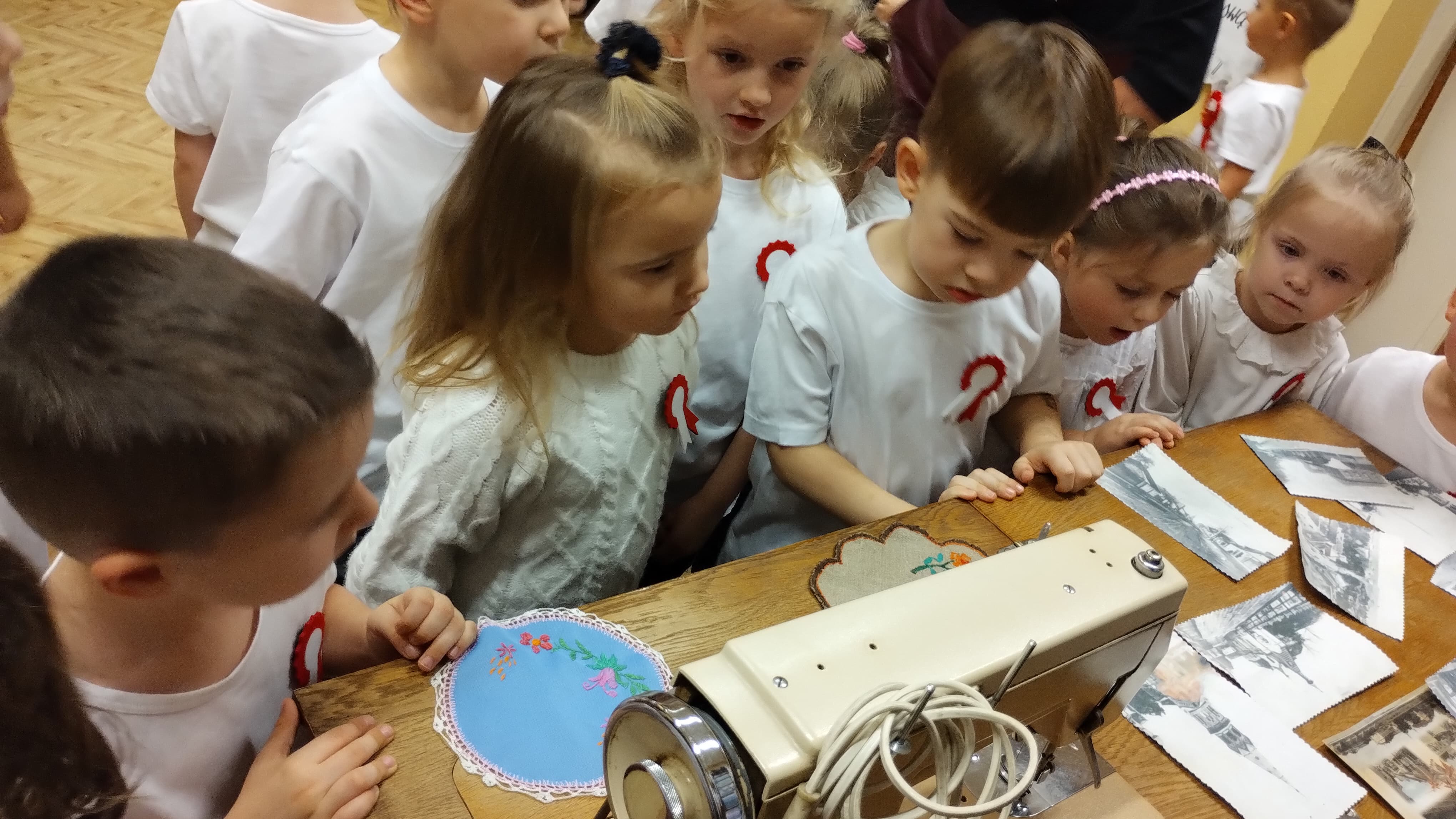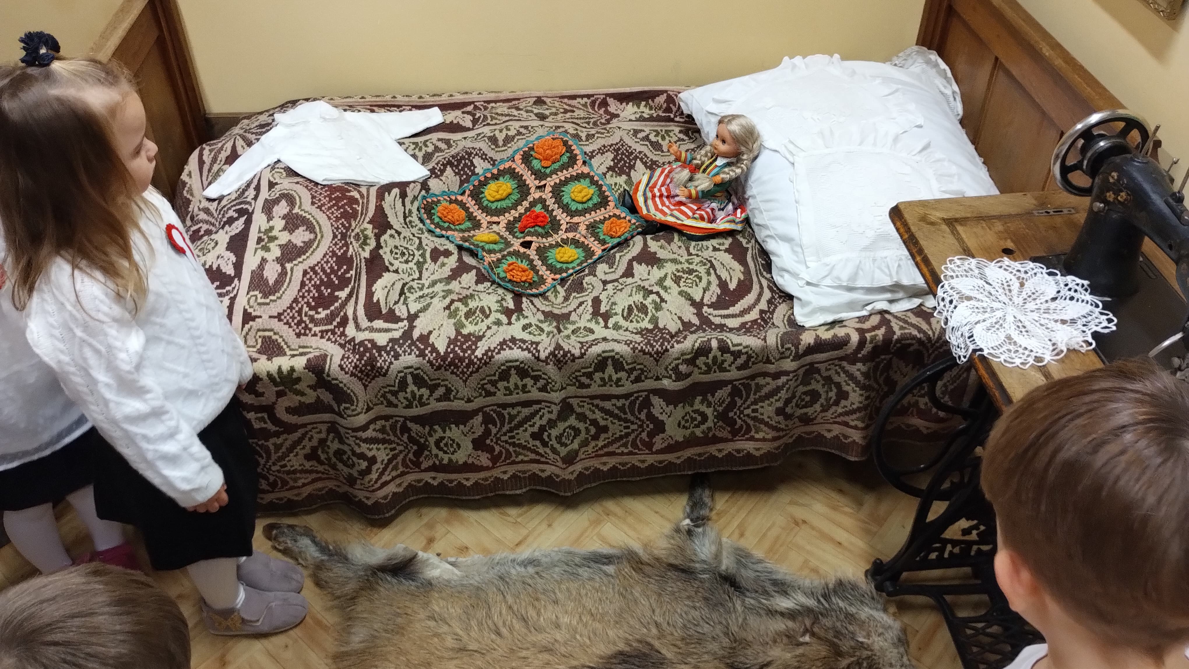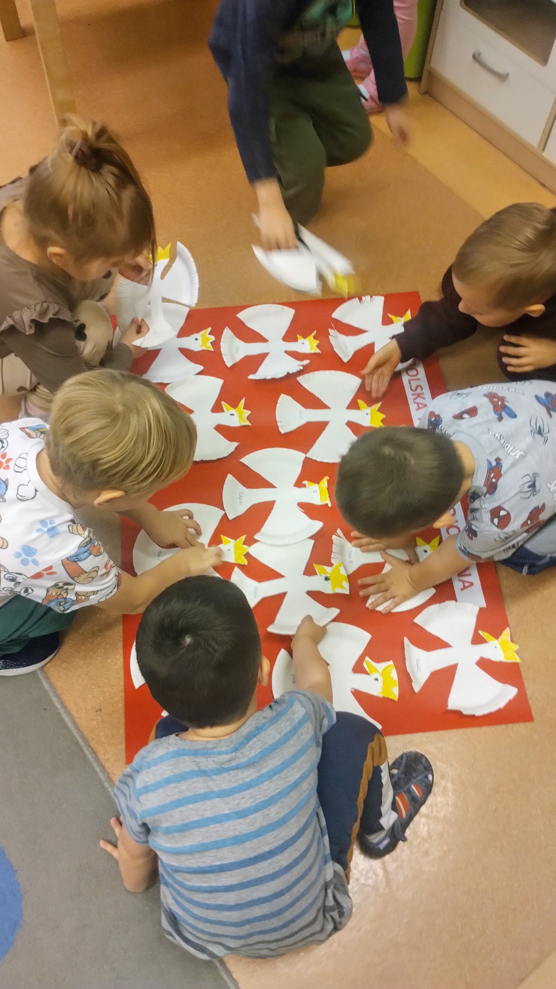 Następnie dzieci odwiedziły przedszkolne mini muzeum, gdzie mogły obejrzeć pamiątki związane z historią Polski – m.in. flagi, godło, zdjęcia i stroje ludowe. W muzeum wysłuchały również legendy o Lechu, Czechu i Rusie, poznając w ten sposób historię powstania państwa polskiego oraz symbolikę białego orła.