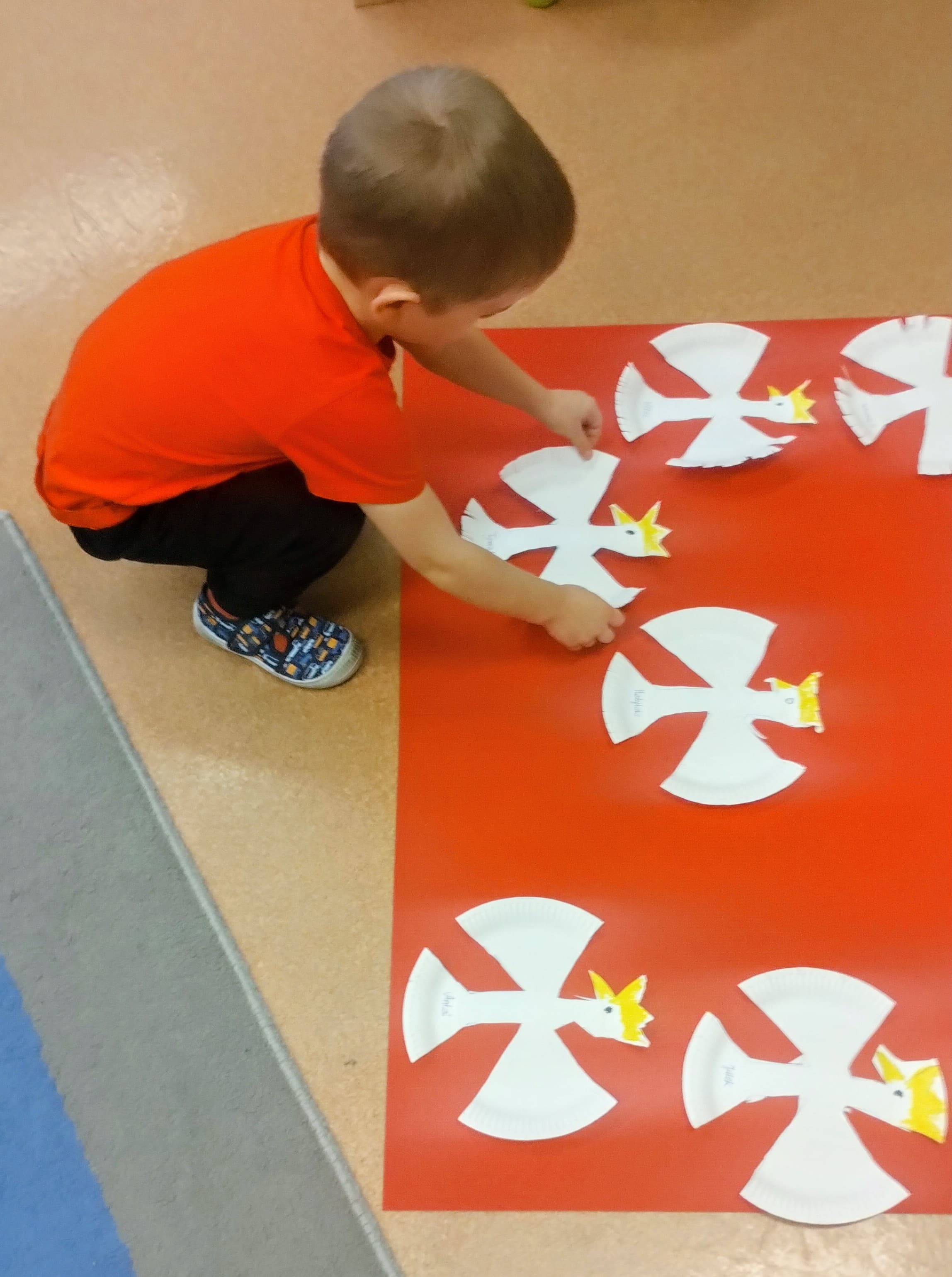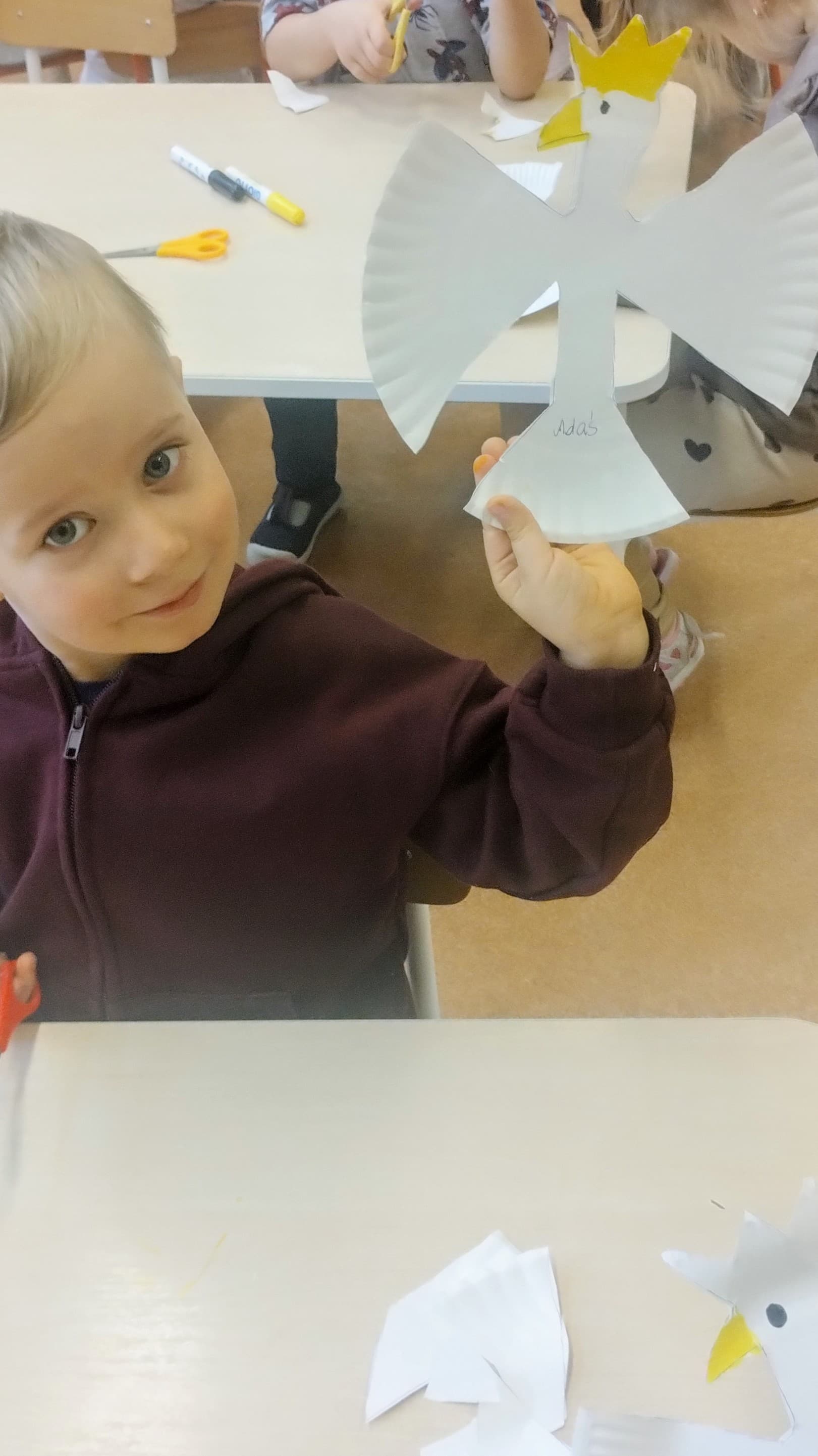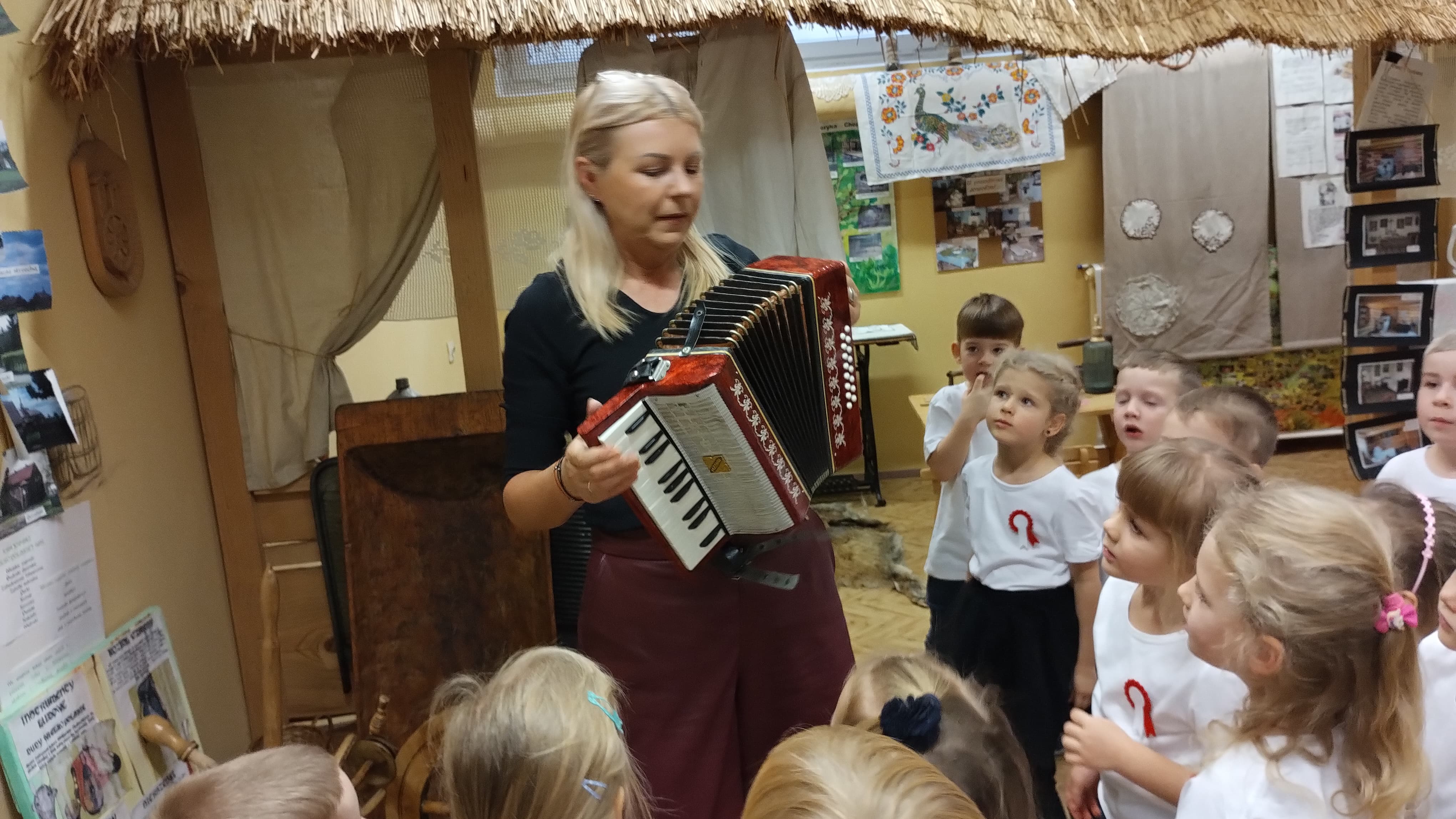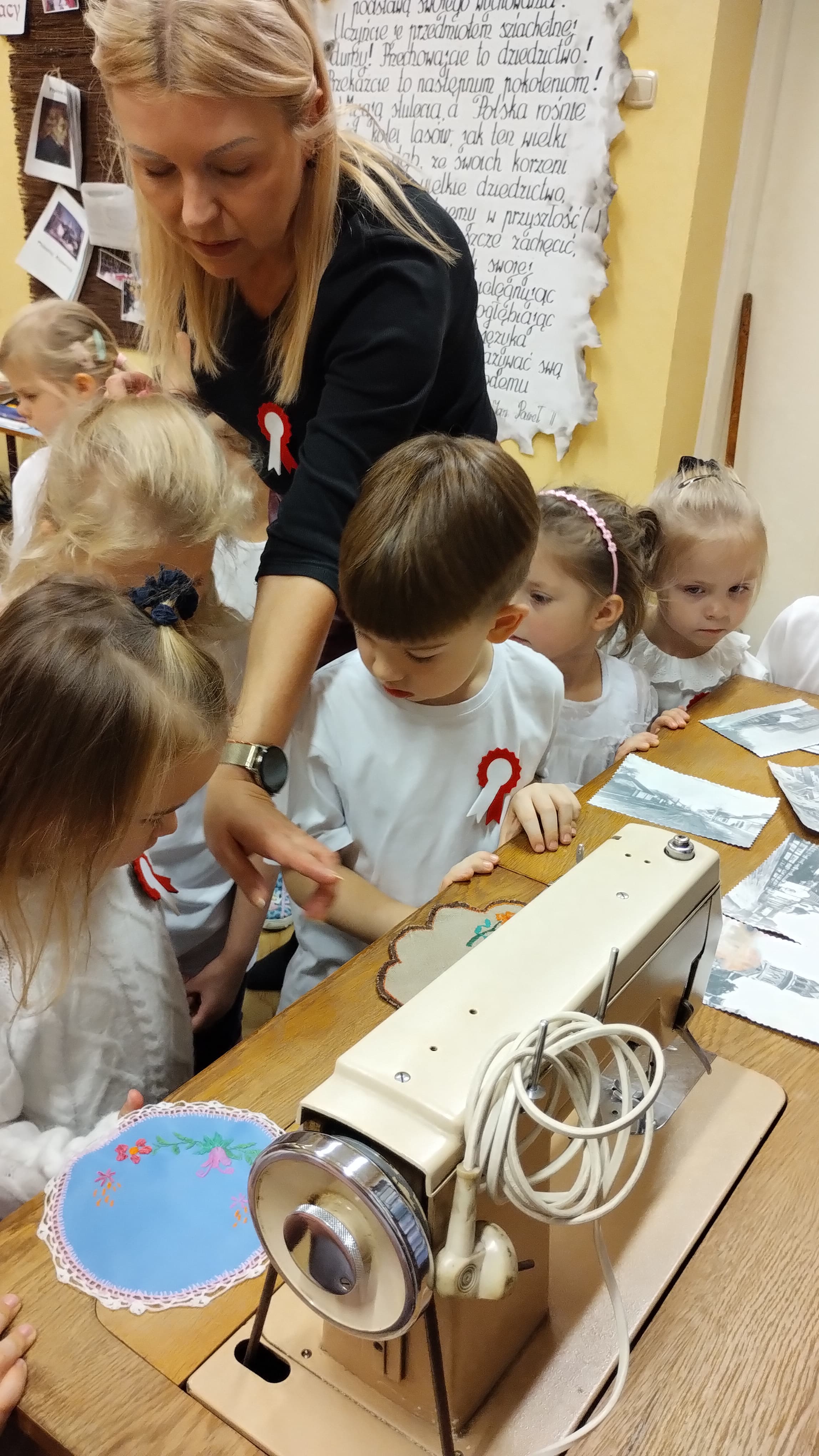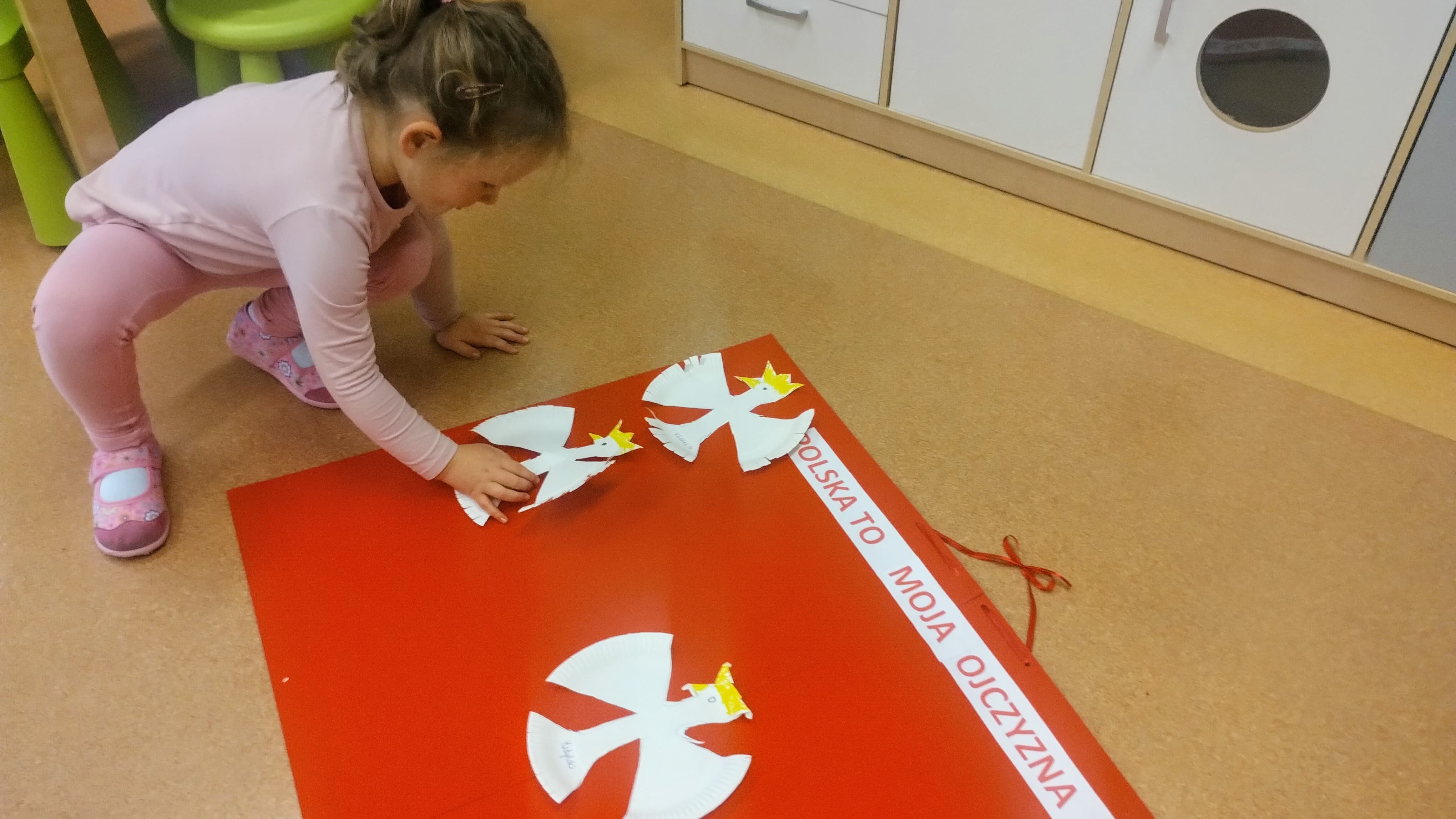 Następnie dzieci odwiedziły przedszkolne mini muzeum, gdzie mogły obejrzeć pamiątki związane z historią Polski – m.in. flagi, godło, zdjęcia i stroje ludowe. W muzeum wysłuchały również legendy o Lechu, Czechu i Rusie, poznając w ten sposób historię powstania państwa polskiego oraz symbolikę białego orła.