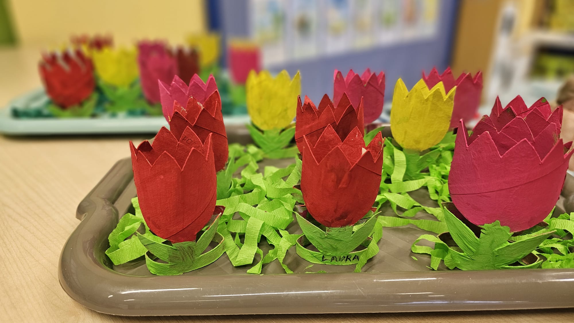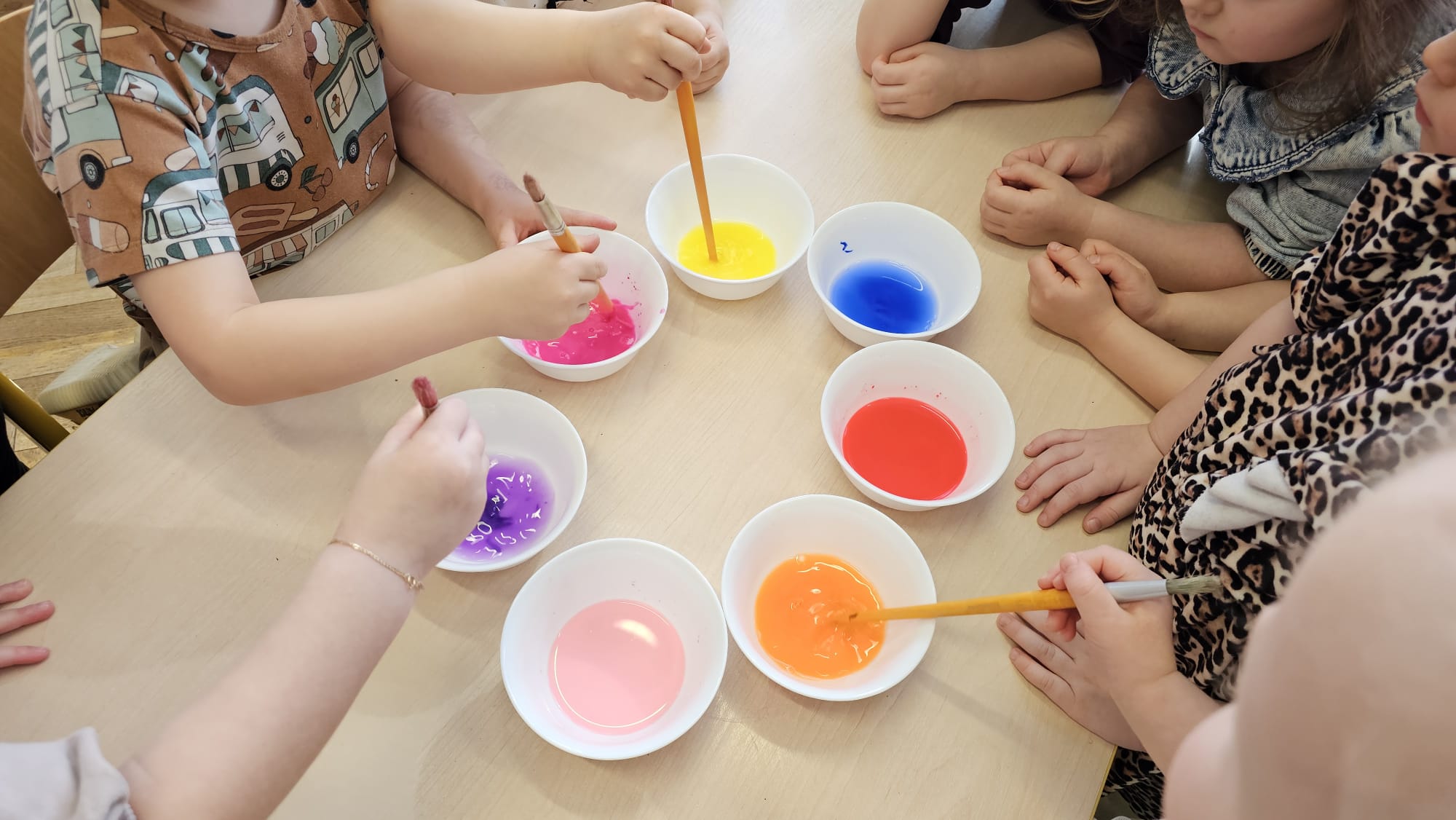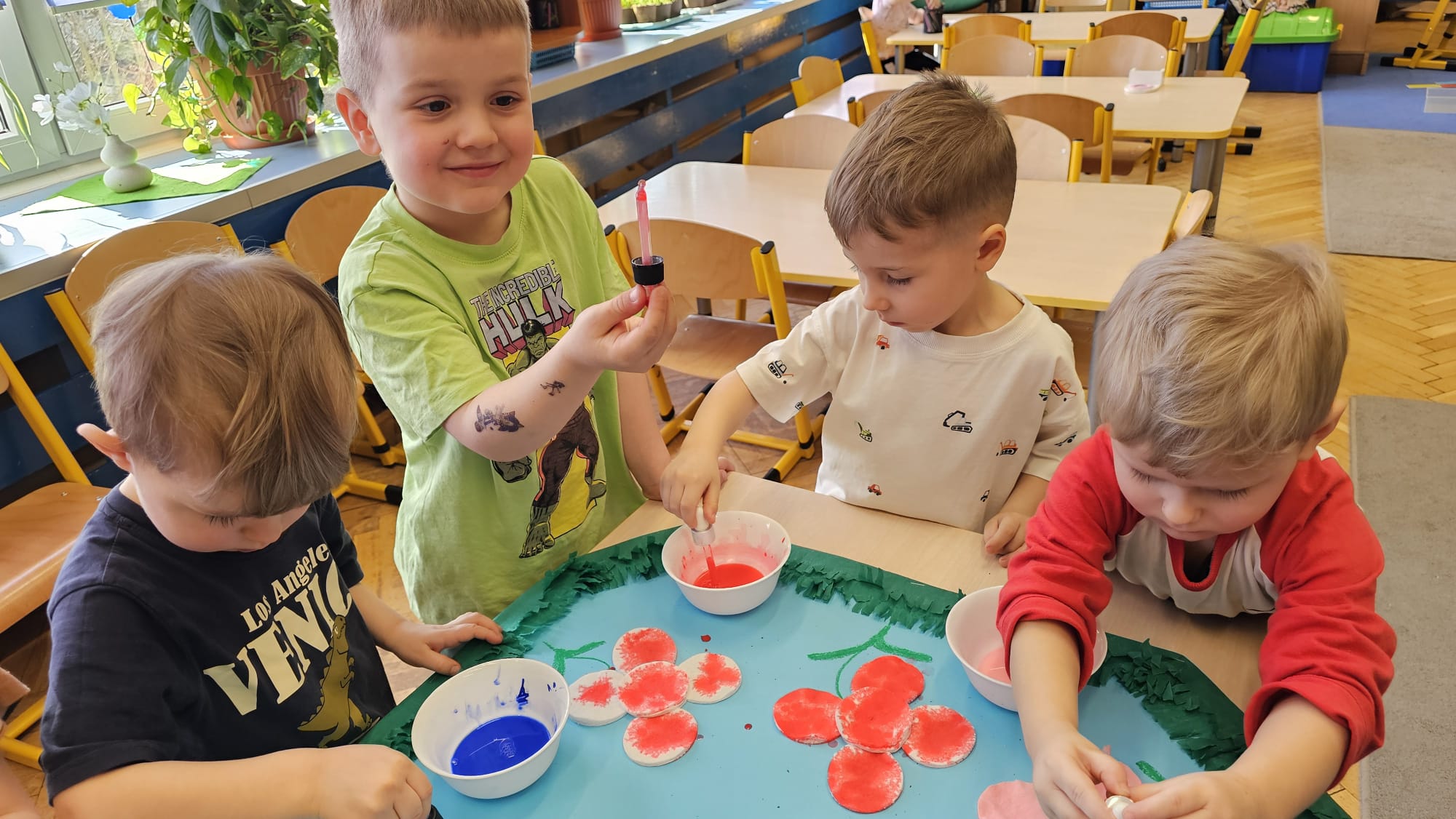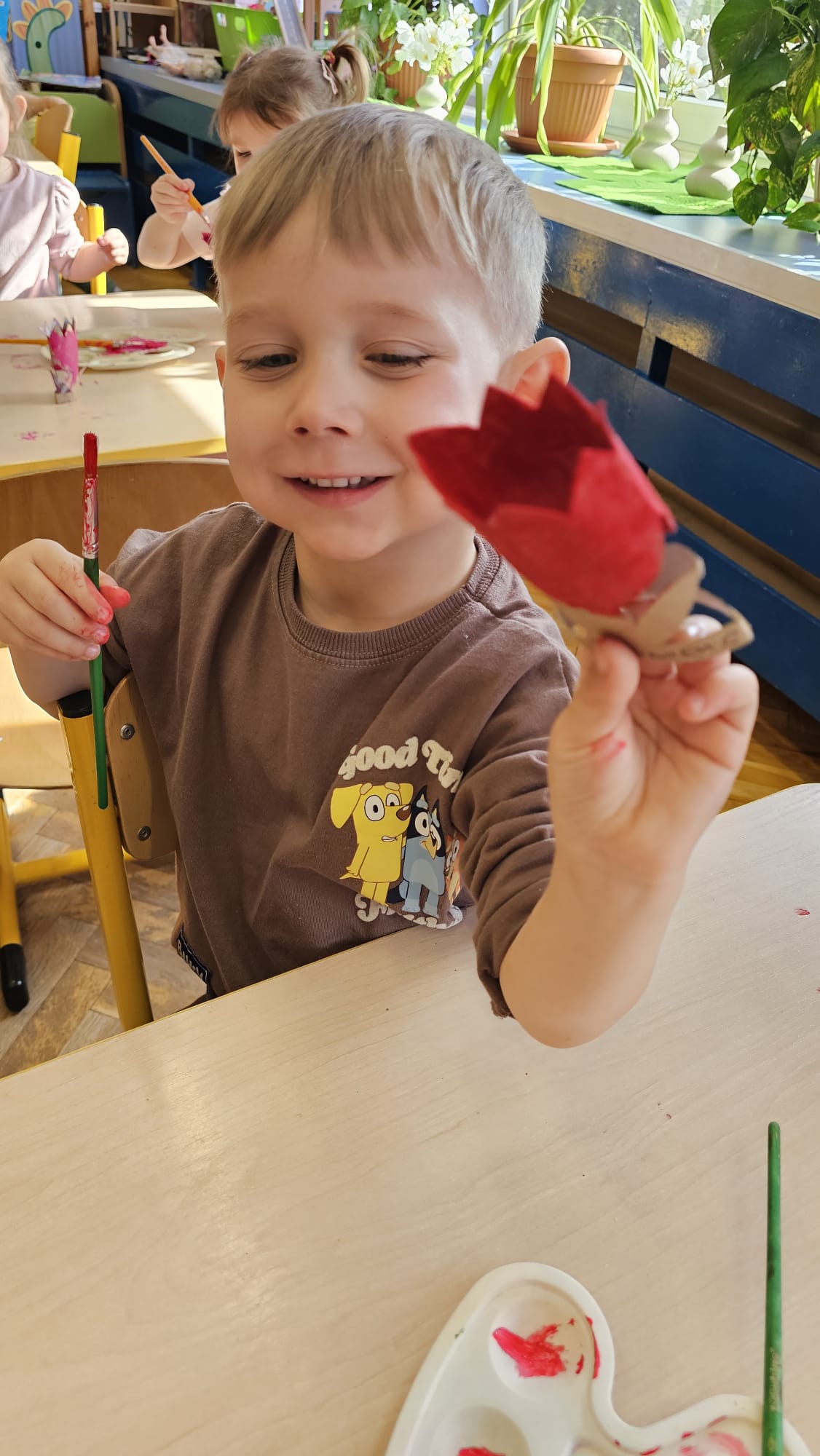Podczas ostatniego cyklu zajęć pt. „Pierwsze wiosenne kwiatki” dzieci z grupy I maluszków miały okazję poznać pierwsze oznaki wiosny w sposób sensoryczny i artystyczny. Maluchy odkrywały przebiśniegi, hiacynty, tulipany oraz bratki, angażując różne zmysły. Dotykały, oglądały, wąchały i rozmawiały o ich wyglądzie, określały zapach. Dzieci z dużym zaangażowaniem tworzyły również własne kwiatki, wykorzystując różnorodne materiały i techniki plastyczne. Zajęcia były pełne radości, kreatywności i wiosennej atmosfery. Celem zajęć było: rozwijanie percepcji sensorycznej (wzrokowej, dotykowej, węchowej), poznanie wybranych wiosennych kwiatów, rozwijanie sprawności manualnej i kreatywności, kształtowanie umiejętności wypowiadania się i wzbogacanie słownictwa, a przede wszystkim budowanie zainteresowania przyrodą i zmianami zachodzącymi wiosną.