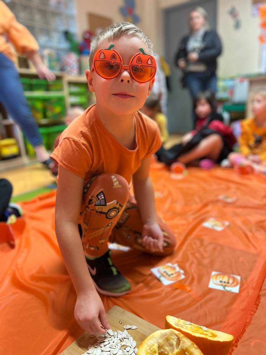 W naszej grupie było naprawdę pomarańczowo! Świętowaliśmy Dzień Dyni- jedno z najbardziej kolorowych i radosnych jesiennych świąt. Dzieci uczestniczyły w różnych zabawach związanych z dynią. Poznały jej budowę, różne odmiany tego owocu oraz wiele dyniowych ciekawostek. Przedszkolaki wysłuchały również historię zaczarowanej Dyni spełniającej życzenia. Po skończonych zajęciach każde dziecko z sali wyszło z własnoręcznie wykonaną dynią.