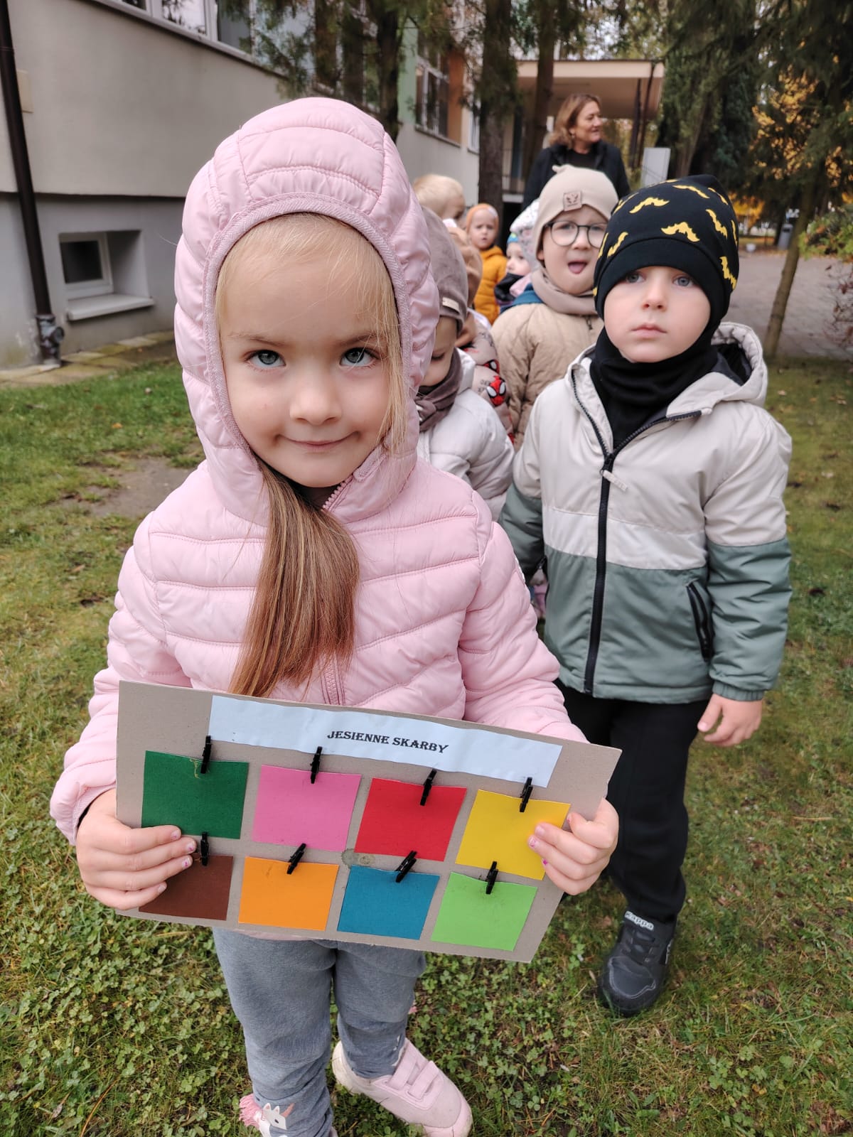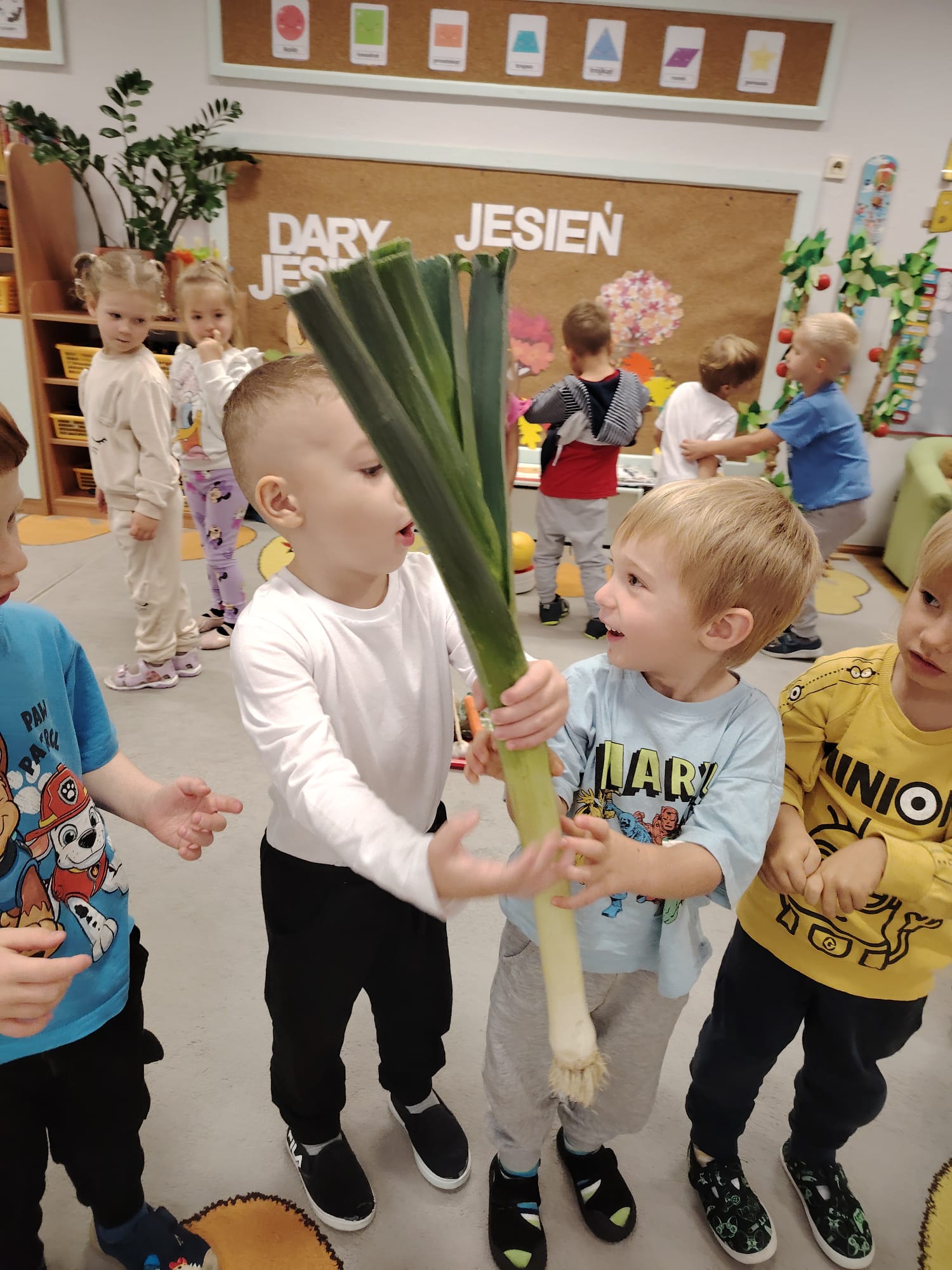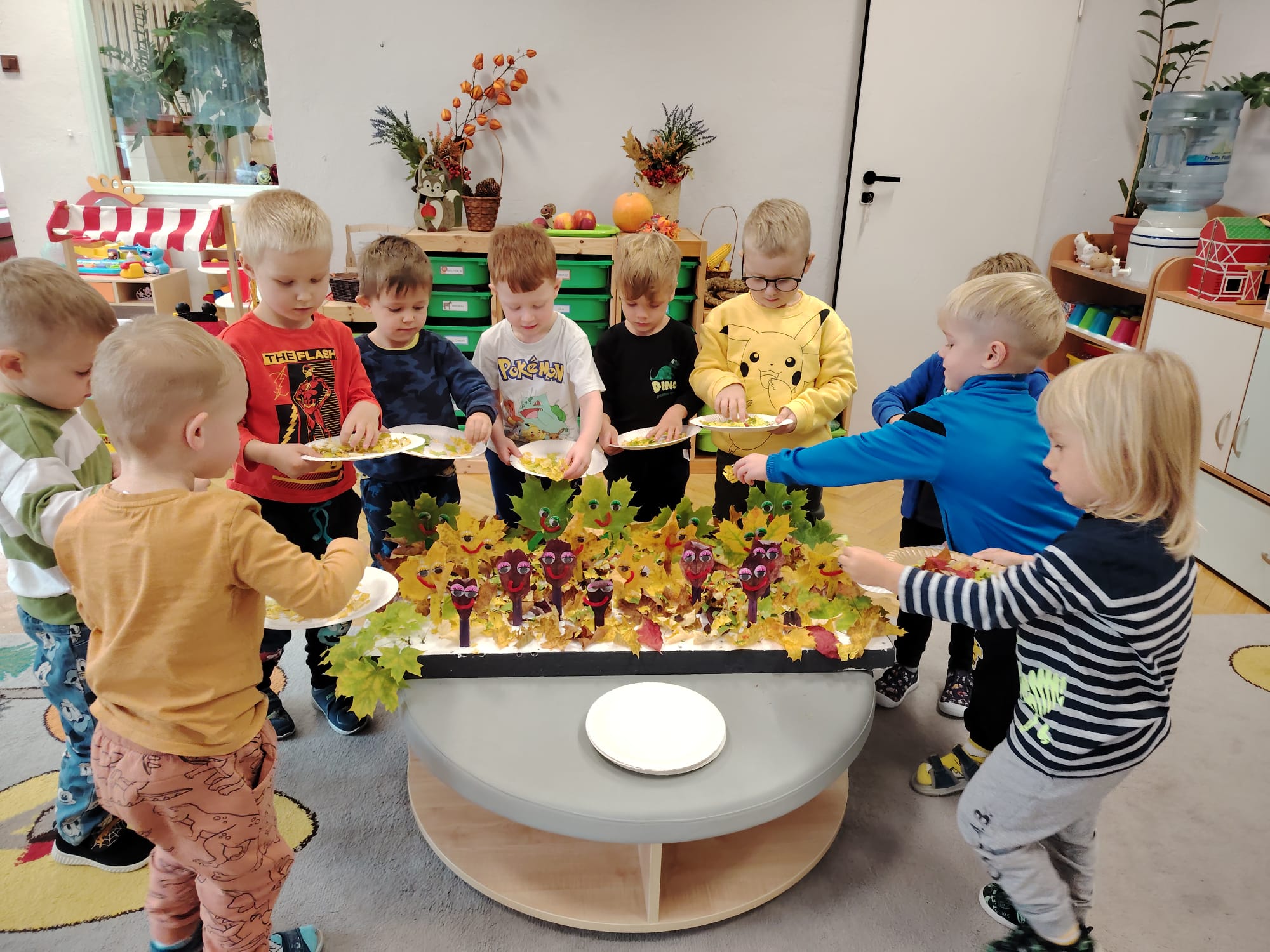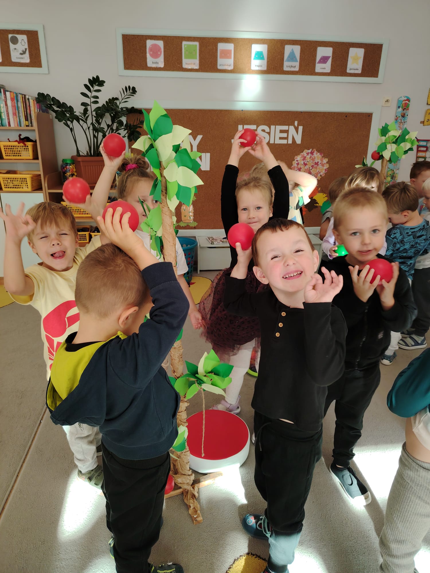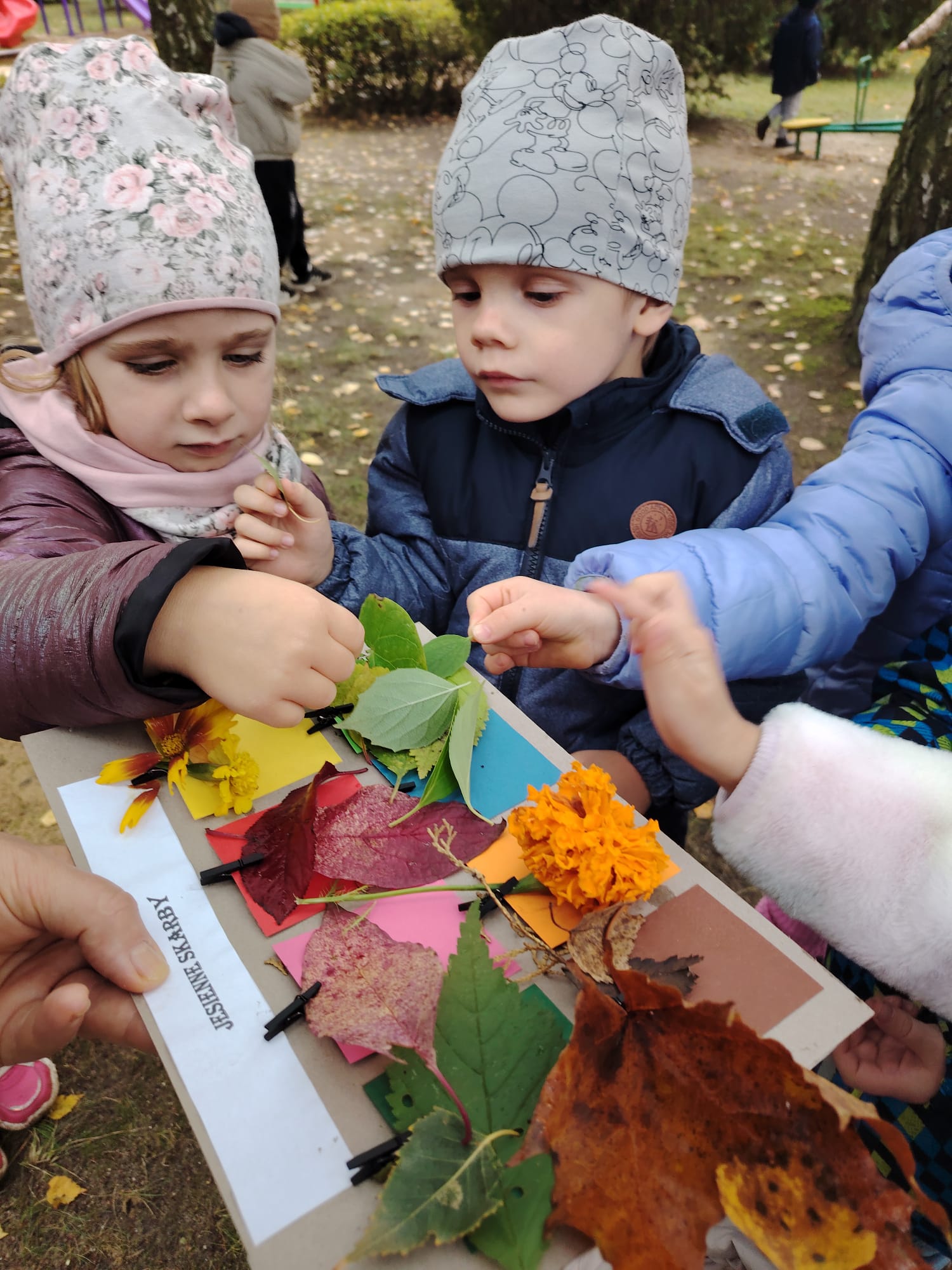 Jesień jest często niedocenianą porą roku, uważa się ją za ponurą i kapryśną... Jednak jest to pora przez nas uwielbiana! Dlaczego? Gdyż niesie ze sobą piękne dary, które służą nam do nauki przez doskonałą zabawę każdego dnia. Wystarczy wyjść na spacer, rozejrzeć się, przykucnąć w trawie, pod drzewami w parku... Znajdujemy wtedy żołędzie, kasztany, szyszki, kolorowe liście, jarzębinę... Czas niepogody to również świetna okazja do przeprowadzania wielozmysłowych zabaw. Grupa II przez ostatnie trzy tygodnie realizowała jesienny projekt edukacyjny, którego głównym celem było kształtowanie postaw poznawczych i proekologicznych poprzez wielozmysłowe doświadczanie otaczającej przyrody. W trakcie działań projektowych dzieci: podczas zabaw sensorycznych nazywały, rozróżniały i klasyfikowały naturalne produkty, rozwijały umiejętność planowania budując przestrzenny ogród z klocków, ćwiczyły analizę i syntezę wzrokową oraz logiczne myślenie, dopasowując warzywa do ich nazw i kształtów, uczestniczyły w zabawach ruchowych z elementami metody aktywnego słuchania w grze „Dopasuj owoc do drzewa”. Podczas jesiennego spaceru edukacyjnego przedszkolaki realizowały zadania z listy obserwacyjnej, rozwijając spostrzegawczość i świadomość zmian zachodzących w przyrodzie. W ramach podsumowania powstała galeria prac dzieci- „Kolorowa jesień oczami dziecka” stworzona z postaci z liści na patykach. Dzięki różnorodnym formom aktywności nasze przedszkolaki miały okazję uczyć się przez działanie, odkrywanie i współdziałanie w grupie. Był to naprawdę radosny i edukacyjnie drogocenny czas. Zapraszamy do galerii.