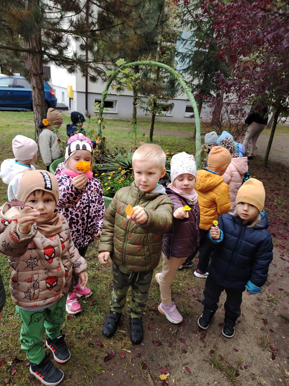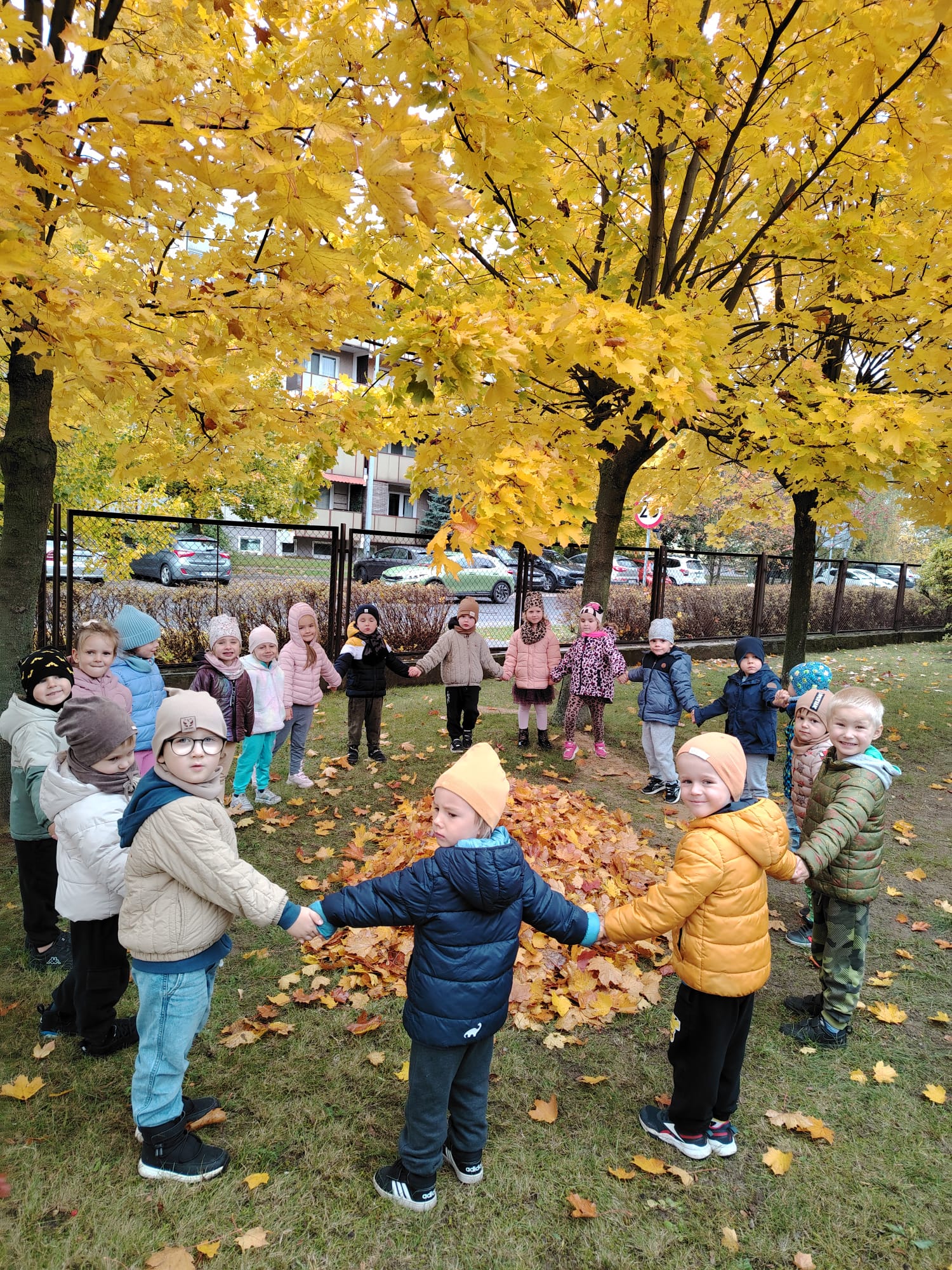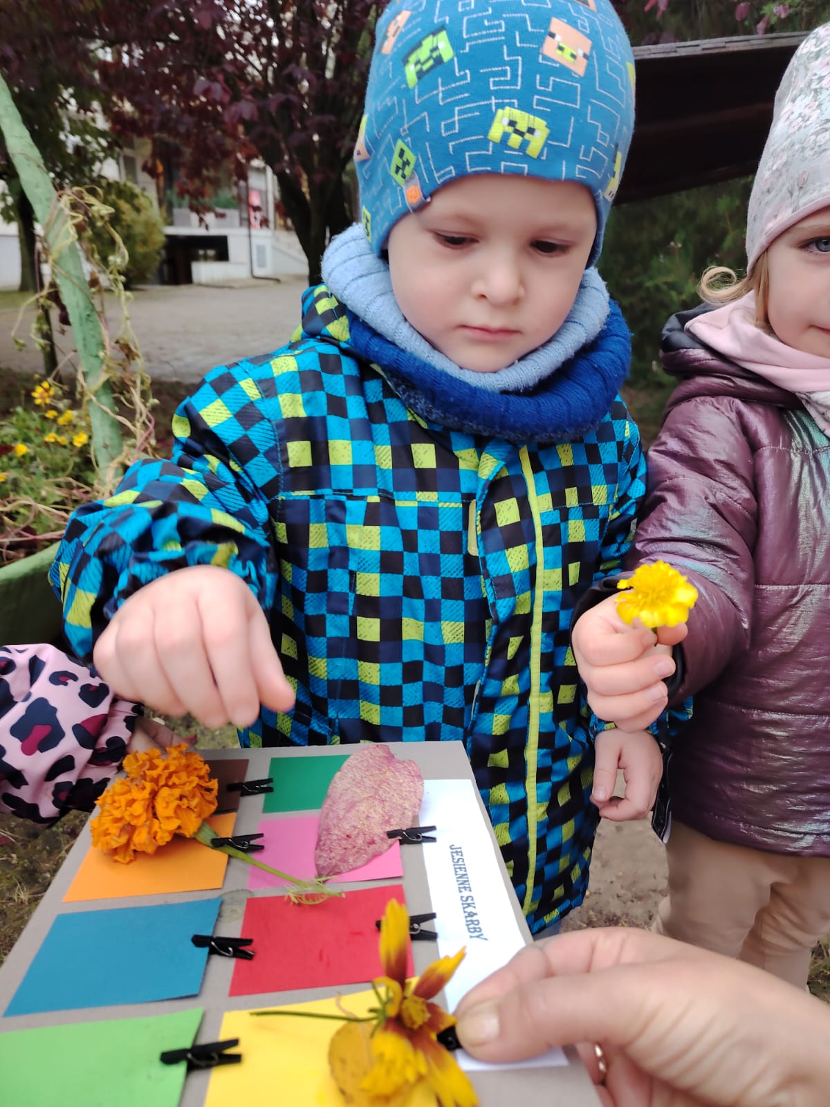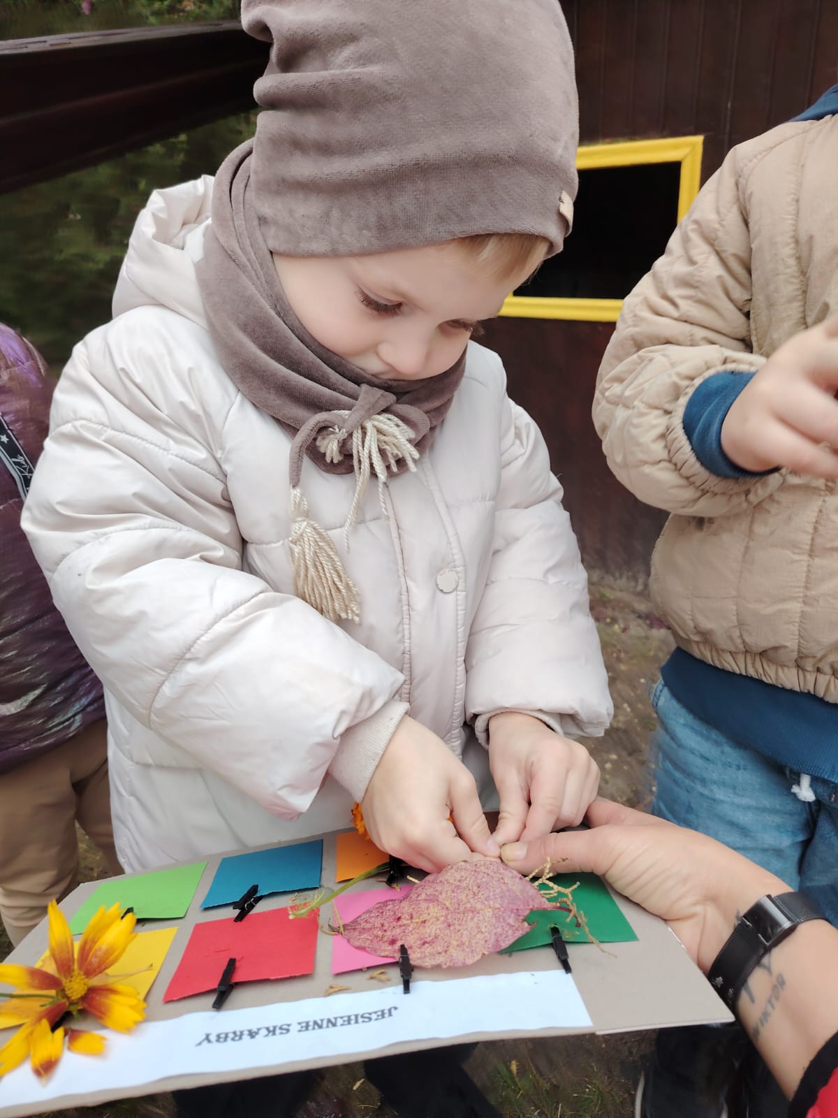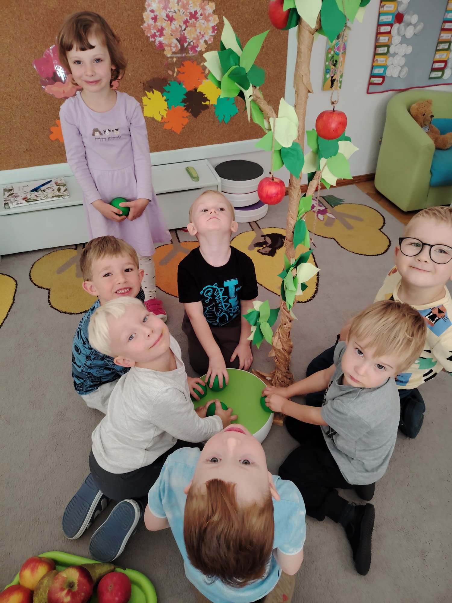 Jesień jest często niedocenianą porą roku, uważa się ją za ponurą i kapryśną... Jednak jest to pora przez nas uwielbiana! Dlaczego? Gdyż niesie ze sobą piękne dary, które służą nam do nauki przez doskonałą zabawę każdego dnia. Wystarczy wyjść na spacer, rozejrzeć się, przykucnąć w trawie, pod drzewami w parku... Znajdujemy wtedy żołędzie, kasztany, szyszki, kolorowe liście, jarzębinę... Czas niepogody to również świetna okazja do przeprowadzania wielozmysłowych zabaw. Grupa II przez ostatnie trzy tygodnie realizowała jesienny projekt edukacyjny, którego głównym celem było kształtowanie postaw poznawczych i proekologicznych poprzez wielozmysłowe doświadczanie otaczającej przyrody. W trakcie działań projektowych dzieci: podczas zabaw sensorycznych nazywały, rozróżniały i klasyfikowały naturalne produkty, rozwijały umiejętność planowania budując przestrzenny ogród z klocków, ćwiczyły analizę i syntezę wzrokową oraz logiczne myślenie, dopasowując warzywa do ich nazw i kształtów, uczestniczyły w zabawach ruchowych z elementami metody aktywnego słuchania w grze „Dopasuj owoc do drzewa”. Podczas jesiennego spaceru edukacyjnego przedszkolaki realizowały zadania z listy obserwacyjnej, rozwijając spostrzegawczość i świadomość zmian zachodzących w przyrodzie. W ramach podsumowania powstała galeria prac dzieci- „Kolorowa jesień oczami dziecka” stworzona z postaci z liści na patykach. Dzięki różnorodnym formom aktywności nasze przedszkolaki miały okazję uczyć się przez działanie, odkrywanie i współdziałanie w grupie. Był to naprawdę radosny i edukacyjnie drogocenny czas. Zapraszamy do galerii.