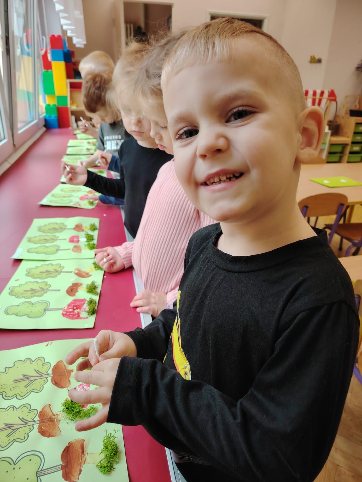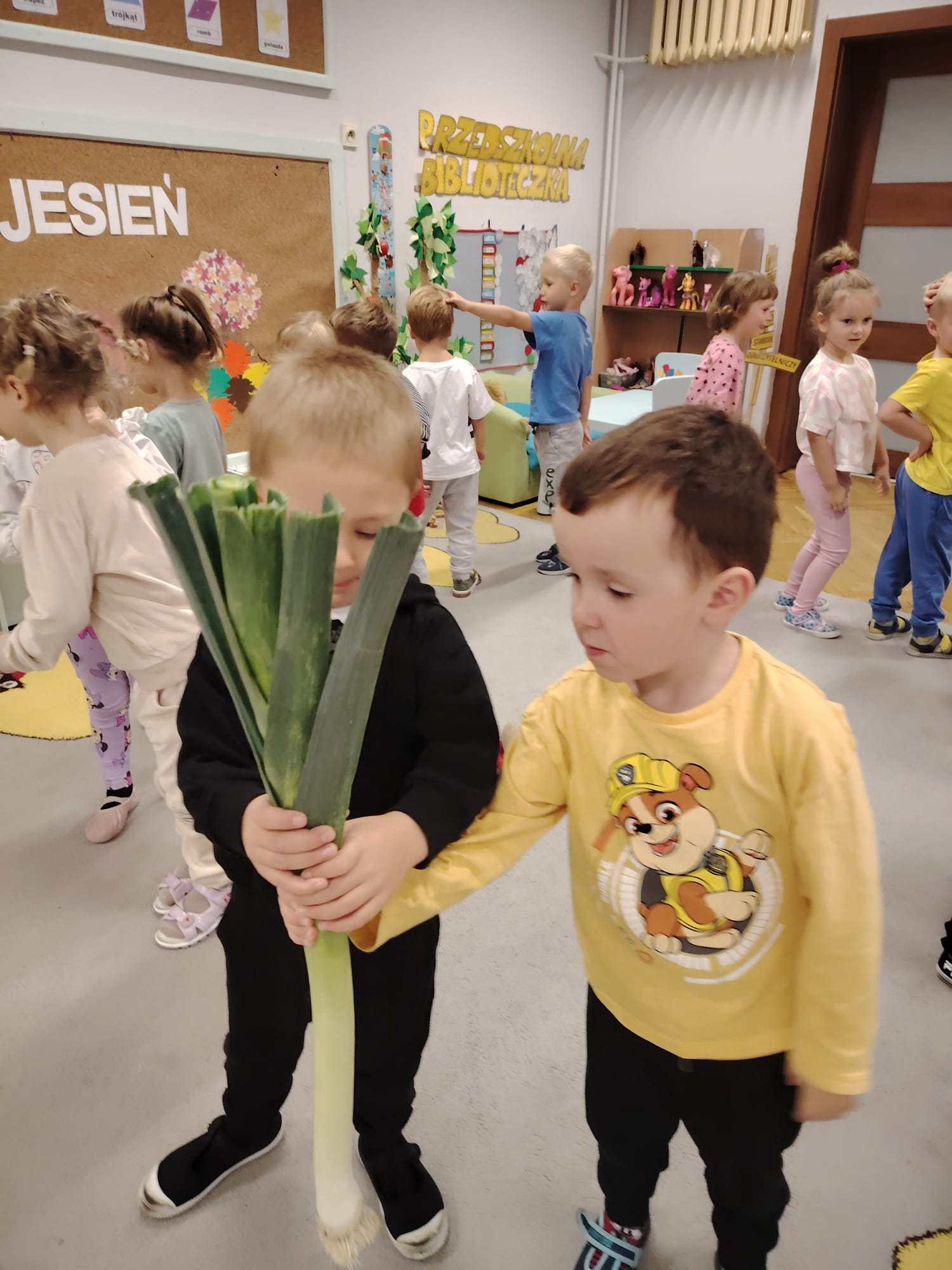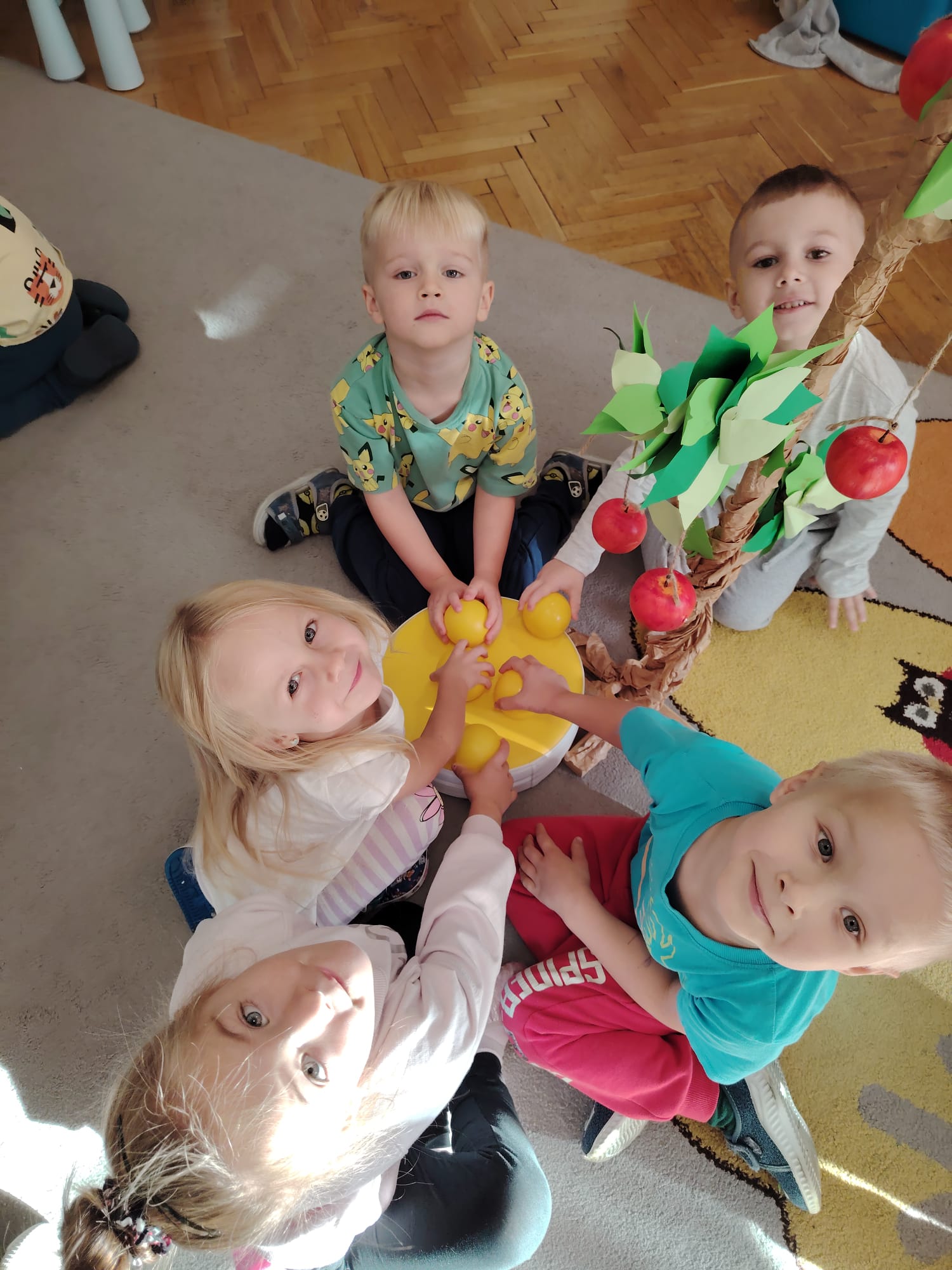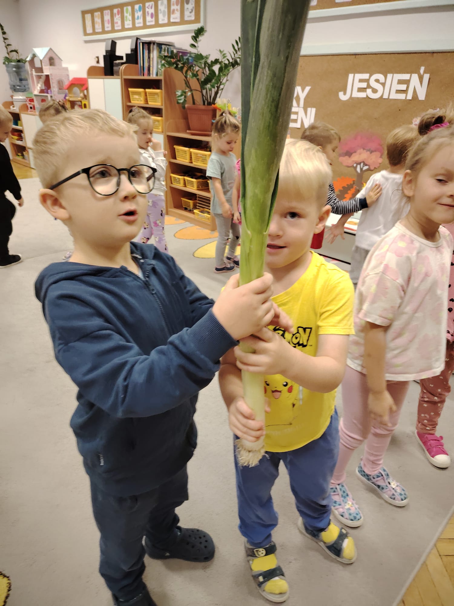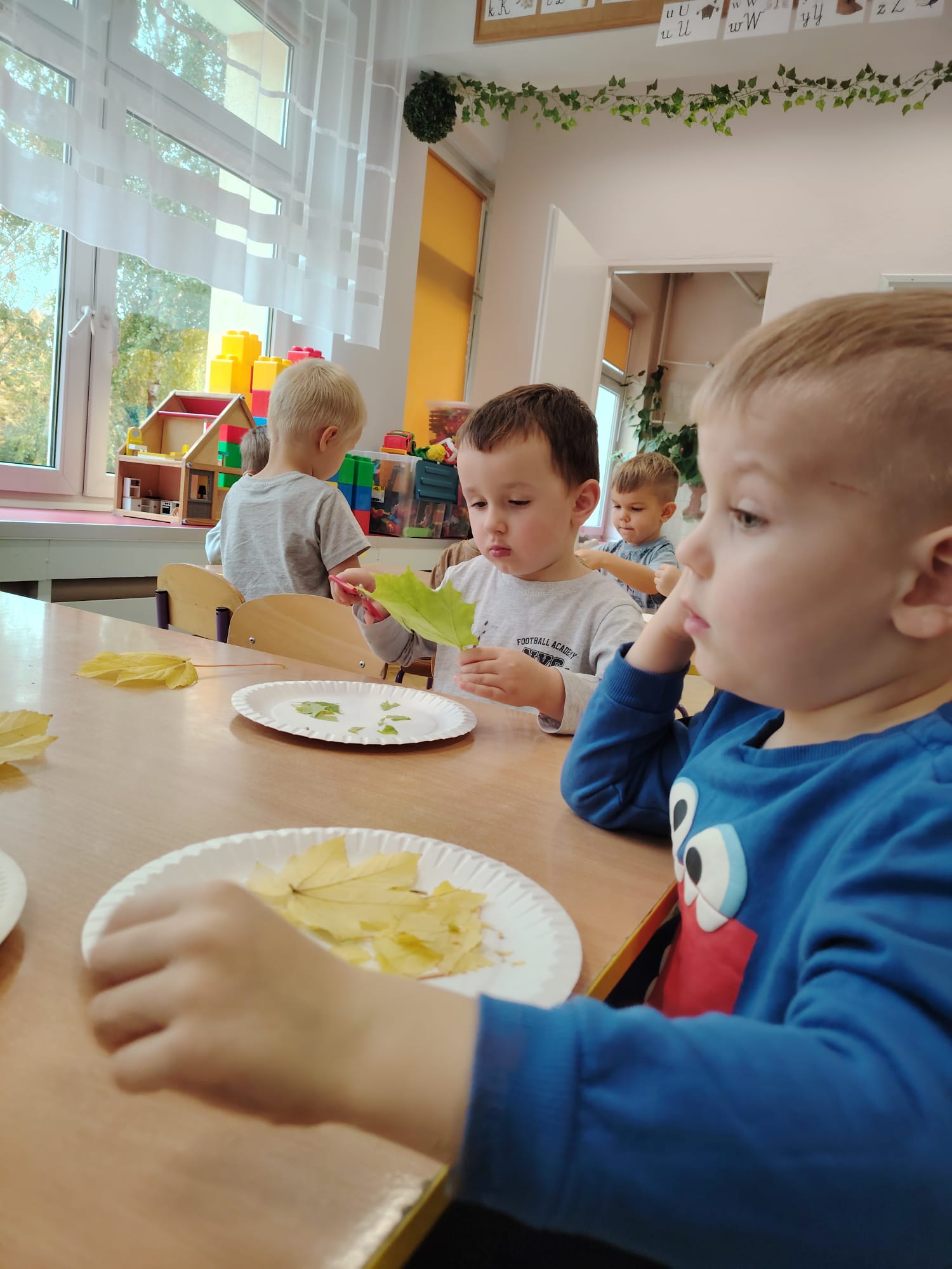 Jesień jest często niedocenianą porą roku, uważa się ją za ponurą i kapryśną... Jednak jest to pora przez nas uwielbiana! Dlaczego? Gdyż niesie ze sobą piękne dary, które służą nam do nauki przez doskonałą zabawę każdego dnia. Wystarczy wyjść na spacer, rozejrzeć się, przykucnąć w trawie, pod drzewami w parku... Znajdujemy wtedy żołędzie, kasztany, szyszki, kolorowe liście, jarzębinę... Czas niepogody to również świetna okazja do przeprowadzania wielozmysłowych zabaw. Grupa II przez ostatnie trzy tygodnie realizowała jesienny projekt edukacyjny, którego głównym celem było kształtowanie postaw poznawczych i proekologicznych poprzez wielozmysłowe doświadczanie otaczającej przyrody. W trakcie działań projektowych dzieci: podczas zabaw sensorycznych nazywały, rozróżniały i klasyfikowały naturalne produkty, rozwijały umiejętność planowania budując przestrzenny ogród z klocków, ćwiczyły analizę i syntezę wzrokową oraz logiczne myślenie, dopasowując warzywa do ich nazw i kształtów, uczestniczyły w zabawach ruchowych z elementami metody aktywnego słuchania w grze „Dopasuj owoc do drzewa”. Podczas jesiennego spaceru edukacyjnego przedszkolaki realizowały zadania z listy obserwacyjnej, rozwijając spostrzegawczość i świadomość zmian zachodzących w przyrodzie. W ramach podsumowania powstała galeria prac dzieci- „Kolorowa jesień oczami dziecka” stworzona z postaci z liści na patykach. Dzięki różnorodnym formom aktywności nasze przedszkolaki miały okazję uczyć się przez działanie, odkrywanie i współdziałanie w grupie. Był to naprawdę radosny i edukacyjnie drogocenny czas. Zapraszamy do galerii.
