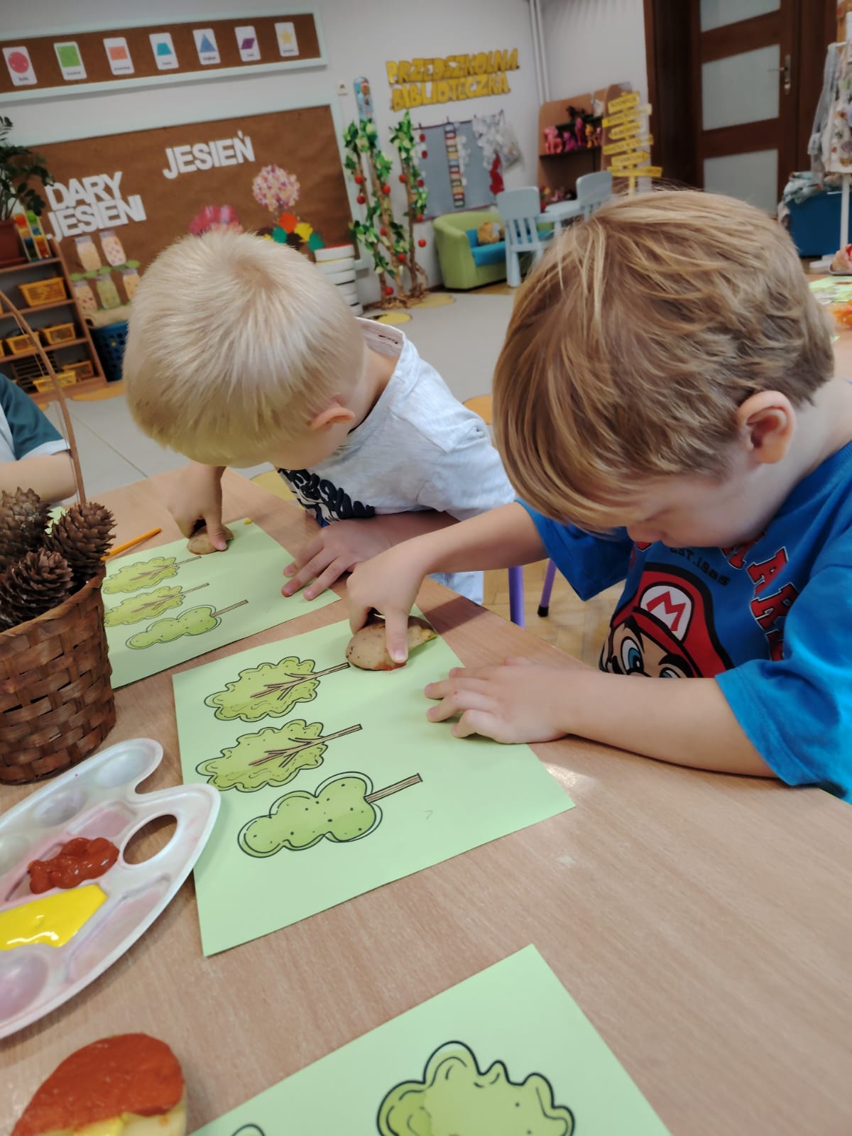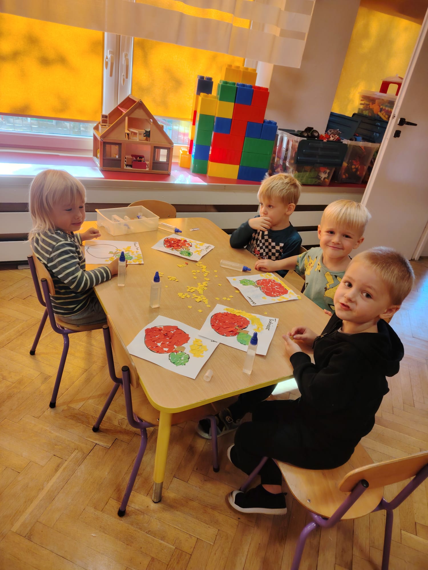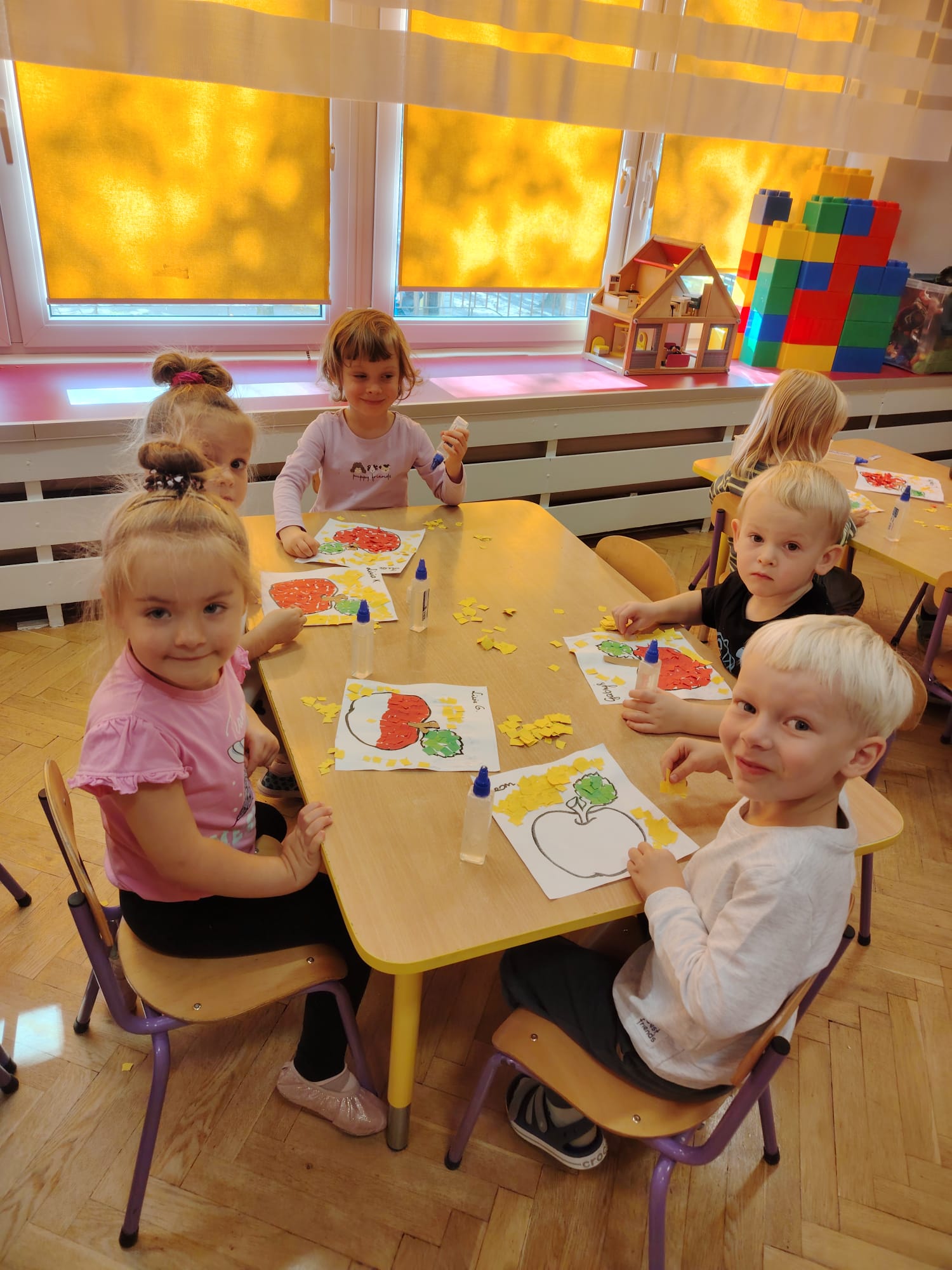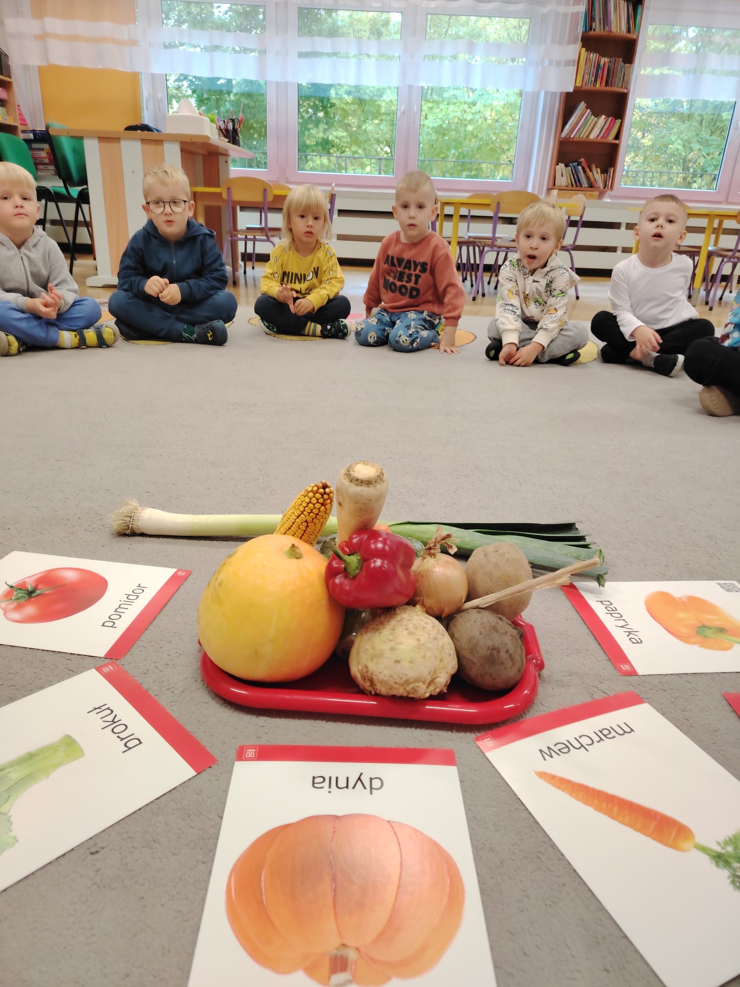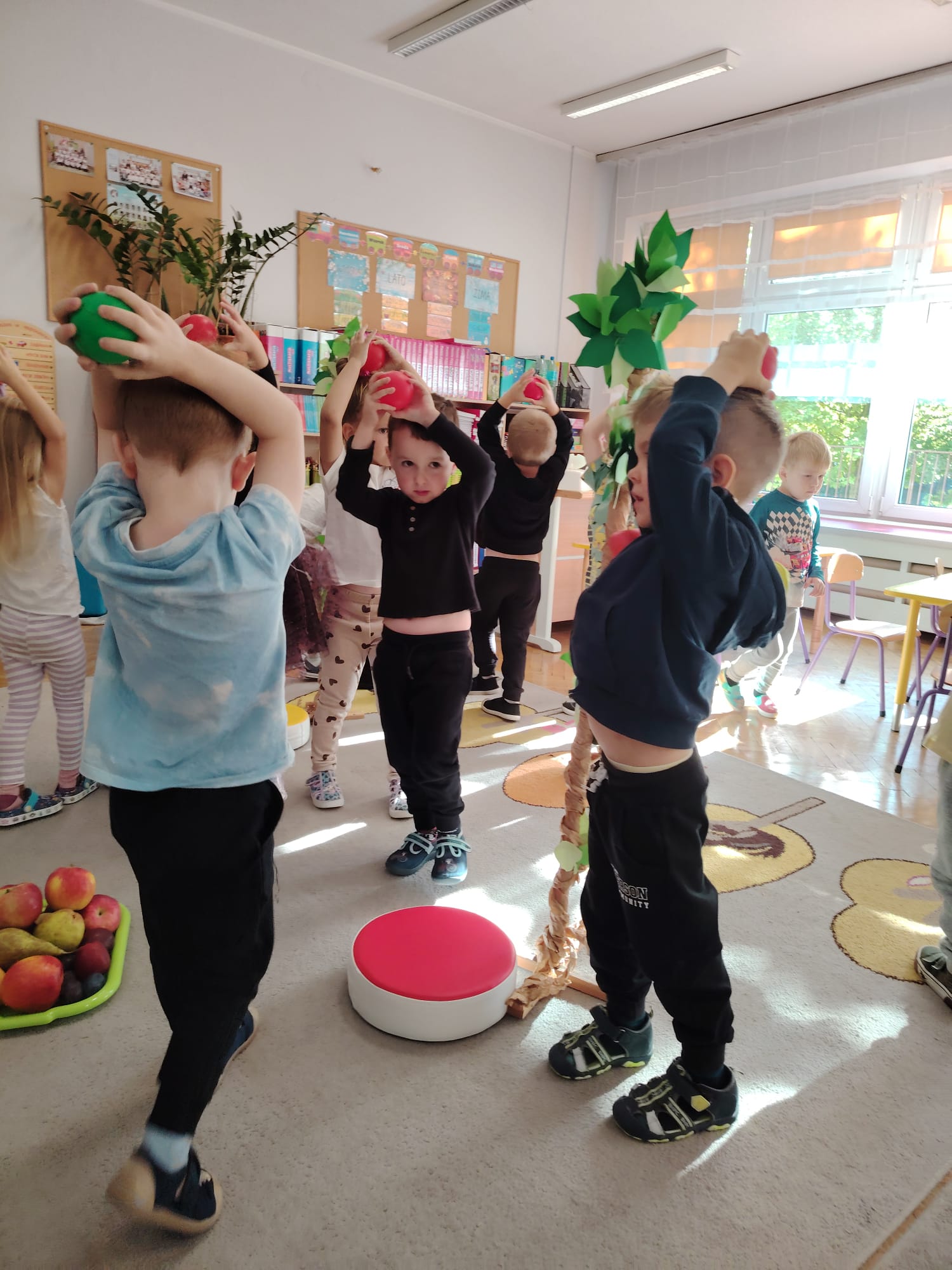 Jesień jest często niedocenianą porą roku, uważa się ją za ponurą i kapryśną... Jednak jest to pora przez nas uwielbiana! Dlaczego? Gdyż niesie ze sobą piękne dary, które służą nam do nauki przez doskonałą zabawę każdego dnia. Wystarczy wyjść na spacer, rozejrzeć się, przykucnąć w trawie, pod drzewami w parku... Znajdujemy wtedy żołędzie, kasztany, szyszki, kolorowe liście, jarzębinę... Czas niepogody to również świetna okazja do przeprowadzania wielozmysłowych zabaw. Grupa II przez ostatnie trzy tygodnie realizowała jesienny projekt edukacyjny, którego głównym celem było kształtowanie postaw poznawczych i proekologicznych poprzez wielozmysłowe doświadczanie otaczającej przyrody. W trakcie działań projektowych dzieci: podczas zabaw sensorycznych nazywały, rozróżniały i klasyfikowały naturalne produkty, rozwijały umiejętność planowania budując przestrzenny ogród z klocków, ćwiczyły analizę i syntezę wzrokową oraz logiczne myślenie, dopasowując warzywa do ich nazw i kształtów, uczestniczyły w zabawach ruchowych z elementami metody aktywnego słuchania w grze „Dopasuj owoc do drzewa”. Podczas jesiennego spaceru edukacyjnego przedszkolaki realizowały zadania z listy obserwacyjnej, rozwijając spostrzegawczość i świadomość zmian zachodzących w przyrodzie. W ramach podsumowania powstała galeria prac dzieci- „Kolorowa jesień oczami dziecka” stworzona z postaci z liści na patykach. Dzięki różnorodnym formom aktywności nasze przedszkolaki miały okazję uczyć się przez działanie, odkrywanie i współdziałanie w grupie. Był to naprawdę radosny i edukacyjnie drogocenny czas. Zapraszamy do galerii.