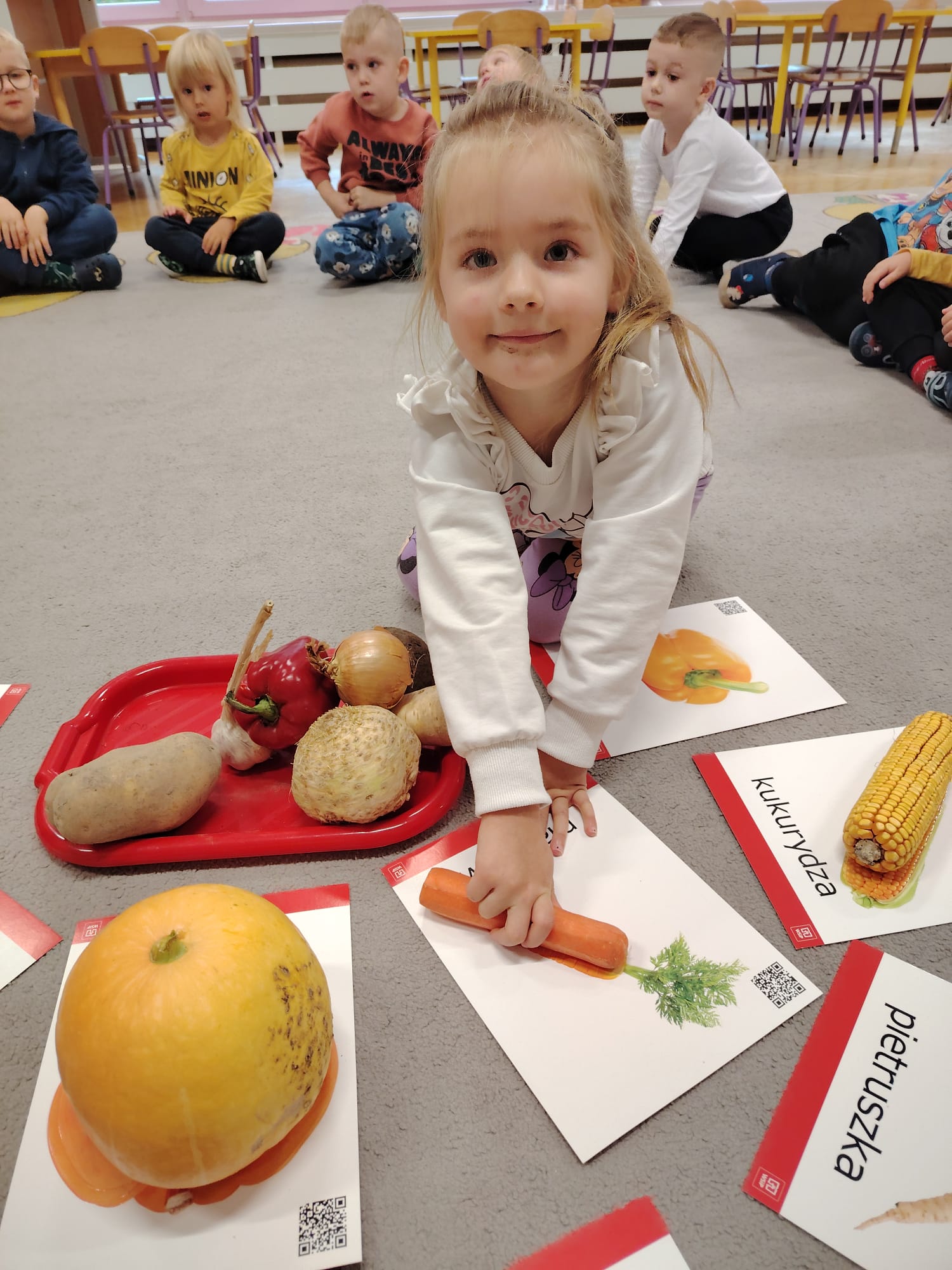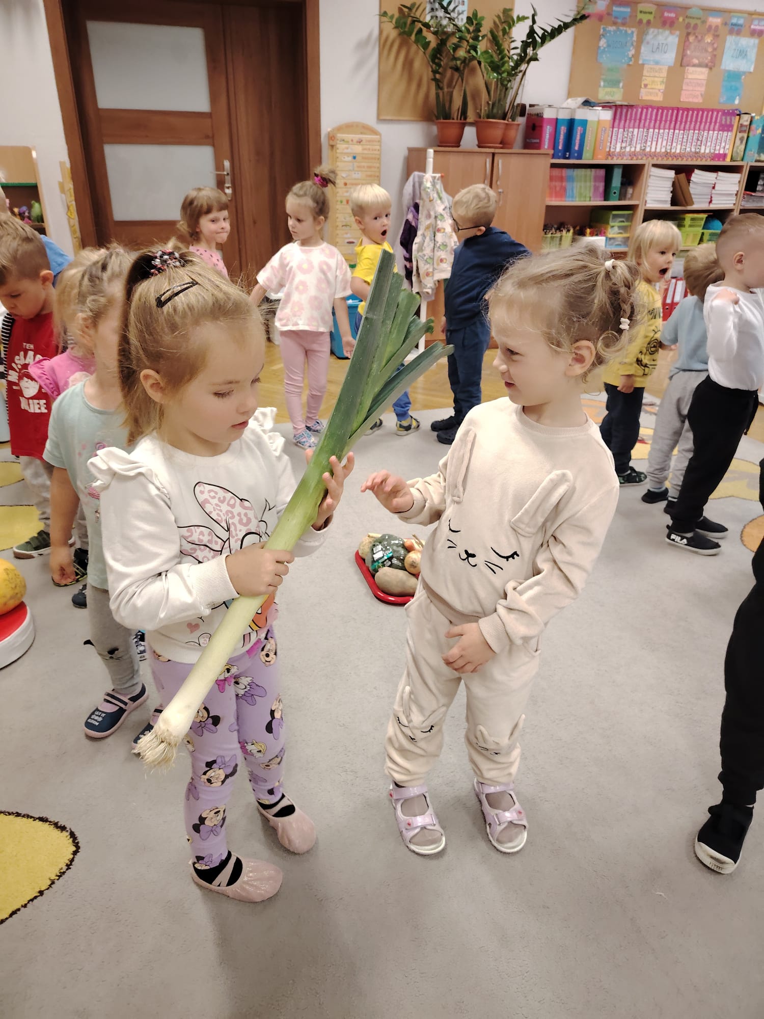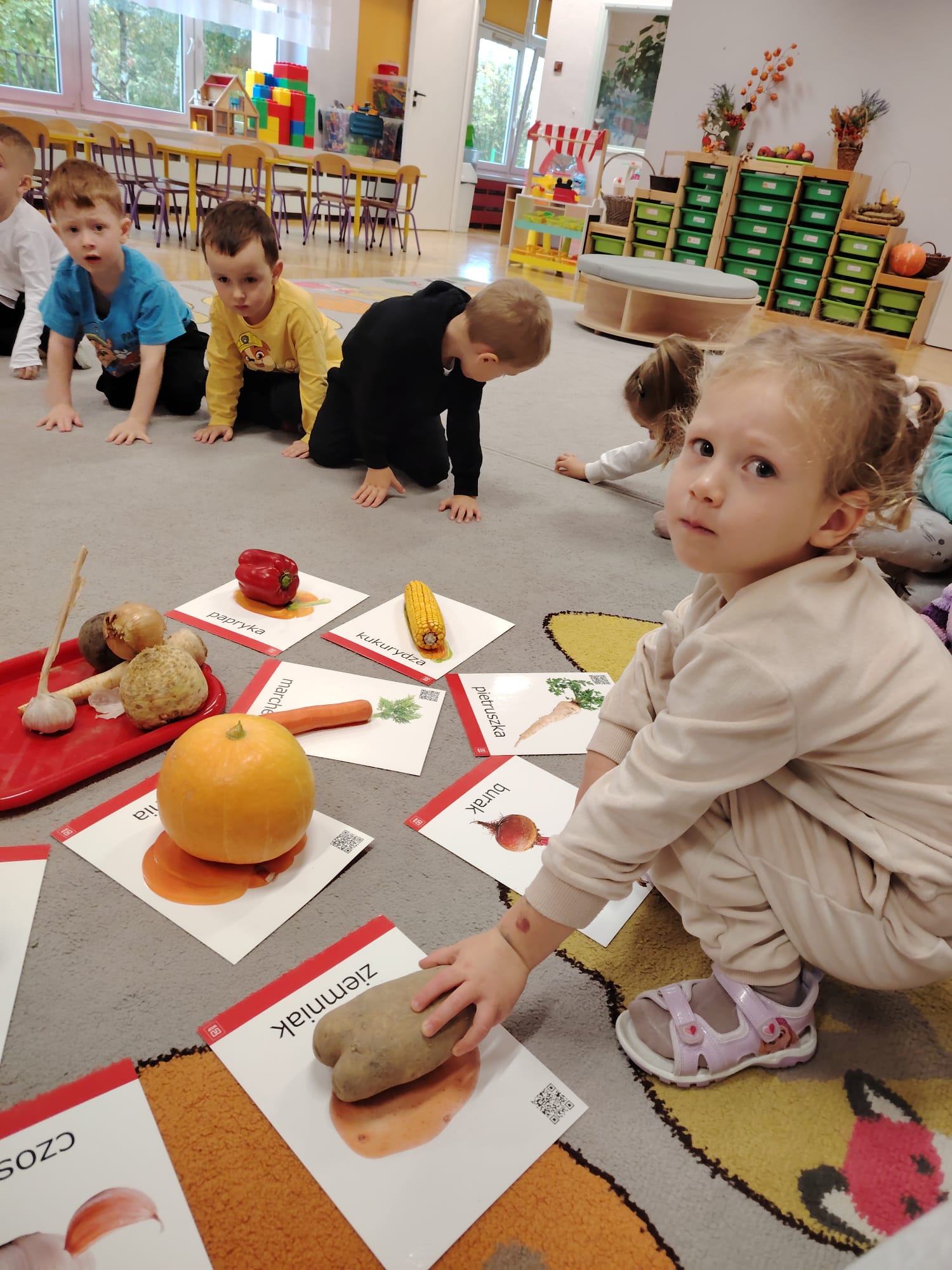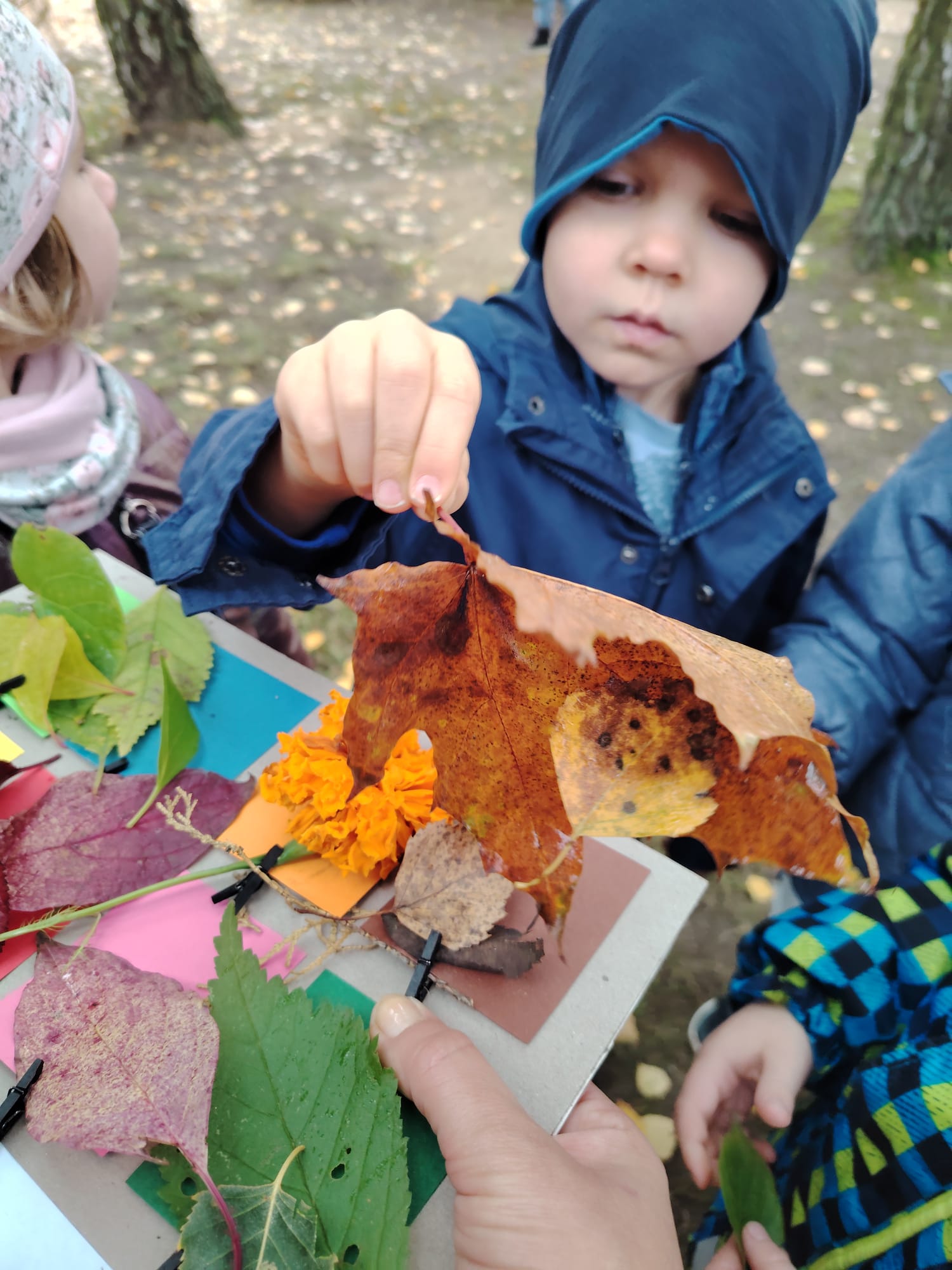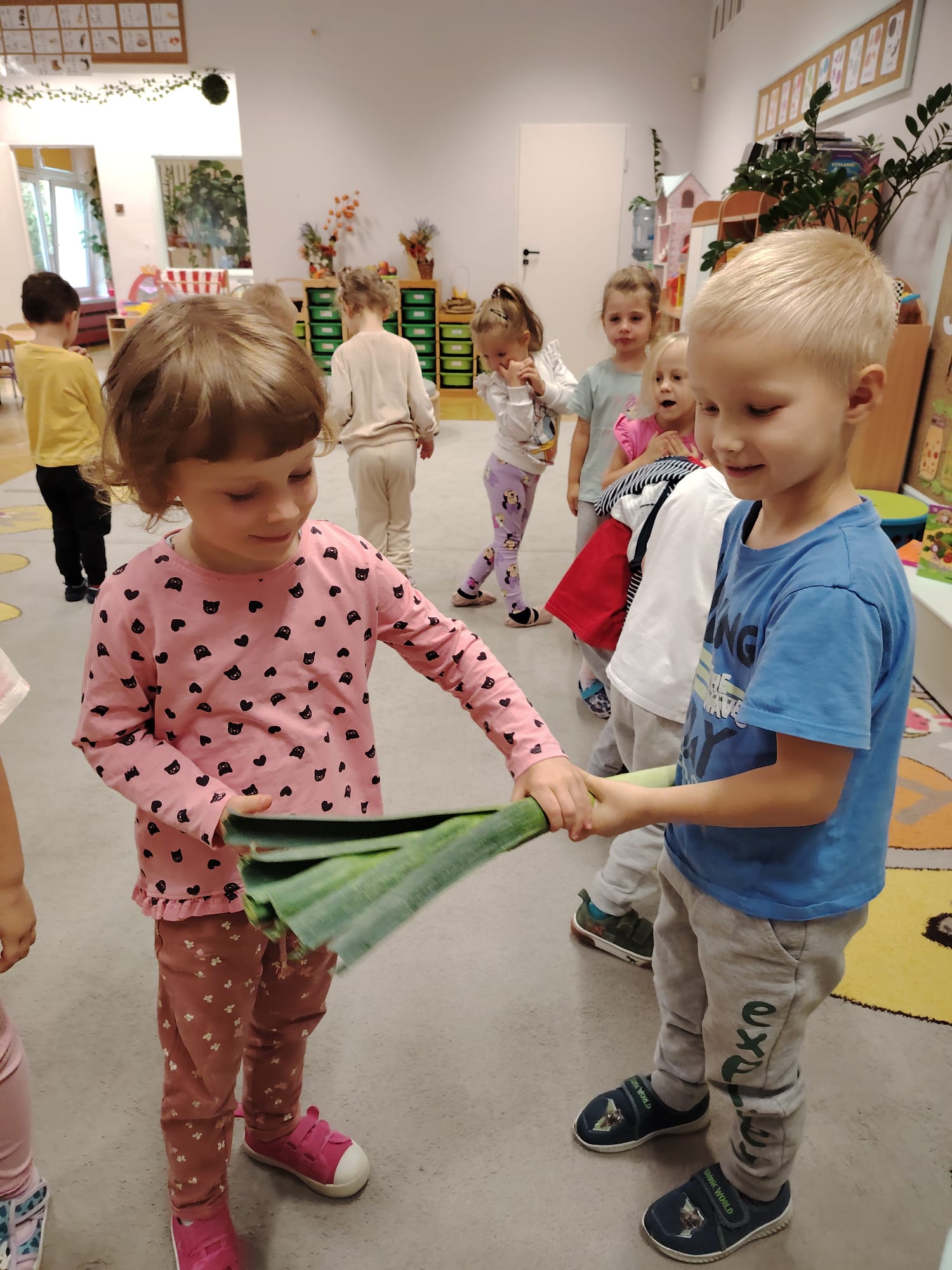 Jesień jest często niedocenianą porą roku, uważa się ją za ponurą i kapryśną... Jednak jest to pora przez nas uwielbiana! Dlaczego? Gdyż niesie ze sobą piękne dary, które służą nam do nauki przez doskonałą zabawę każdego dnia. Wystarczy wyjść na spacer, rozejrzeć się, przykucnąć w trawie, pod drzewami w parku... Znajdujemy wtedy żołędzie, kasztany, szyszki, kolorowe liście, jarzębinę... Czas niepogody to również świetna okazja do przeprowadzania wielozmysłowych zabaw. Grupa II przez ostatnie trzy tygodnie realizowała jesienny projekt edukacyjny, którego głównym celem było kształtowanie postaw poznawczych i proekologicznych poprzez wielozmysłowe doświadczanie otaczającej przyrody. W trakcie działań projektowych dzieci: podczas zabaw sensorycznych nazywały, rozróżniały i klasyfikowały naturalne produkty, rozwijały umiejętność planowania budując przestrzenny ogród z klocków, ćwiczyły analizę i syntezę wzrokową oraz logiczne myślenie, dopasowując warzywa do ich nazw i kształtów, uczestniczyły w zabawach ruchowych z elementami metody aktywnego słuchania w grze „Dopasuj owoc do drzewa”. Podczas jesiennego spaceru edukacyjnego przedszkolaki realizowały zadania z listy obserwacyjnej, rozwijając spostrzegawczość i świadomość zmian zachodzących w przyrodzie. W ramach podsumowania powstała galeria prac dzieci- „Kolorowa jesień oczami dziecka” stworzona z postaci z liści na patykach. Dzięki różnorodnym formom aktywności nasze przedszkolaki miały okazję uczyć się przez działanie, odkrywanie i współdziałanie w grupie. Był to naprawdę radosny i edukacyjnie drogocenny czas. Zapraszamy do galerii.