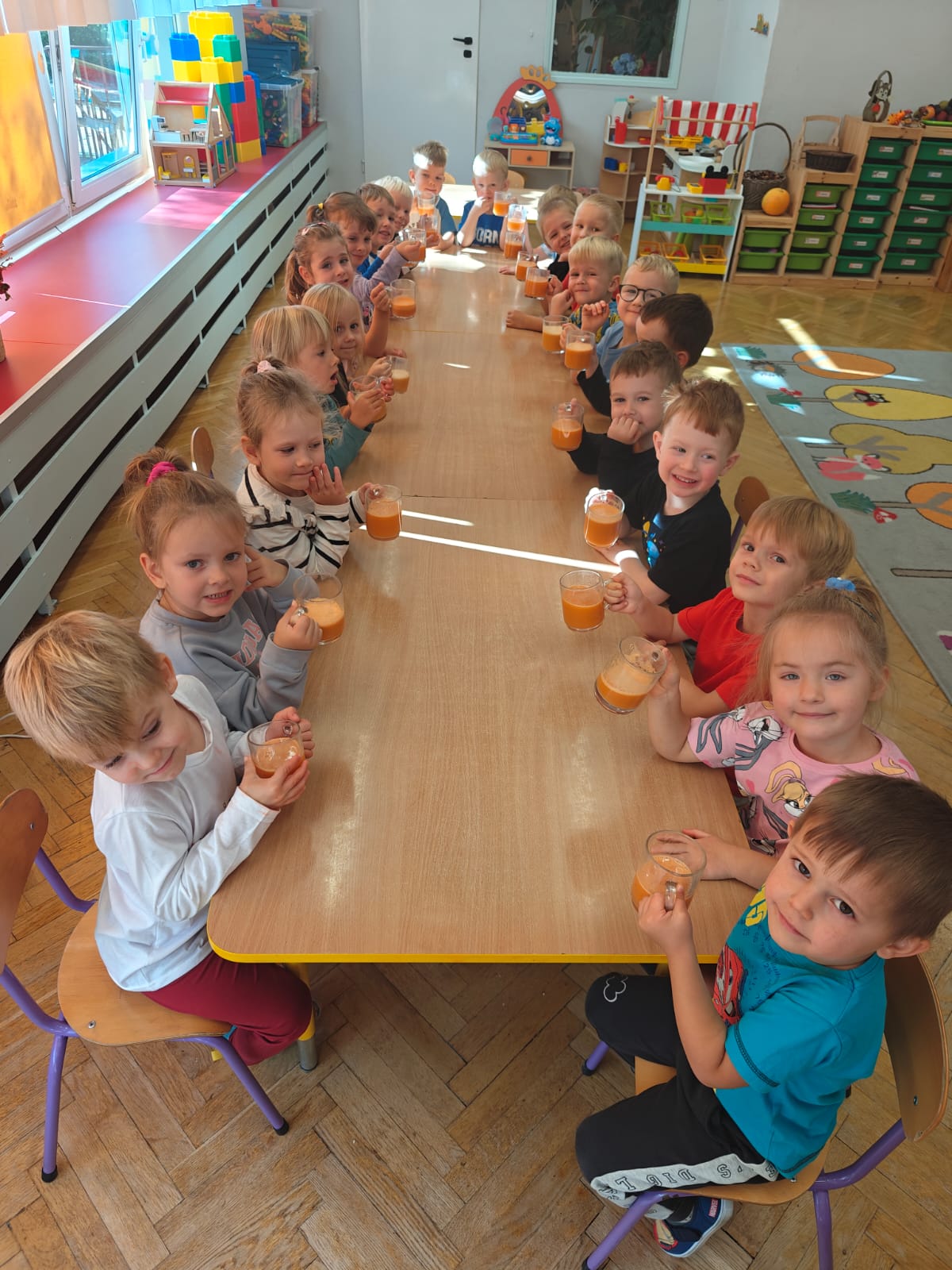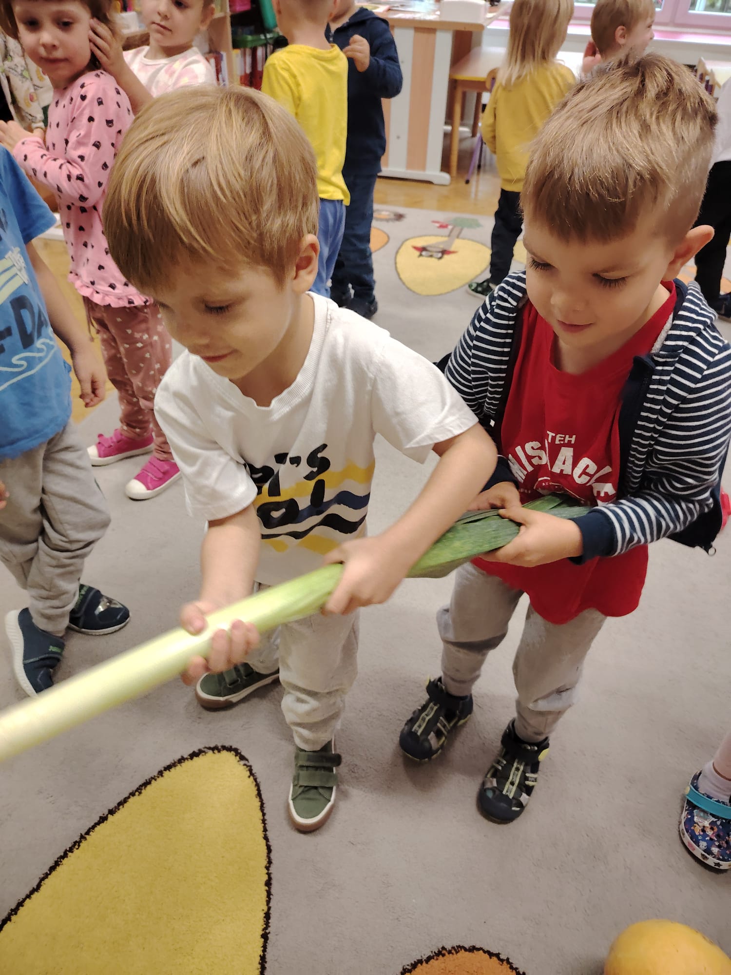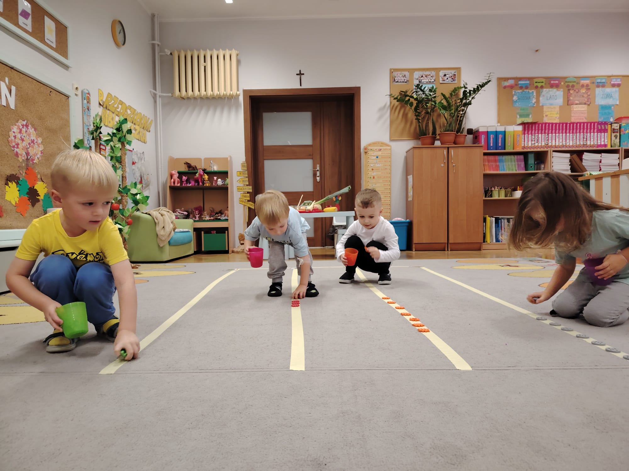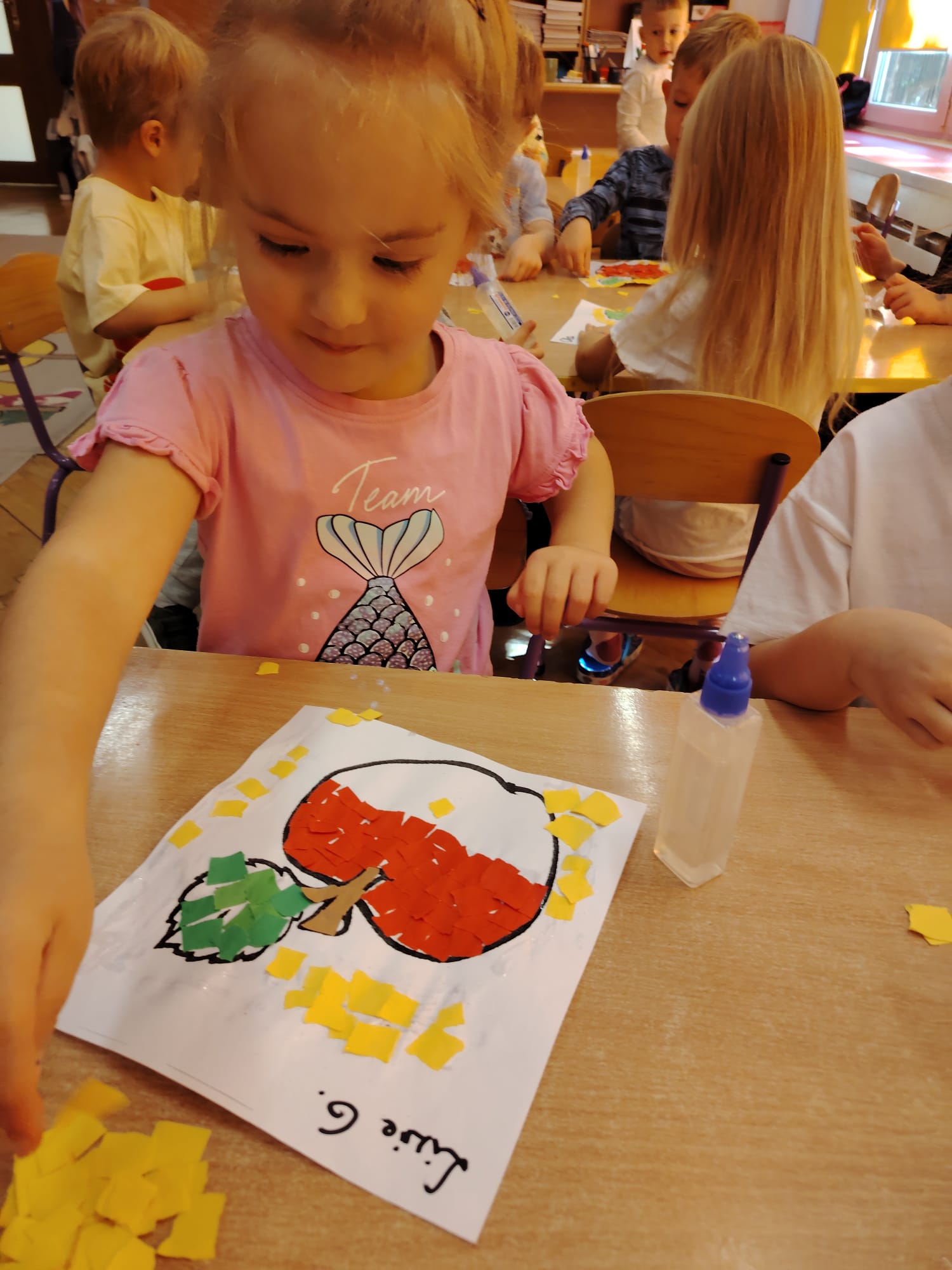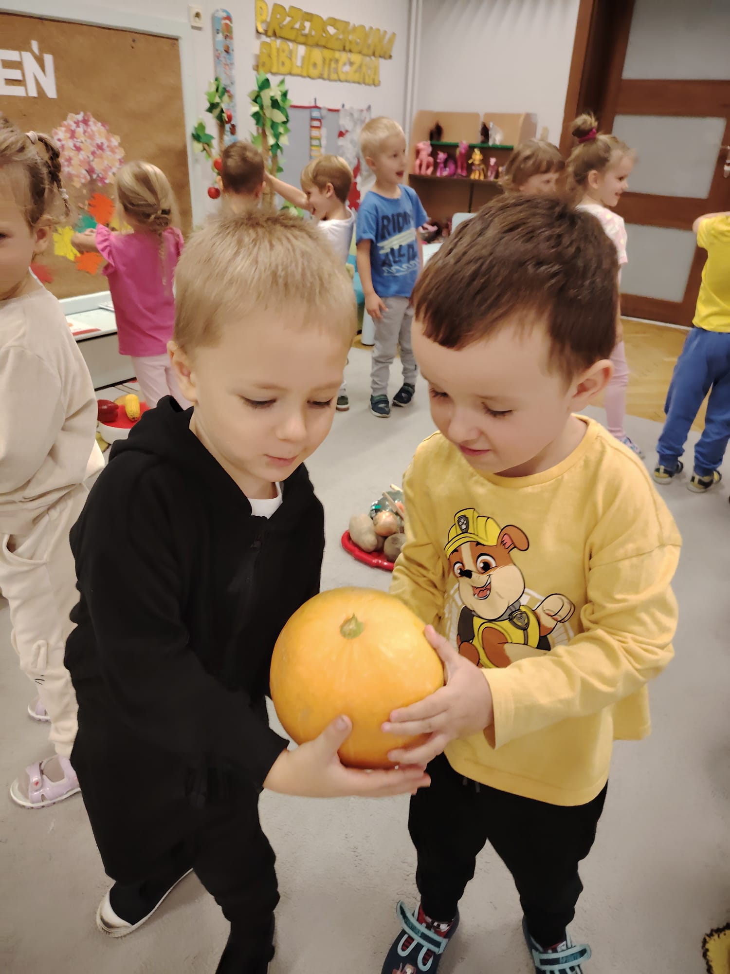 Jesień jest często niedocenianą porą roku, uważa się ją za ponurą i kapryśną... Jednak jest to pora przez nas uwielbiana! Dlaczego? Gdyż niesie ze sobą piękne dary, które służą nam do nauki przez doskonałą zabawę każdego dnia. Wystarczy wyjść na spacer, rozejrzeć się, przykucnąć w trawie, pod drzewami w parku... Znajdujemy wtedy żołędzie, kasztany, szyszki, kolorowe liście, jarzębinę... Czas niepogody to również świetna okazja do przeprowadzania wielozmysłowych zabaw. Grupa II przez ostatnie trzy tygodnie realizowała jesienny projekt edukacyjny, którego głównym celem było kształtowanie postaw poznawczych i proekologicznych poprzez wielozmysłowe doświadczanie otaczającej przyrody. W trakcie działań projektowych dzieci: podczas zabaw sensorycznych nazywały, rozróżniały i klasyfikowały naturalne produkty, rozwijały umiejętność planowania budując przestrzenny ogród z klocków, ćwiczyły analizę i syntezę wzrokową oraz logiczne myślenie, dopasowując warzywa do ich nazw i kształtów, uczestniczyły w zabawach ruchowych z elementami metody aktywnego słuchania w grze „Dopasuj owoc do drzewa”. Podczas jesiennego spaceru edukacyjnego przedszkolaki realizowały zadania z listy obserwacyjnej, rozwijając spostrzegawczość i świadomość zmian zachodzących w przyrodzie. W ramach podsumowania powstała galeria prac dzieci- „Kolorowa jesień oczami dziecka” stworzona z postaci z liści na patykach. Dzięki różnorodnym formom aktywności nasze przedszkolaki miały okazję uczyć się przez działanie, odkrywanie i współdziałanie w grupie. Był to naprawdę radosny i edukacyjnie drogocenny czas. Zapraszamy do galerii.