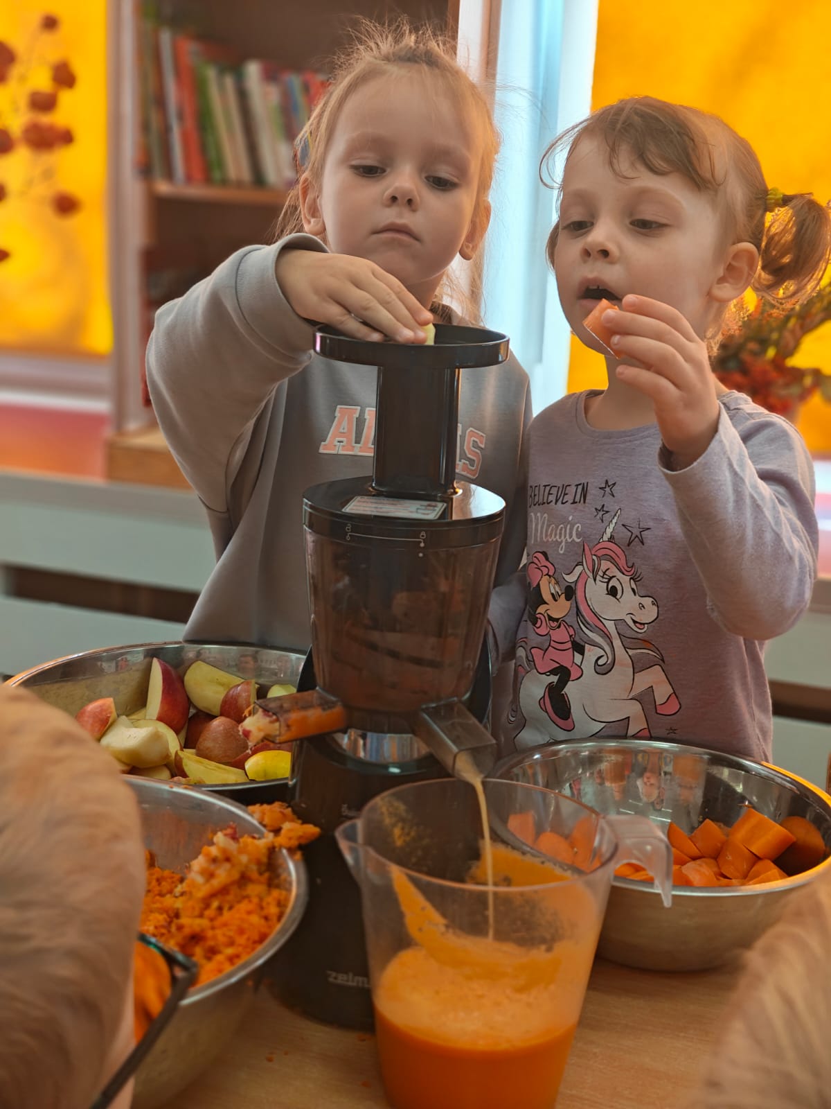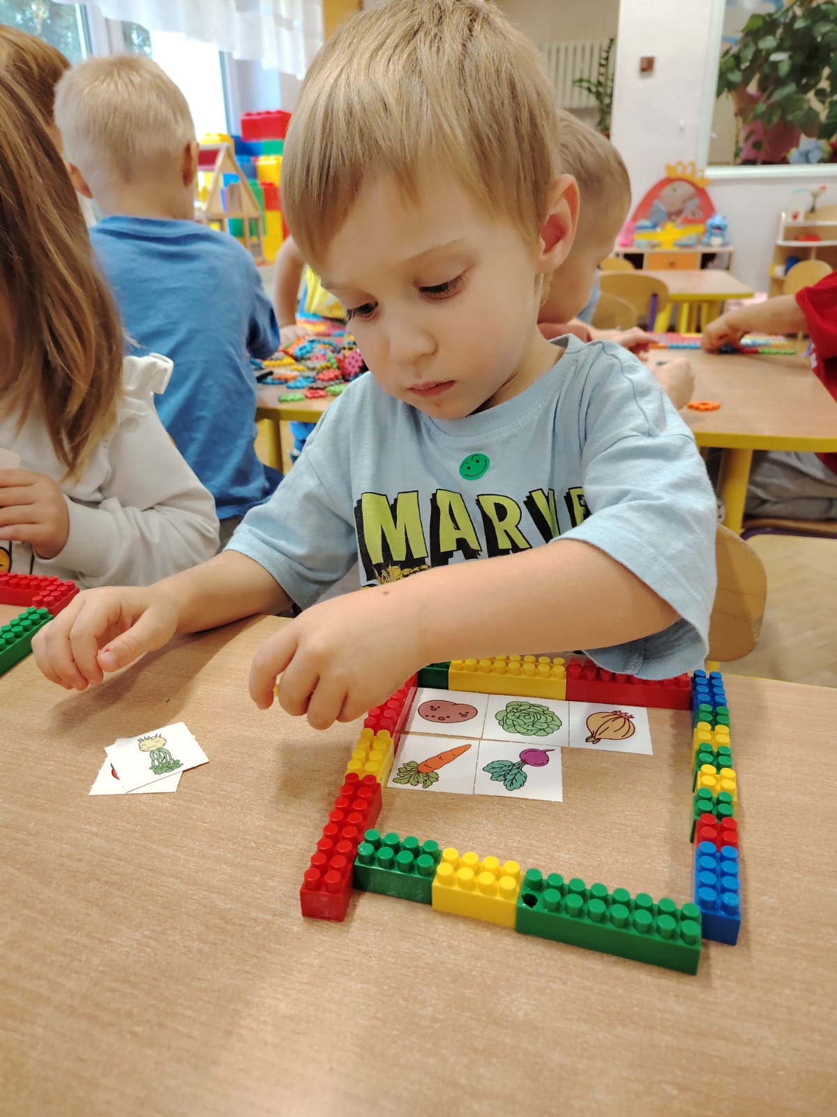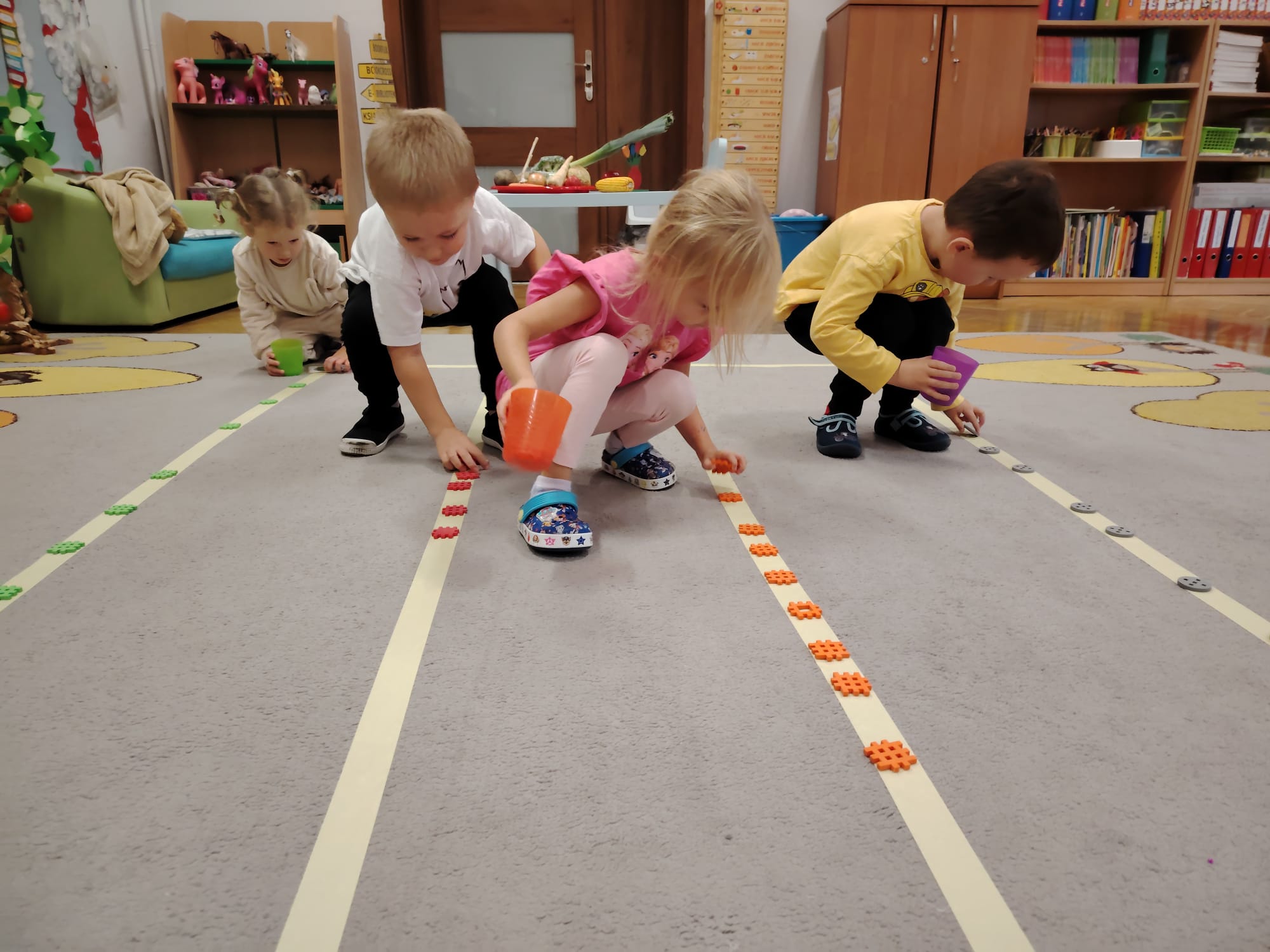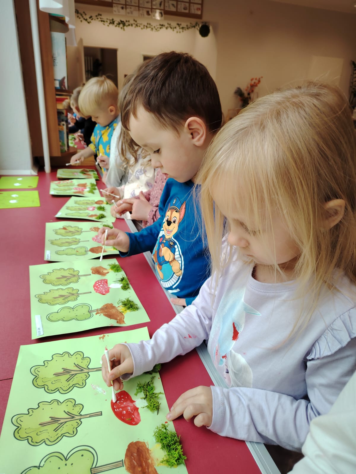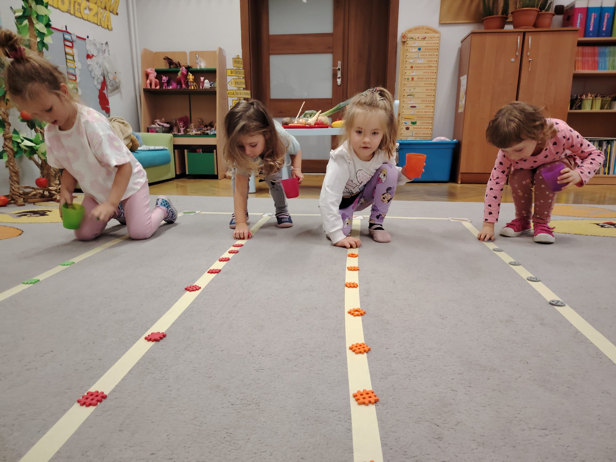 Jesień jest często niedocenianą porą roku, uważa się ją za ponurą i kapryśną... Jednak jest to pora przez nas uwielbiana! Dlaczego? Gdyż niesie ze sobą piękne dary, które służą nam do nauki przez doskonałą zabawę każdego dnia. Wystarczy wyjść na spacer, rozejrzeć się, przykucnąć w trawie, pod drzewami w parku... Znajdujemy wtedy żołędzie, kasztany, szyszki, kolorowe liście, jarzębinę... Czas niepogody to również świetna okazja do przeprowadzania wielozmysłowych zabaw. Grupa II przez ostatnie trzy tygodnie realizowała jesienny projekt edukacyjny, którego głównym celem było kształtowanie postaw poznawczych i proekologicznych poprzez wielozmysłowe doświadczanie otaczającej przyrody. W trakcie działań projektowych dzieci: podczas zabaw sensorycznych nazywały, rozróżniały i klasyfikowały naturalne produkty, rozwijały umiejętność planowania budując przestrzenny ogród z klocków, ćwiczyły analizę i syntezę wzrokową oraz logiczne myślenie, dopasowując warzywa do ich nazw i kształtów, uczestniczyły w zabawach ruchowych z elementami metody aktywnego słuchania w grze „Dopasuj owoc do drzewa”. Podczas jesiennego spaceru edukacyjnego przedszkolaki realizowały zadania z listy obserwacyjnej, rozwijając spostrzegawczość i świadomość zmian zachodzących w przyrodzie. W ramach podsumowania powstała galeria prac dzieci- „Kolorowa jesień oczami dziecka” stworzona z postaci z liści na patykach. Dzięki różnorodnym formom aktywności nasze przedszkolaki miały okazję uczyć się przez działanie, odkrywanie i współdziałanie w grupie. Był to naprawdę radosny i edukacyjnie drogocenny czas. Zapraszamy do galerii.