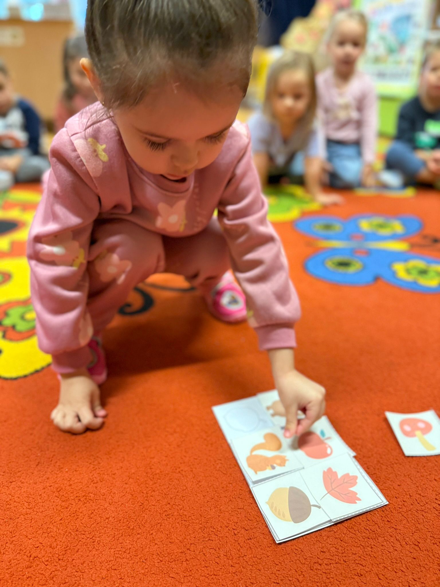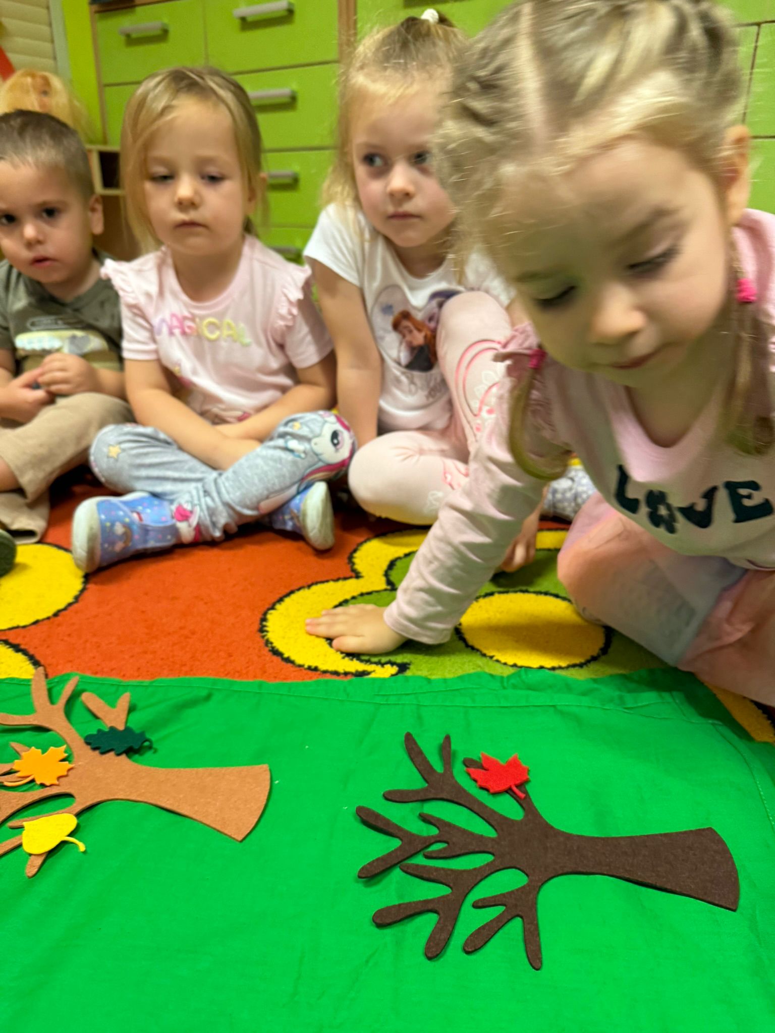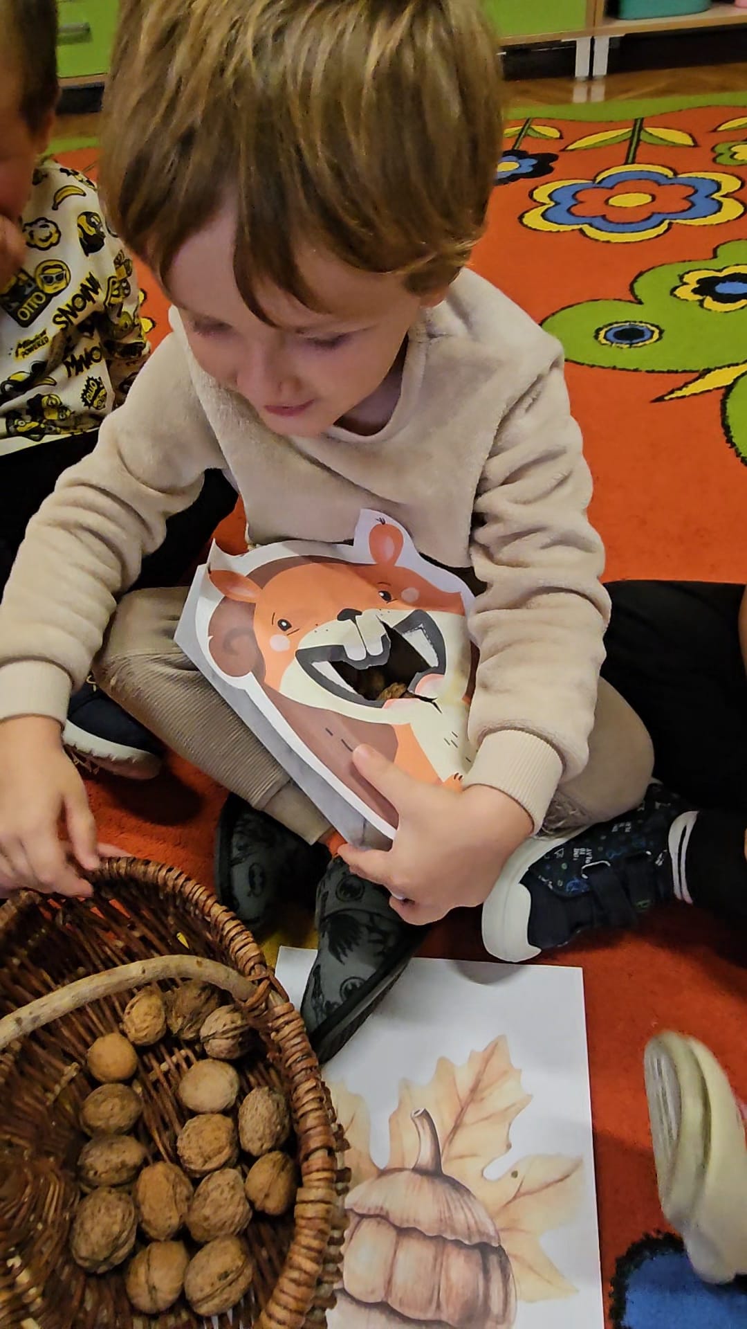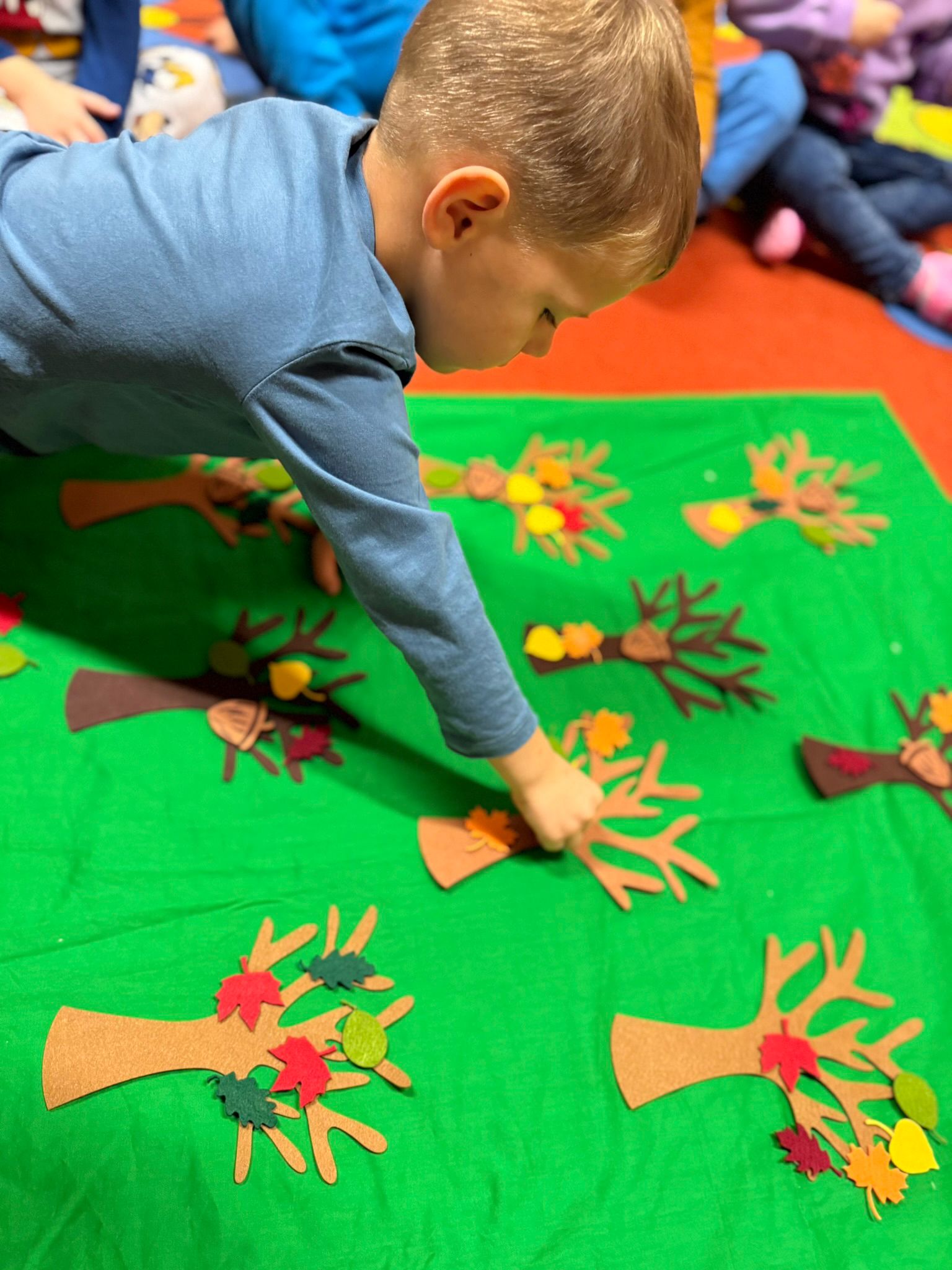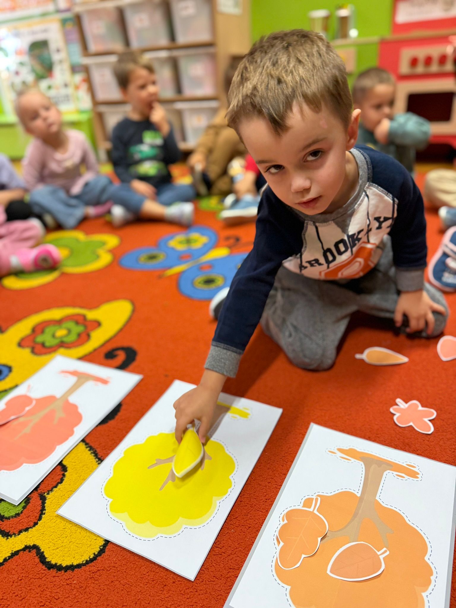 W grupie VII realizowaliśmy projekt edukacyjny „Dotykam, słucham, czuję – jesień”, podczas którego dzieci miały okazję poznawać jesień wszystkimi zmysłami.