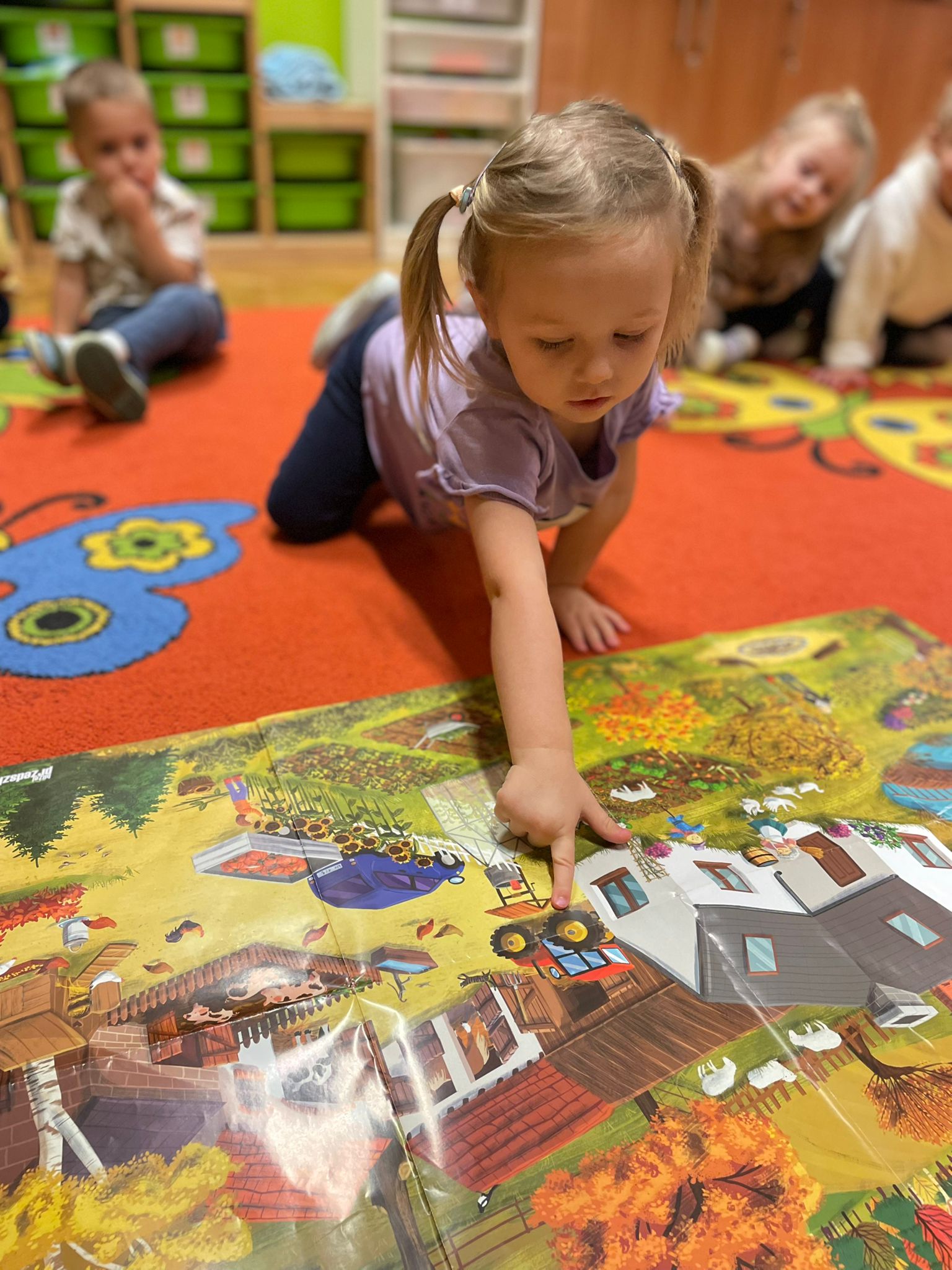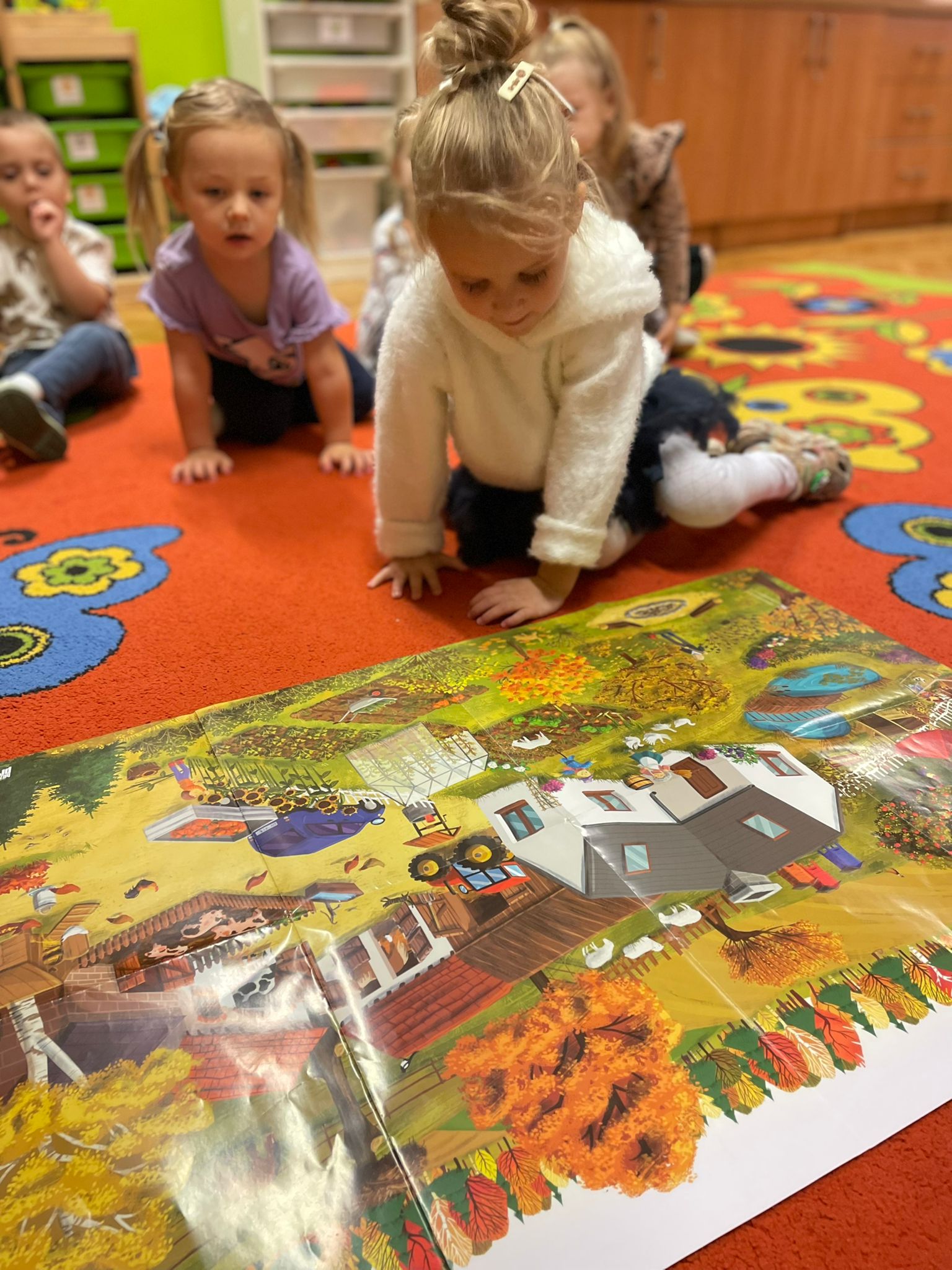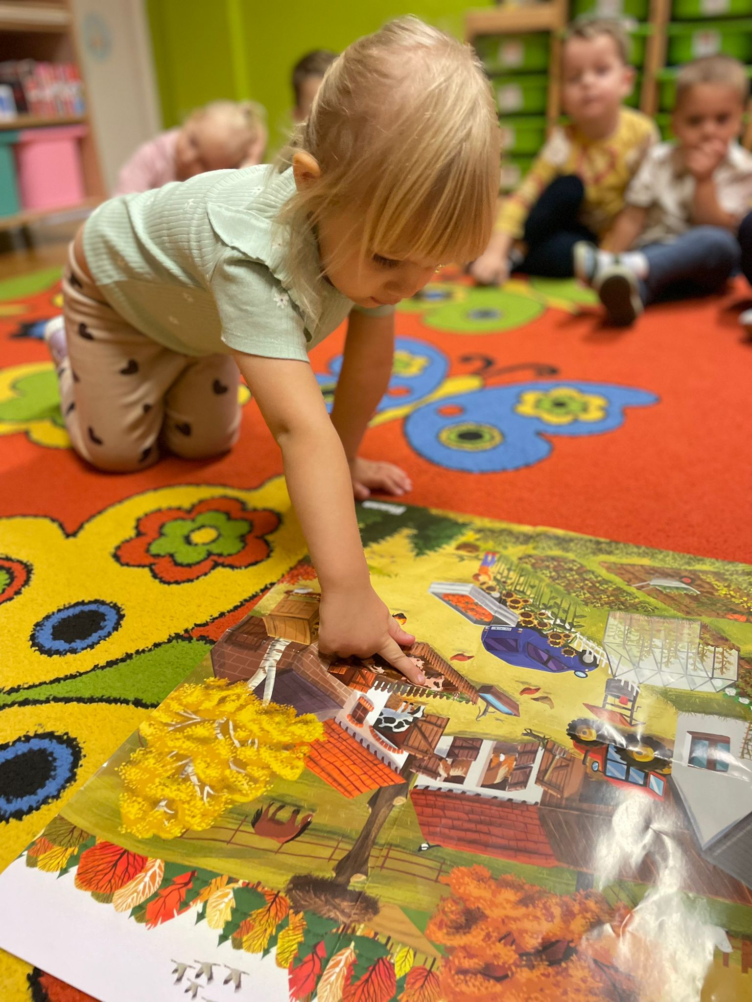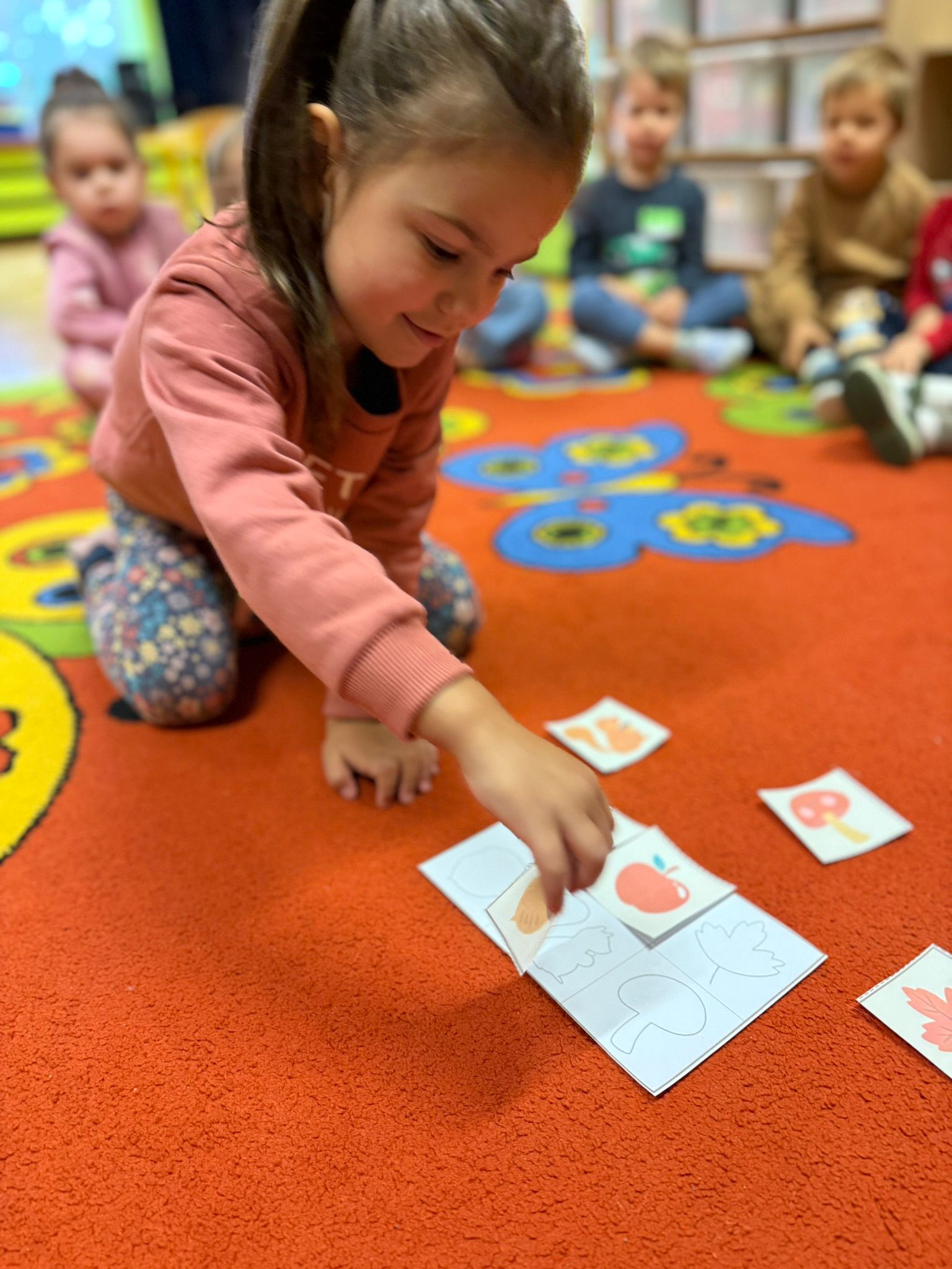 W grupie VII realizowaliśmy projekt edukacyjny „Dotykam, słucham, czuję – jesień”, podczas którego dzieci miały okazję poznawać jesień wszystkimi zmysłami.