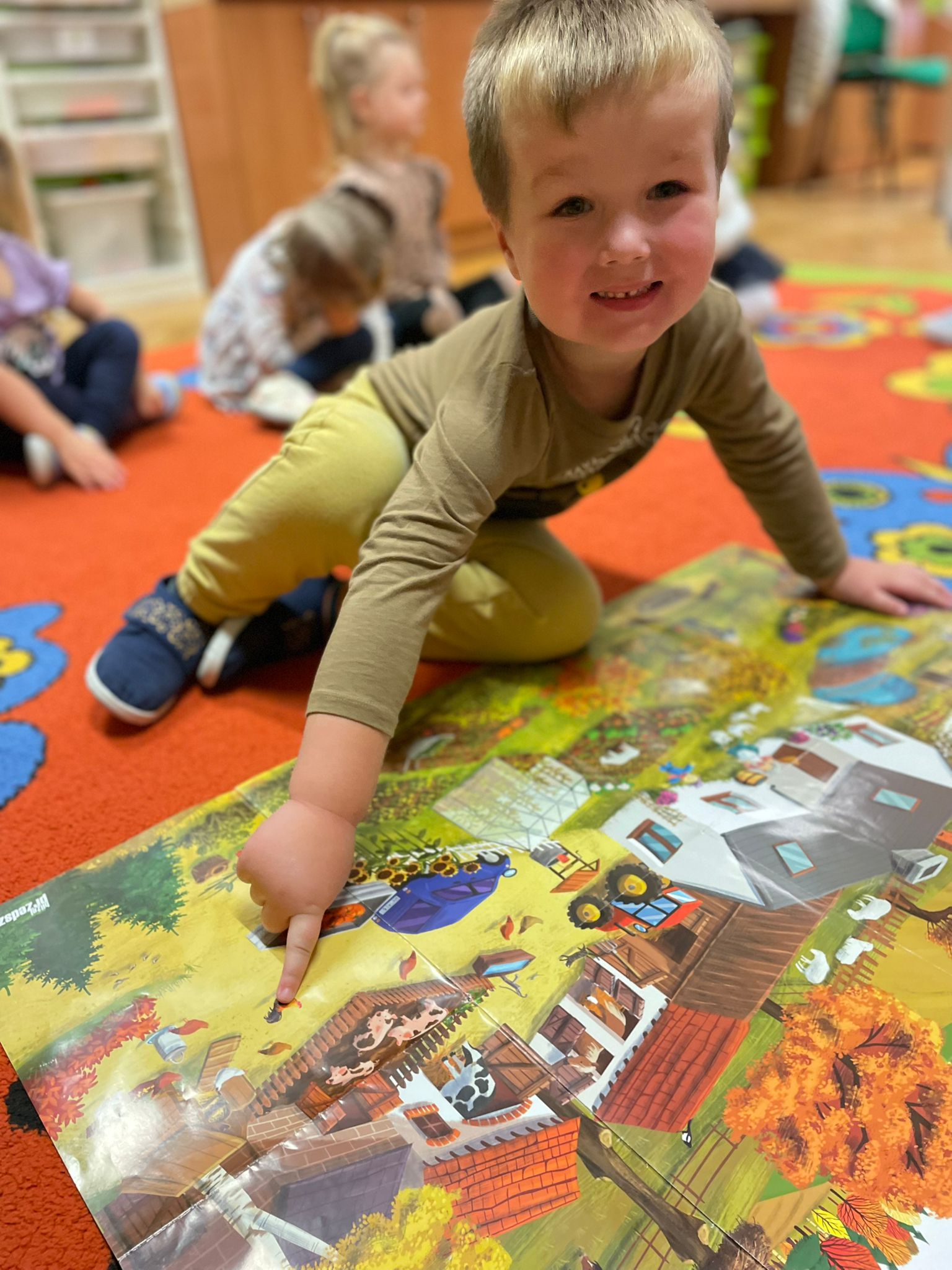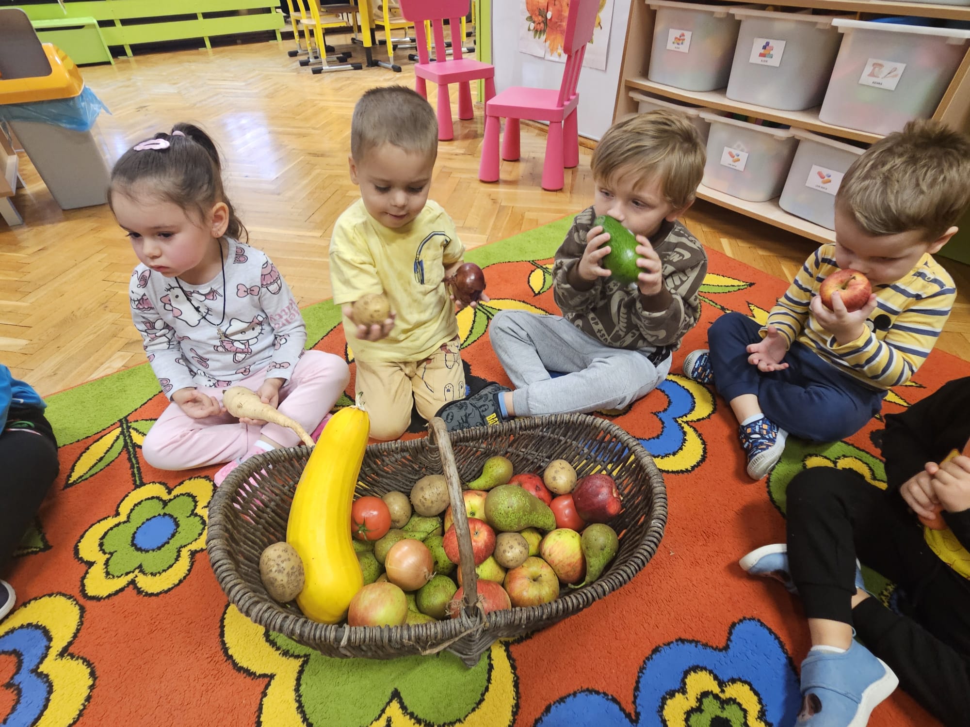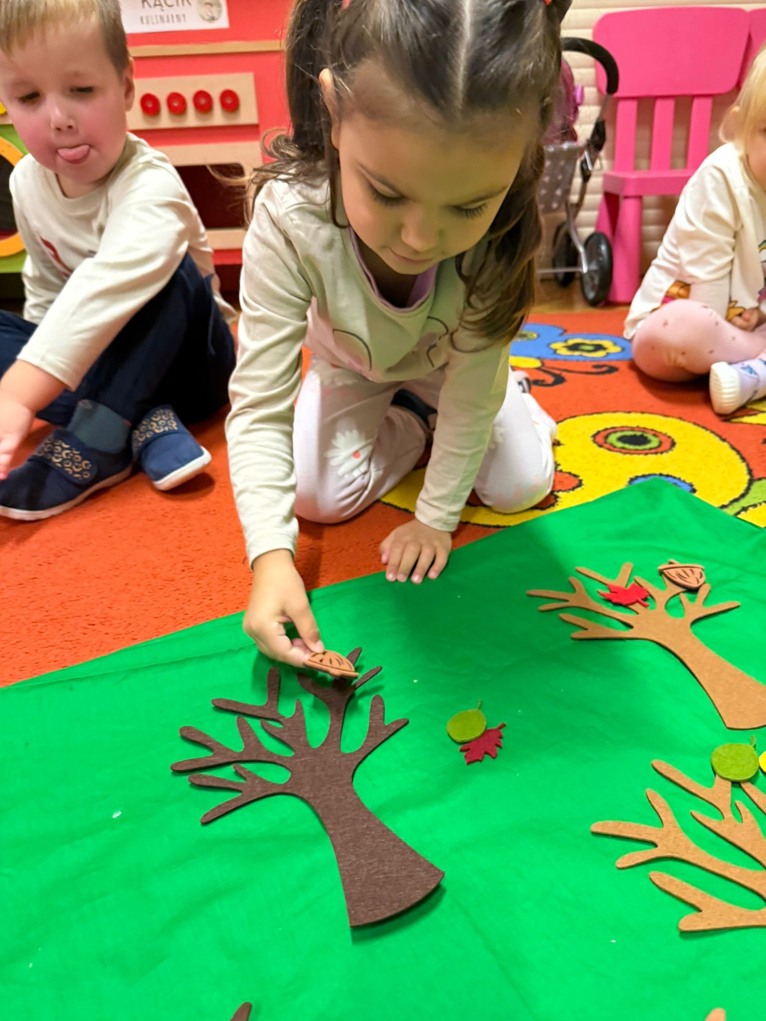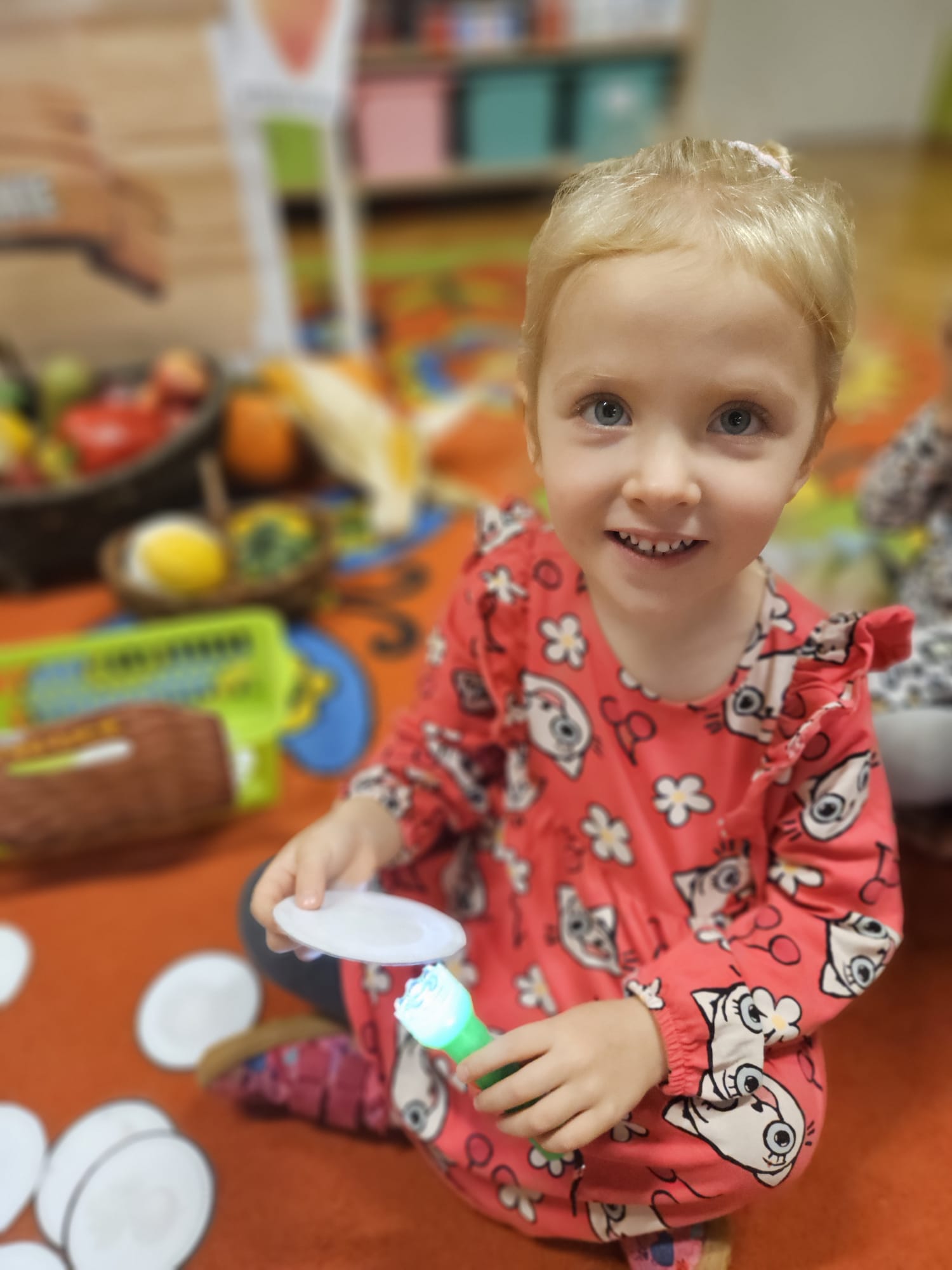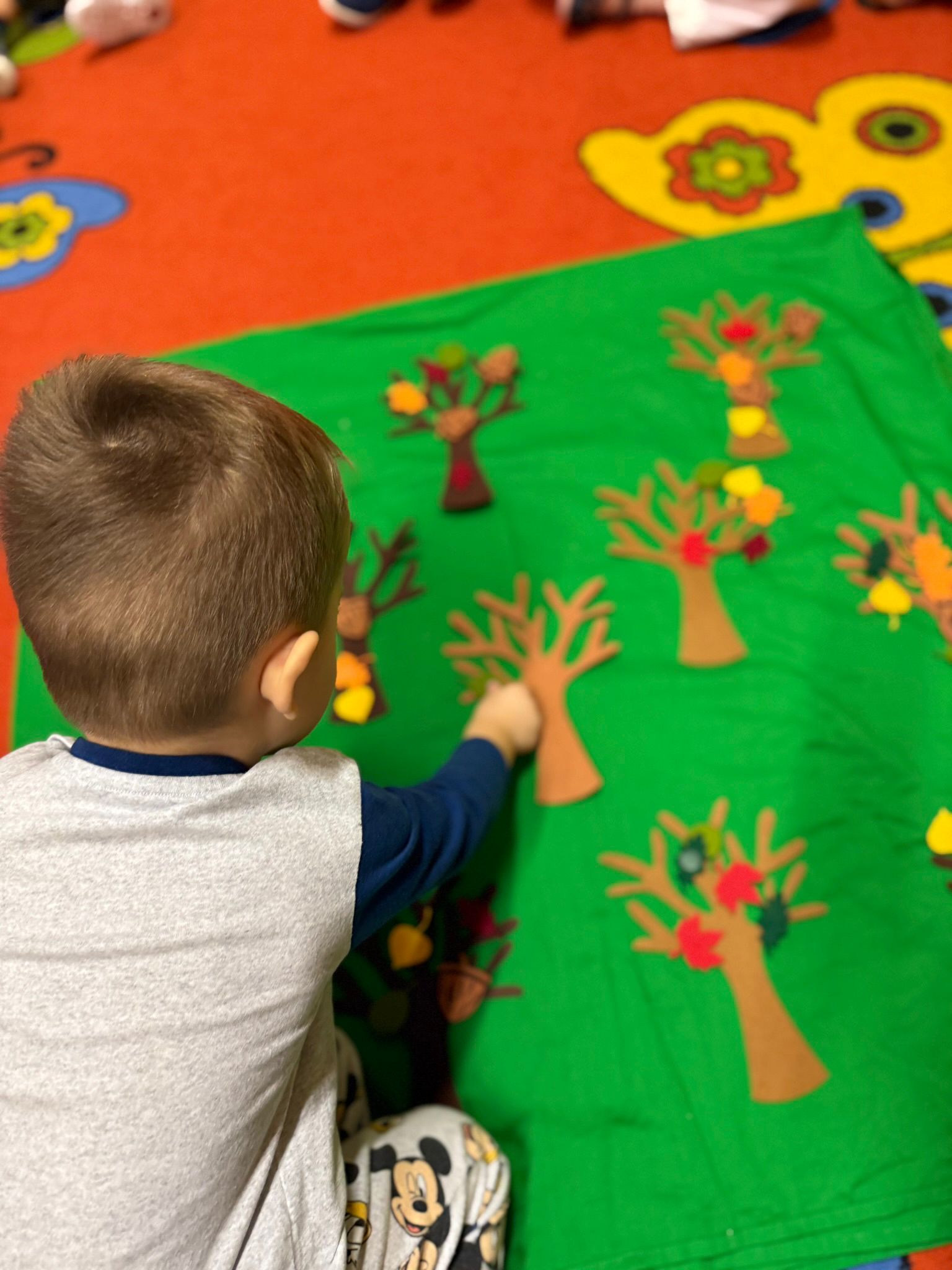 W grupie VII realizowaliśmy projekt edukacyjny „Dotykam, słucham, czuję – jesień”, podczas którego dzieci miały okazję poznawać jesień wszystkimi zmysłami.