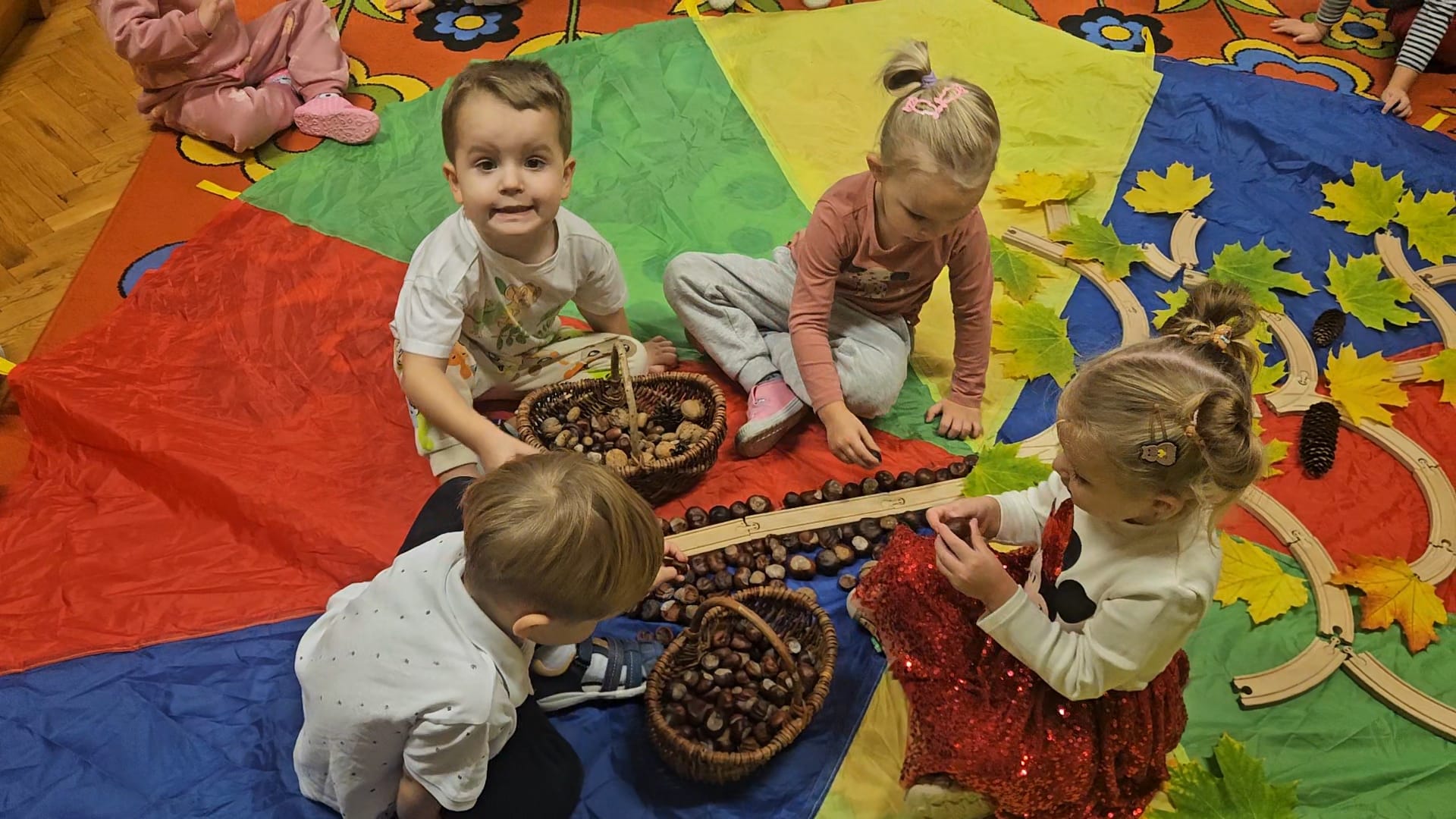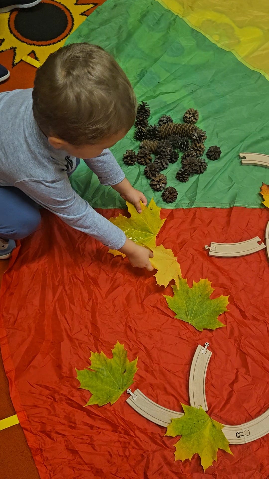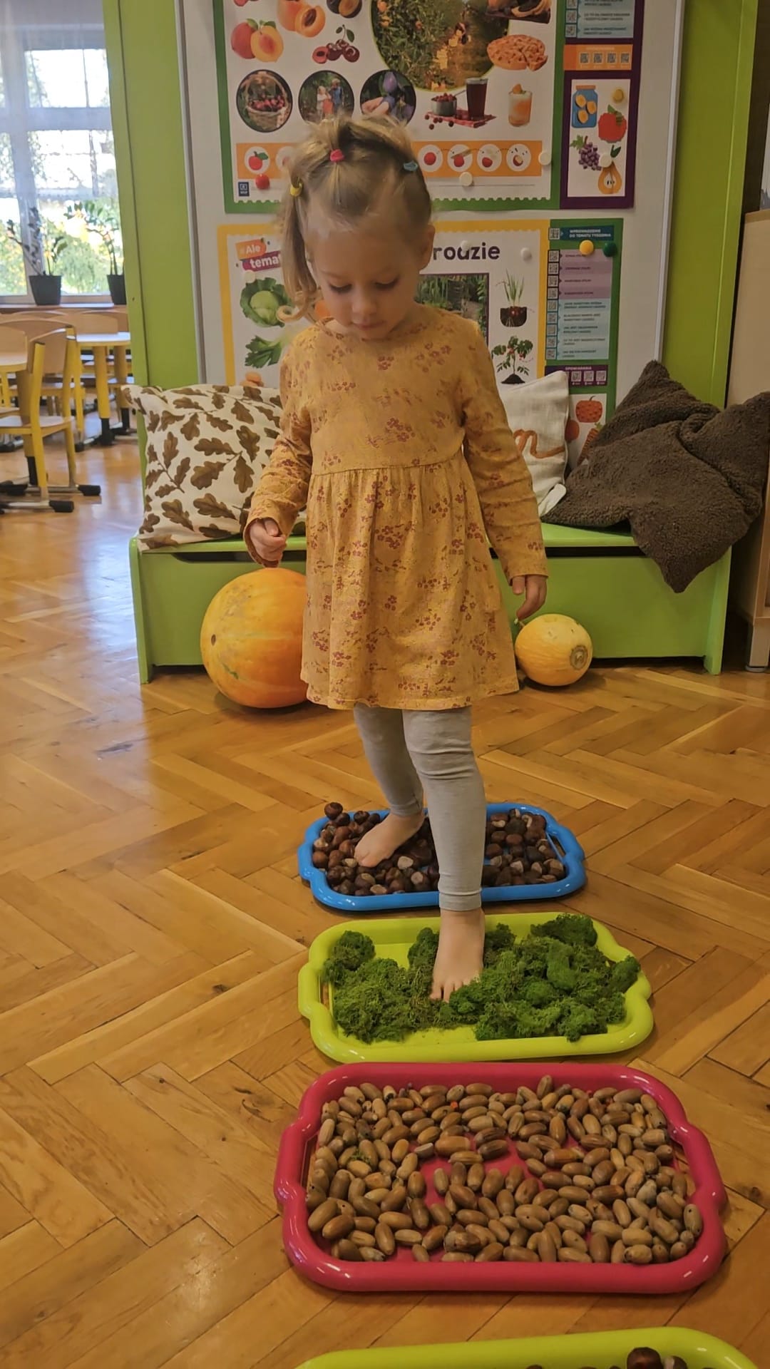 Przedszkolaki uczestniczyły w różnorodnych zabawach sensorycznych, dzięki którym mogły dotykać, wąchać, słuchać i obserwować zmiany zachodzące w przyrodzie. Dzieci badały fakturę liści, kasztanów, szyszek i żołędzi, słuchały odgłosów jesieni, , a także eksperymentowały z jesiennymi kolorami i materiałami przyrodniczymi. Zajęcia dostarczyły wszystkim mnóstwo radości, ciekawych wrażeń i nowych doświadczeń, rozwijając przy tym zmysły, kreatywność oraz umiejętność współpracy w grupie. Jesień może być naprawdę magiczna, gdy można jej dotknąć, posłuchać i poczuć!