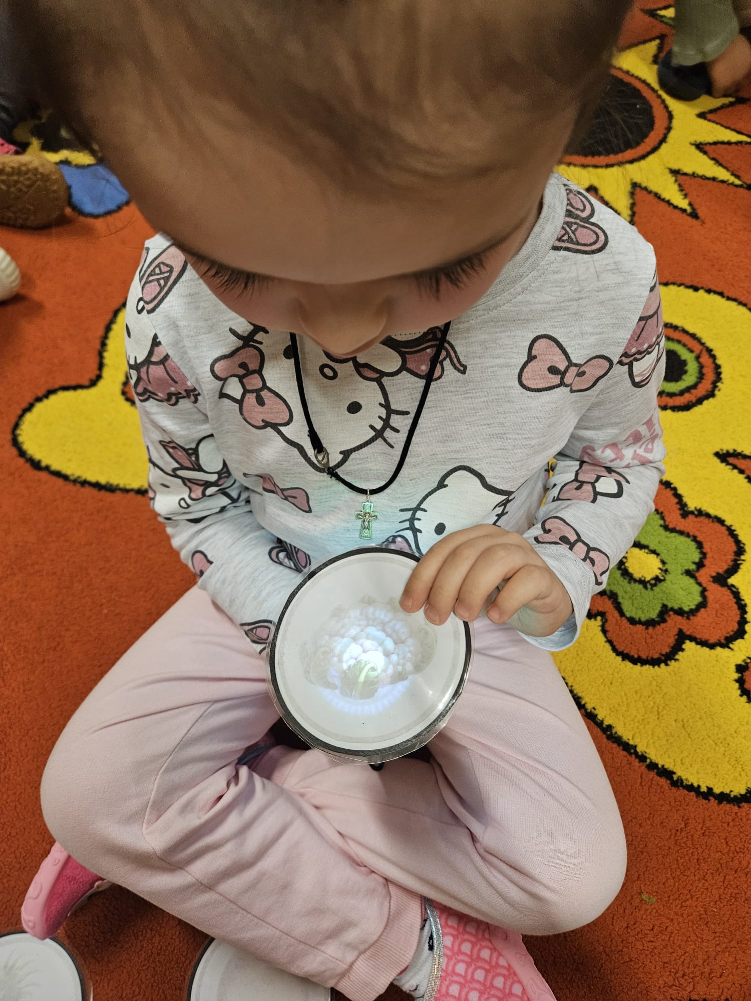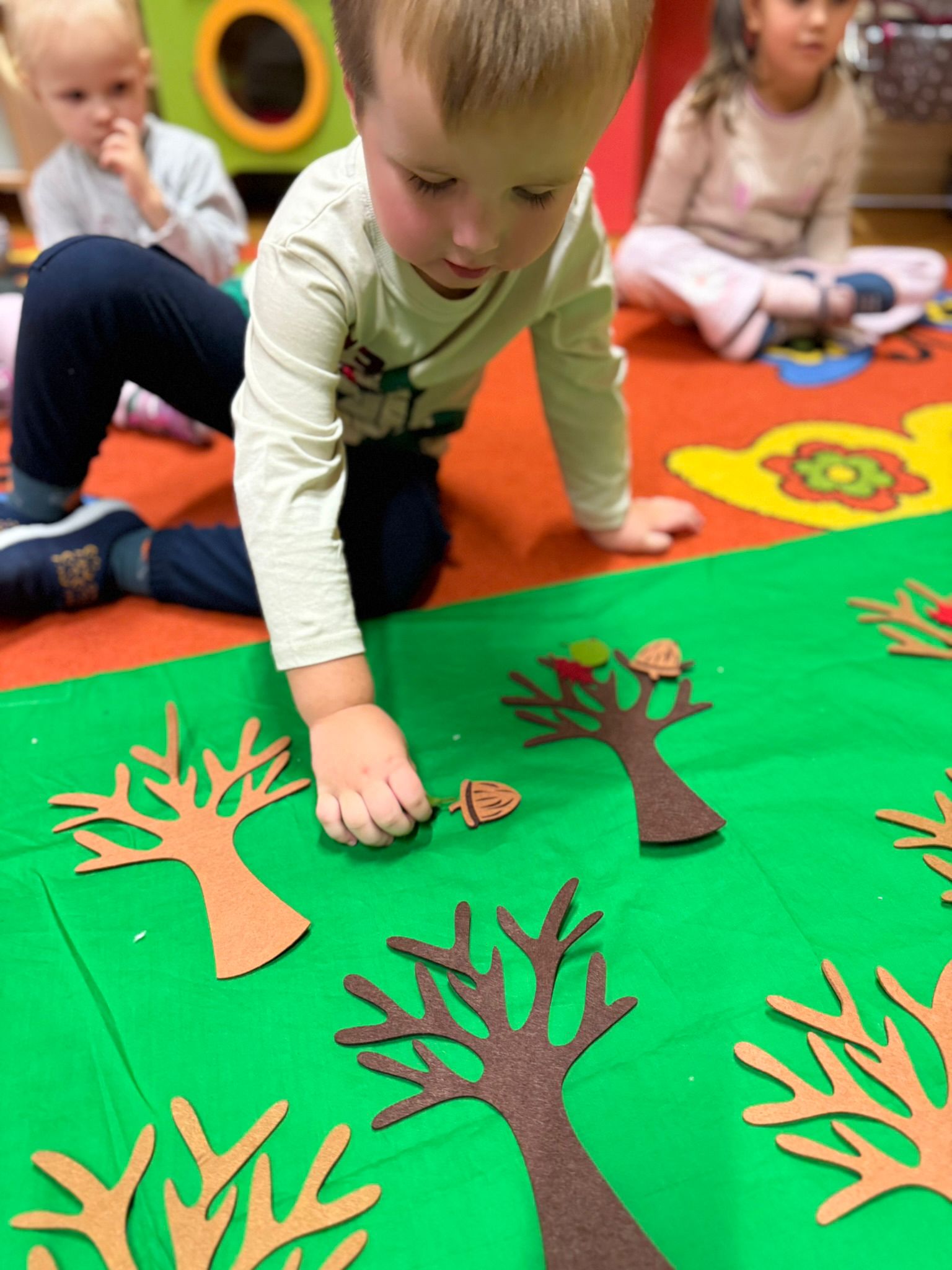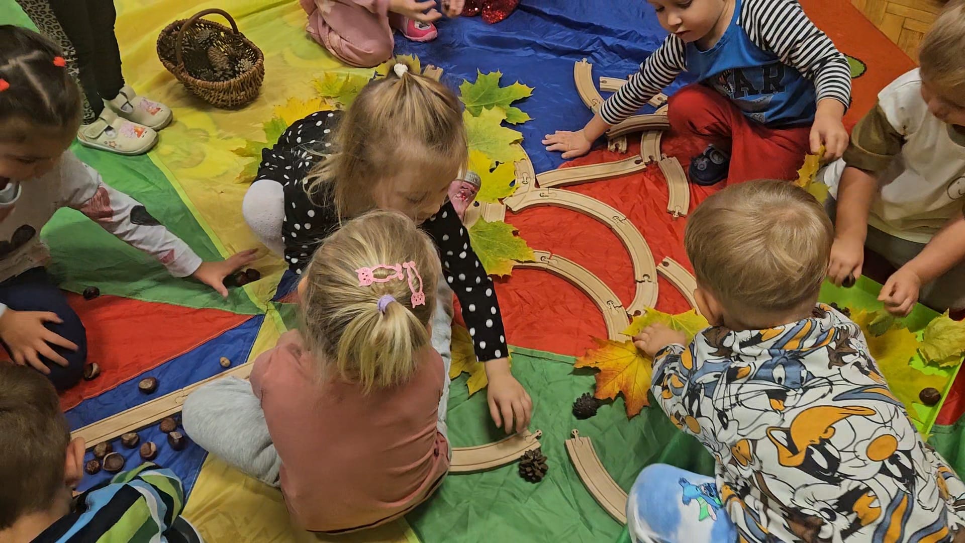 Przedszkolaki uczestniczyły w różnorodnych zabawach sensorycznych, dzięki którym mogły dotykać, wąchać, słuchać i obserwować zmiany zachodzące w przyrodzie. Dzieci badały fakturę liści, kasztanów, szyszek i żołędzi, słuchały odgłosów jesieni, , a także eksperymentowały z jesiennymi kolorami i materiałami przyrodniczymi. Zajęcia dostarczyły wszystkim mnóstwo radości, ciekawych wrażeń i nowych doświadczeń, rozwijając przy tym zmysły, kreatywność oraz umiejętność współpracy w grupie. Jesień może być naprawdę magiczna, gdy można jej dotknąć, posłuchać i poczuć!