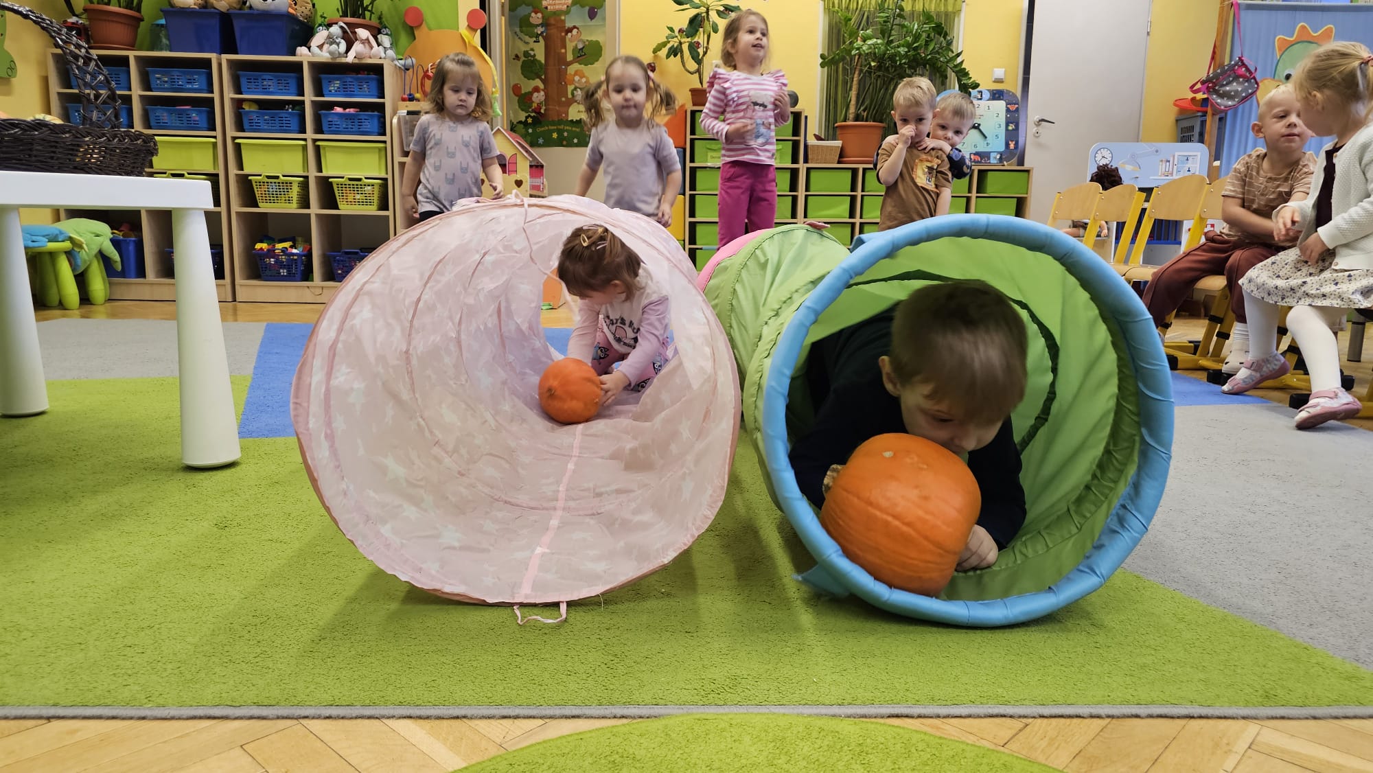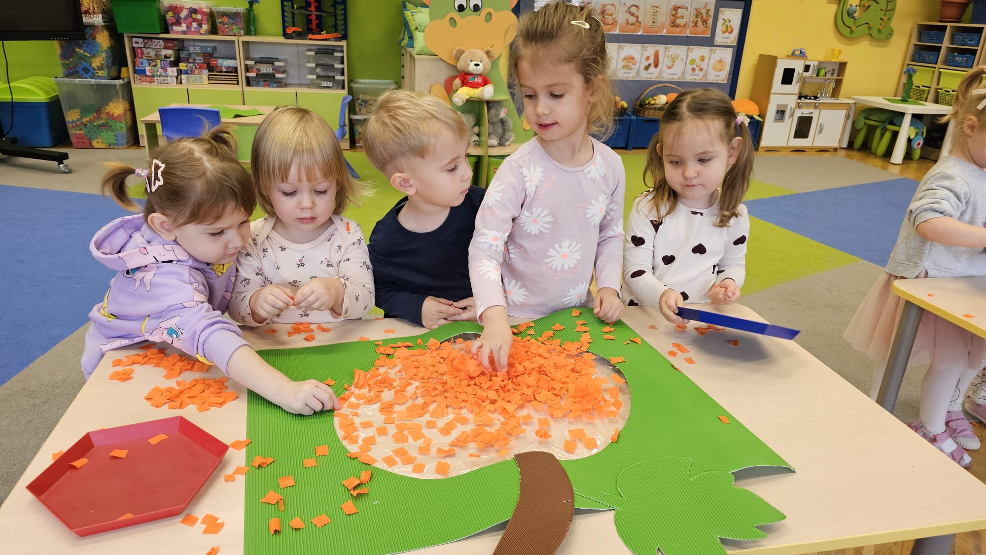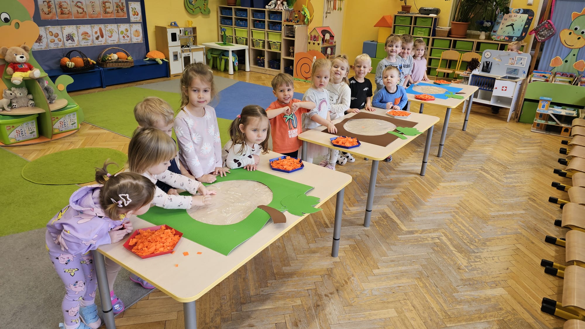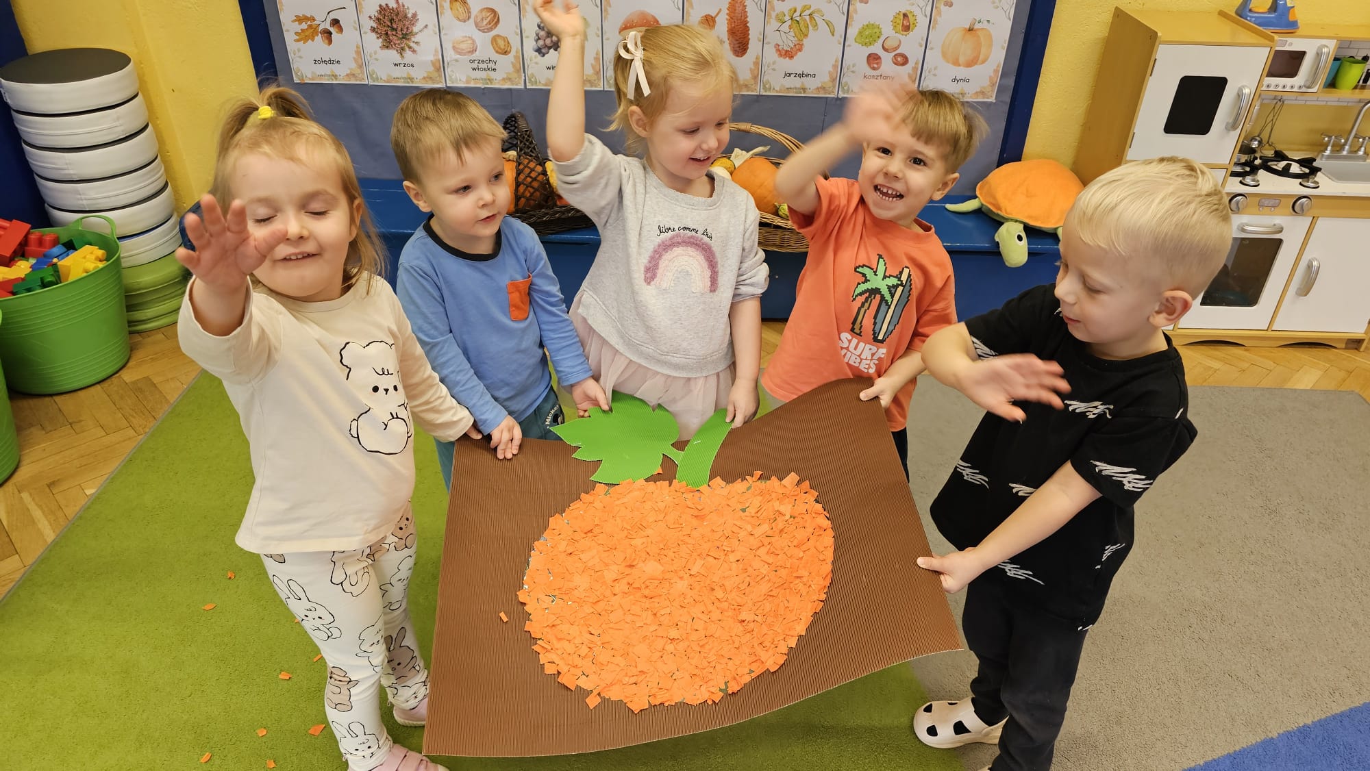 W ostatnim czasie dzieci z naszej grupy realizowały projekt „Sensoryczna jesień”, którego celem było rozwijanie zmysłów, ciekawości poznawczej oraz wrażliwości na piękno przyrody. Przedszkolaki odkrywały jesienne skarby – kolorowe liście, kasztany, szyszki i gałązki sosny, a także warzywa charakterystyczne dla tej pory roku. Poprzez eksperymenty, zabawy ruchowe, plastyczne i sensoryczne dzieci poznawały zmiany zachodzące w przyrodzie jesienią. Projekt pozwolił najmłodszym rozwijać spostrzegawczość, kreatywność i umiejętność współpracy podczas wspólnej zabawy i odkrywania świata wszystkimi zmysłami.