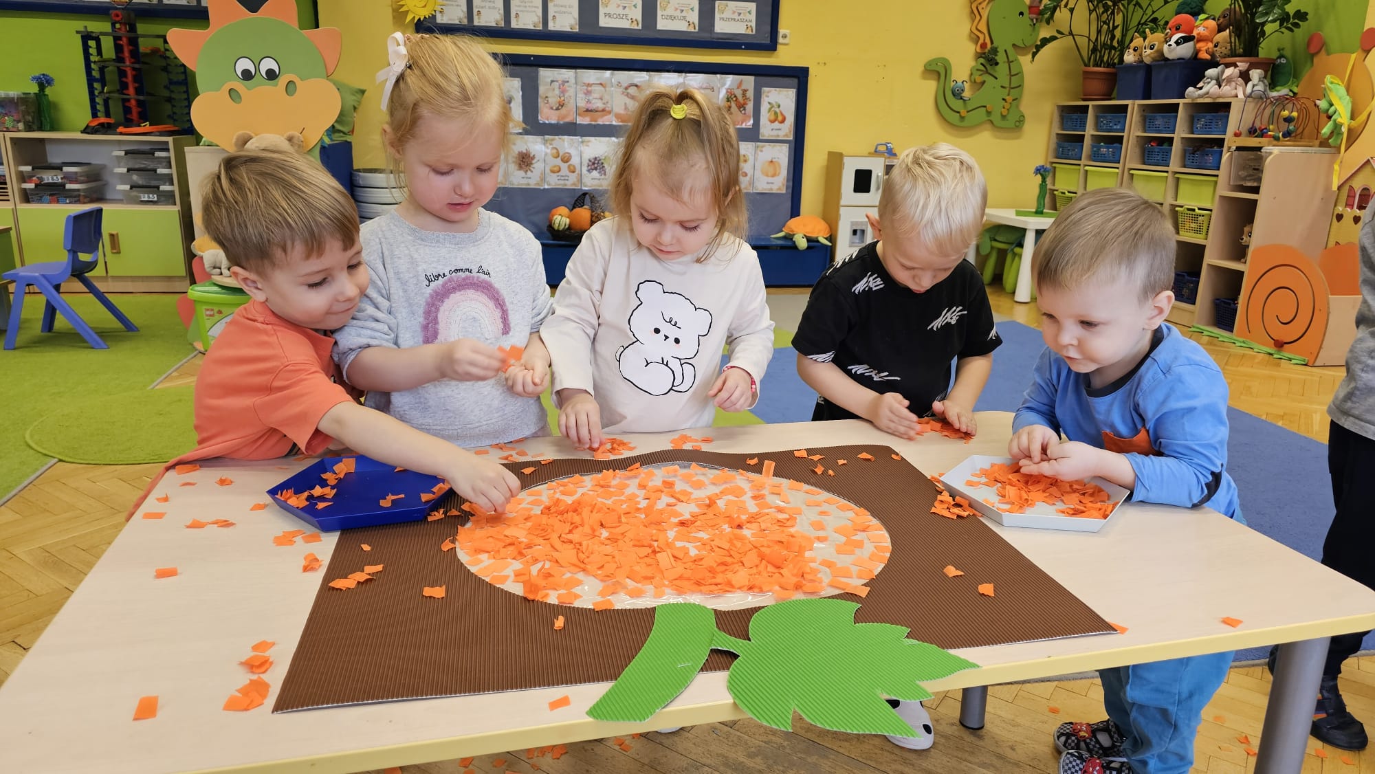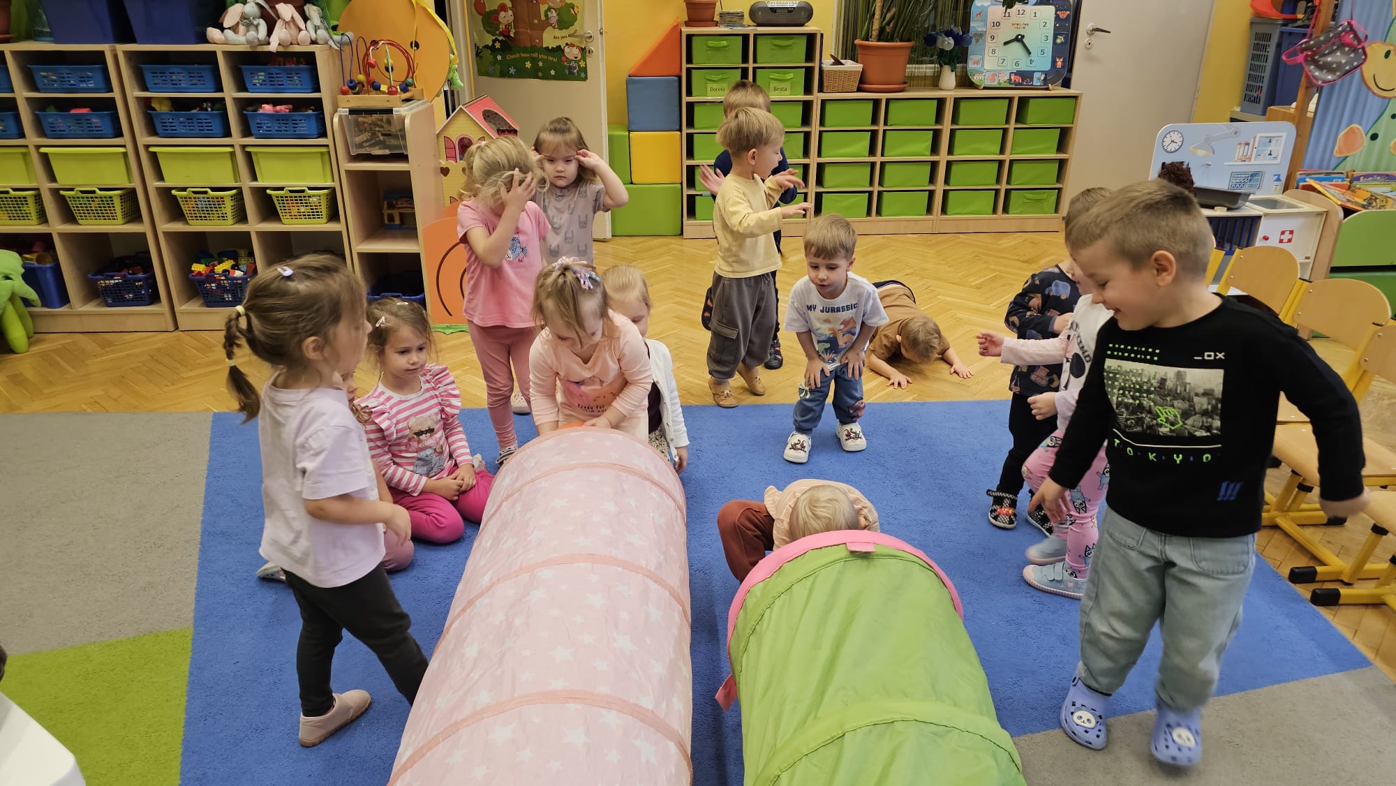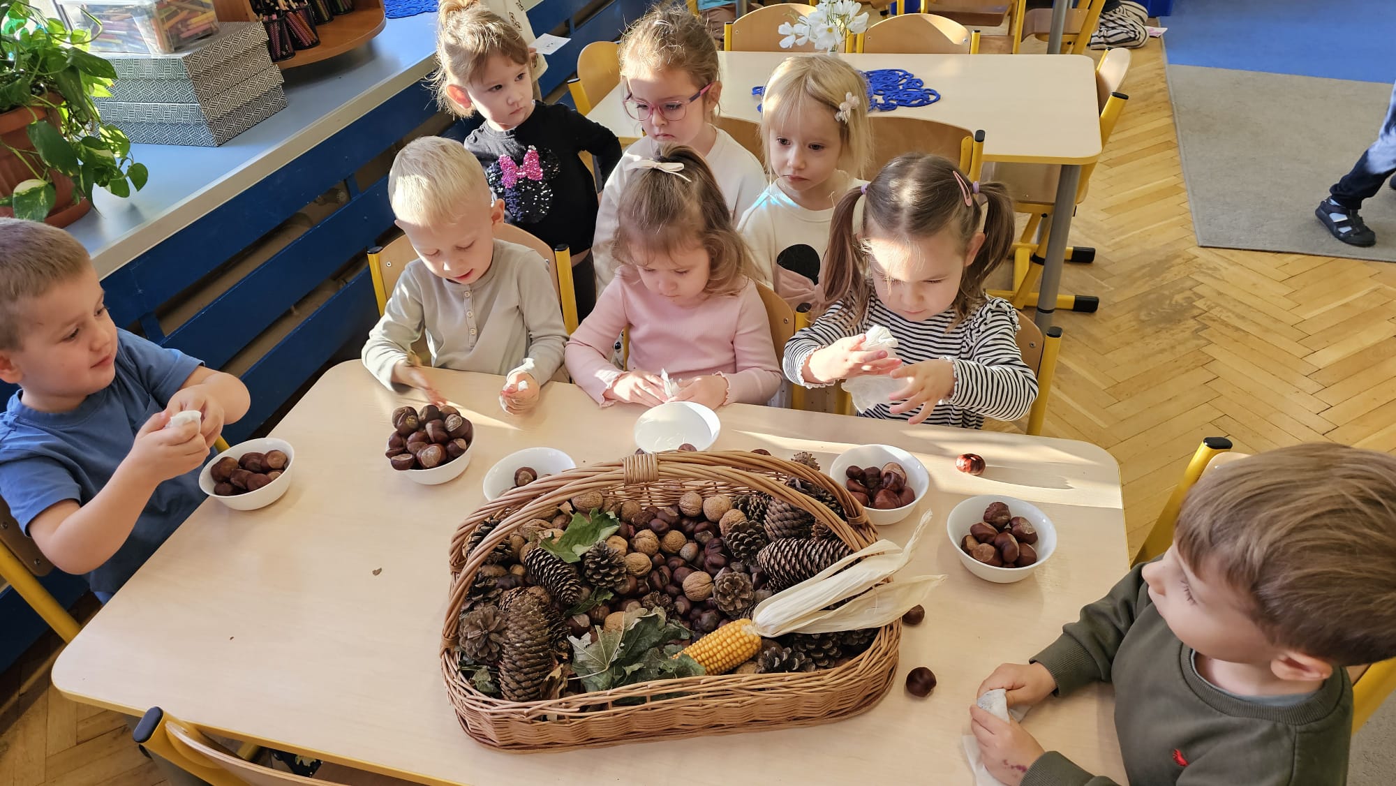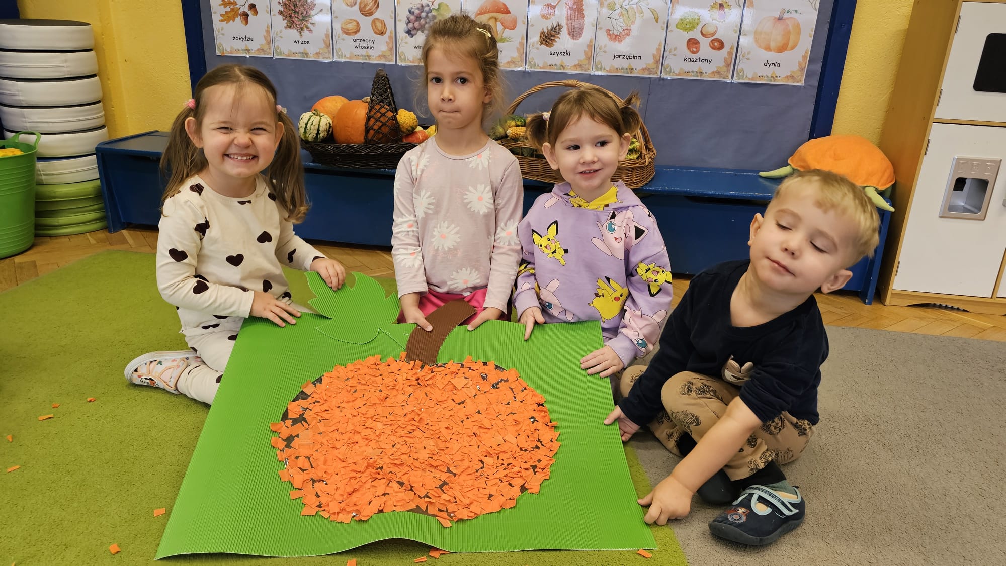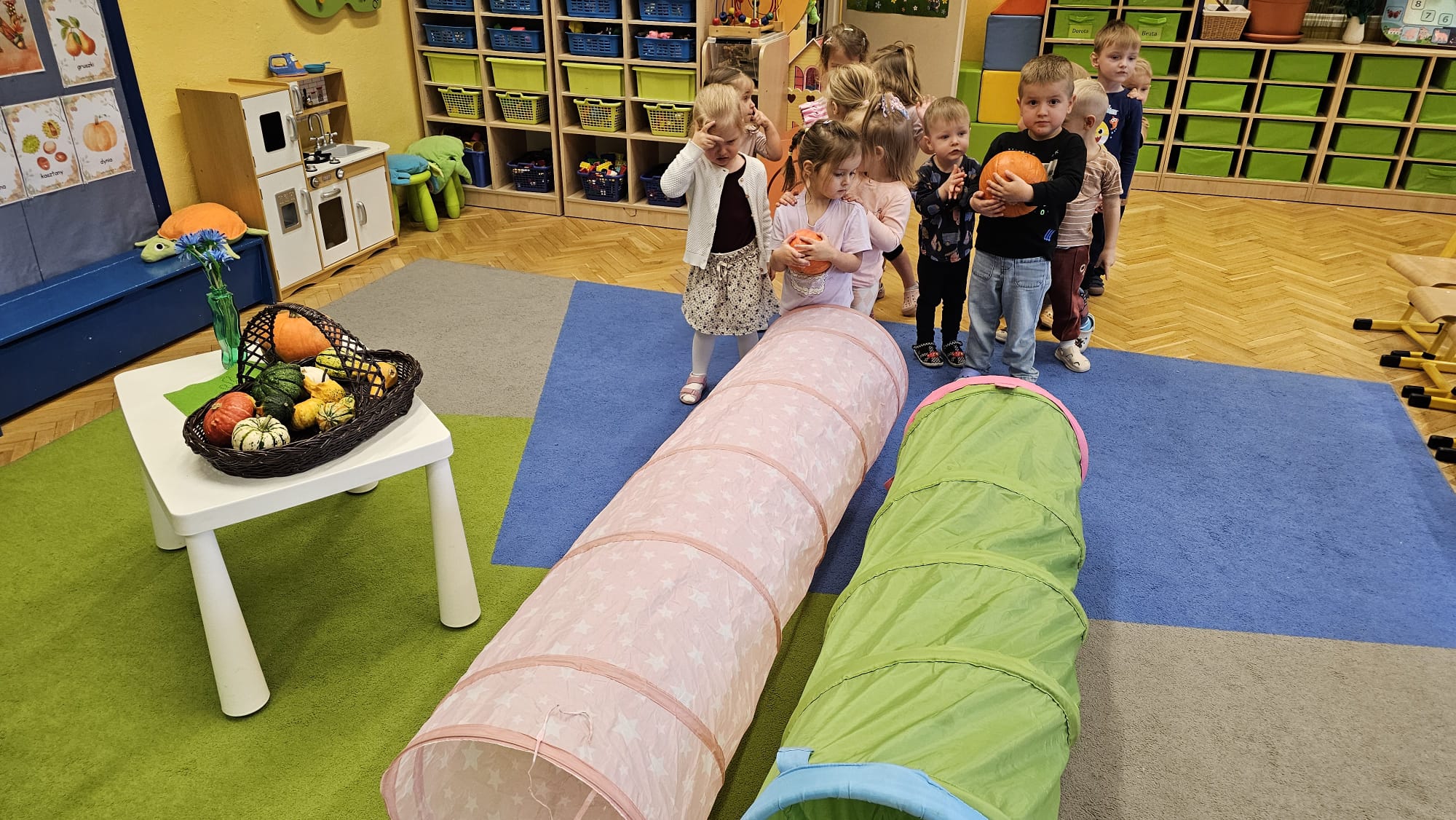 W ostatnim czasie dzieci z naszej grupy realizowały projekt „Sensoryczna jesień”, którego celem było rozwijanie zmysłów, ciekawości poznawczej oraz wrażliwości na piękno przyrody. Przedszkolaki odkrywały jesienne skarby – kolorowe liście, kasztany, szyszki i gałązki sosny, a także warzywa charakterystyczne dla tej pory roku. Poprzez eksperymenty, zabawy ruchowe, plastyczne i sensoryczne dzieci poznawały zmiany zachodzące w przyrodzie jesienią. Projekt pozwolił najmłodszym rozwijać spostrzegawczość, kreatywność i umiejętność współpracy podczas wspólnej zabawy i odkrywania świata wszystkimi zmysłami.
