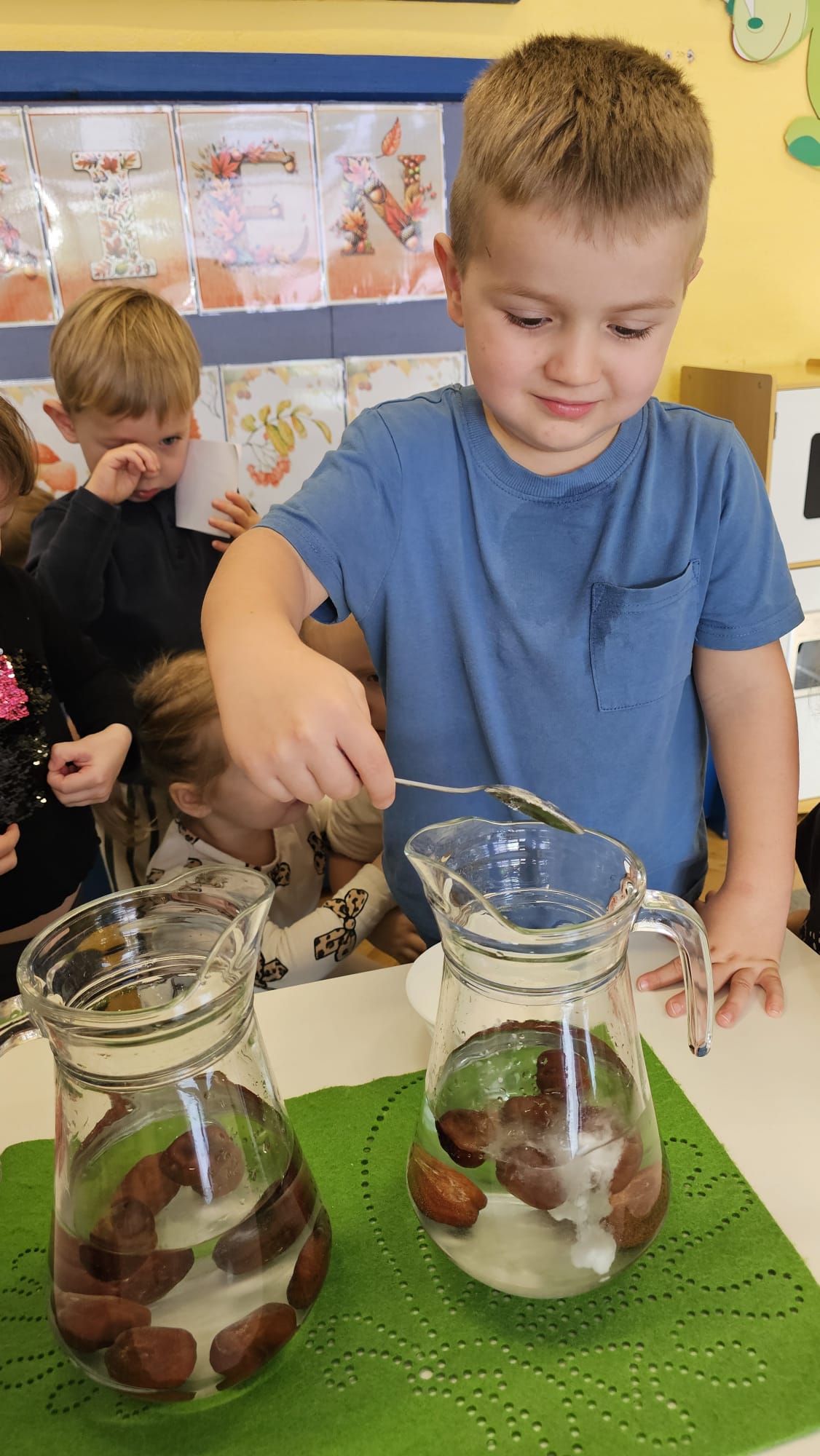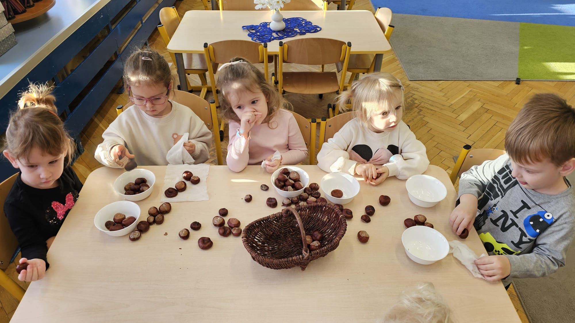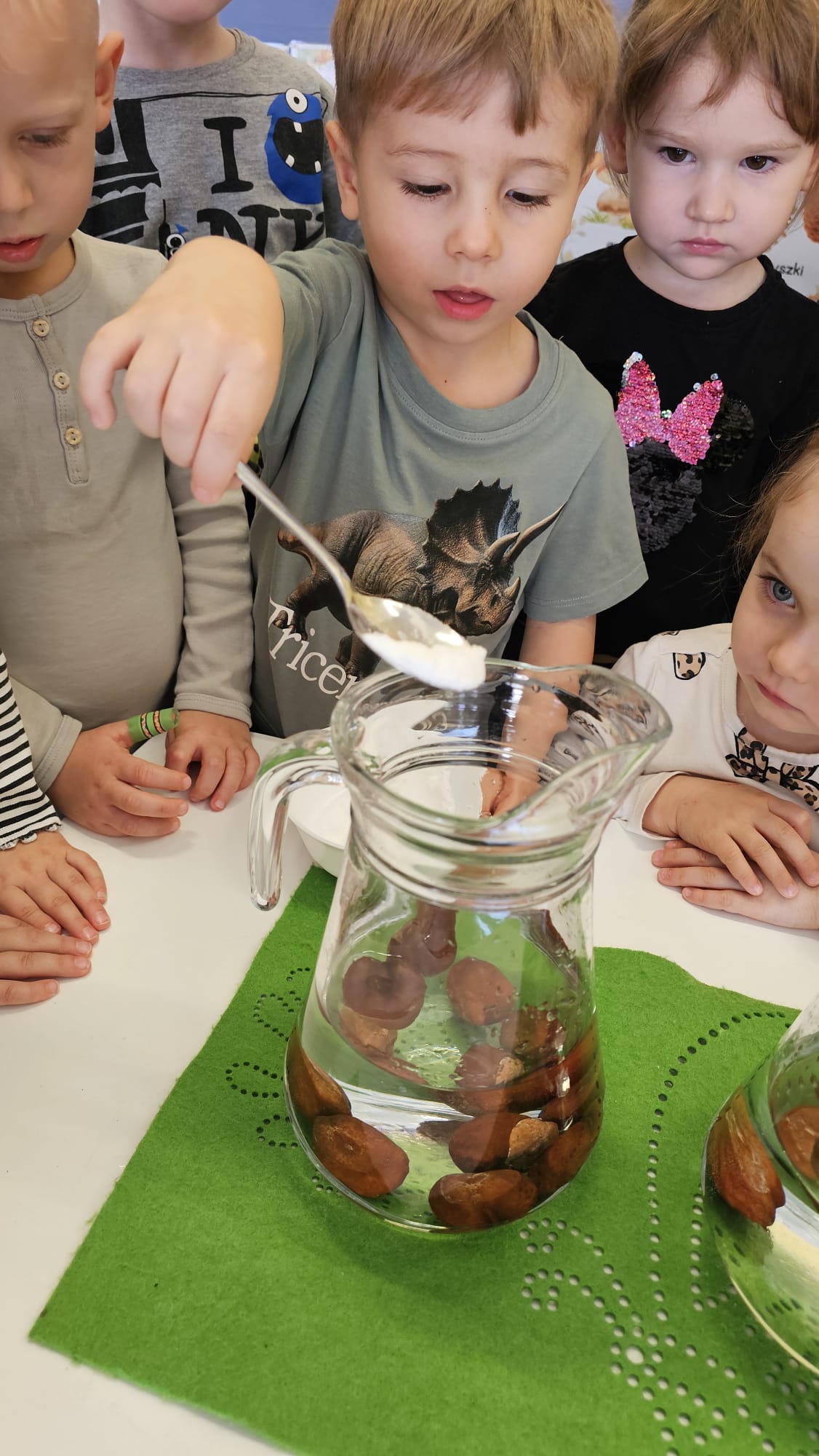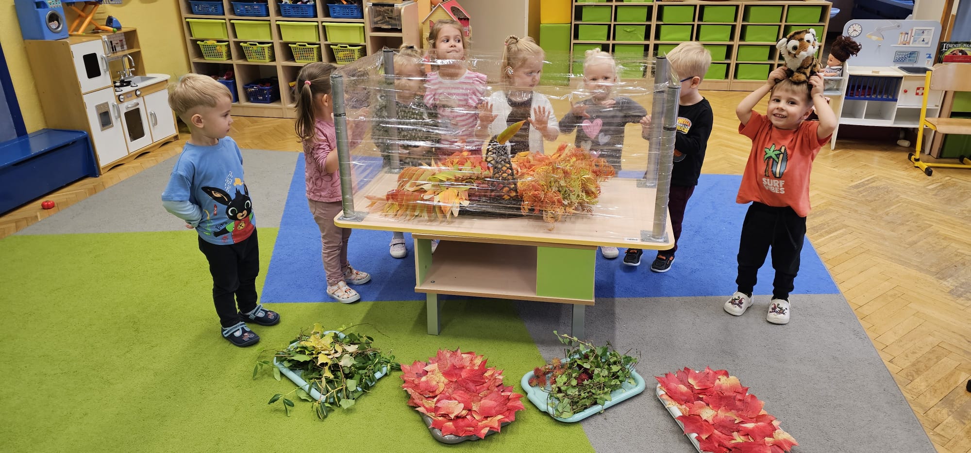 W ostatnim czasie dzieci z naszej grupy realizowały projekt „Sensoryczna jesień”, którego celem było rozwijanie zmysłów, ciekawości poznawczej oraz wrażliwości na piękno przyrody. Przedszkolaki odkrywały jesienne skarby – kolorowe liście, kasztany, szyszki i gałązki sosny, a także warzywa charakterystyczne dla tej pory roku. Poprzez eksperymenty, zabawy ruchowe, plastyczne i sensoryczne dzieci poznawały zmiany zachodzące w przyrodzie jesienią. Projekt pozwolił najmłodszym rozwijać spostrzegawczość, kreatywność i umiejętność współpracy podczas wspólnej zabawy i odkrywania świata wszystkimi zmysłami.