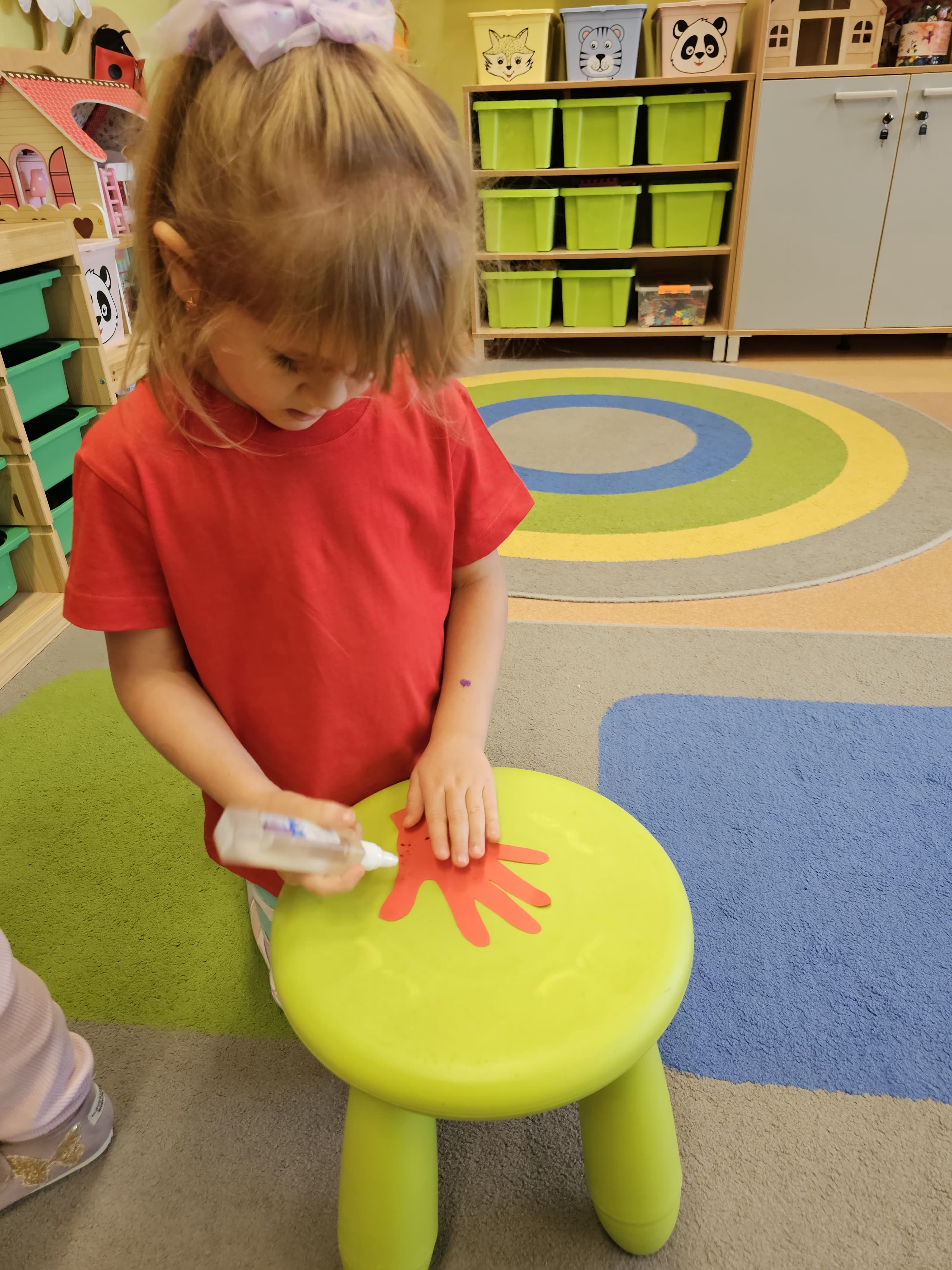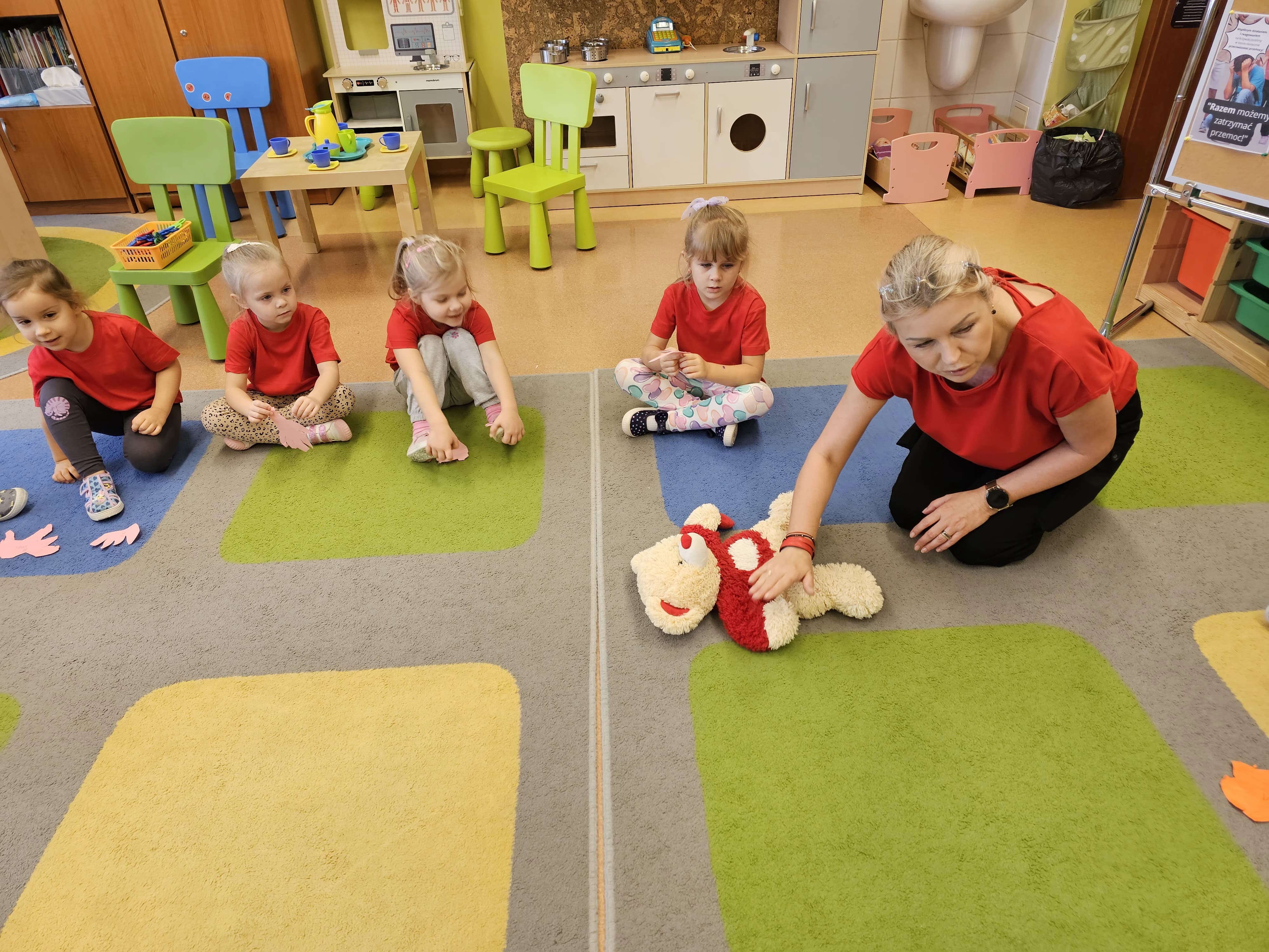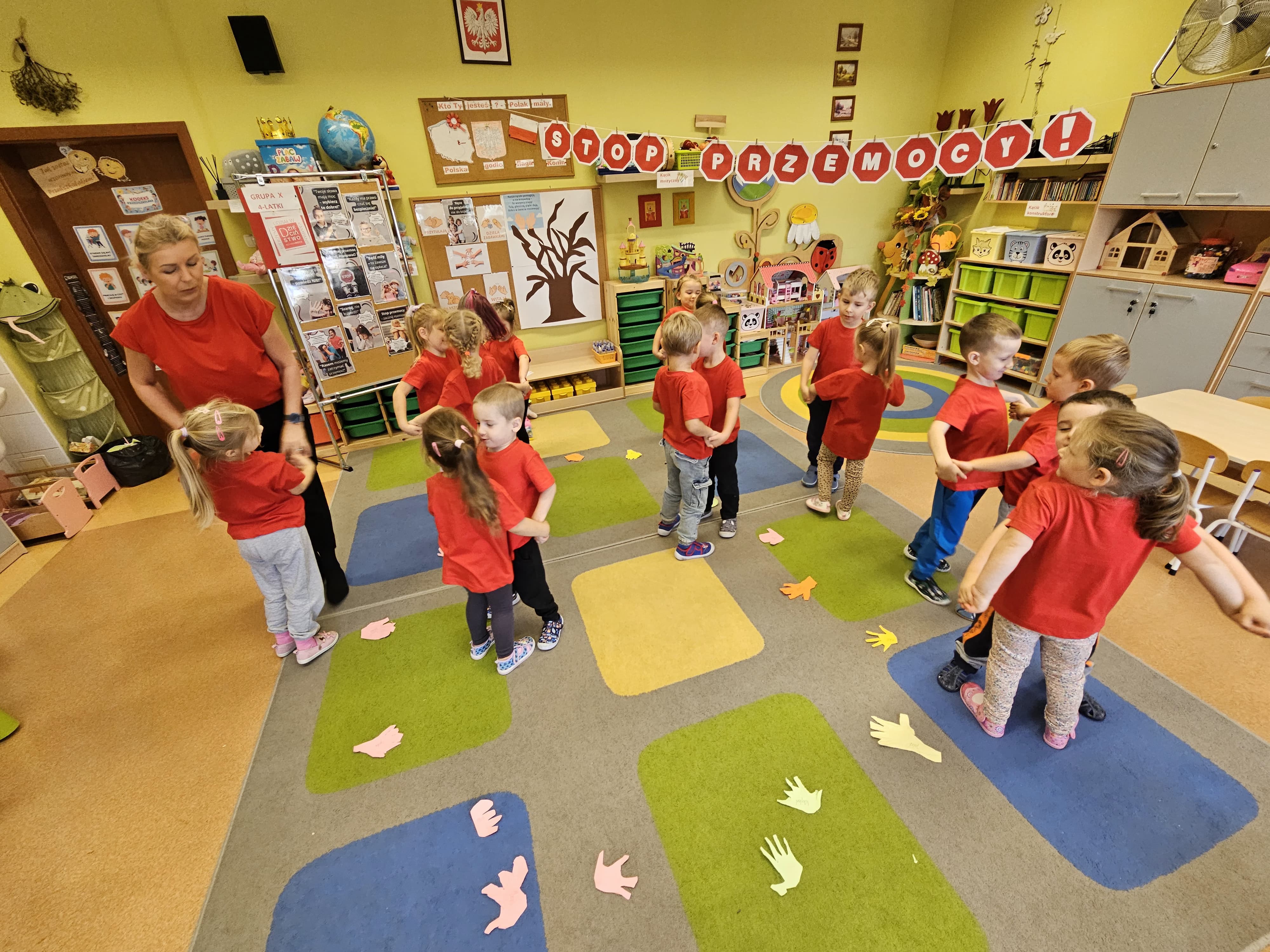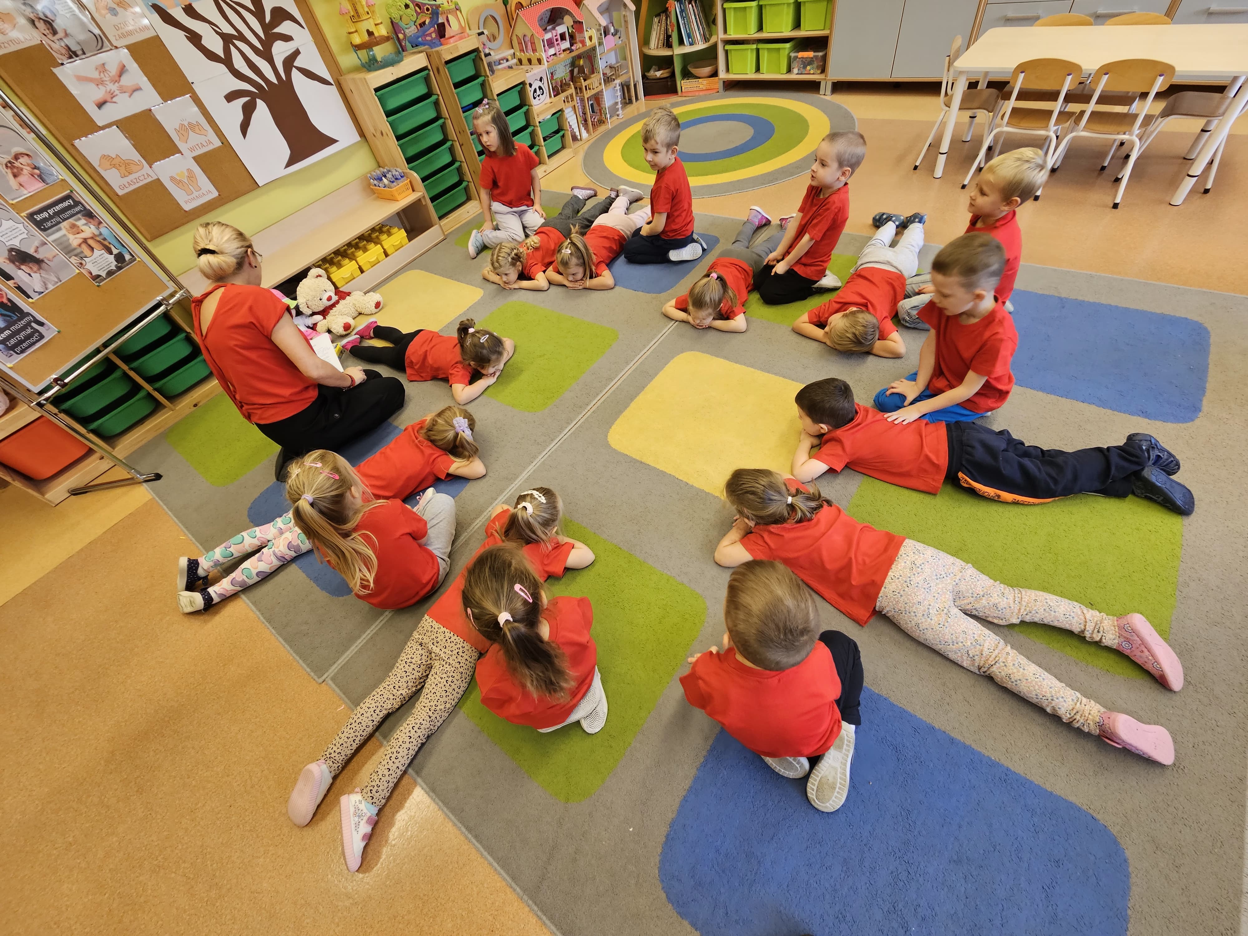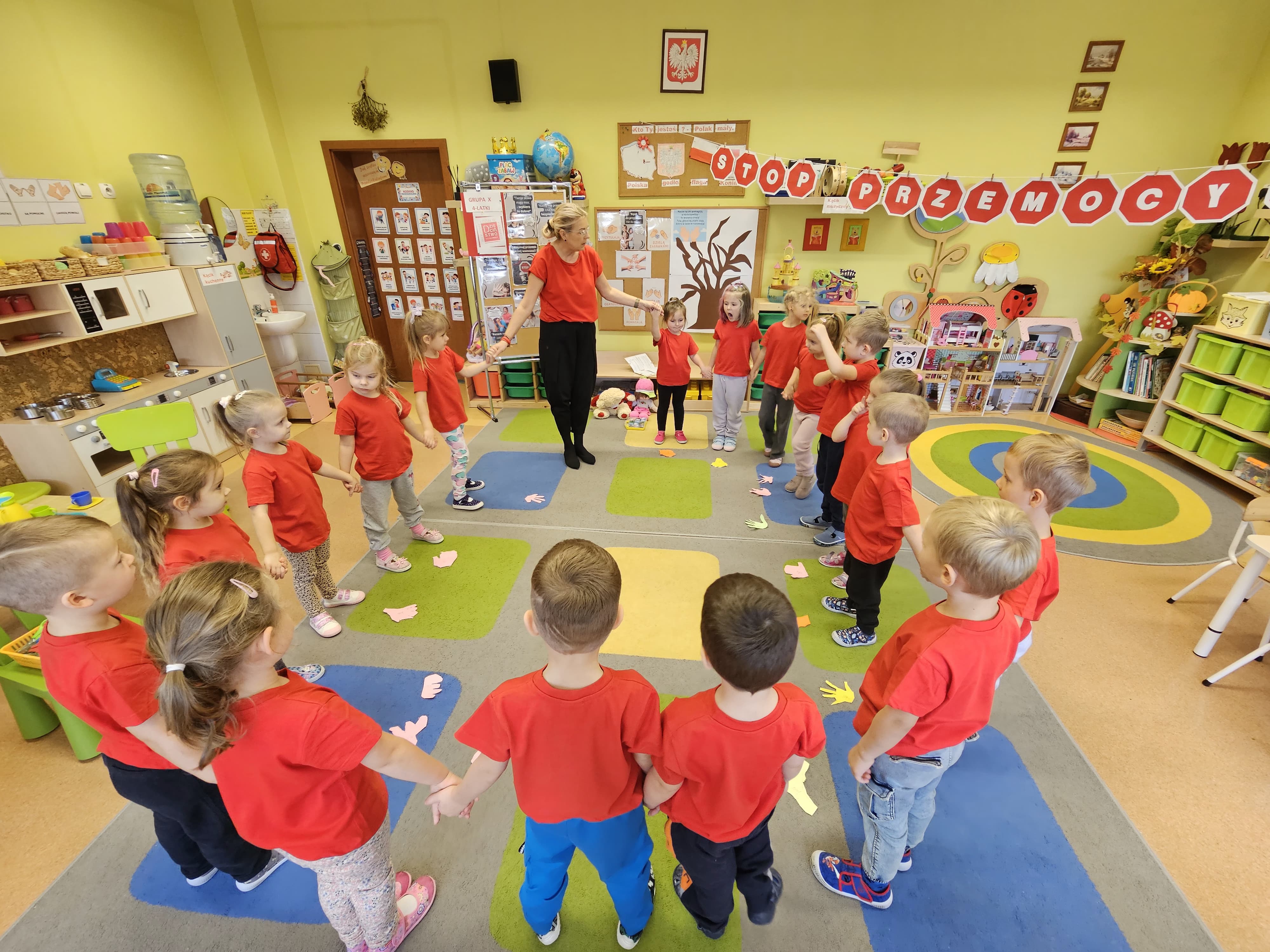 13.10. 2025 r. odbyły się wyjątkowe zajęcia w grupie średniaków, pod hasłem „Rączki, które pomagają”, zorganizowane w ramach ogólnopolskiej akcji „Dzieciństwo bez przemocy”. Celem naszych działań było pokazanie dzieciom, że każdy z nas ma moc czynienia dobra – wystarczy uśmiech, dobre słowo i pomocna dłoń. Podczas zajęć przedszkolaki uczestniczyły w zabawach ruchowych, plastycznych i rozmowach , które uczyły, jak ważna jest życzliwość, empatia i współpraca. Dzieci tworzyły własne „Rączki, które pomagają” – wycięte, kolorowe dłonie z zapisanymi dobrymi uczynkami, takimi jak: pomagam, przytulam, dzielę się, przepraszam, głaszczę, witam. Wspólnie powstało piękne „Drzewo dobrych dłoni”, symbol naszej przedszkolnej wspólnoty i wzajemnego wsparcia. Nie zabrakło także opowiadania o Misiu, który nauczył się przepraszać – dzięki niemu dzieci zrozumiały, że każdy może popełnić błąd, ale najważniejsze to umieć go naprawić i powiedzieć „przepraszam”. Na zakończenie każde dziecko otrzymało dyplom uczestnictwa w akcji i obiecało, że jego rączki będą służyć tylko do dobrych uczynków, zgodnie z przesłaniem : „Nasze rączki mogą tworzyć dobro każdego dnia – pomagając, przytulając i niosąc uśmiech innym.”