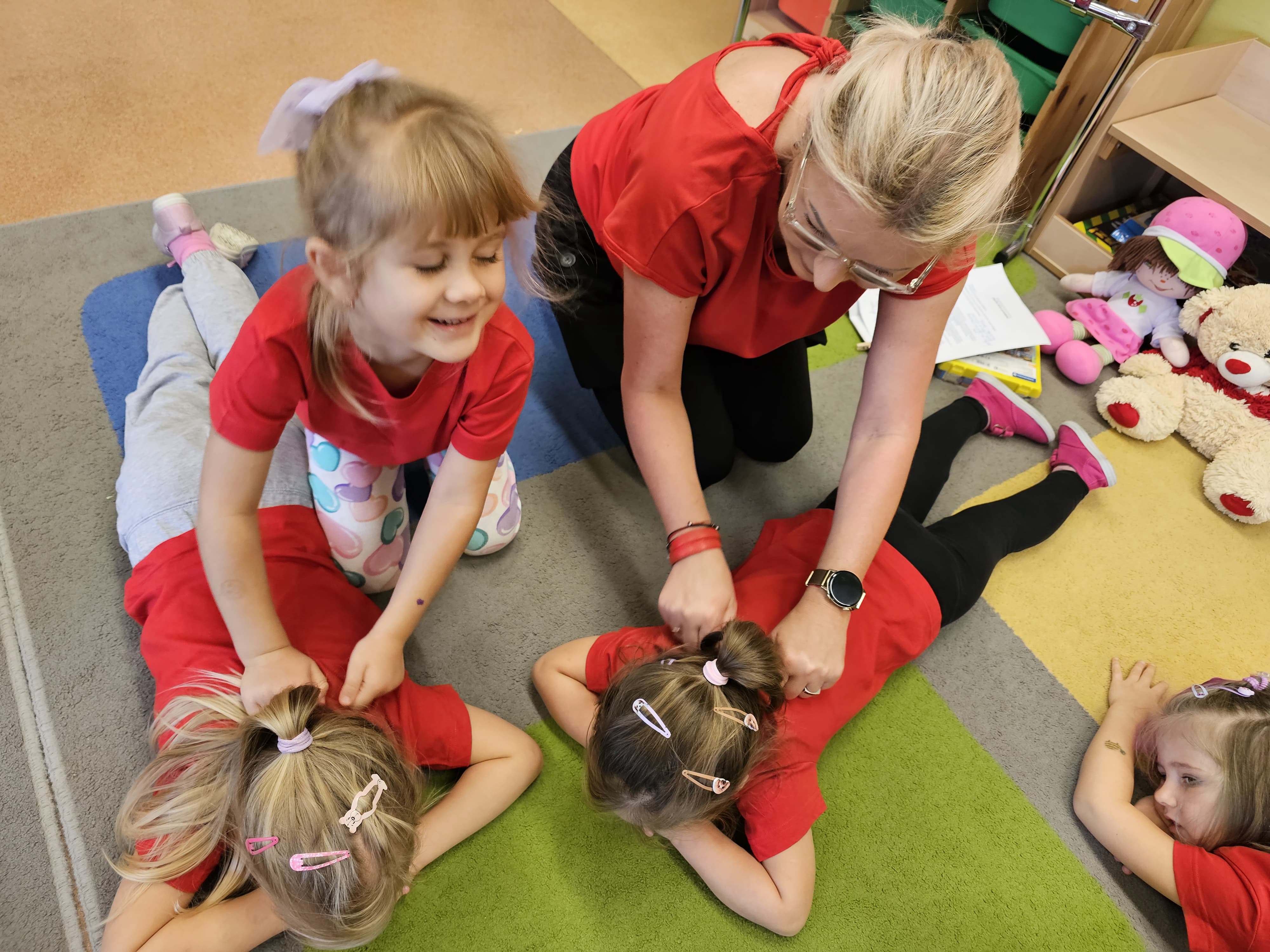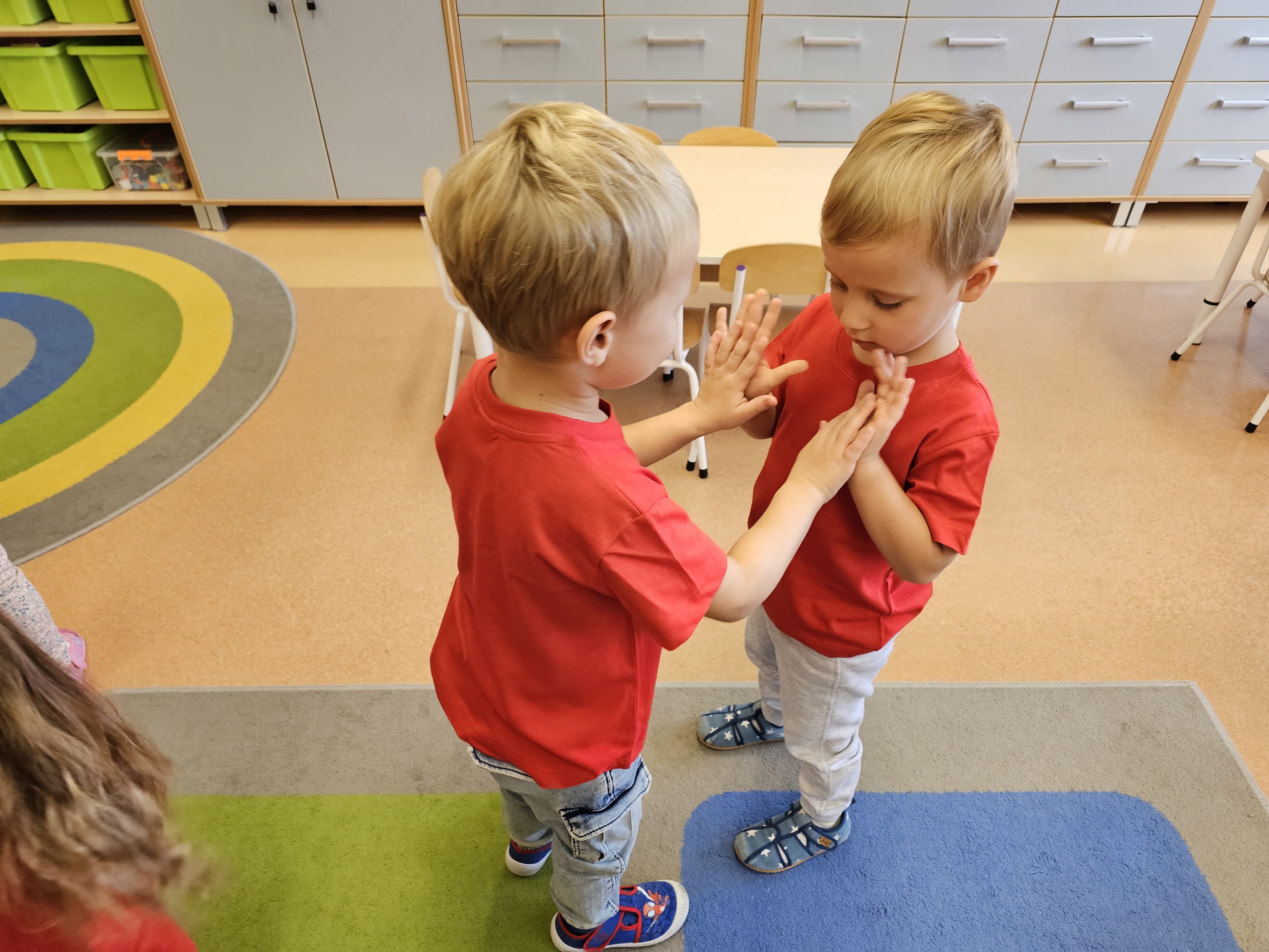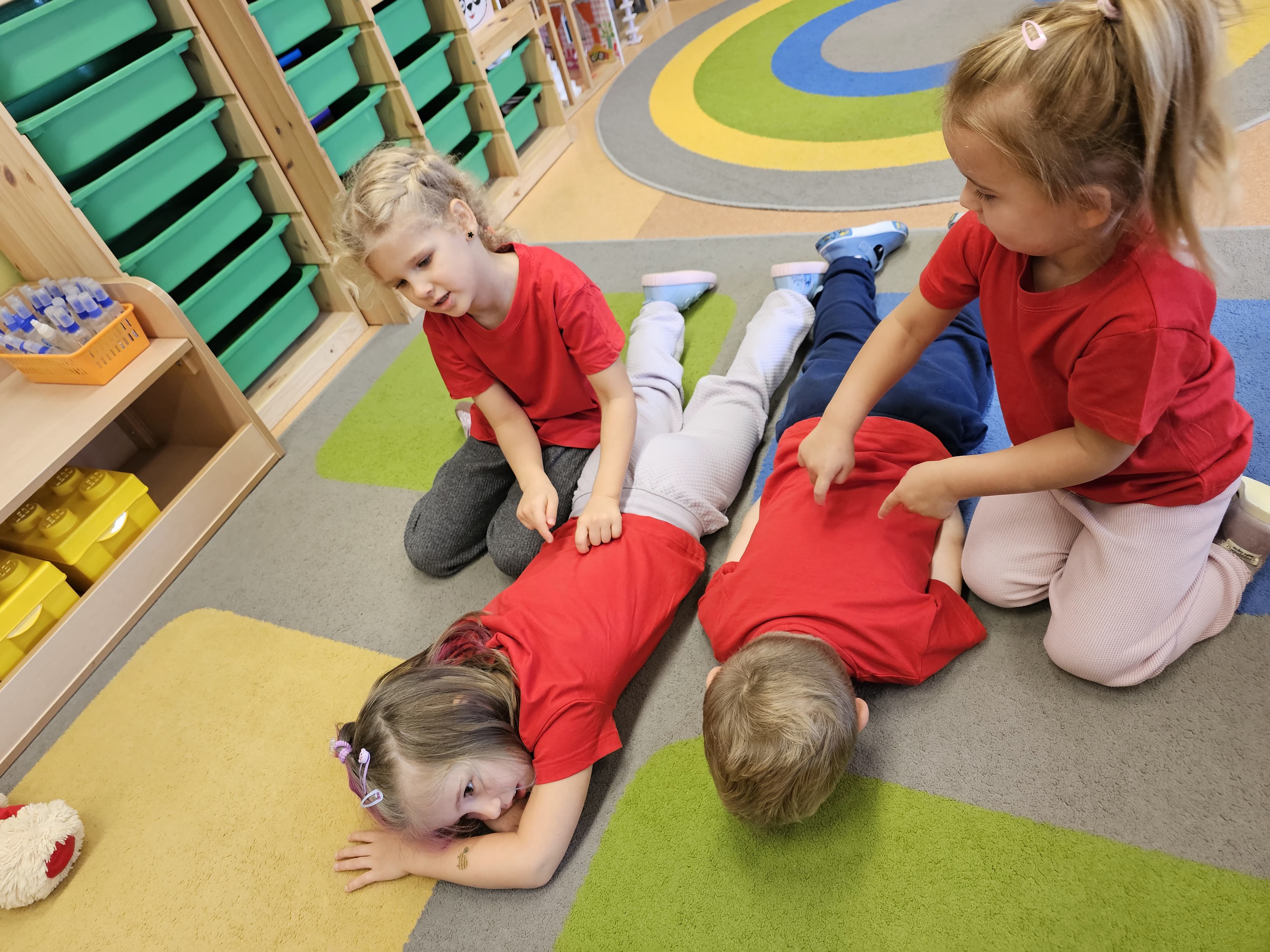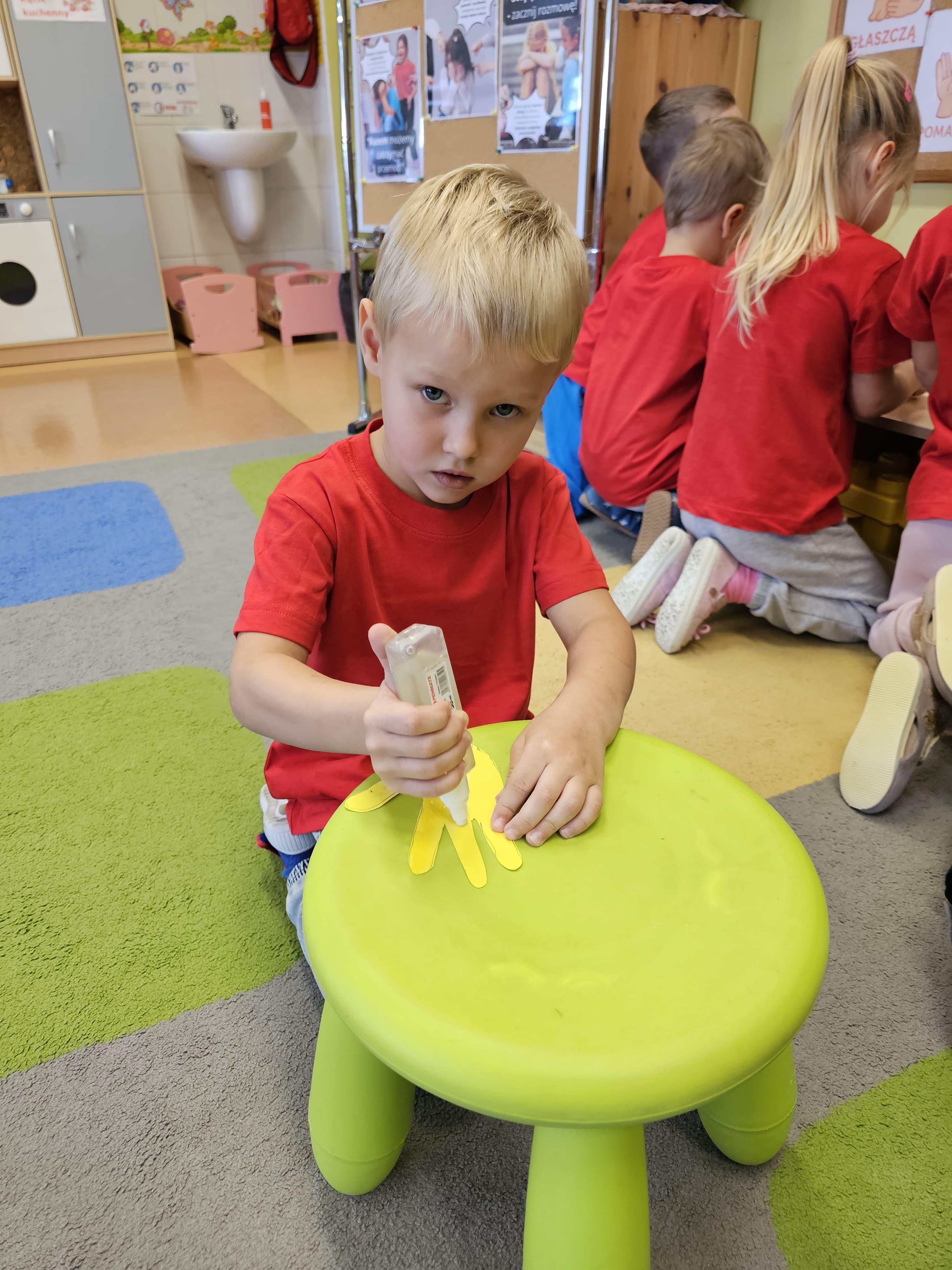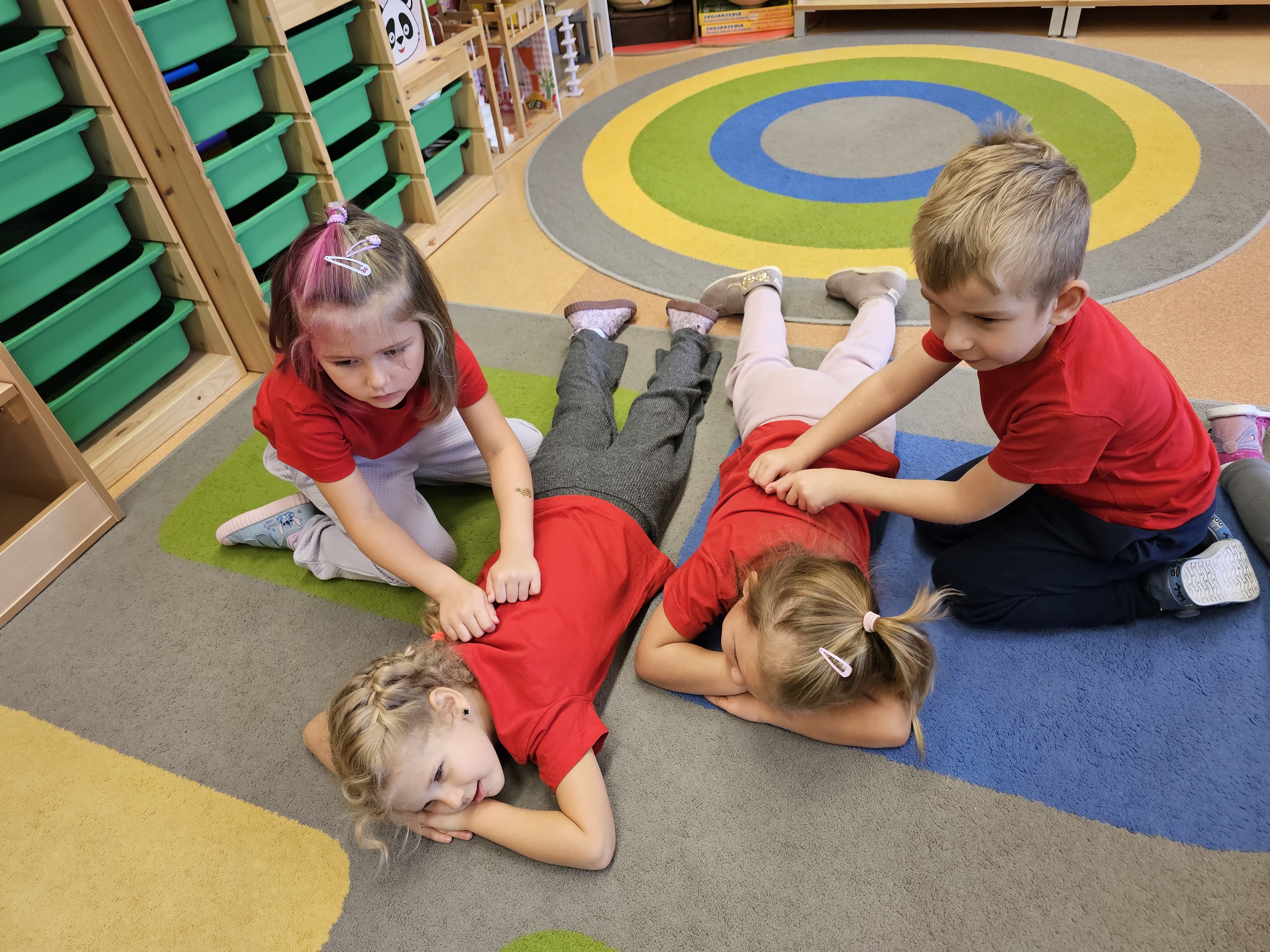 13.10. 2025 r. odbyły się wyjątkowe zajęcia w grupie średniaków, pod hasłem „Rączki, które pomagają”, zorganizowane w ramach ogólnopolskiej akcji „Dzieciństwo bez przemocy”. Celem naszych działań było pokazanie dzieciom, że każdy z nas ma moc czynienia dobra – wystarczy uśmiech, dobre słowo i pomocna dłoń. Podczas zajęć przedszkolaki uczestniczyły w zabawach ruchowych, plastycznych i rozmowach , które uczyły, jak ważna jest życzliwość, empatia i współpraca. Dzieci tworzyły własne „Rączki, które pomagają” – wycięte, kolorowe dłonie z zapisanymi dobrymi uczynkami, takimi jak: pomagam, przytulam, dzielę się, przepraszam, głaszczę, witam. Wspólnie powstało piękne „Drzewo dobrych dłoni”, symbol naszej przedszkolnej wspólnoty i wzajemnego wsparcia. Nie zabrakło także opowiadania o Misiu, który nauczył się przepraszać – dzięki niemu dzieci zrozumiały, że każdy może popełnić błąd, ale najważniejsze to umieć go naprawić i powiedzieć „przepraszam”. Na zakończenie każde dziecko otrzymało dyplom uczestnictwa w akcji i obiecało, że jego rączki będą służyć tylko do dobrych uczynków, zgodnie z przesłaniem : „Nasze rączki mogą tworzyć dobro każdego dnia – pomagając, przytulając i niosąc uśmiech innym.”