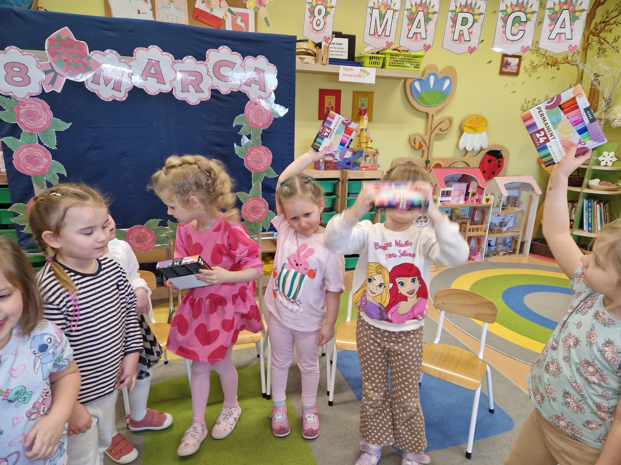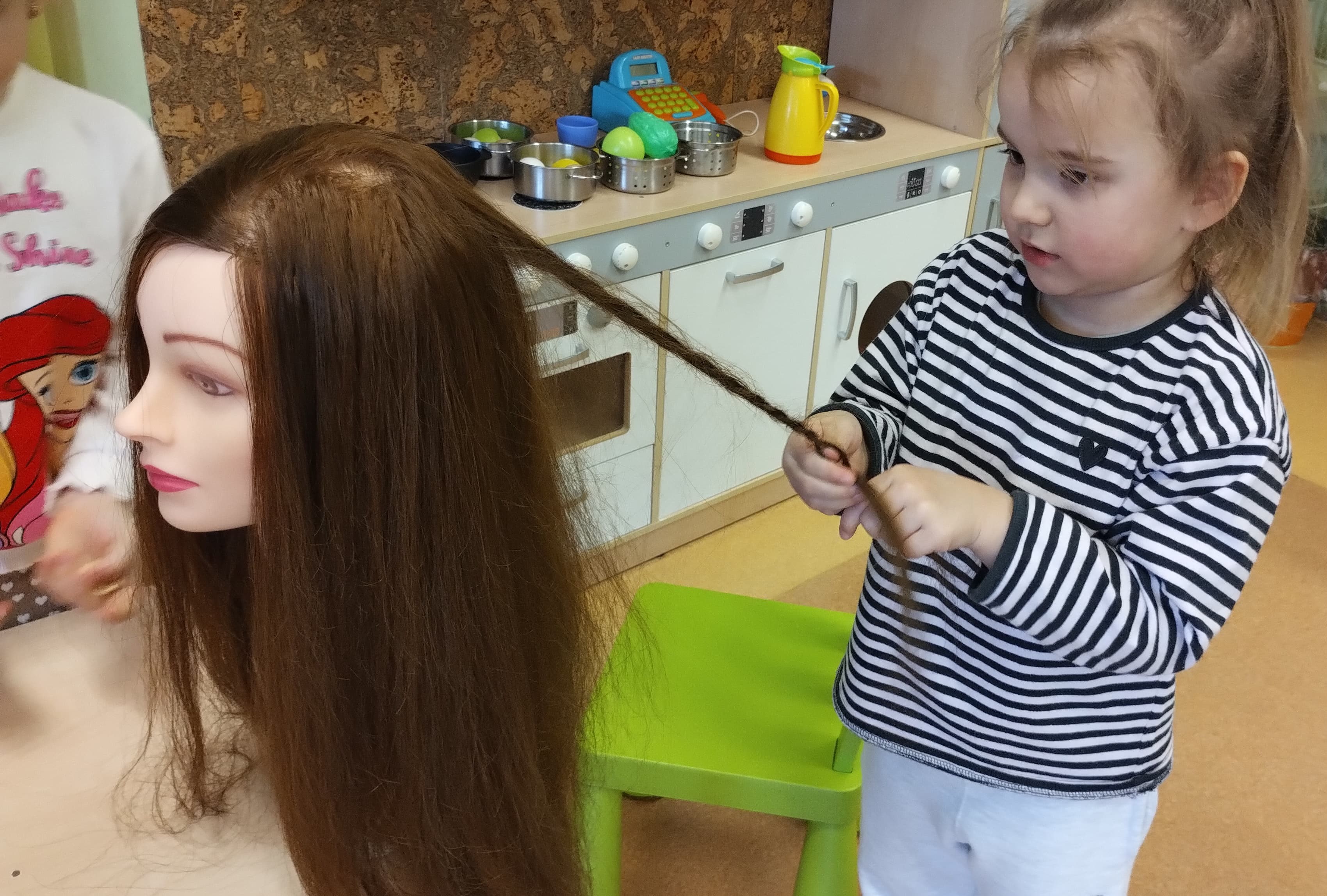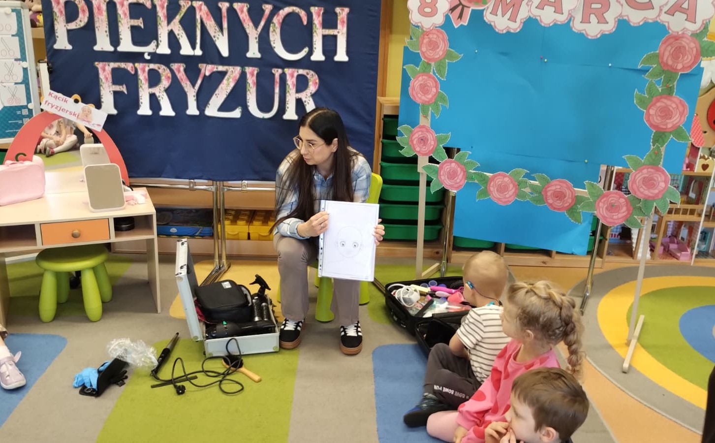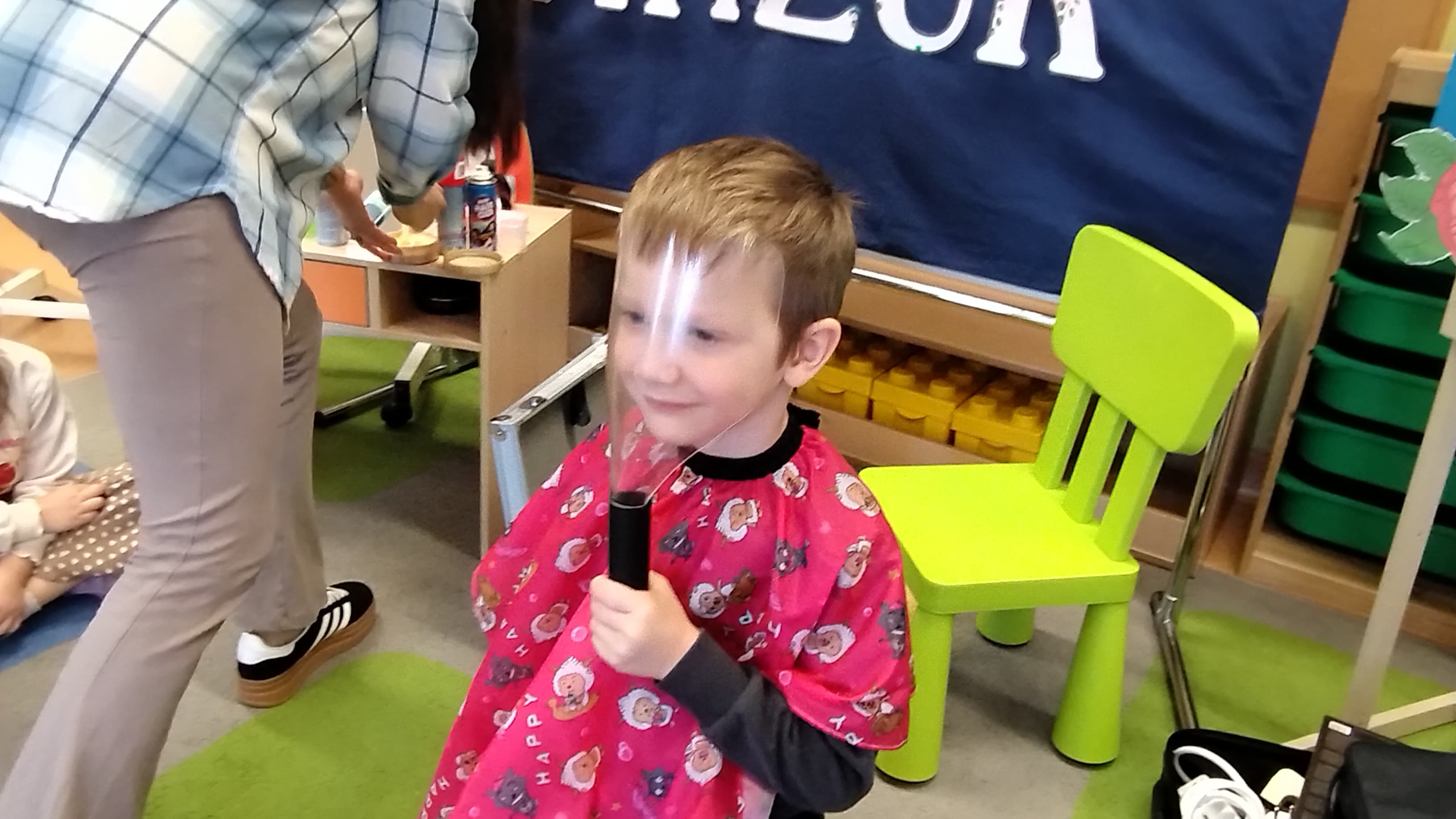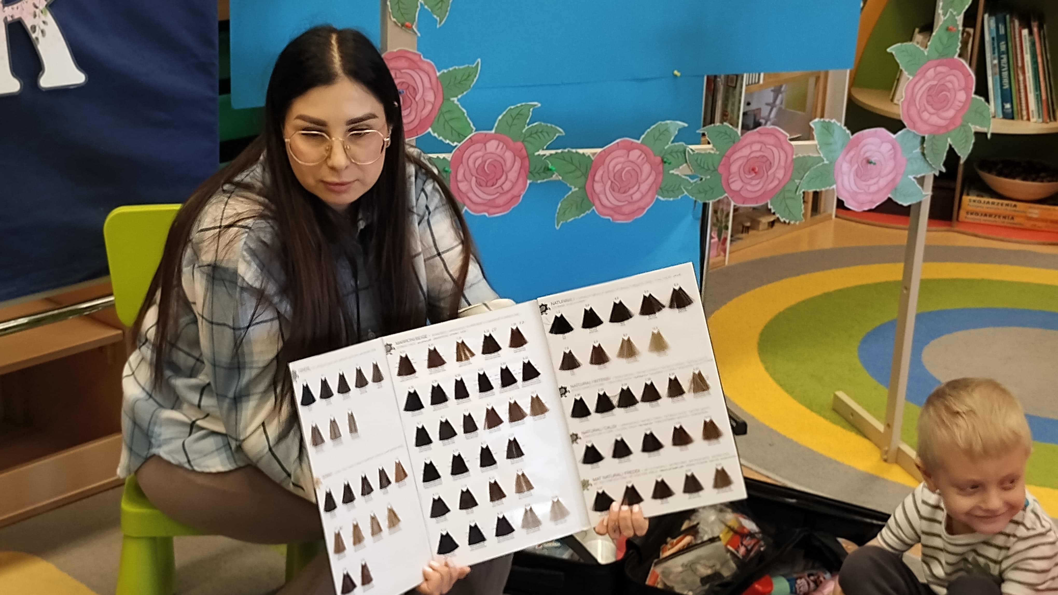 „ …. Być kobietą, być kobietą marzę ciągle będąc dzieckiem …” Która mała dziewczynka nie snuje wyobrażeń o byciu kobietą ??? Chyba każda, a celebrowanie Dnia Kobiet, na pewno pozwoliło przybliżyć te wyobrażenia. Choć Dzień Kobiet kojarzy nam się często z kwiatami, upominkami, których także nie zabrakło, to w grupie X tego dnia, dziewczynki mogły poczuć się, jak w prawdziwym salonie fryzjerskim, a to za sprawą spotkania z panią fryzjerką. Dnia 9. 03. 2026 odwiedziła nas mama Zuzi - pani Klaudia, której pasją i zawodem jest właśnie fryzjerstwo. I to dzięki pani Klaudii, dziewczynki mogły poczuć się tak wyjątkowo. Zanim jednak to nastąpiło, przedszkolaki miały wyjątkową okazję poznać zawód fryzjera! Podczas tej niezwykłej wizyty dzieci dowiedziały się, na czym polega praca fryzjera, jakie narzędzia są niezbędne w salonie fryzjerskim oraz jak prawidłowo dbać o włosy. Największą atrakcją spotkania był pokaz stylizacji fryzur, w którym modelkami zostały nasze dziewczynki oraz chłopcy. Dzieci z zaciekawieniem obserwowały, jak pani Klaudia - tworzy piękne upięcia, warkocze i loki, wykorzystując profesjonalne narzędzia. Same też mogły tworzyć fryzury na profesjonalnym manekinie fryzjerskim. Nie zabrakło również rozmów o różnych fryzjerskich trikach i porad na temat pielęgnacji włosów. Niespodzianka również czekała na chłopców …. „ kolorowy trik” na włosach. To spotkanie było nie tylko świetną zabawą, ale też cenną lekcją o jednym z ciekawszych, artystycznych zawodów. Kto wie, może wśród naszych przedszkolaków rośnie przyszła mistrzyni lub mistrz fryzjerstwa? Serdecznie dziękujemy naszemu gościowi za wizytę, za suuuper zabawę, wystrzałowe fryzury i poświęcony czas. Czekamy na kolejne inspirujące spotkania z naszymi rodzicami! A po obiadku nastąpił ciąg dalszy świętowania Dnia Kobiet w grupie X. Chłopcy wręczyli dziewczynkom upominki, po czym dzieci wspólnie rozpoczęły biesiadowanie przy słodkościach, o które zatroszczyli się niezawodni rodzice naszych przedszkolaków, za co serdecznie dziękujemy. To był naprawdę bardzo radosny, wypełniony wzajemnym szacunkiem i życzliwością dzień.