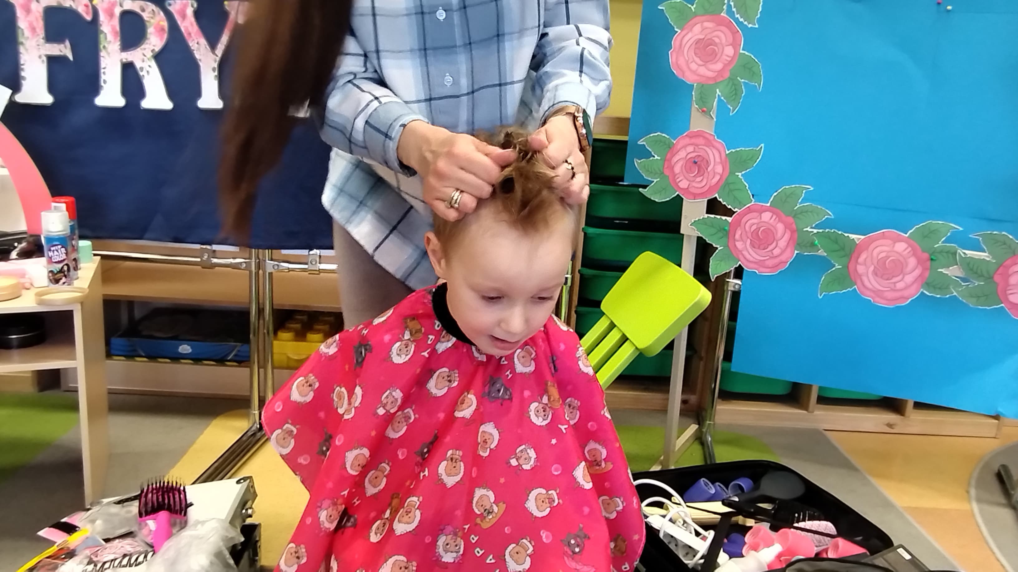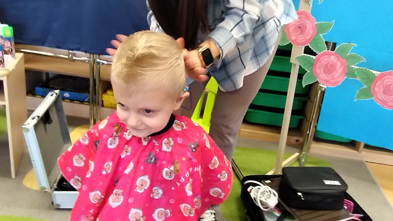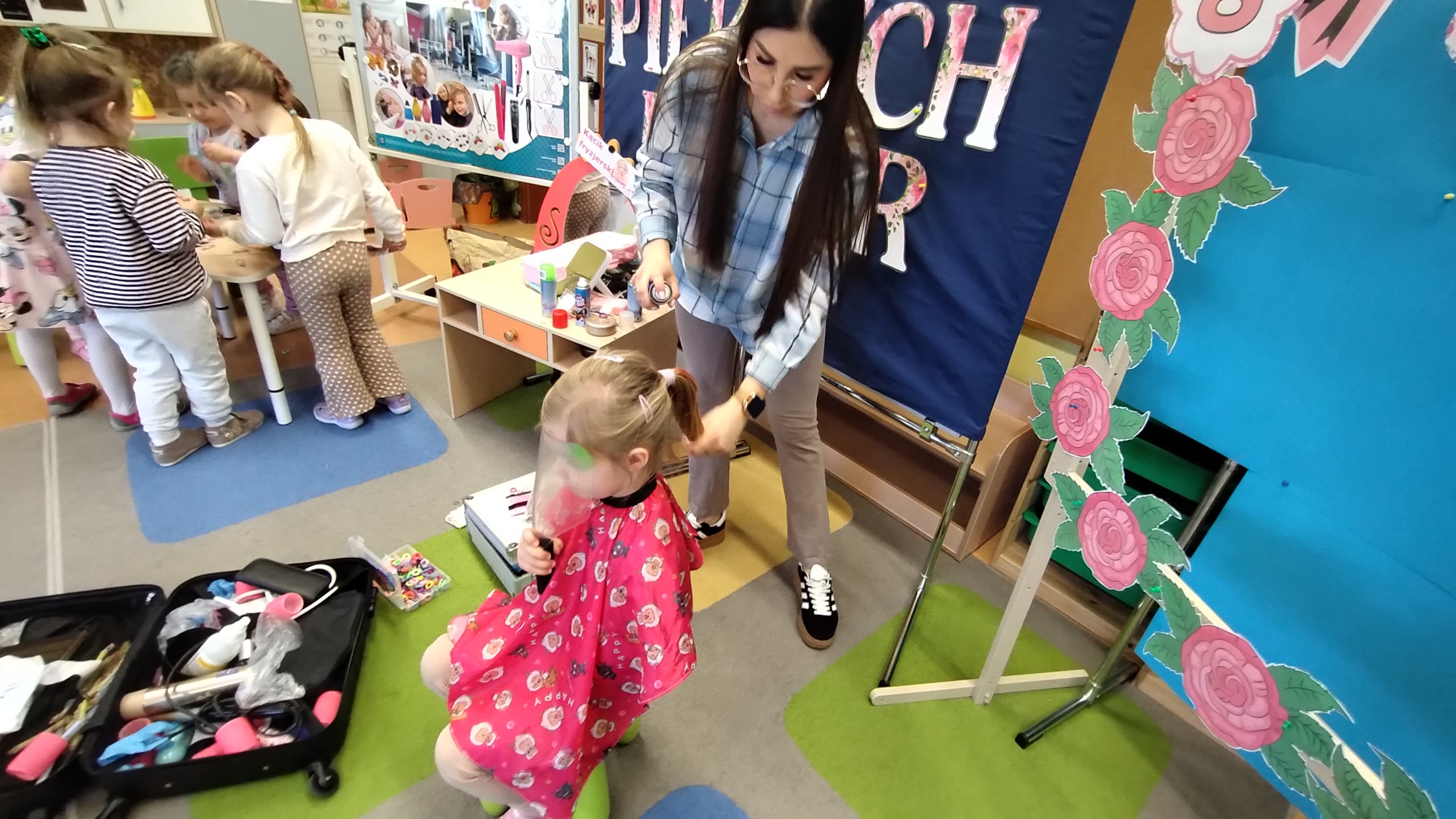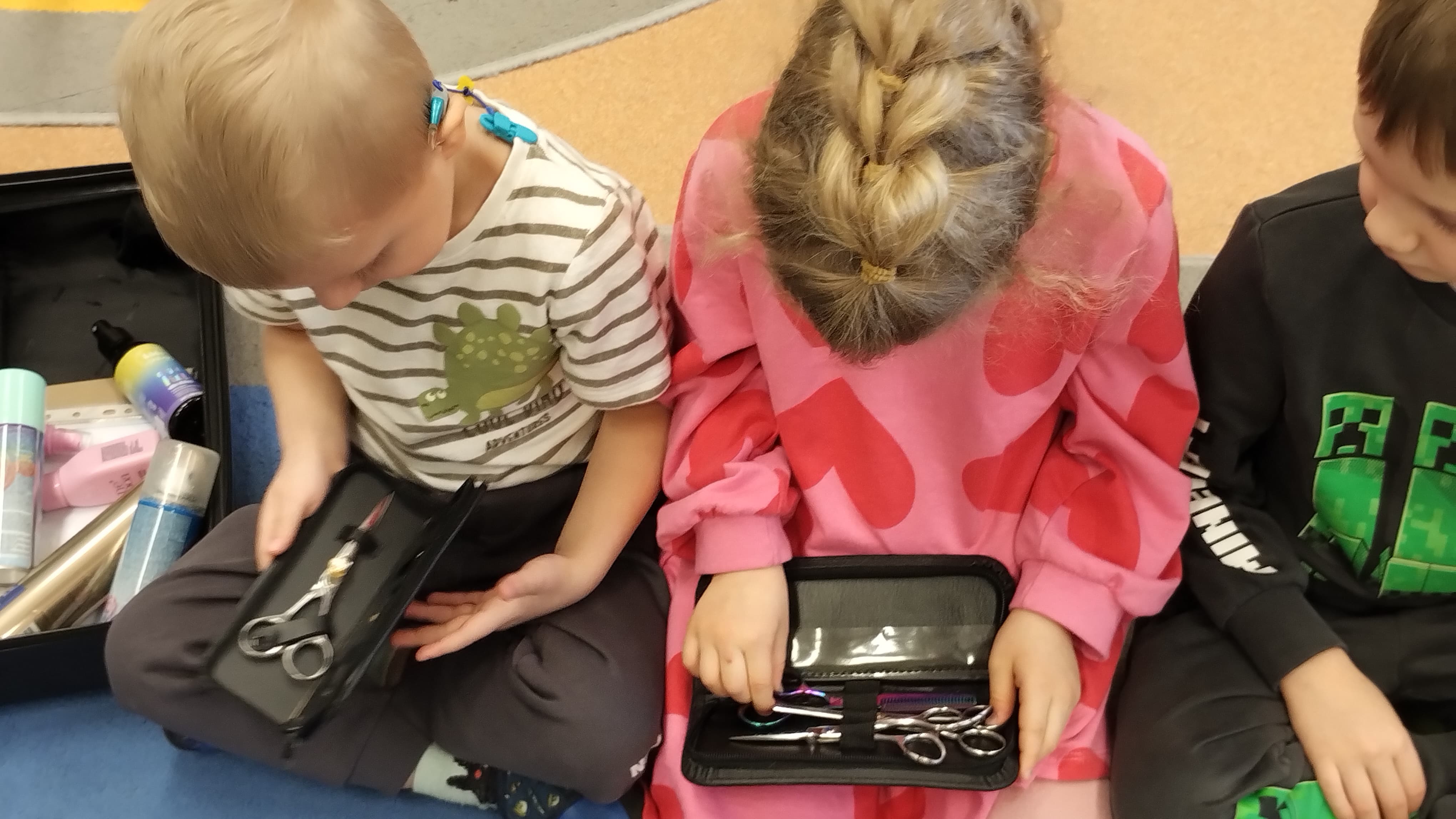 „ …. Być kobietą, być kobietą marzę ciągle będąc dzieckiem …” Która mała dziewczynka nie snuje wyobrażeń o byciu kobietą ??? Chyba każda, a celebrowanie Dnia Kobiet, na pewno pozwoliło przybliżyć te wyobrażenia. Choć Dzień Kobiet kojarzy nam się często z kwiatami, upominkami, których także nie zabrakło, to w grupie X tego dnia, dziewczynki mogły poczuć się, jak w prawdziwym salonie fryzjerskim, a to za sprawą spotkania z panią fryzjerką. Dnia 9. 03. 2026 odwiedziła nas mama Zuzi - pani Klaudia, której pasją i zawodem jest właśnie fryzjerstwo. I to dzięki pani Klaudii, dziewczynki mogły poczuć się tak wyjątkowo. Zanim jednak to nastąpiło, przedszkolaki miały wyjątkową okazję poznać zawód fryzjera! Podczas tej niezwykłej wizyty dzieci dowiedziały się, na czym polega praca fryzjera, jakie narzędzia są niezbędne w salonie fryzjerskim oraz jak prawidłowo dbać o włosy. Największą atrakcją spotkania był pokaz stylizacji fryzur, w którym modelkami zostały nasze dziewczynki oraz chłopcy. Dzieci z zaciekawieniem obserwowały, jak pani Klaudia - tworzy piękne upięcia, warkocze i loki, wykorzystując profesjonalne narzędzia. Same też mogły tworzyć fryzury na profesjonalnym manekinie fryzjerskim. Nie zabrakło również rozmów o różnych fryzjerskich trikach i porad na temat pielęgnacji włosów. Niespodzianka również czekała na chłopców …. „ kolorowy trik” na włosach. To spotkanie było nie tylko świetną zabawą, ale też cenną lekcją o jednym z ciekawszych, artystycznych zawodów. Kto wie, może wśród naszych przedszkolaków rośnie przyszła mistrzyni lub mistrz fryzjerstwa? Serdecznie dziękujemy naszemu gościowi za wizytę, za suuuper zabawę, wystrzałowe fryzury i poświęcony czas. Czekamy na kolejne inspirujące spotkania z naszymi rodzicami! A po obiadku nastąpił ciąg dalszy świętowania Dnia Kobiet w grupie X. Chłopcy wręczyli dziewczynkom upominki, po czym dzieci wspólnie rozpoczęły biesiadowanie przy słodkościach, o które zatroszczyli się niezawodni rodzice naszych przedszkolaków, za co serdecznie dziękujemy. To był naprawdę bardzo radosny, wypełniony wzajemnym szacunkiem i życzliwością dzień.