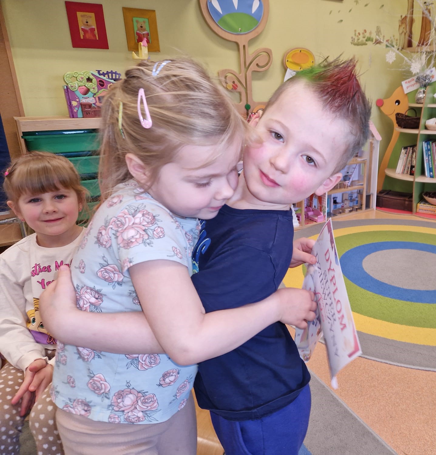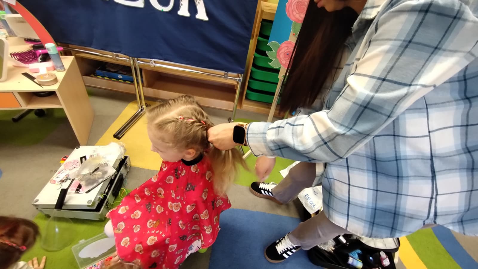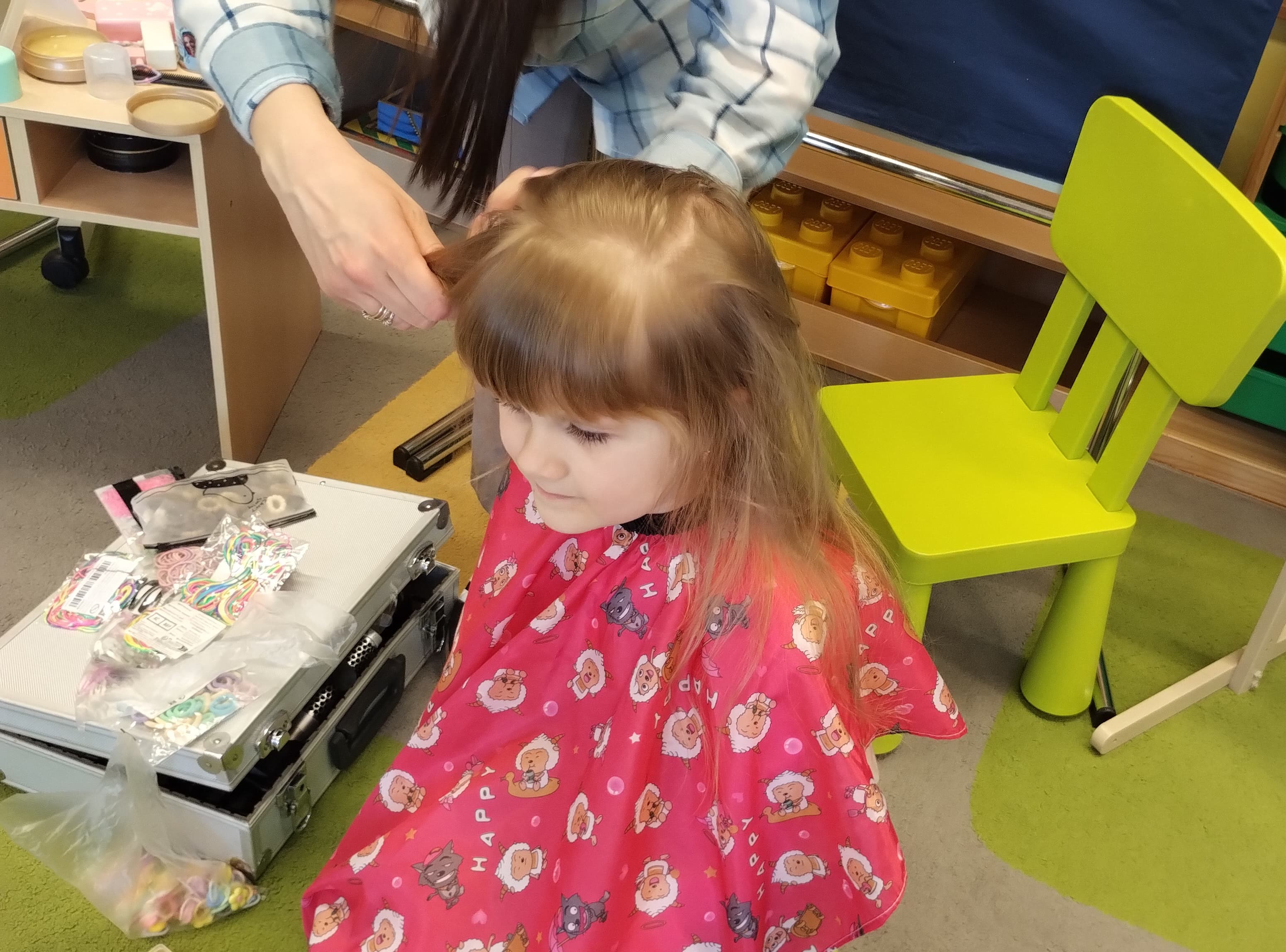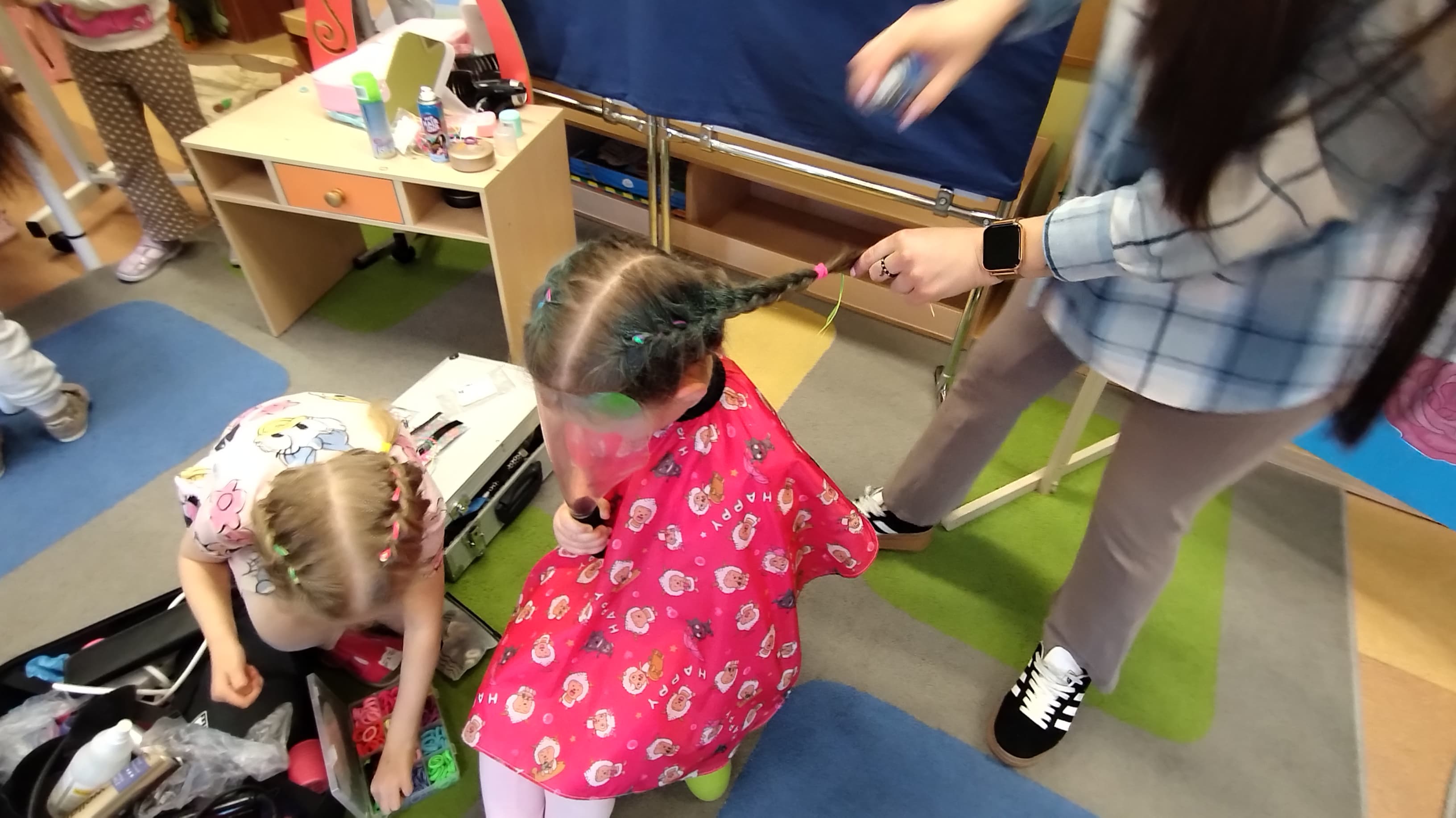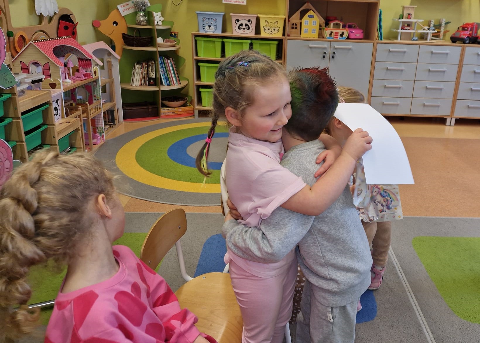 „ …. Być kobietą, być kobietą marzę ciągle będąc dzieckiem …” Która mała dziewczynka nie snuje wyobrażeń o byciu kobietą ??? Chyba każda, a celebrowanie Dnia Kobiet, na pewno pozwoliło przybliżyć te wyobrażenia. Choć Dzień Kobiet kojarzy nam się często z kwiatami, upominkami, których także nie zabrakło, to w grupie X tego dnia, dziewczynki mogły poczuć się, jak w prawdziwym salonie fryzjerskim, a to za sprawą spotkania z panią fryzjerką. Dnia 9. 03. 2026 odwiedziła nas mama Zuzi - pani Klaudia, której pasją i zawodem jest właśnie fryzjerstwo. I to dzięki pani Klaudii, dziewczynki mogły poczuć się tak wyjątkowo. Zanim jednak to nastąpiło, przedszkolaki miały wyjątkową okazję poznać zawód fryzjera! Podczas tej niezwykłej wizyty dzieci dowiedziały się, na czym polega praca fryzjera, jakie narzędzia są niezbędne w salonie fryzjerskim oraz jak prawidłowo dbać o włosy. Największą atrakcją spotkania był pokaz stylizacji fryzur, w którym modelkami zostały nasze dziewczynki oraz chłopcy. Dzieci z zaciekawieniem obserwowały, jak pani Klaudia - tworzy piękne upięcia, warkocze i loki, wykorzystując profesjonalne narzędzia. Same też mogły tworzyć fryzury na profesjonalnym manekinie fryzjerskim. Nie zabrakło również rozmów o różnych fryzjerskich trikach i porad na temat pielęgnacji włosów. Niespodzianka również czekała na chłopców …. „ kolorowy trik” na włosach. To spotkanie było nie tylko świetną zabawą, ale też cenną lekcją o jednym z ciekawszych, artystycznych zawodów. Kto wie, może wśród naszych przedszkolaków rośnie przyszła mistrzyni lub mistrz fryzjerstwa? Serdecznie dziękujemy naszemu gościowi za wizytę, za suuuper zabawę, wystrzałowe fryzury i poświęcony czas. Czekamy na kolejne inspirujące spotkania z naszymi rodzicami! A po obiadku nastąpił ciąg dalszy świętowania Dnia Kobiet w grupie X. Chłopcy wręczyli dziewczynkom upominki, po czym dzieci wspólnie rozpoczęły biesiadowanie przy słodkościach, o które zatroszczyli się niezawodni rodzice naszych przedszkolaków, za co serdecznie dziękujemy. To był naprawdę bardzo radosny, wypełniony wzajemnym szacunkiem i życzliwością dzień.