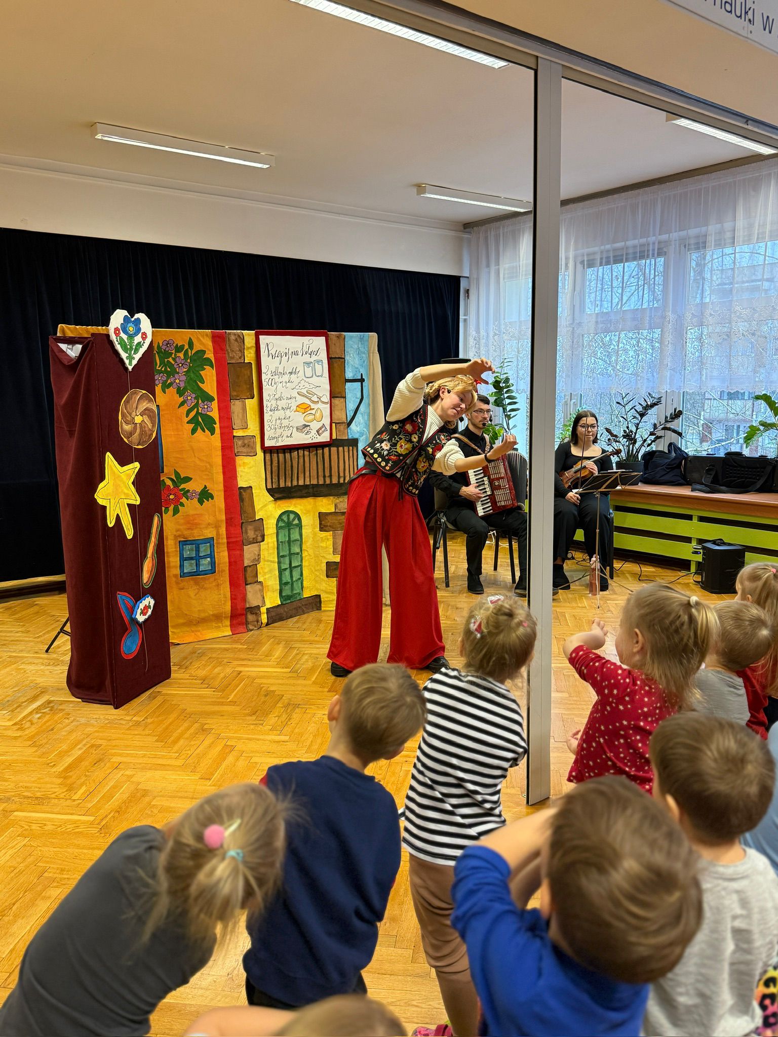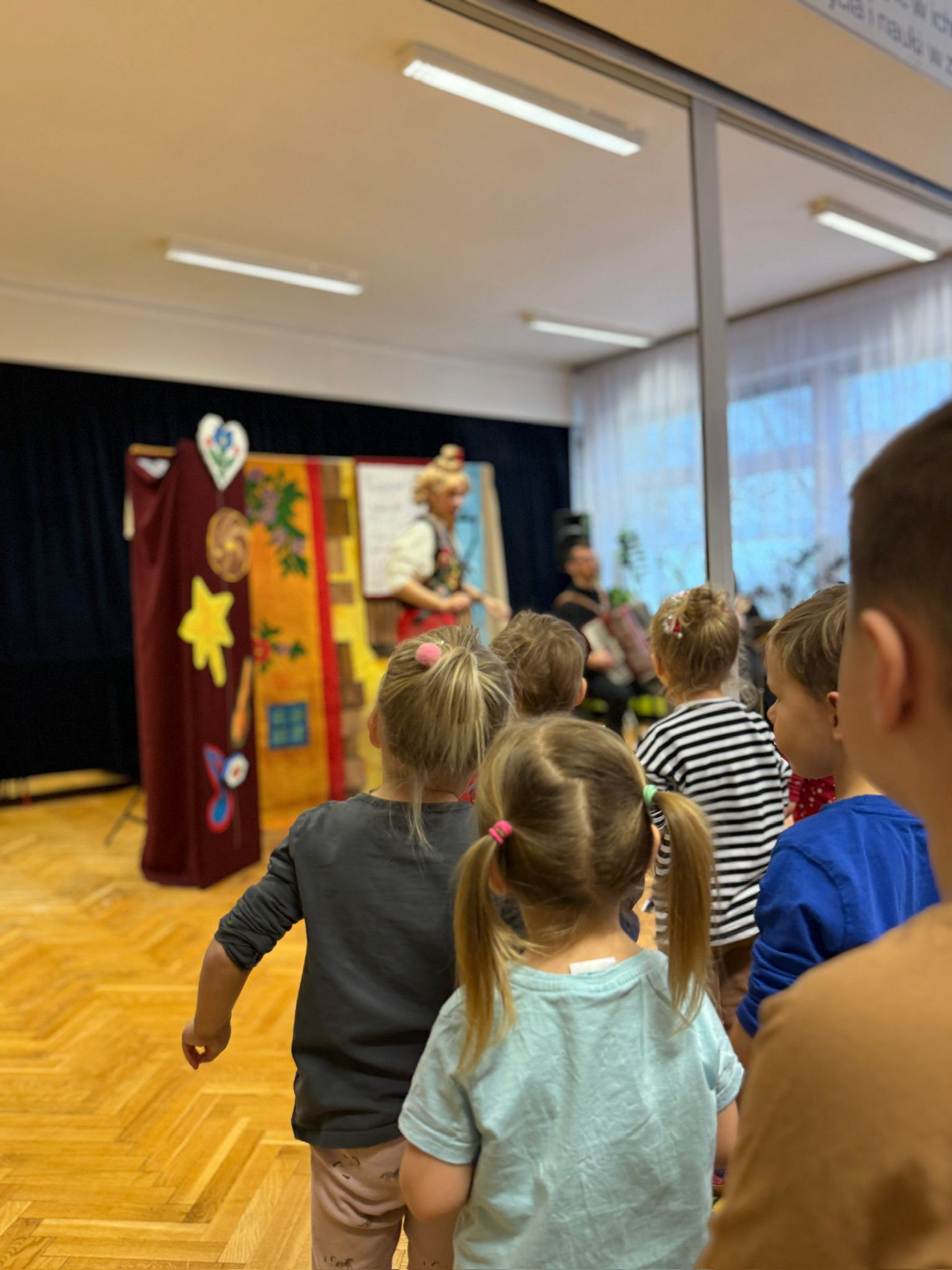 Na początku grudnia odwiedził nas Teatr Kulturka, który zabrał dzieci w barwną, pełną muzyki i uśmiechu podróż po polskich zimowych tradycjach. Jak Polska długa i szeroka — tak i u nas zrobiło się kolorowo, radośnie i bardzo magicznie! Dzieci oglądały pełne humoru scenki, słuchały pięknych melodii oraz poznawały zwyczaje związane z grudniowym kolędowaniem. Było mnóstwo śmiechu, wspólnego śpiewu i fantastycznej zabawy! Takie przedstawienia uczą, bawią i zostawiają cudowne wspomnienia. Ludowe, polskie tradycje i zwyczaje podane z muzyką, dużą dawką energii i radości pozwalającym przekazać kolejnym pokoleniom opowieści, które bawiły naszych przodków od pokoleń. Super spektakl w grudniu? Oczywiście — Teatr Kulturka sprawił, że to był naprawdę magiczny dzień!