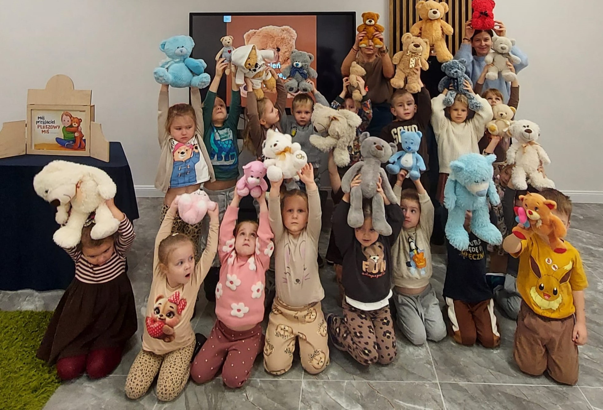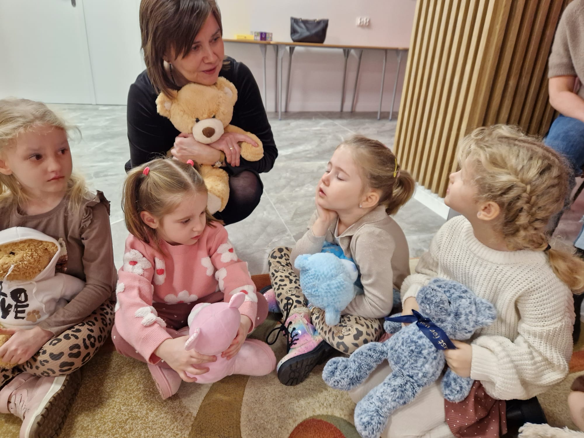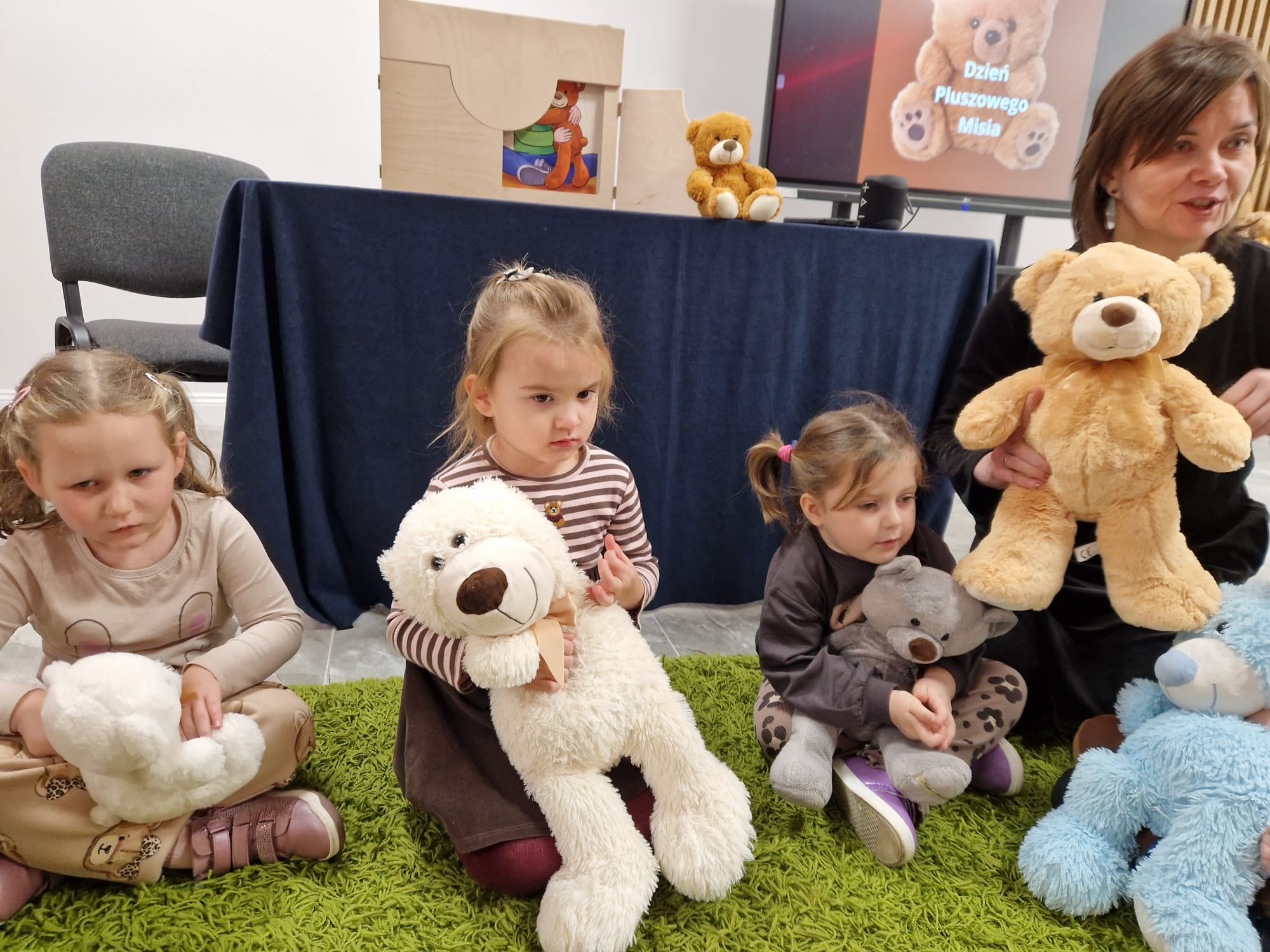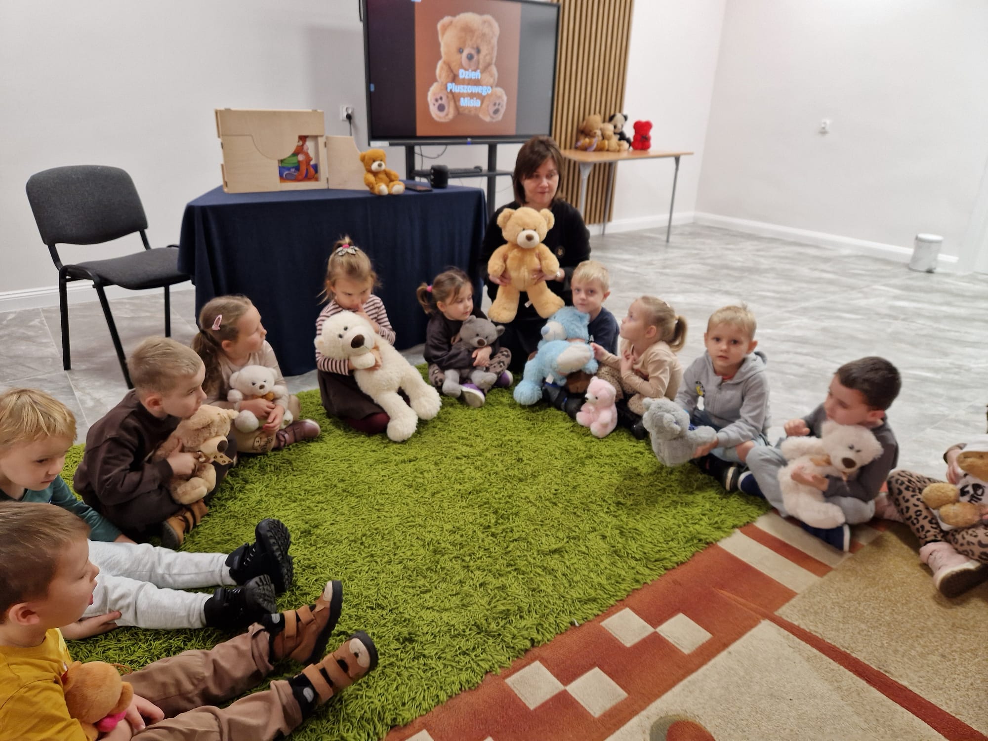 „Czy to jutro, czy to dziś, wszystkim jest potrzebny miś” – słowa Heleny Bechlerowej, autorki książek dla dzieci, trafnie oddają ponadczasowy urok pluszowego misia. Pluszowy Miś , to niewątpliwy symbol dzieciństwa. A ponieważ Miś oprócz tego, że jest przemiłą maskotką - przytulanką, jest także bohaterem wielu książek i bajek dla dzieci, a to zadecydowało, że średniaki z grupy X na miejsce świętowania Światowego Dnia Pluszowego Misia wybrały Publiczną Bibliotekę Pedagogiczną w Koninie. Oczywiście na wycieczkę nie pojechały tam same, albowiem w towarzystwie swoich „ pluszowych przyjaciół – MISIÓW” . Zabawy i wszelkie aktywności , które zaplanowała tego dnia dla najmłodszych Pani Dorota - pracownik tamtejszej biblioteki, zdominował oczywiście – MIŚ. Na początek dzieci z wielkim zainteresowaniem obejrzały teatrzyk kamishibai i bajkę pt „ Mój przyjaciel – Pluszowy Miś”, która stała się inspiracją do zabaw ruchowych, ze śpiewem oraz plastycznych. A misie? Jak to przystało na wiernych przyjaciół, w każdej aktywności towarzyszyły dzieciom …. MISIE bez wątpienia były dziś zaopiekowane, wytulone i wybawione. Każde dziecko ma swojego ukochanego misia – przyjaciela i powiernika sekretów, o którym dziś mogło opowiedzieć. Mimo bogactwa współczesnego rynku zabawek dzieci chętnie wybierają misie, jako towarzyszy zabaw. Niewiele rzeczy w dzisiejszym świecie wzrusza, pobudza ciepłe emocje i ma w sobie tyle łagodności i dobra, ile zawiera się w tej prostej zabawce, jaką jest pluszowy miś. Posiadanie takiego towarzysza w dzieciństwie często kształtuje empatię i rozwija opiekuńczość, a dla wielu miś staje się symbolem bezpieczeństwa i wsparcia, szczególnie w trudniejszych chwilach. Zapraszamy do galerii.