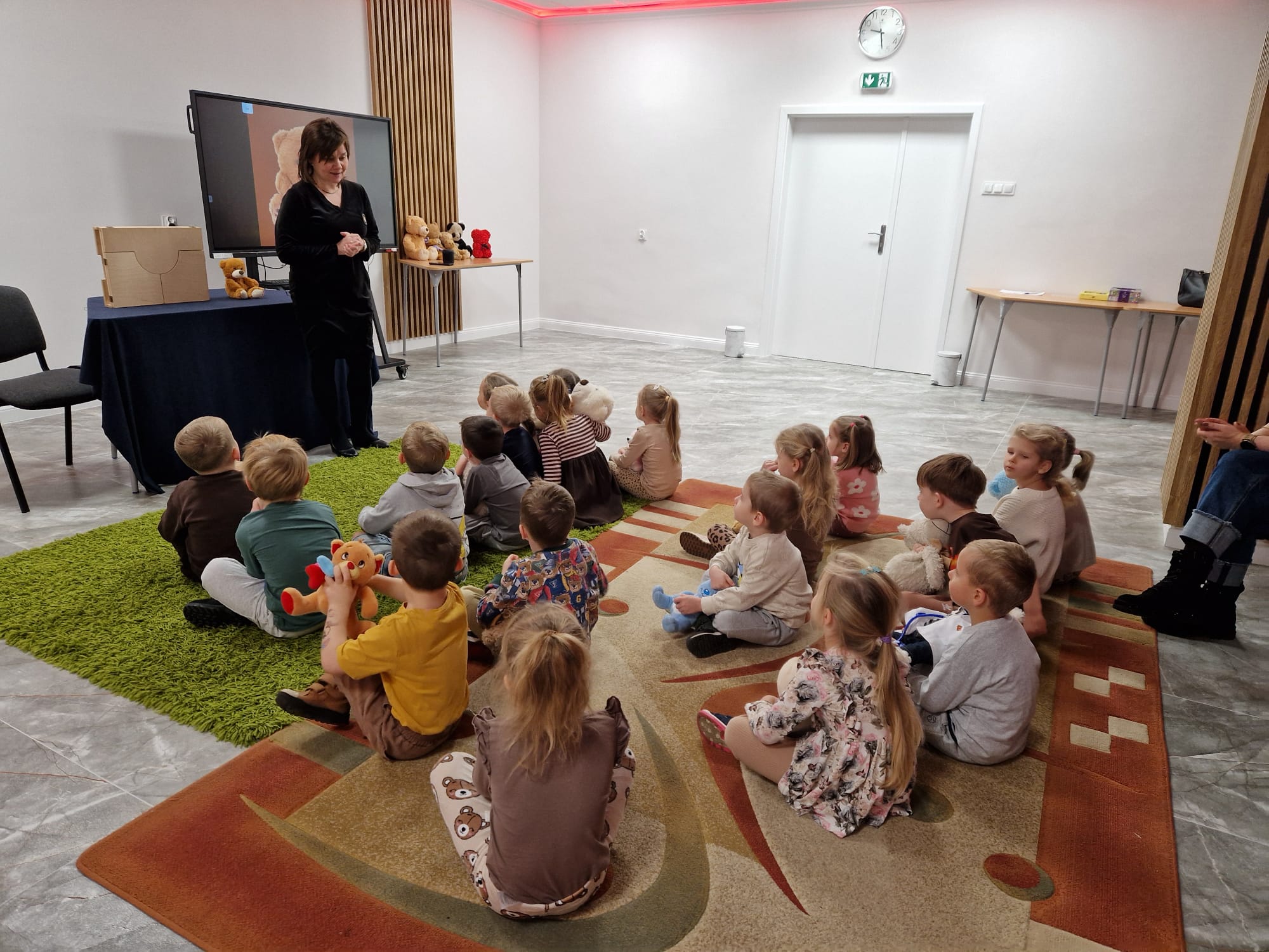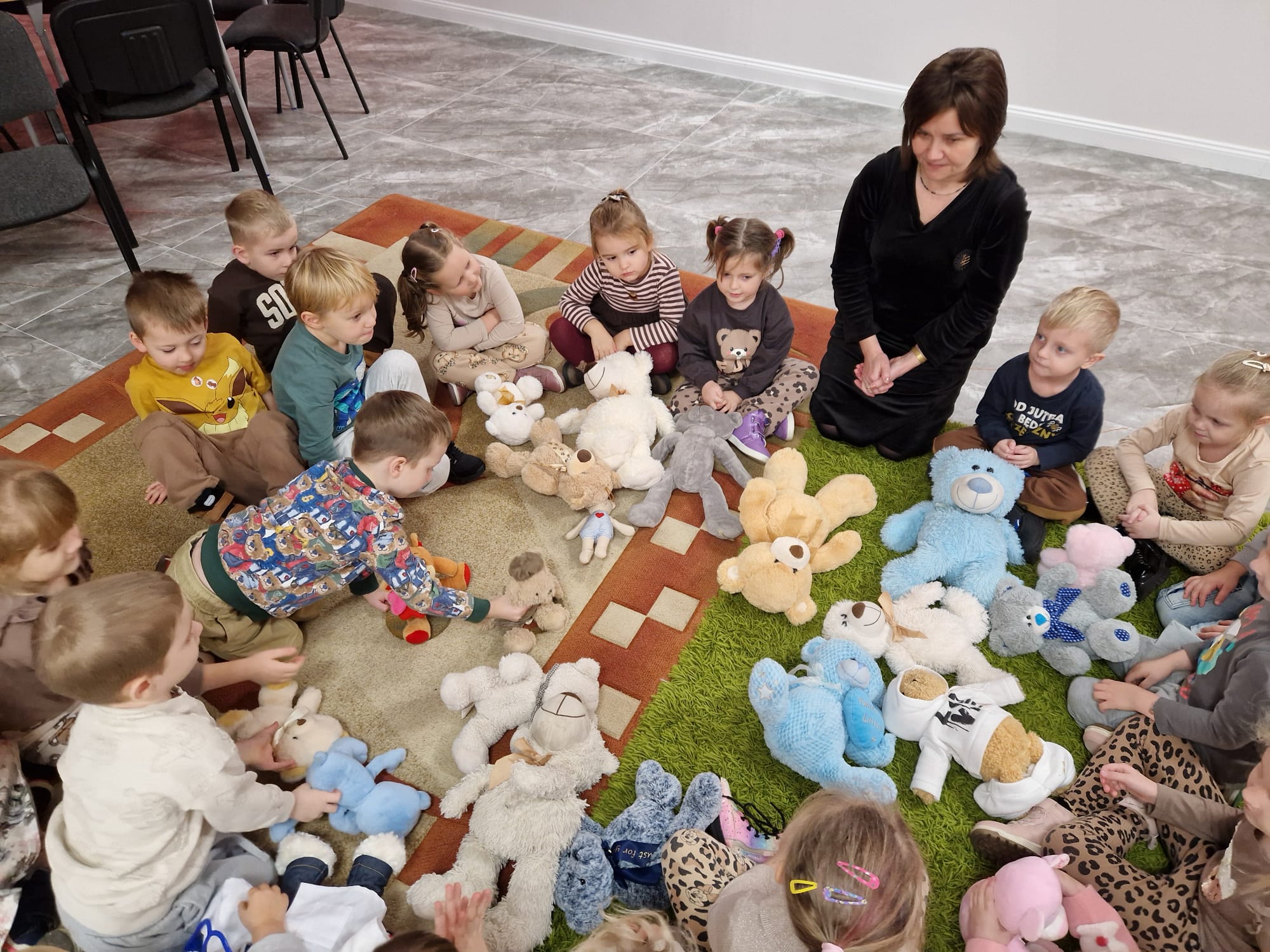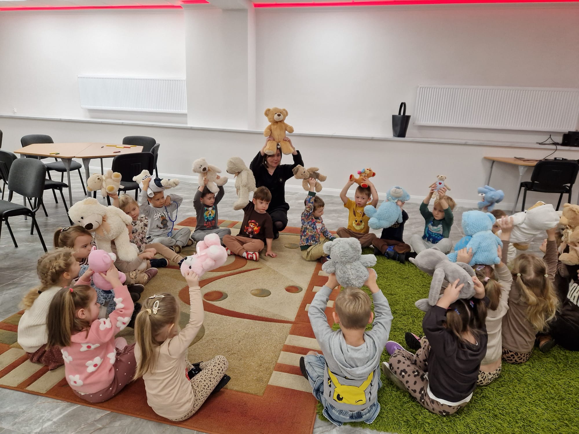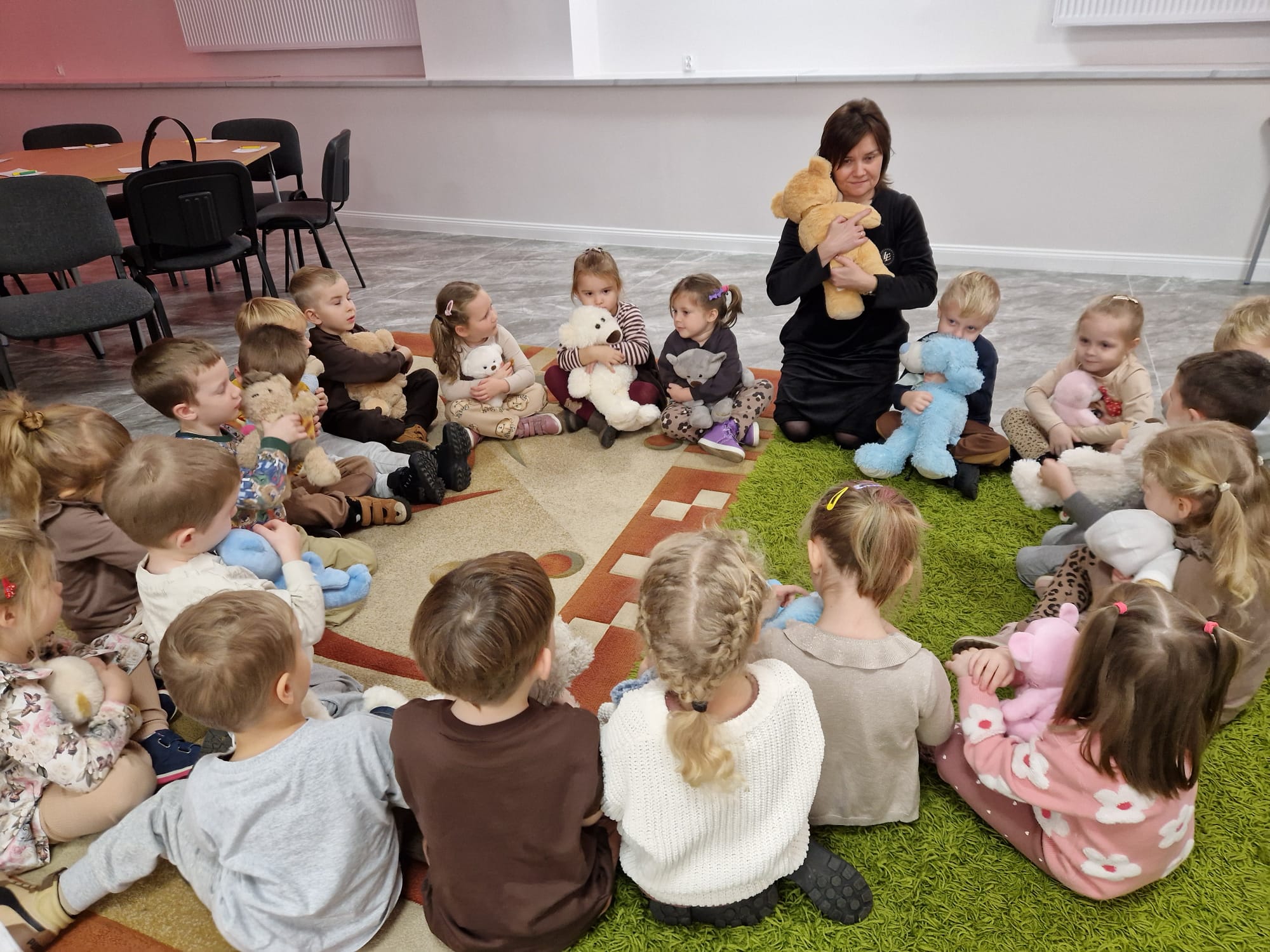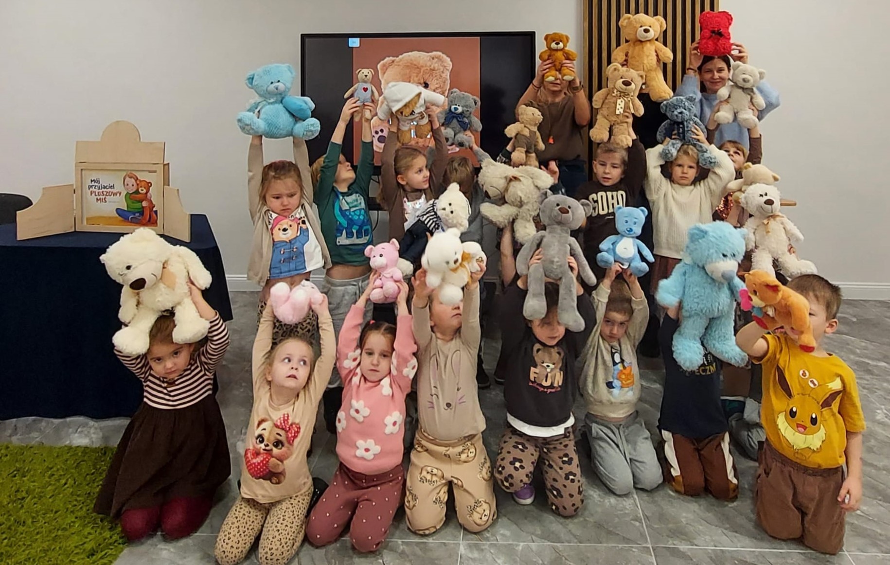 „Czy to jutro, czy to dziś, wszystkim jest potrzebny miś” – słowa Heleny Bechlerowej, autorki książek dla dzieci, trafnie oddają ponadczasowy urok pluszowego misia. Pluszowy Miś , to niewątpliwy symbol dzieciństwa. A ponieważ Miś oprócz tego, że jest przemiłą maskotką - przytulanką, jest także bohaterem wielu książek i bajek dla dzieci, a to zadecydowało, że średniaki z grupy X na miejsce świętowania Światowego Dnia Pluszowego Misia wybrały Publiczną Bibliotekę Pedagogiczną w Koninie. Oczywiście na wycieczkę nie pojechały tam same, albowiem w towarzystwie swoich „ pluszowych przyjaciół – MISIÓW” . Zabawy i wszelkie aktywności , które zaplanowała tego dnia dla najmłodszych Pani Dorota - pracownik tamtejszej biblioteki, zdominował oczywiście – MIŚ. Na początek dzieci z wielkim zainteresowaniem obejrzały teatrzyk kamishibai i bajkę pt „ Mój przyjaciel – Pluszowy Miś”, która stała się inspiracją do zabaw ruchowych, ze śpiewem oraz plastycznych. A misie? Jak to przystało na wiernych przyjaciół, w każdej aktywności towarzyszyły dzieciom …. MISIE bez wątpienia były dziś zaopiekowane, wytulone i wybawione. Każde dziecko ma swojego ukochanego misia – przyjaciela i powiernika sekretów, o którym dziś mogło opowiedzieć. Mimo bogactwa współczesnego rynku zabawek dzieci chętnie wybierają misie, jako towarzyszy zabaw. Niewiele rzeczy w dzisiejszym świecie wzrusza, pobudza ciepłe emocje i ma w sobie tyle łagodności i dobra, ile zawiera się w tej prostej zabawce, jaką jest pluszowy miś. Posiadanie takiego towarzysza w dzieciństwie często kształtuje empatię i rozwija opiekuńczość, a dla wielu miś staje się symbolem bezpieczeństwa i wsparcia, szczególnie w trudniejszych chwilach. Zapraszamy do galerii.