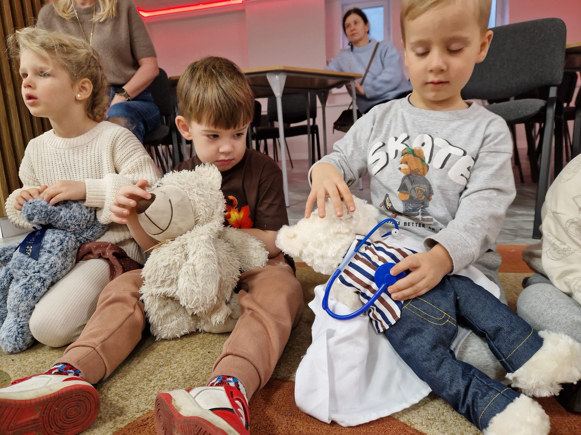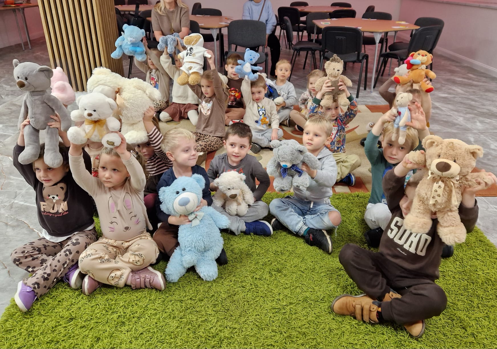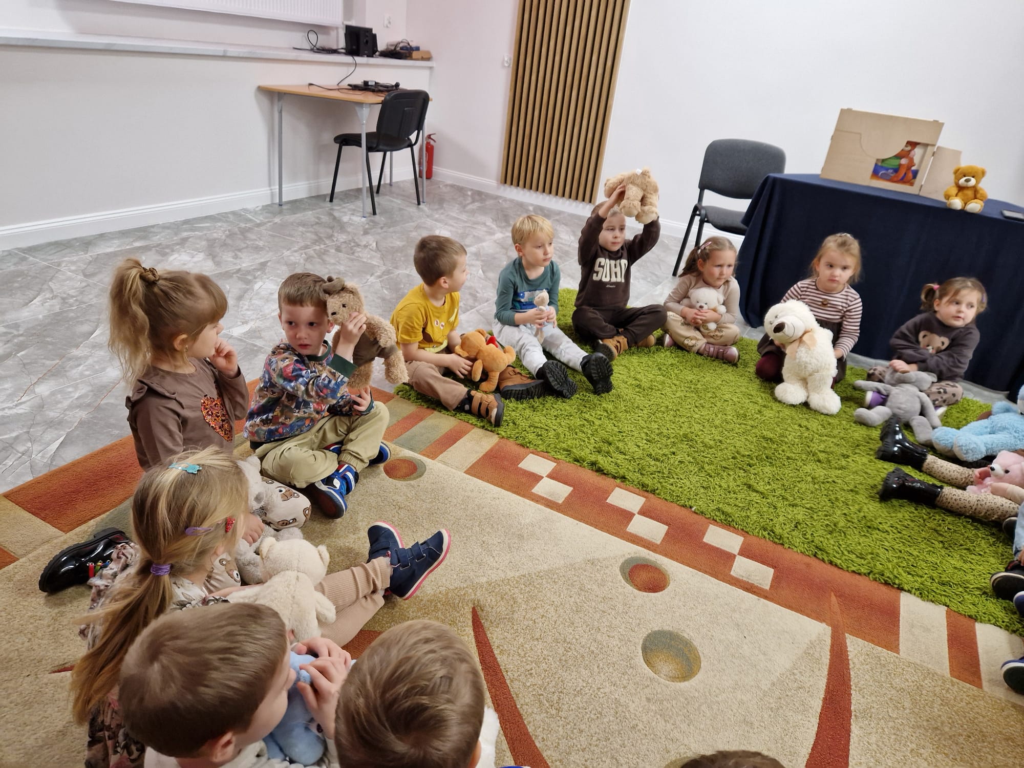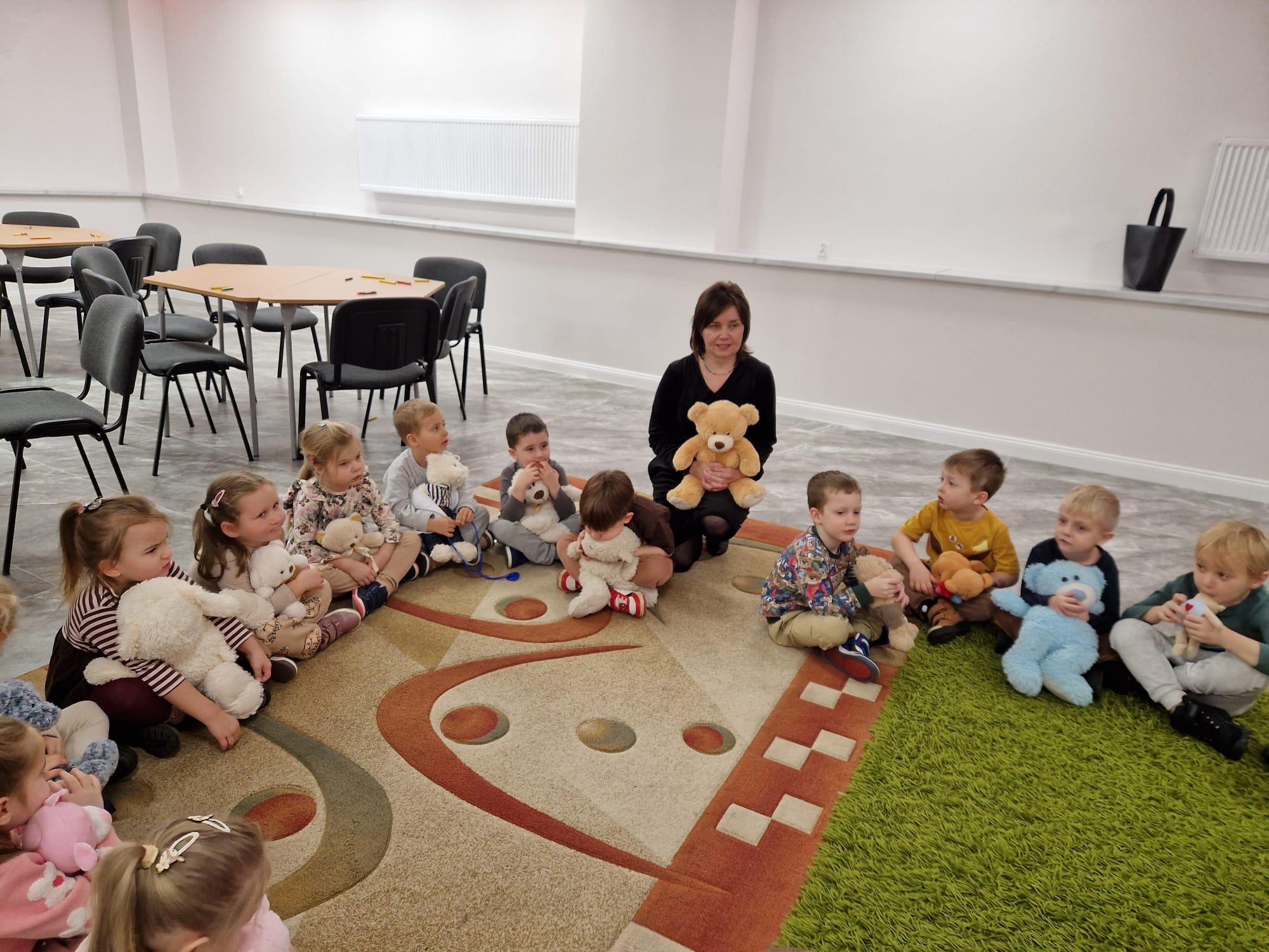 „Czy to jutro, czy to dziś, wszystkim jest potrzebny miś” – słowa Heleny Bechlerowej, autorki książek dla dzieci, trafnie oddają ponadczasowy urok pluszowego misia. Pluszowy Miś , to niewątpliwy symbol dzieciństwa. A ponieważ Miś oprócz tego, że jest przemiłą maskotką - przytulanką, jest także bohaterem wielu książek i bajek dla dzieci, a to zadecydowało, że średniaki z grupy X na miejsce świętowania Światowego Dnia Pluszowego Misia wybrały Publiczną Bibliotekę Pedagogiczną w Koninie. Oczywiście na wycieczkę nie pojechały tam same, albowiem w towarzystwie swoich „ pluszowych przyjaciół – MISIÓW” . Zabawy i wszelkie aktywności , które zaplanowała tego dnia dla najmłodszych Pani Dorota - pracownik tamtejszej biblioteki, zdominował oczywiście – MIŚ. Na początek dzieci z wielkim zainteresowaniem obejrzały teatrzyk kamishibai i bajkę pt „ Mój przyjaciel – Pluszowy Miś”, która stała się inspiracją do zabaw ruchowych, ze śpiewem oraz plastycznych. A misie? Jak to przystało na wiernych przyjaciół, w każdej aktywności towarzyszyły dzieciom …. MISIE bez wątpienia były dziś zaopiekowane, wytulone i wybawione. Każde dziecko ma swojego ukochanego misia – przyjaciela i powiernika sekretów, o którym dziś mogło opowiedzieć. Mimo bogactwa współczesnego rynku zabawek dzieci chętnie wybierają misie, jako towarzyszy zabaw. Niewiele rzeczy w dzisiejszym świecie wzrusza, pobudza ciepłe emocje i ma w sobie tyle łagodności i dobra, ile zawiera się w tej prostej zabawce, jaką jest pluszowy miś. Posiadanie takiego towarzysza w dzieciństwie często kształtuje empatię i rozwija opiekuńczość, a dla wielu miś staje się symbolem bezpieczeństwa i wsparcia, szczególnie w trudniejszych chwilach. Zapraszamy do galerii.